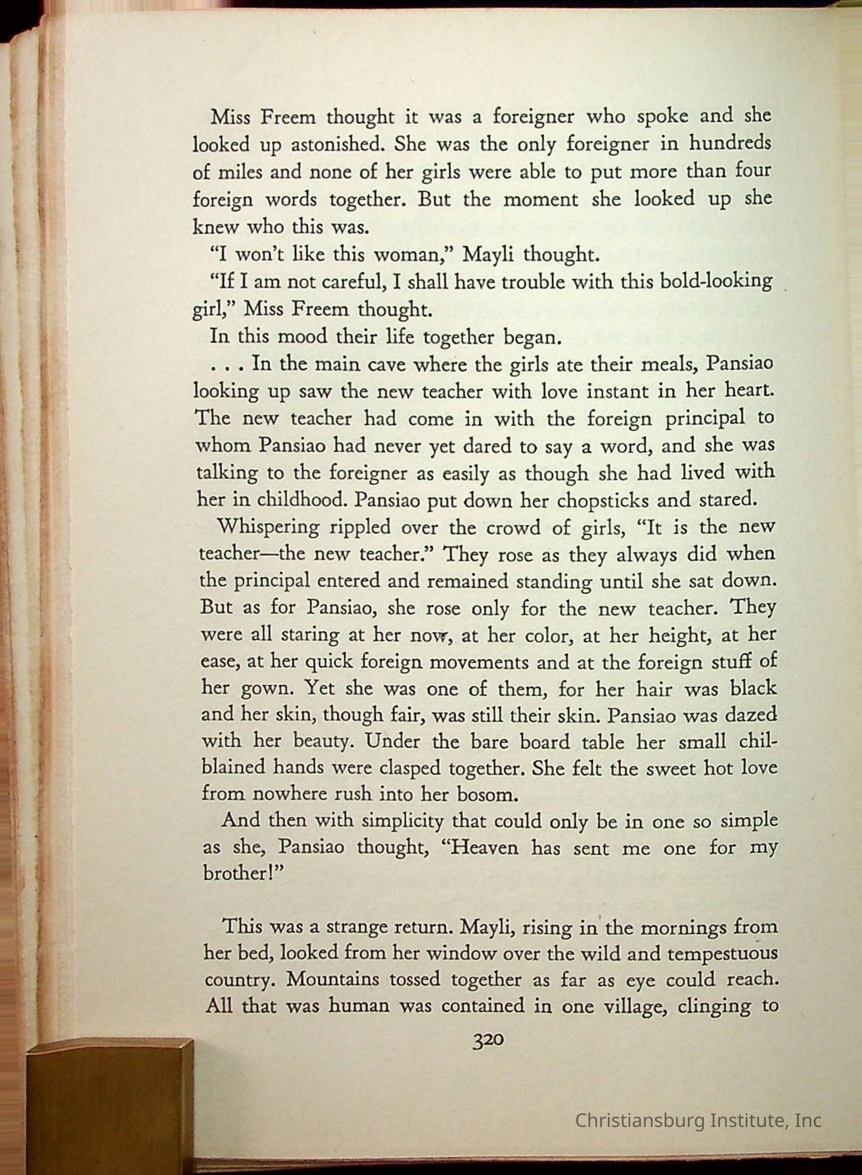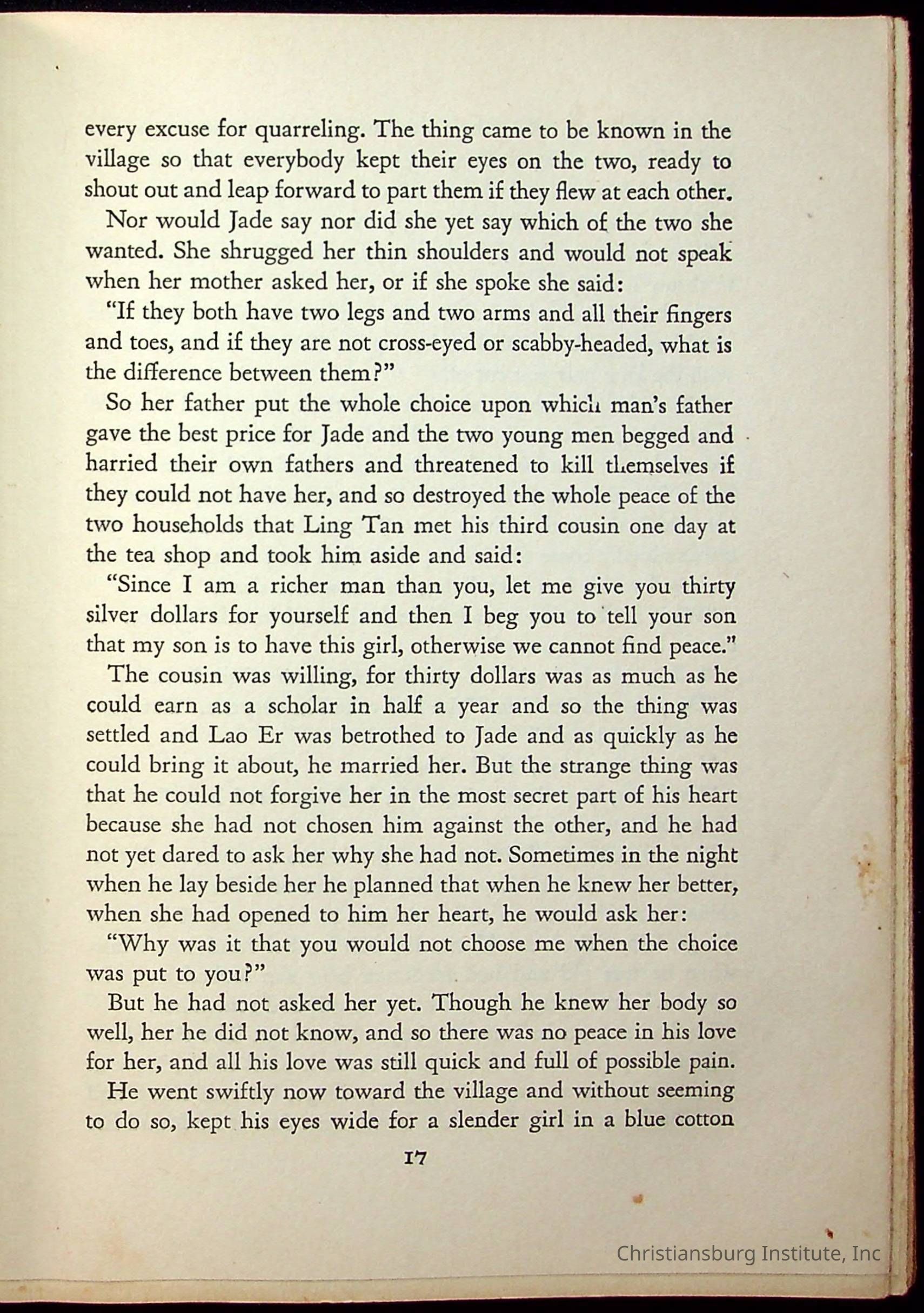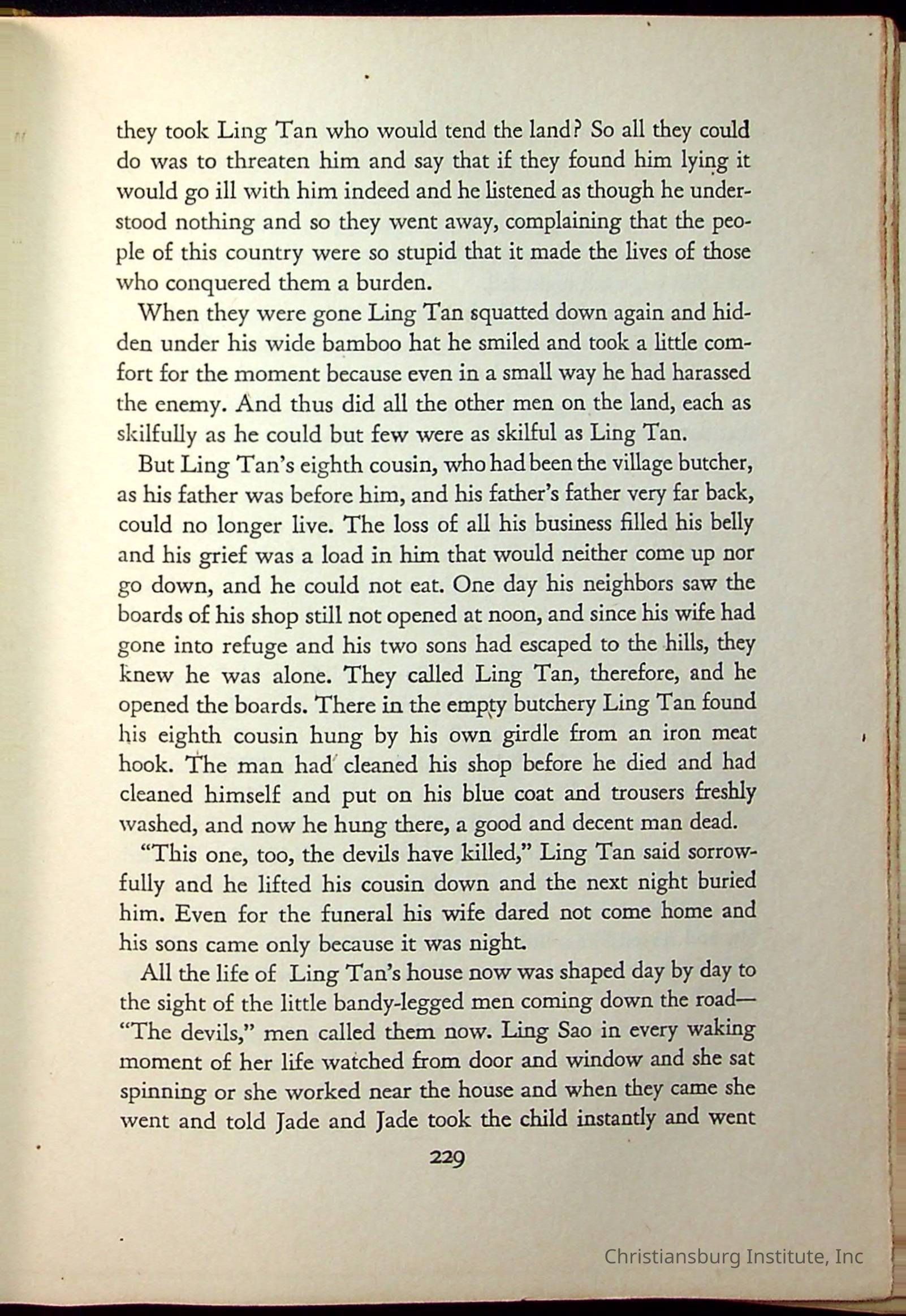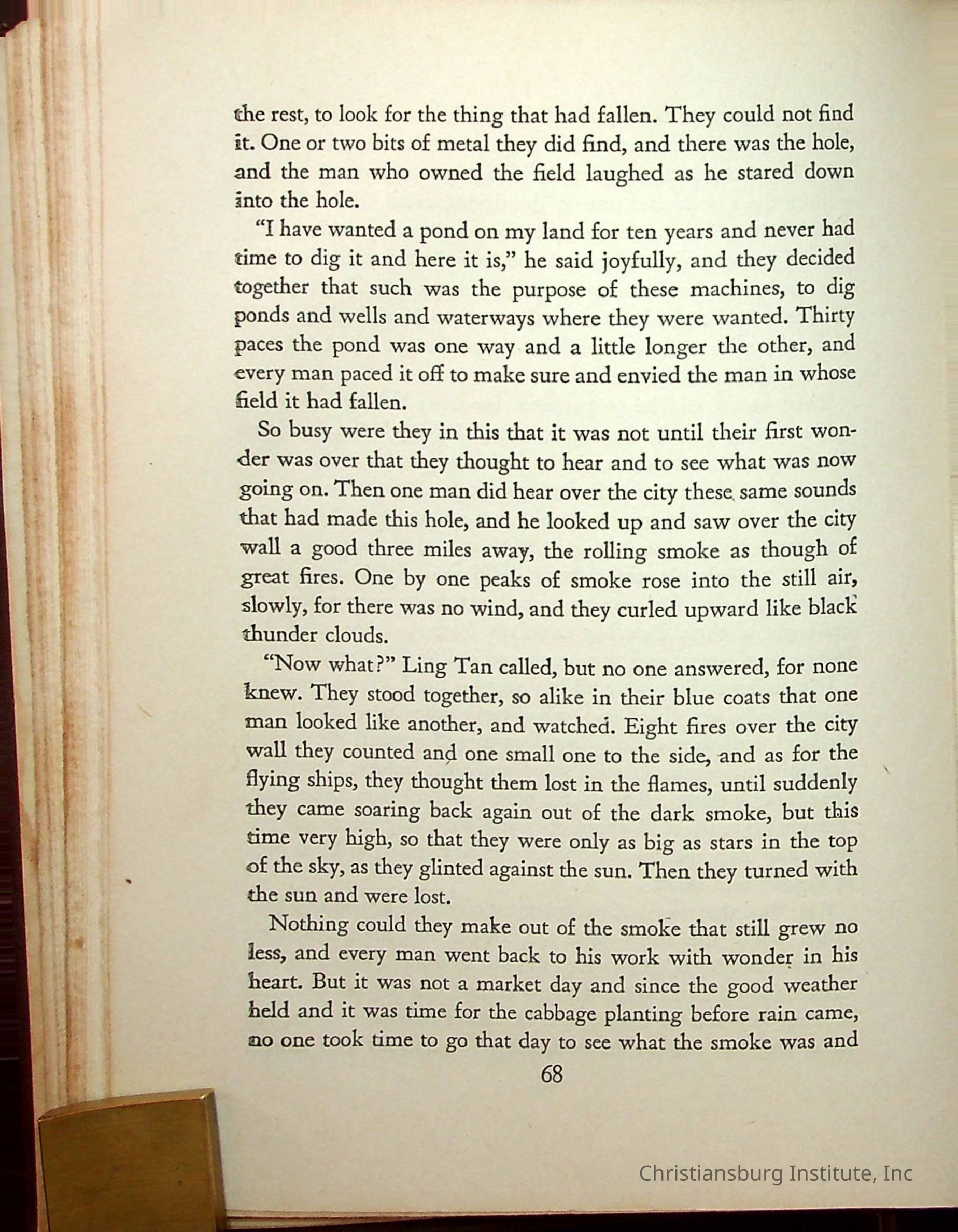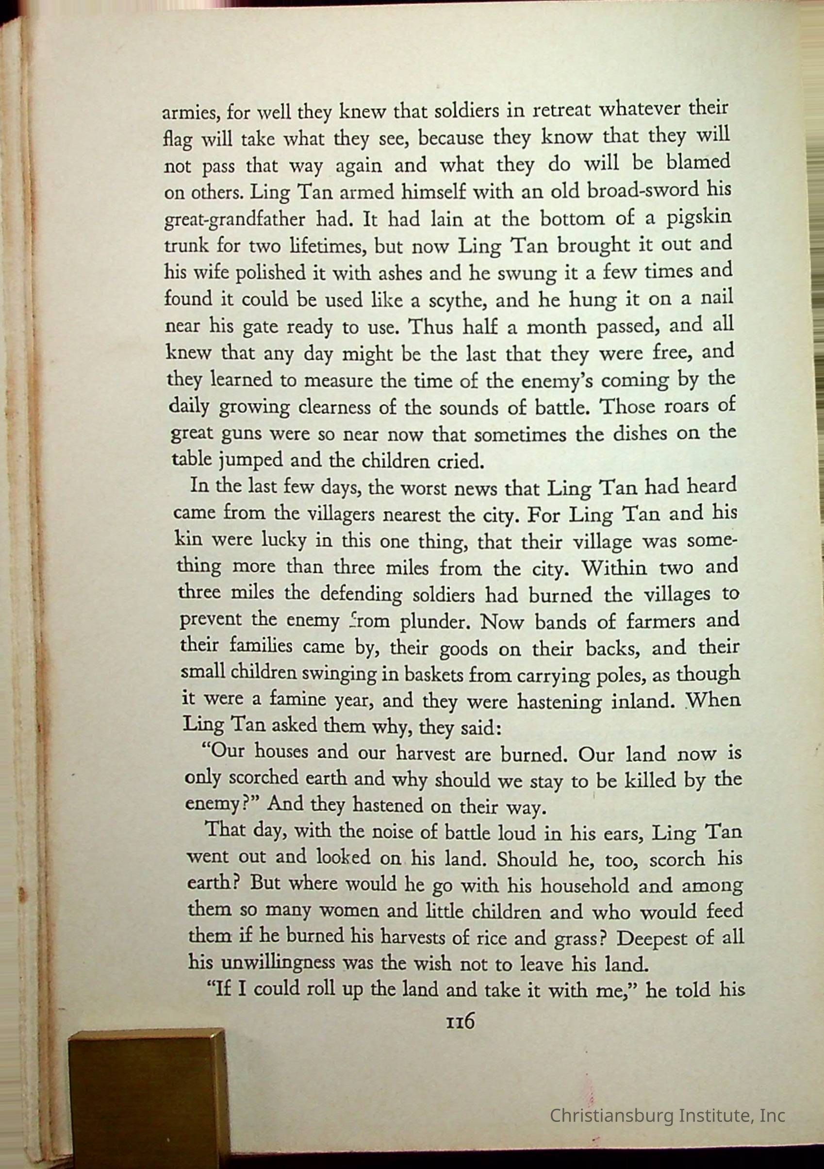 Dragon Seed, written by Pearl S. Buck and published in the year 1942. This book was used by Christiansburg Institute teacher, Viola Charlton in her class.Collection