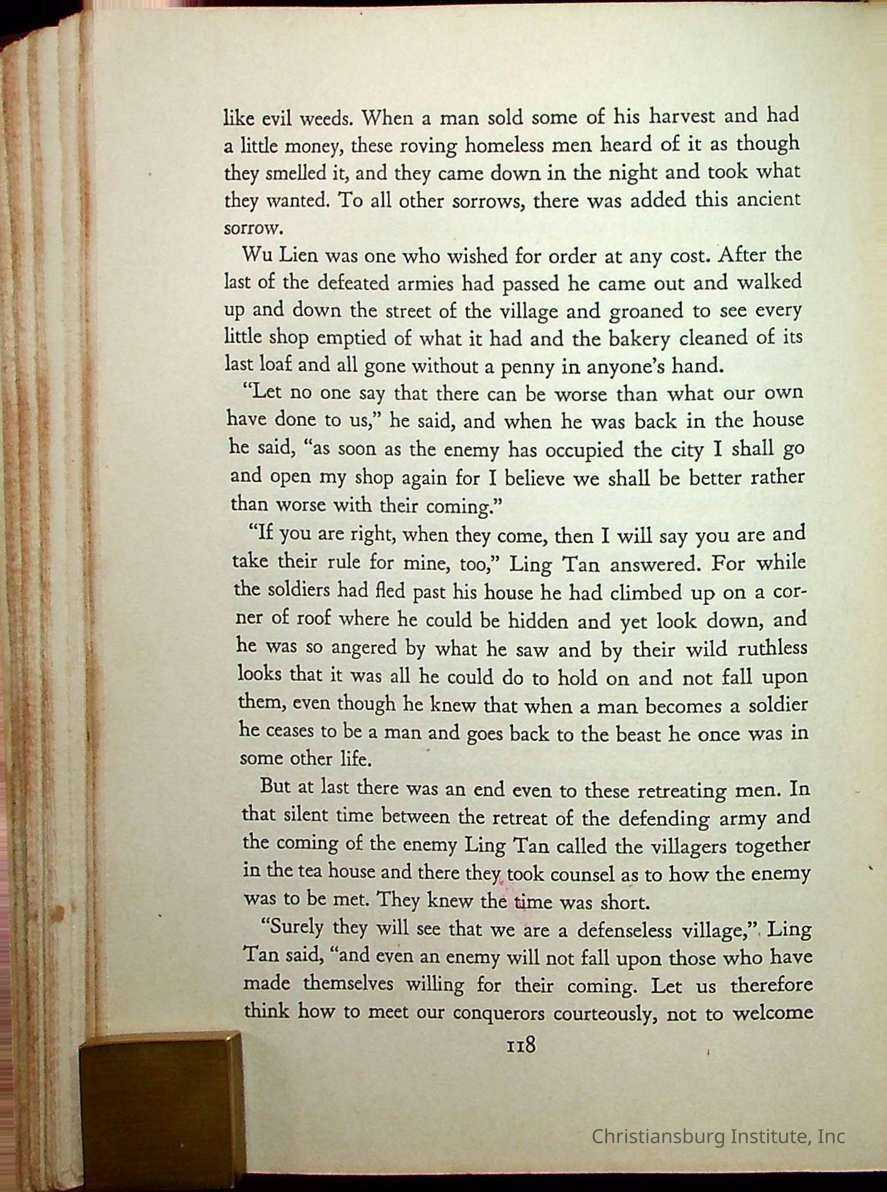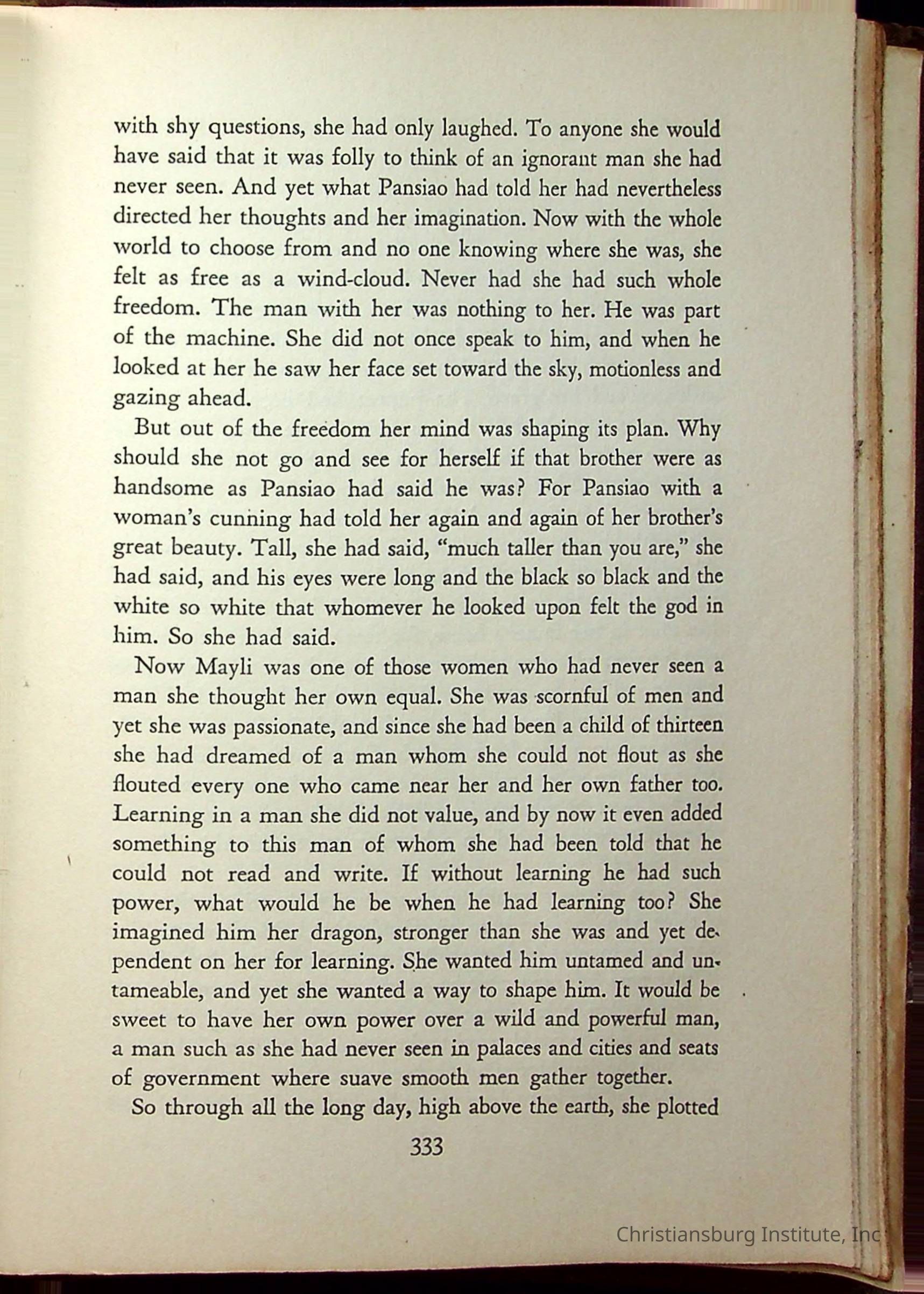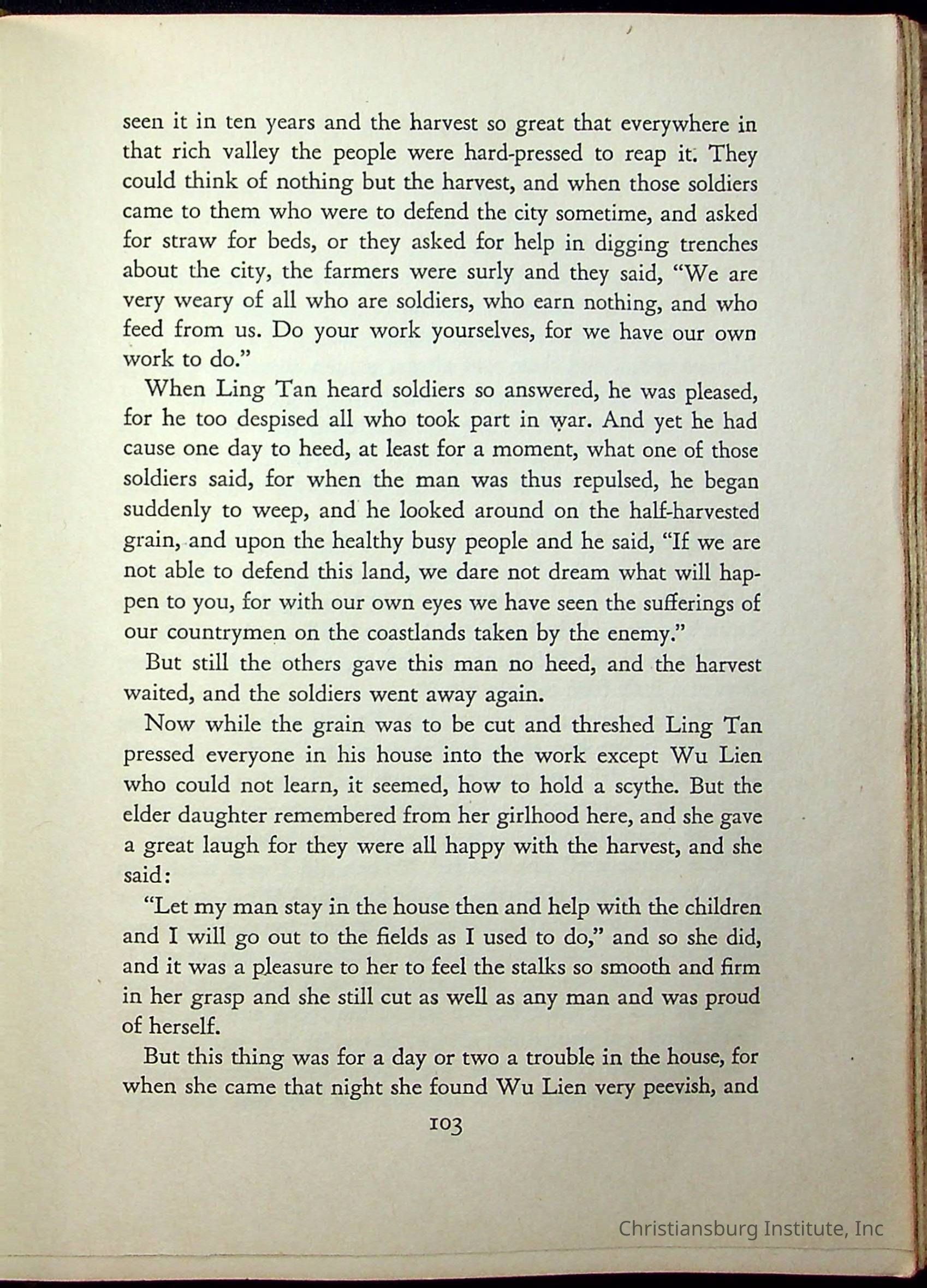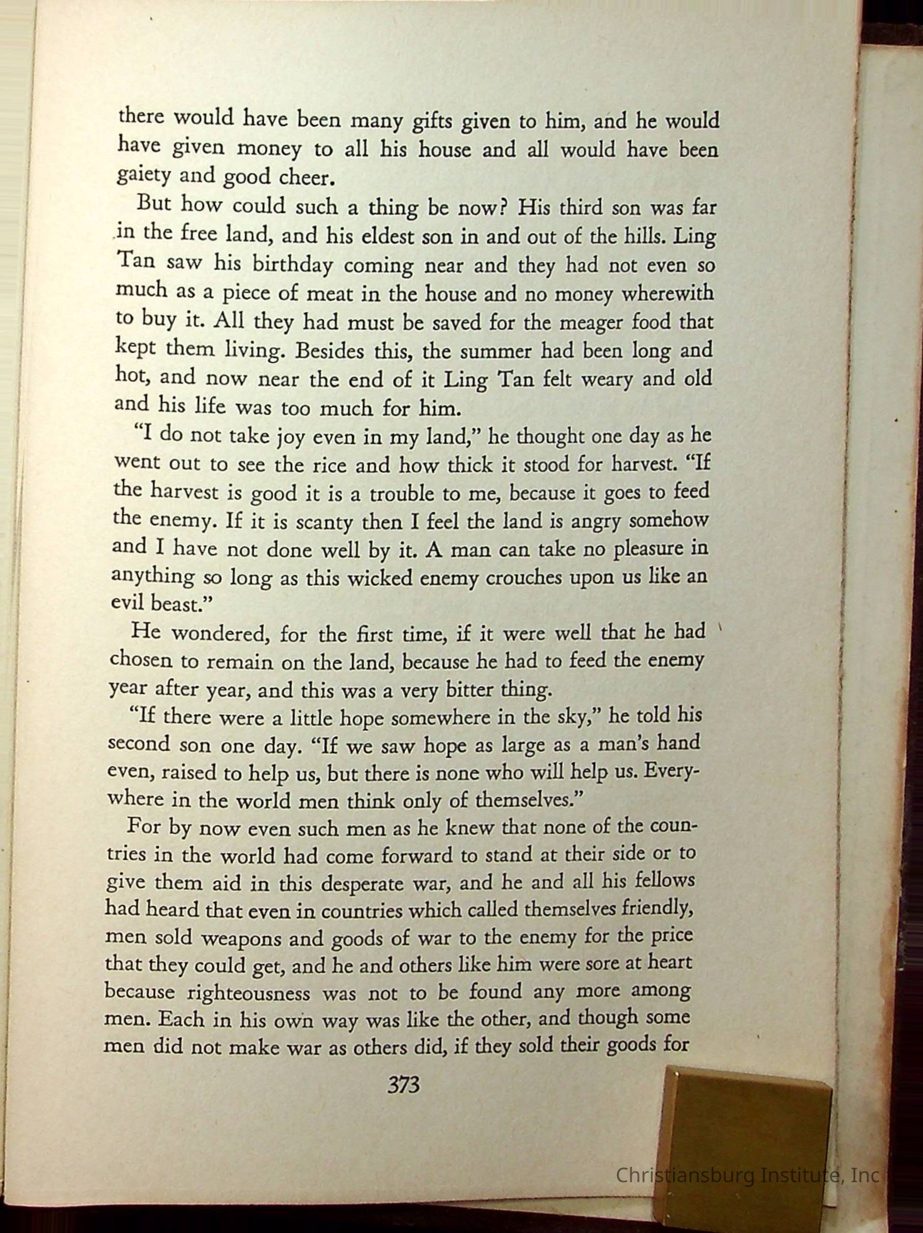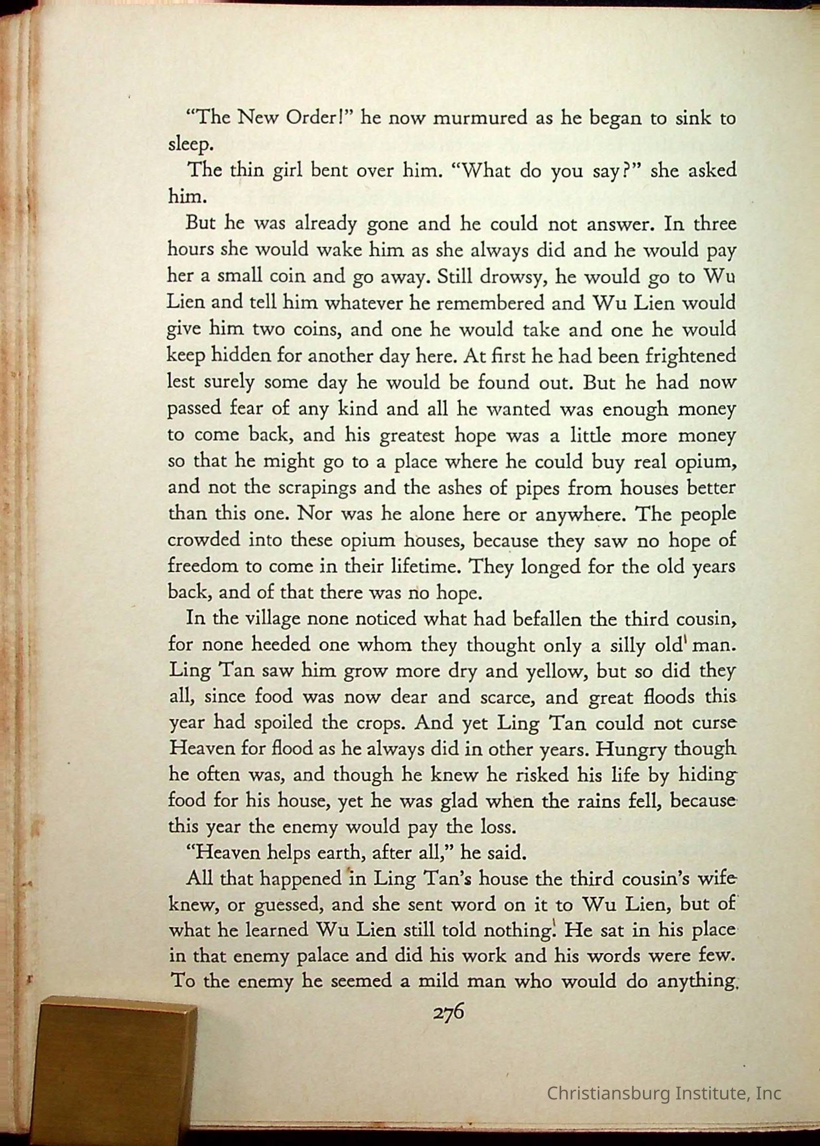 Dragon Seed, written by Pearl S. Buck and published in the year 1942. This book was used by Christiansburg Institute teacher, Viola Charlton in her class.Collection