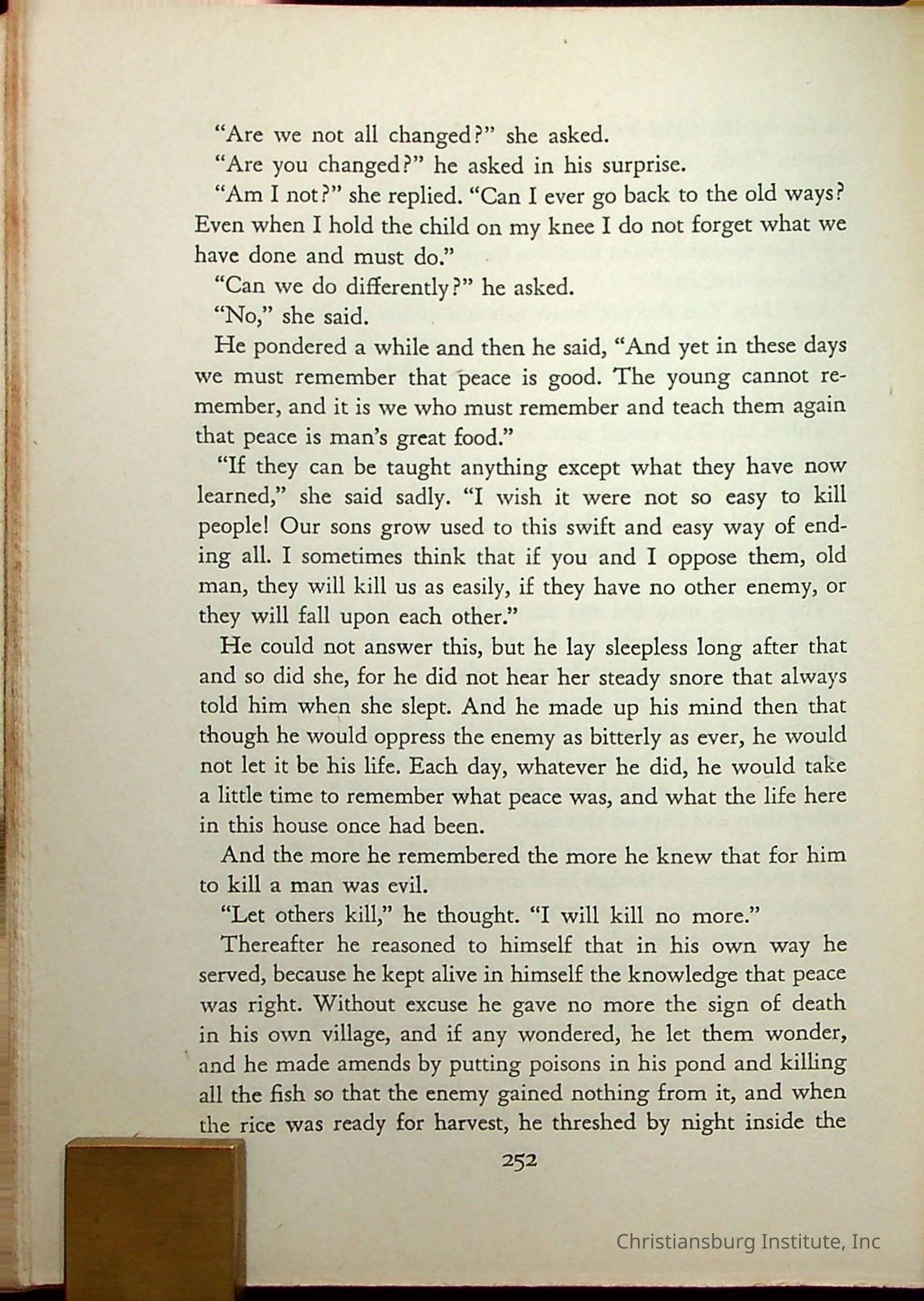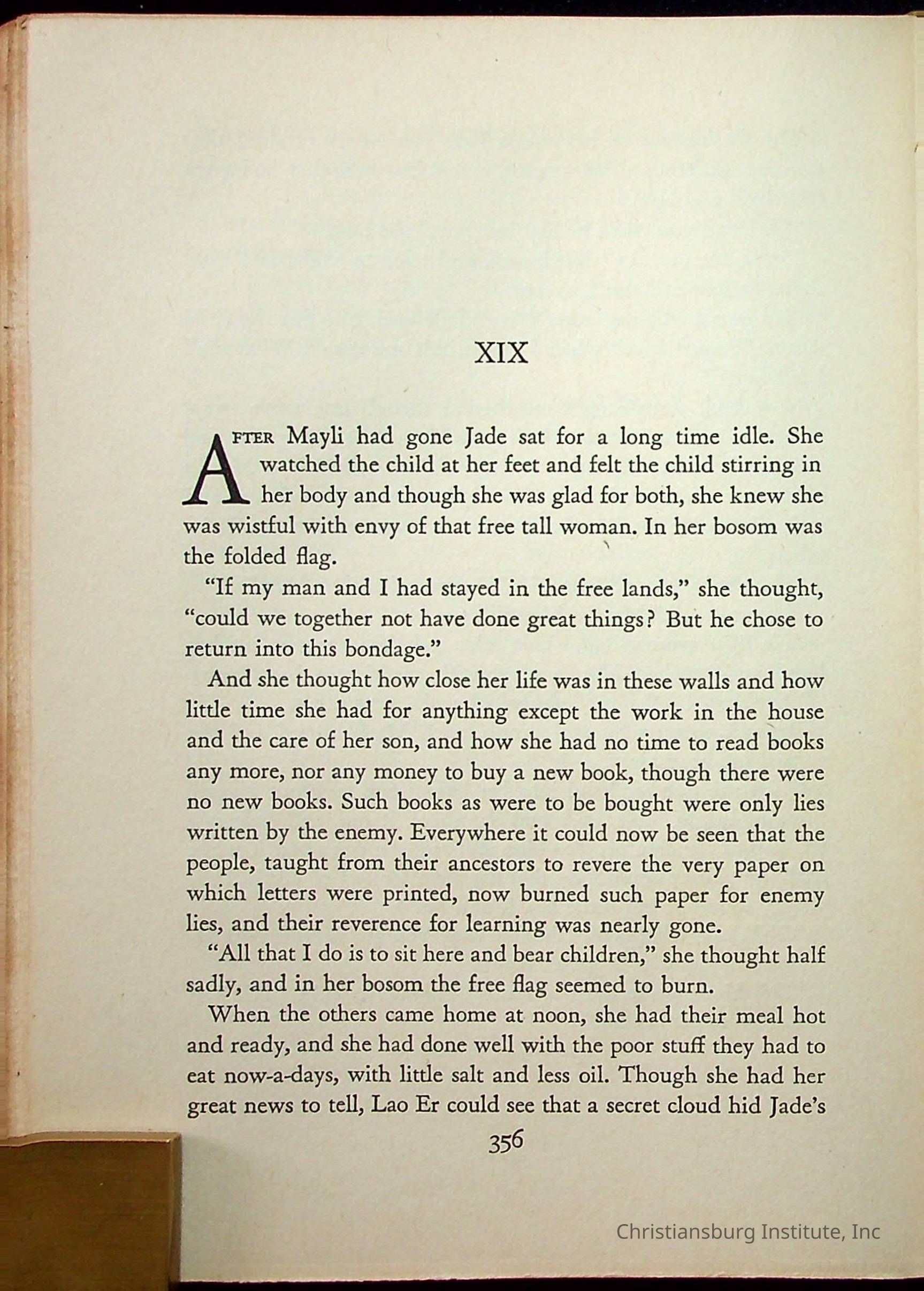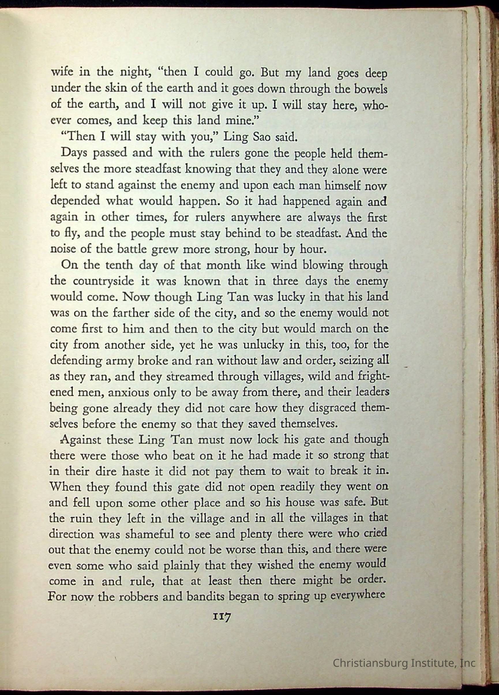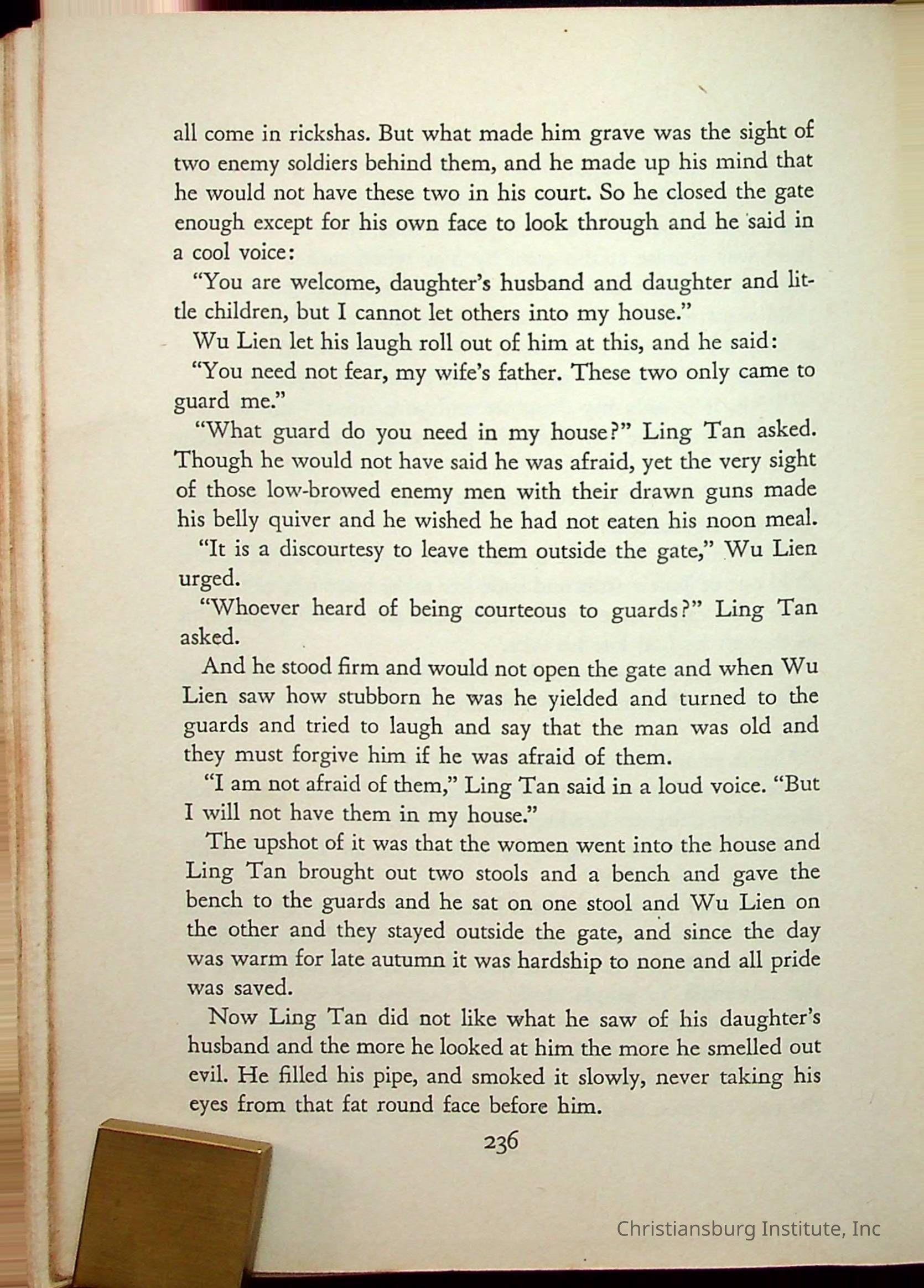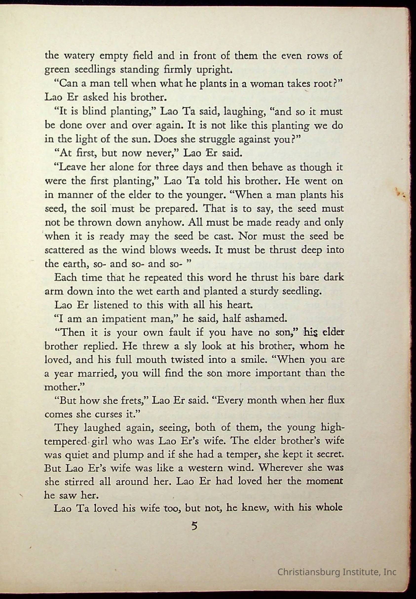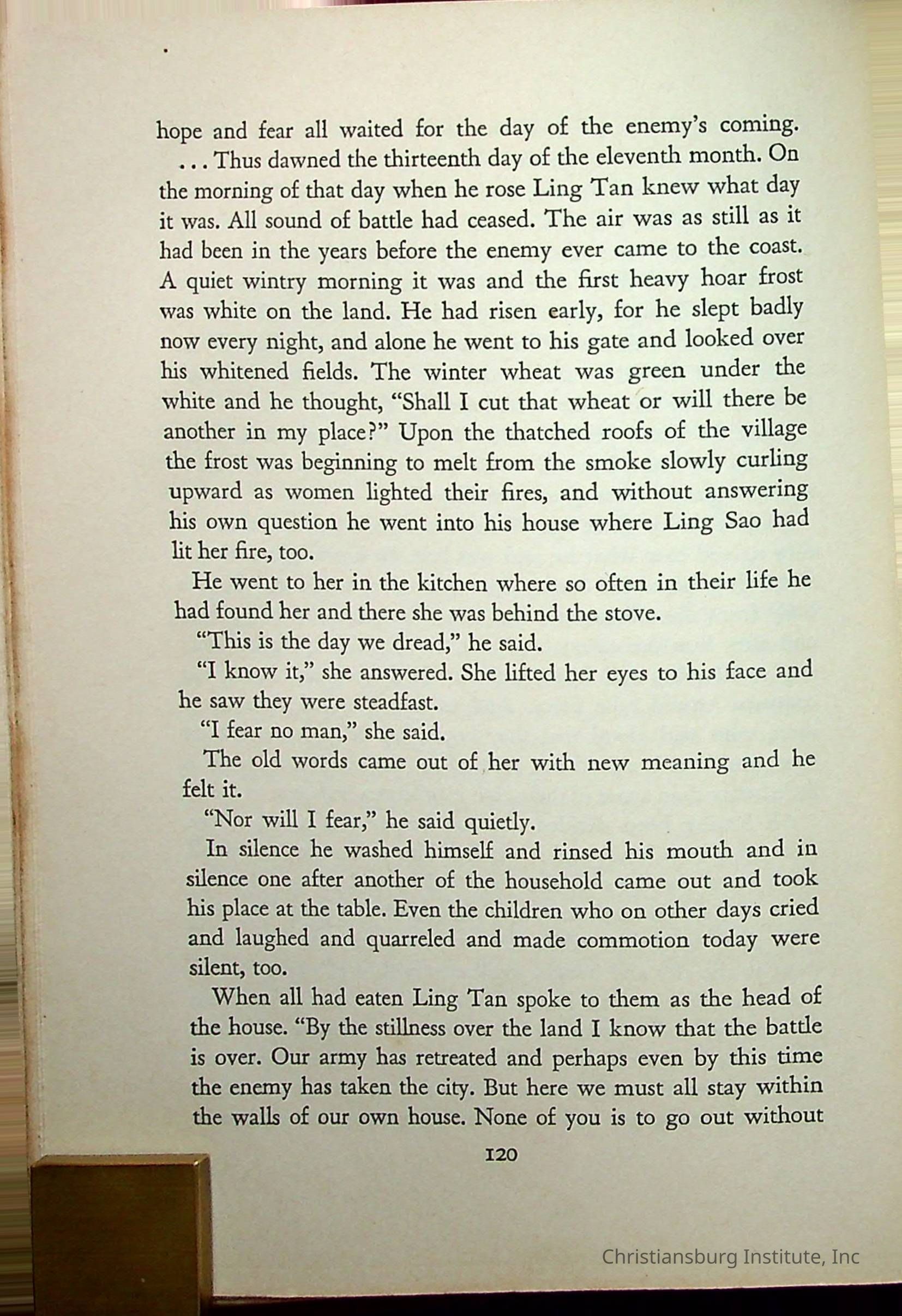 Dragon Seed, written by Pearl S. Buck and published in the year 1942. This book was used by Christiansburg Institute teacher, Viola Charlton in her class.Collection