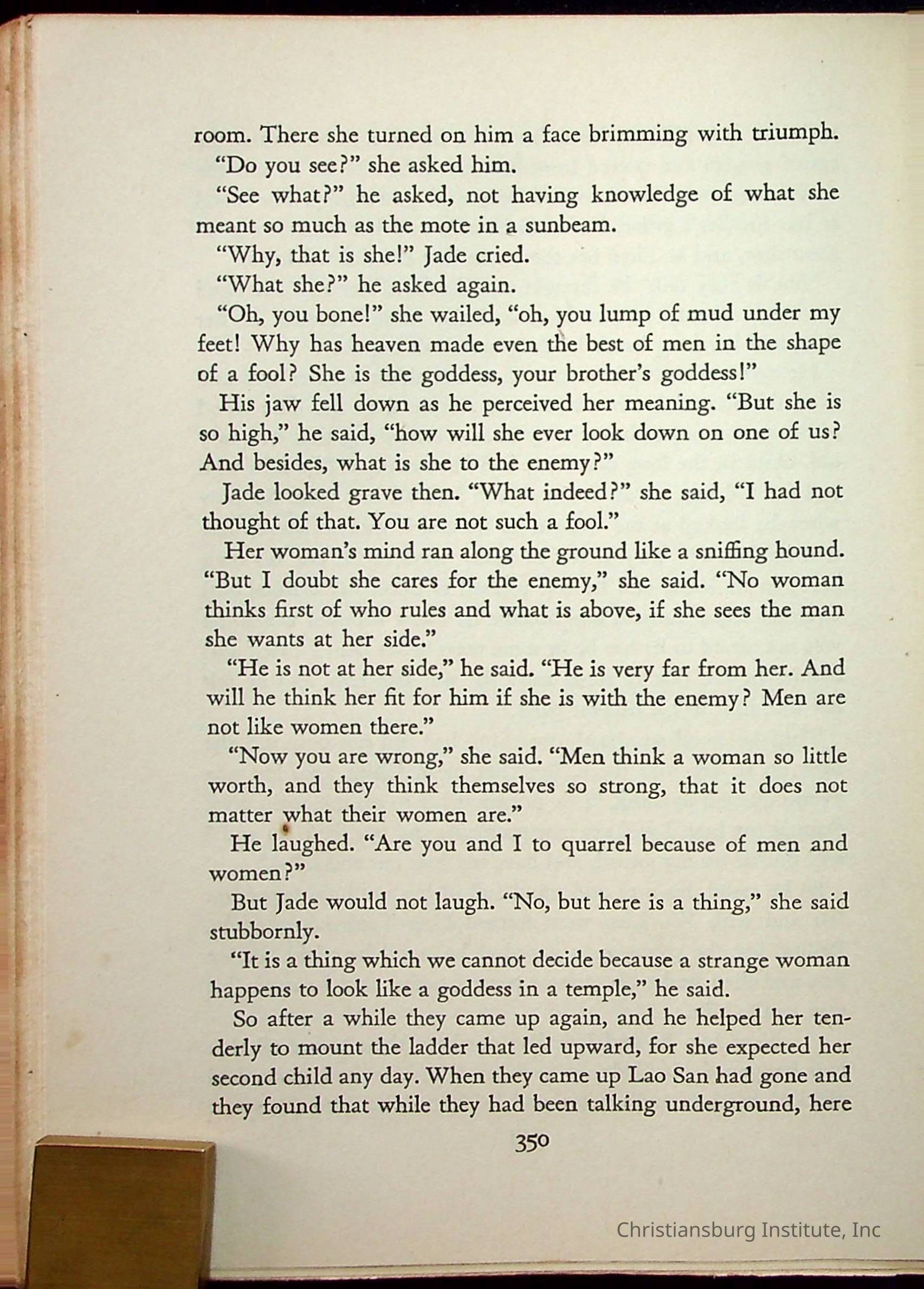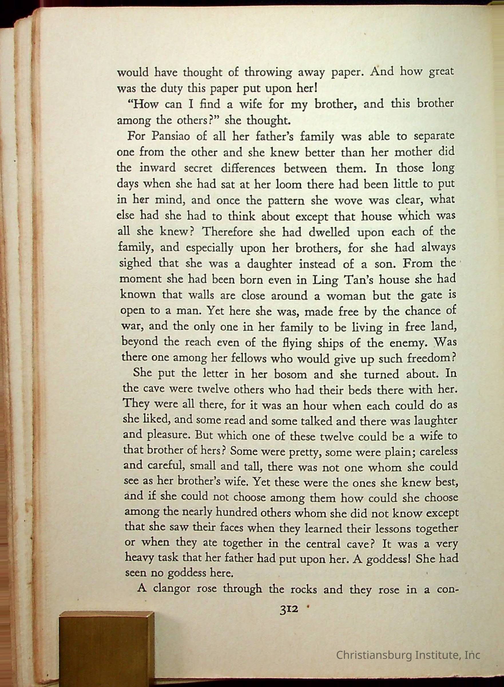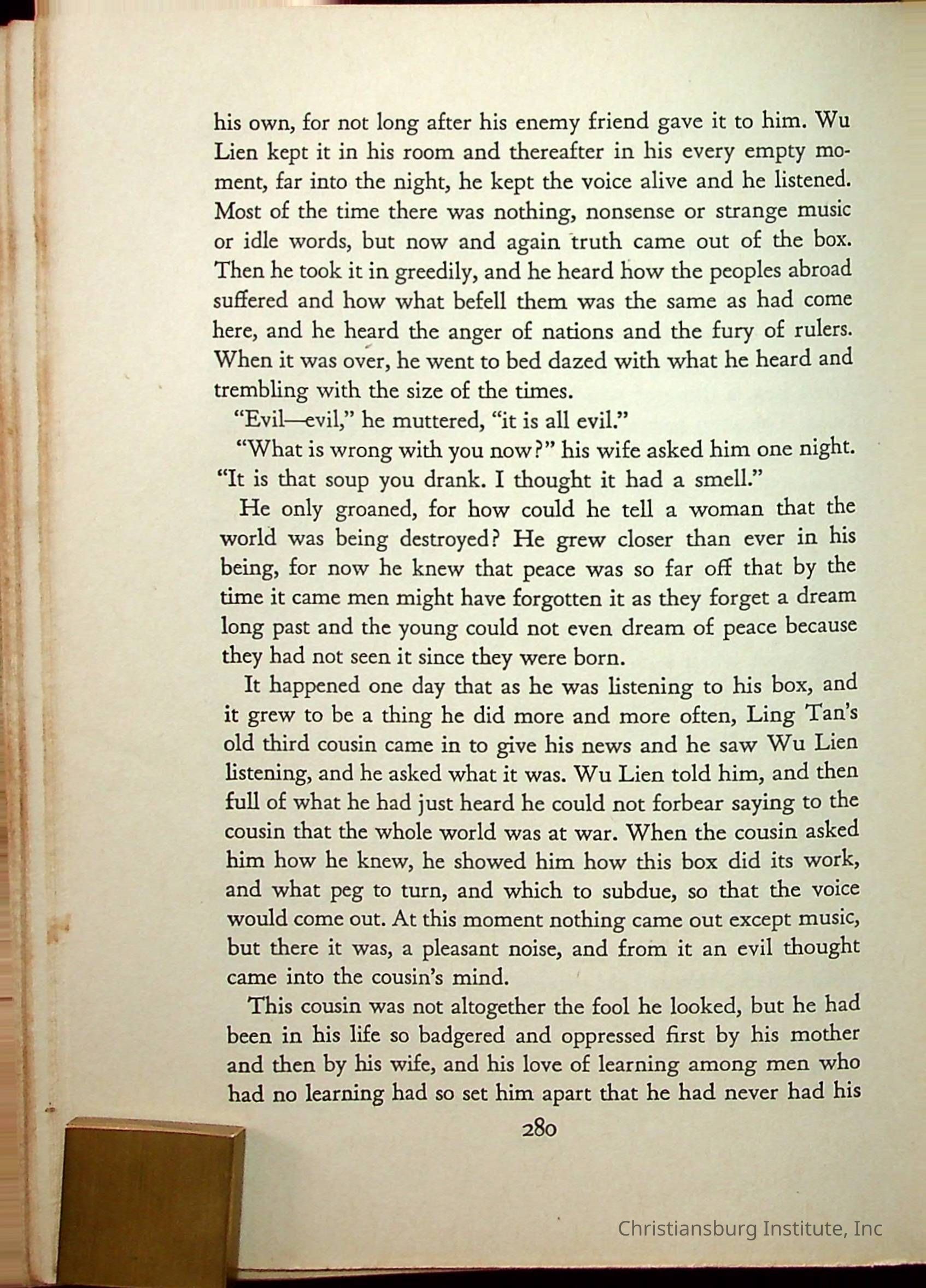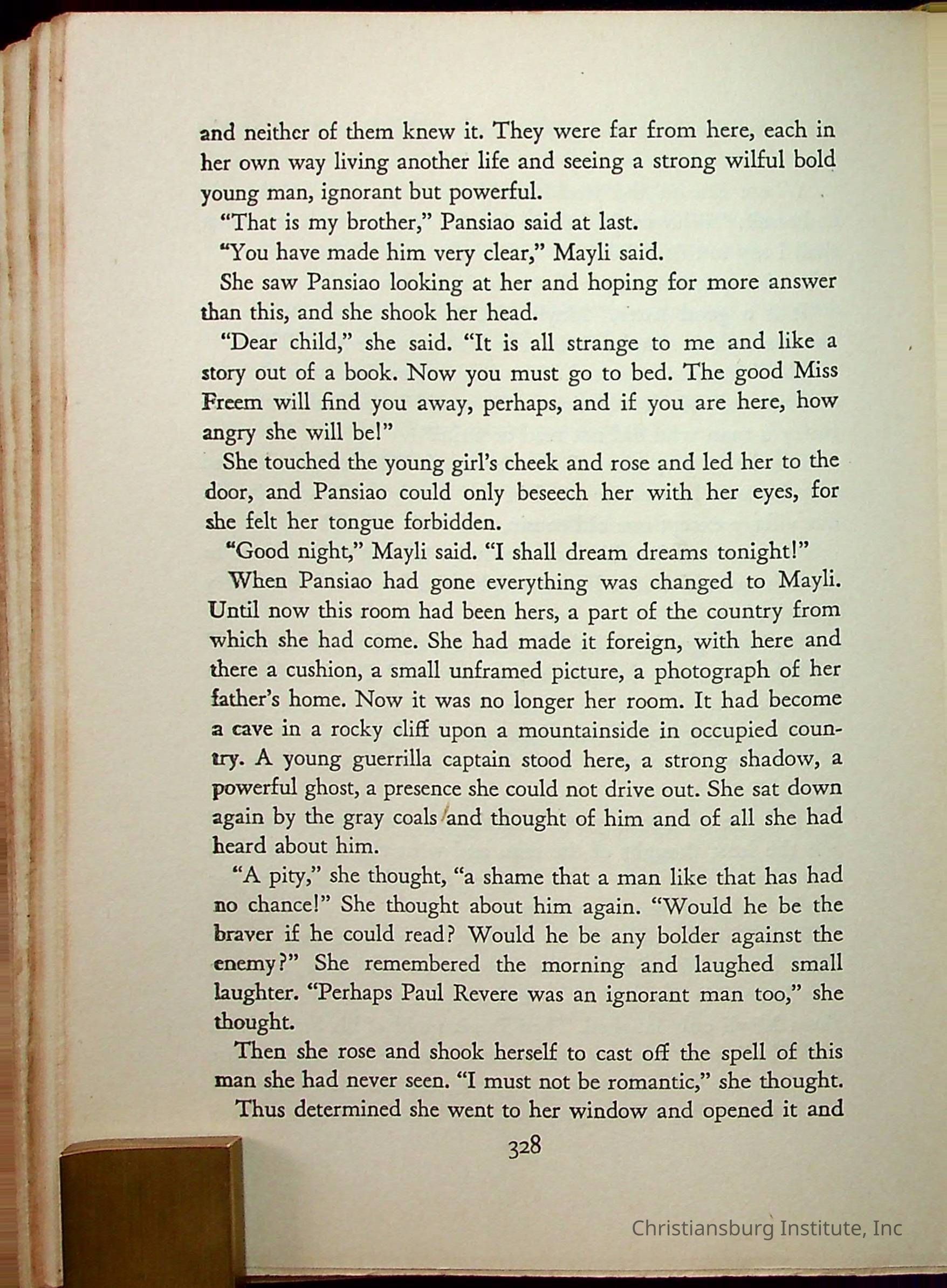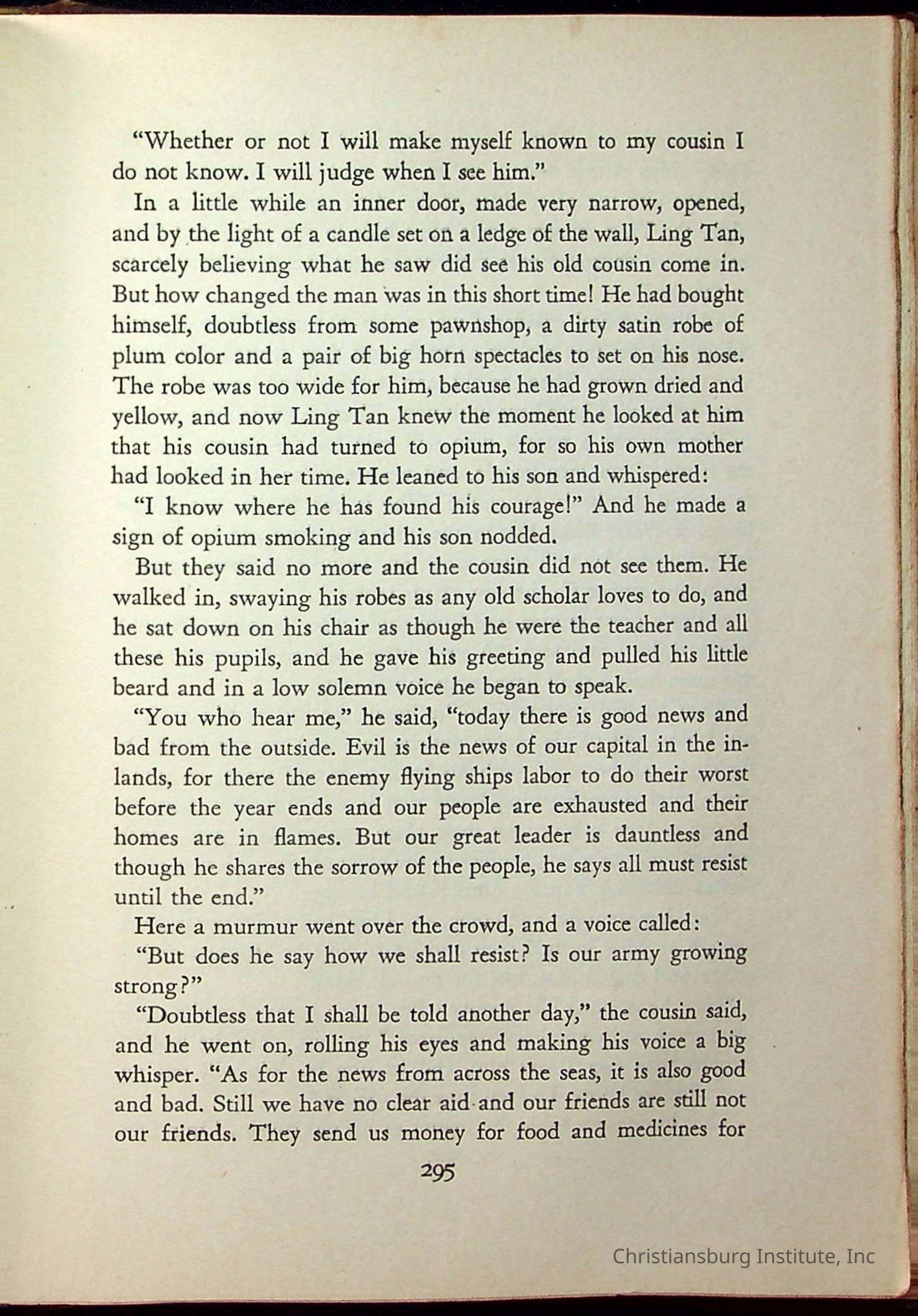 Dragon Seed, written by Pearl S. Buck and published in the year 1942. This book was used by Christiansburg Institute teacher, Viola Charlton in her class.Collection