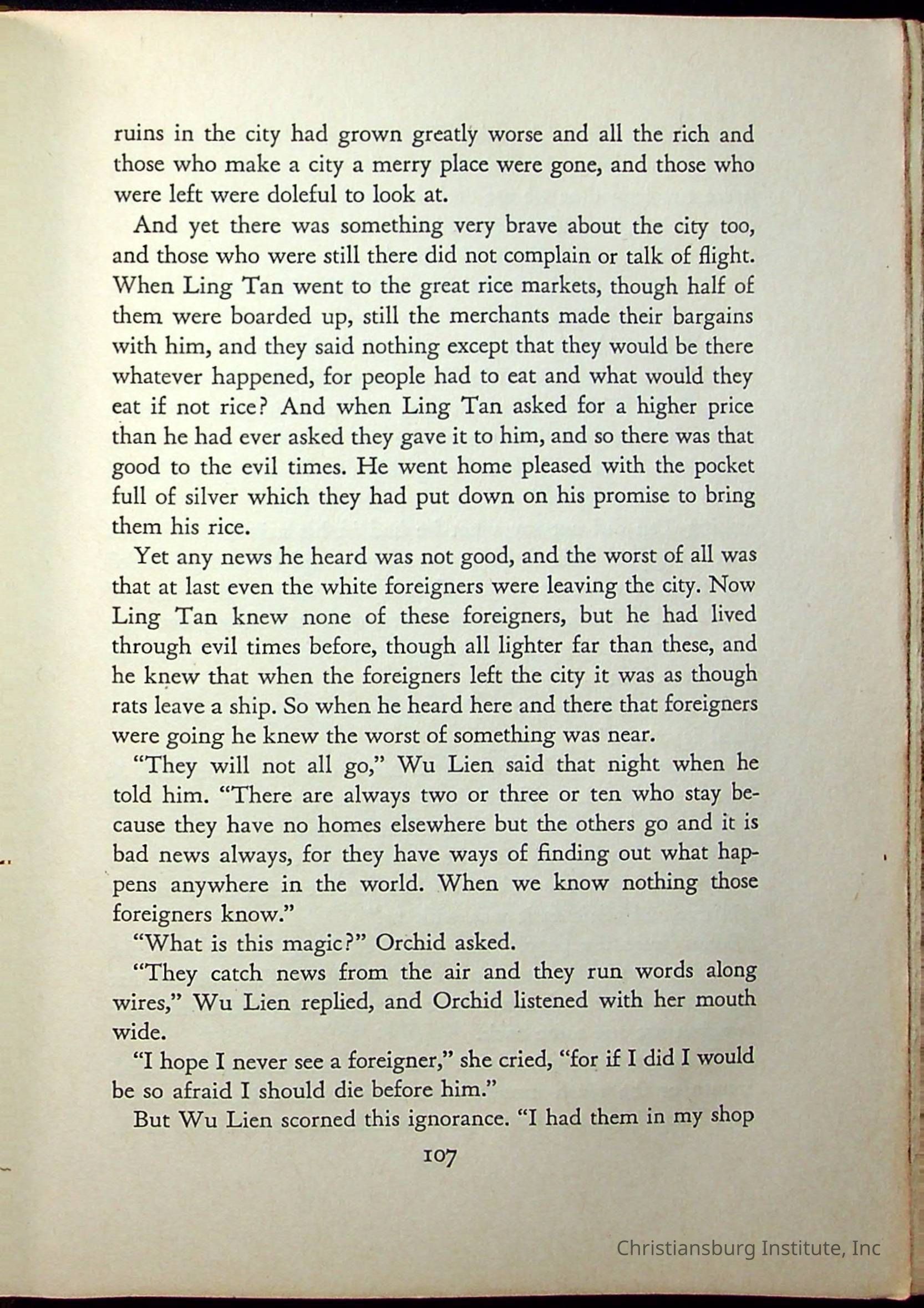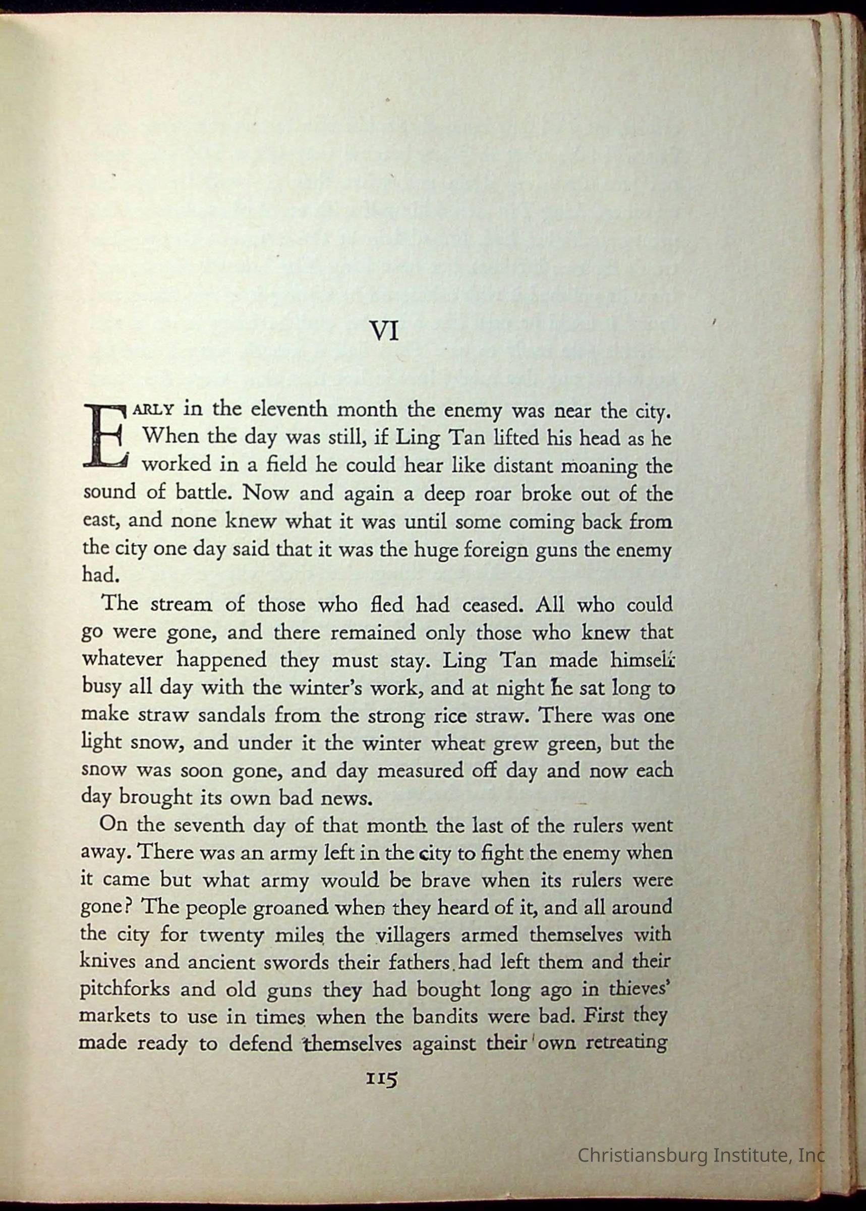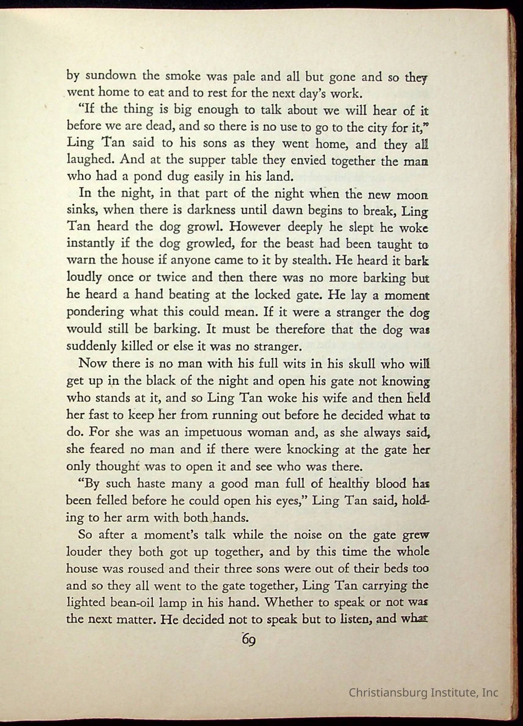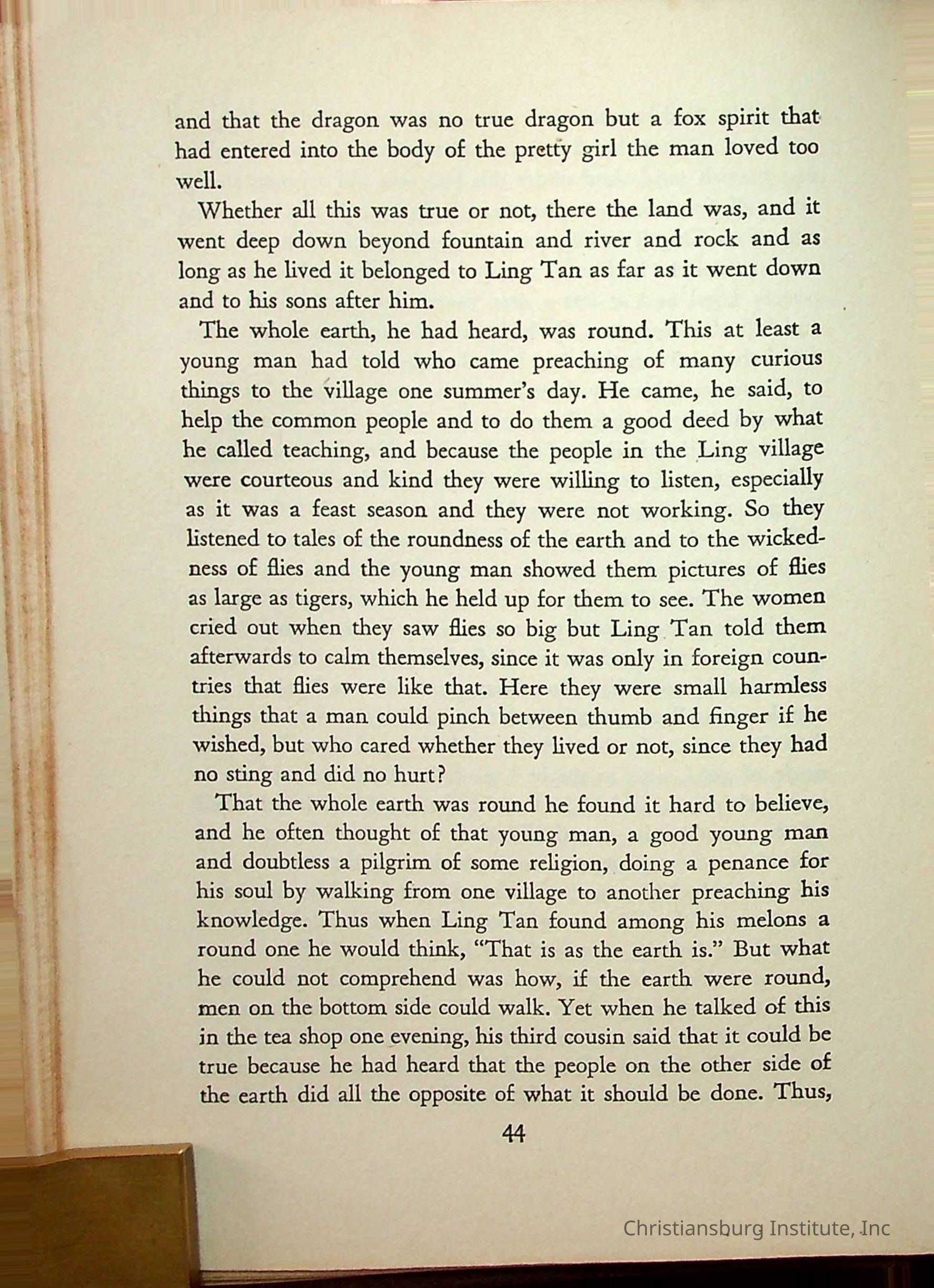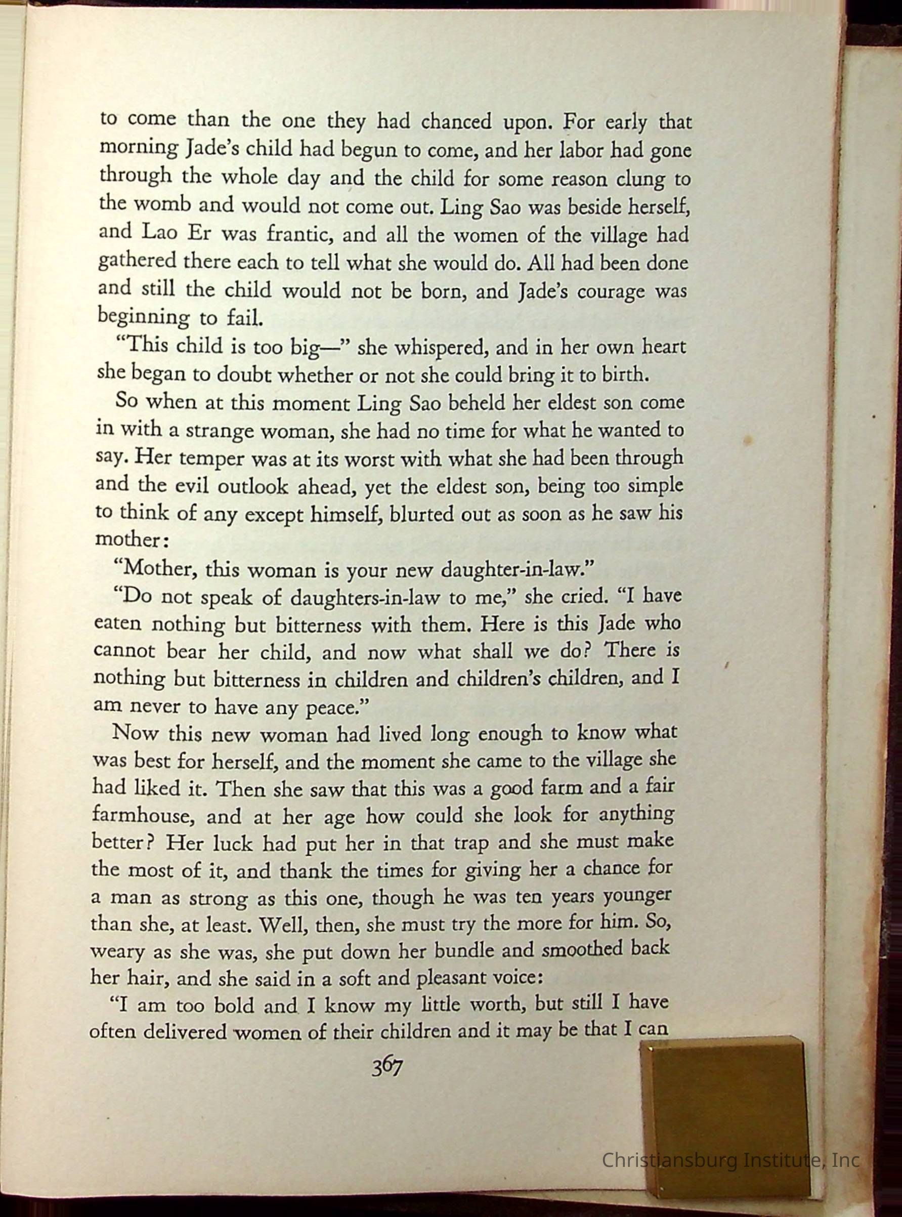 Dragon Seed, written by Pearl S. Buck and published in the year 1942. This book was used by Christiansburg Institute teacher, Viola Charlton in her class.Collection