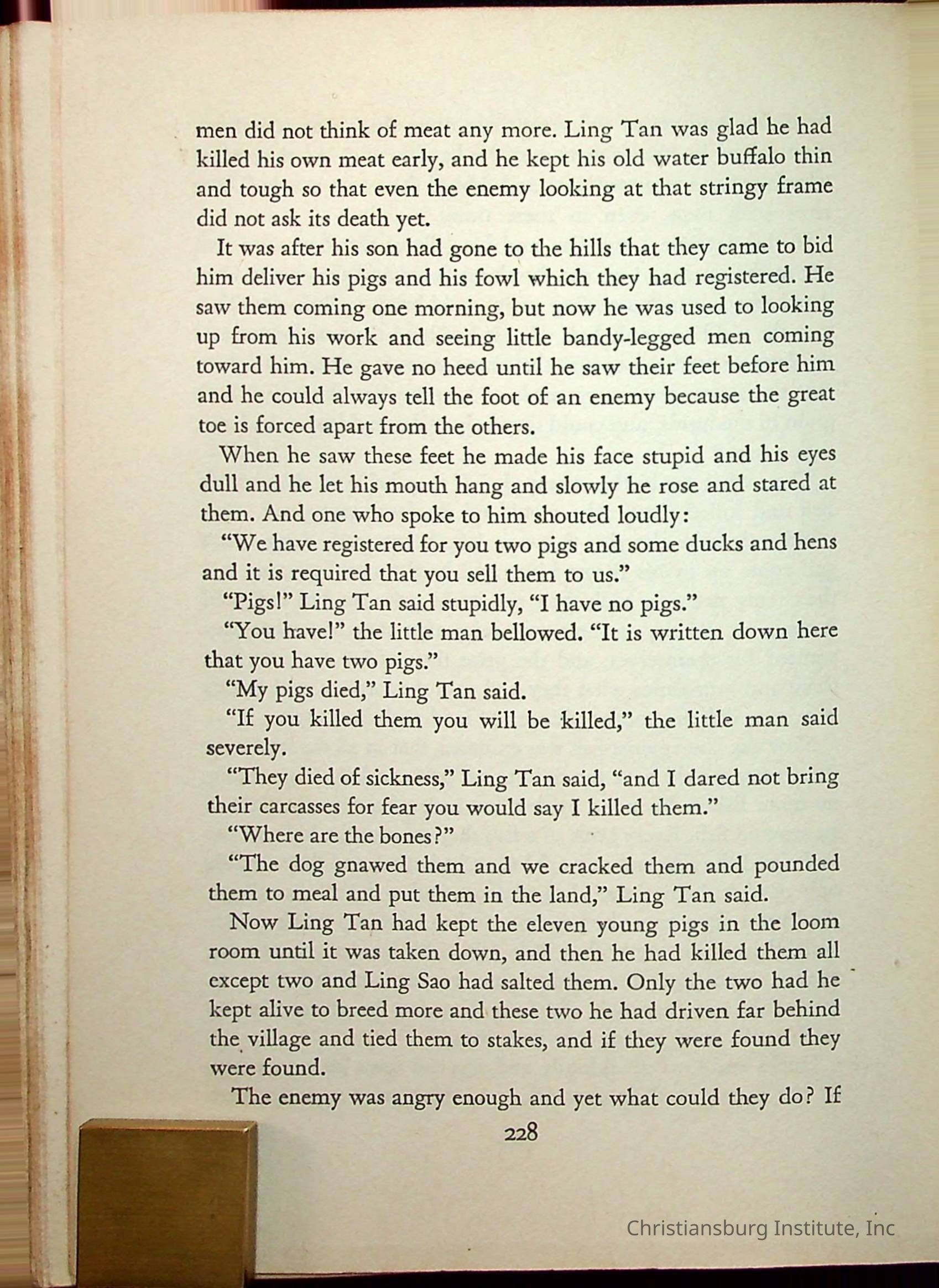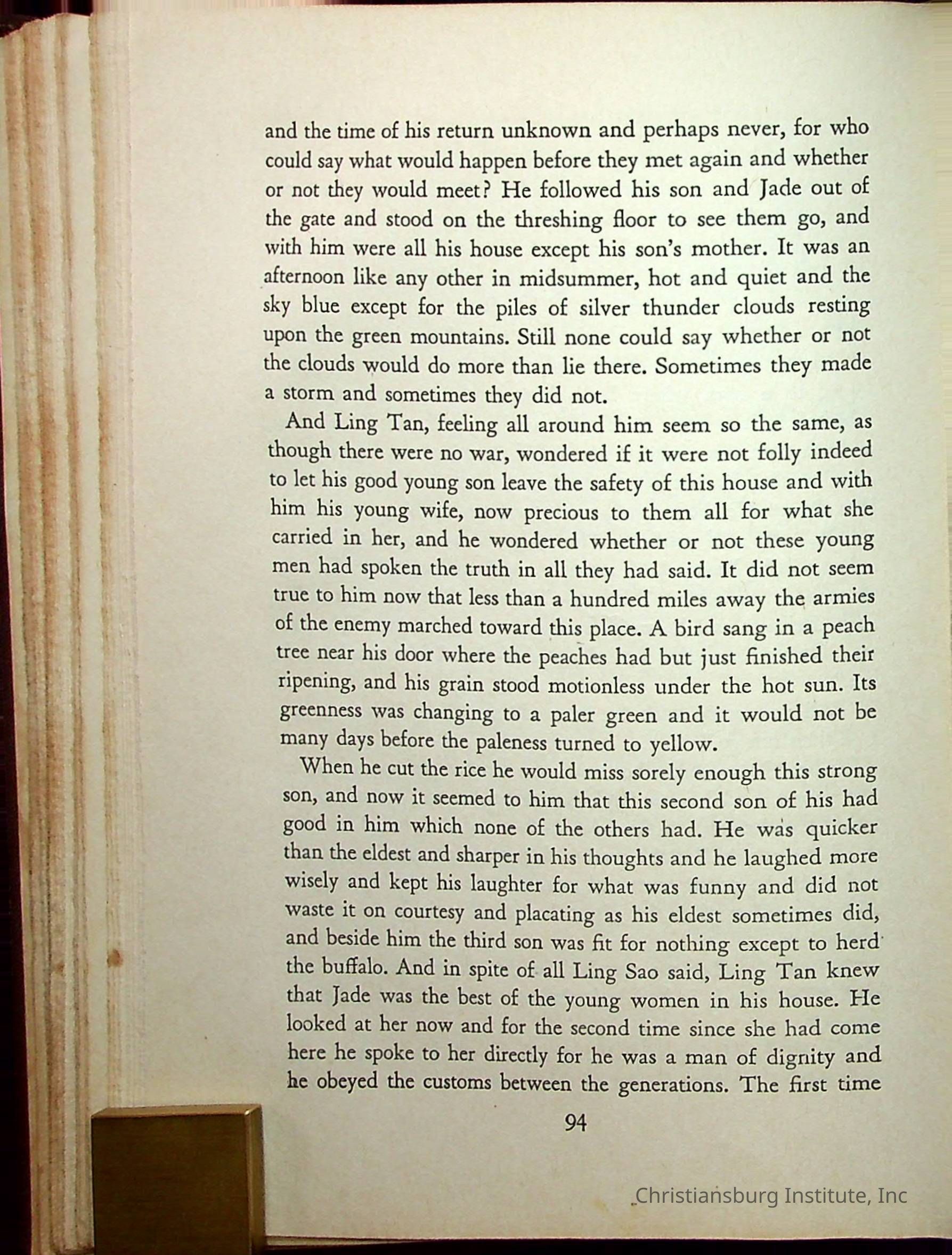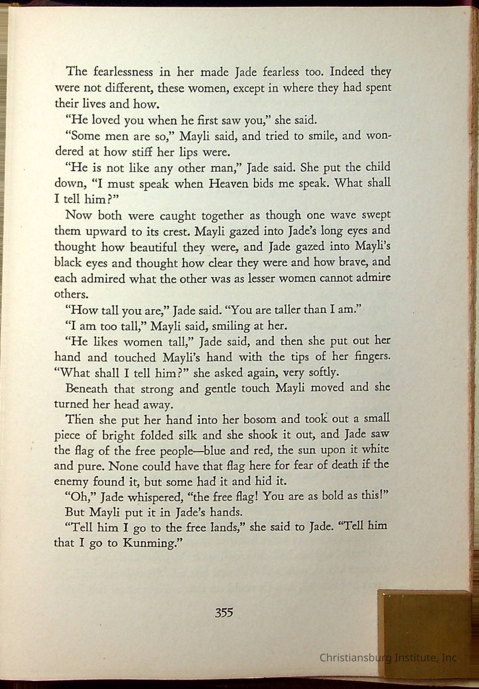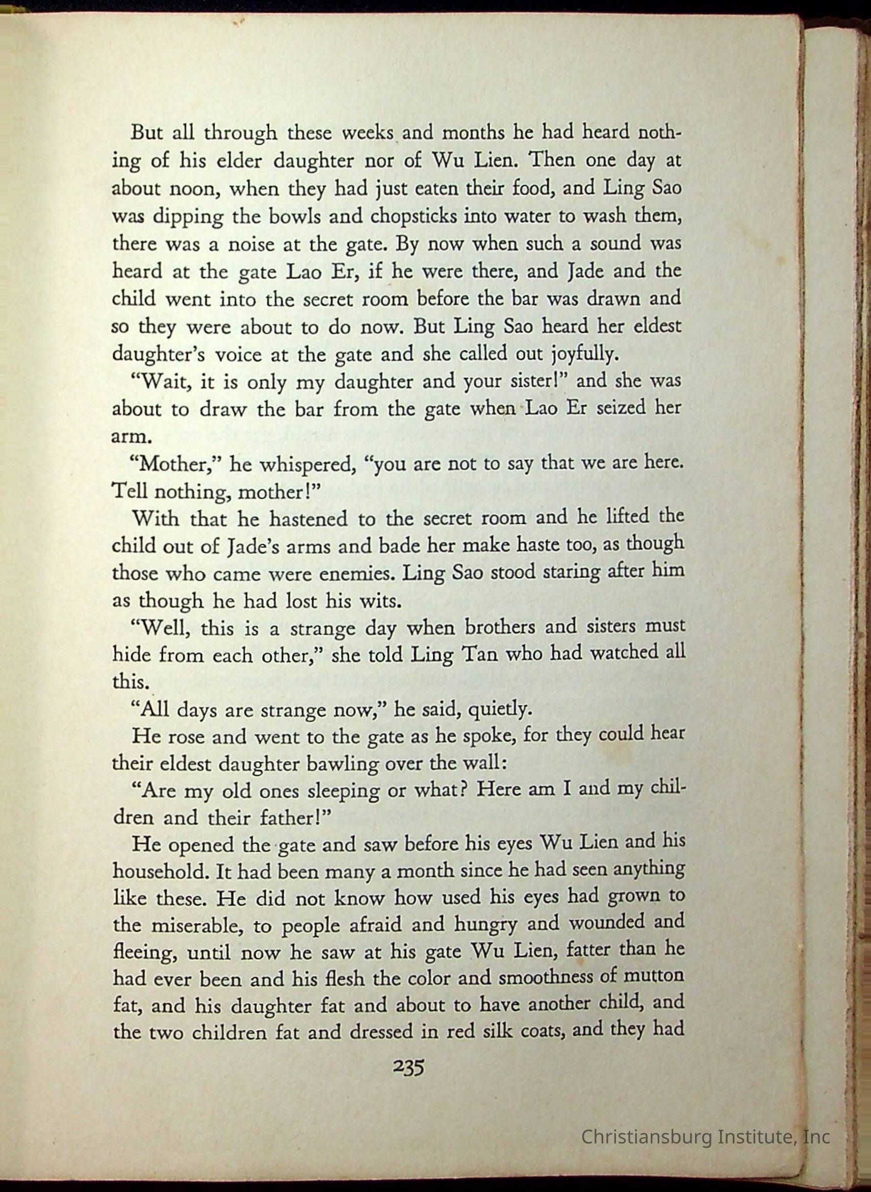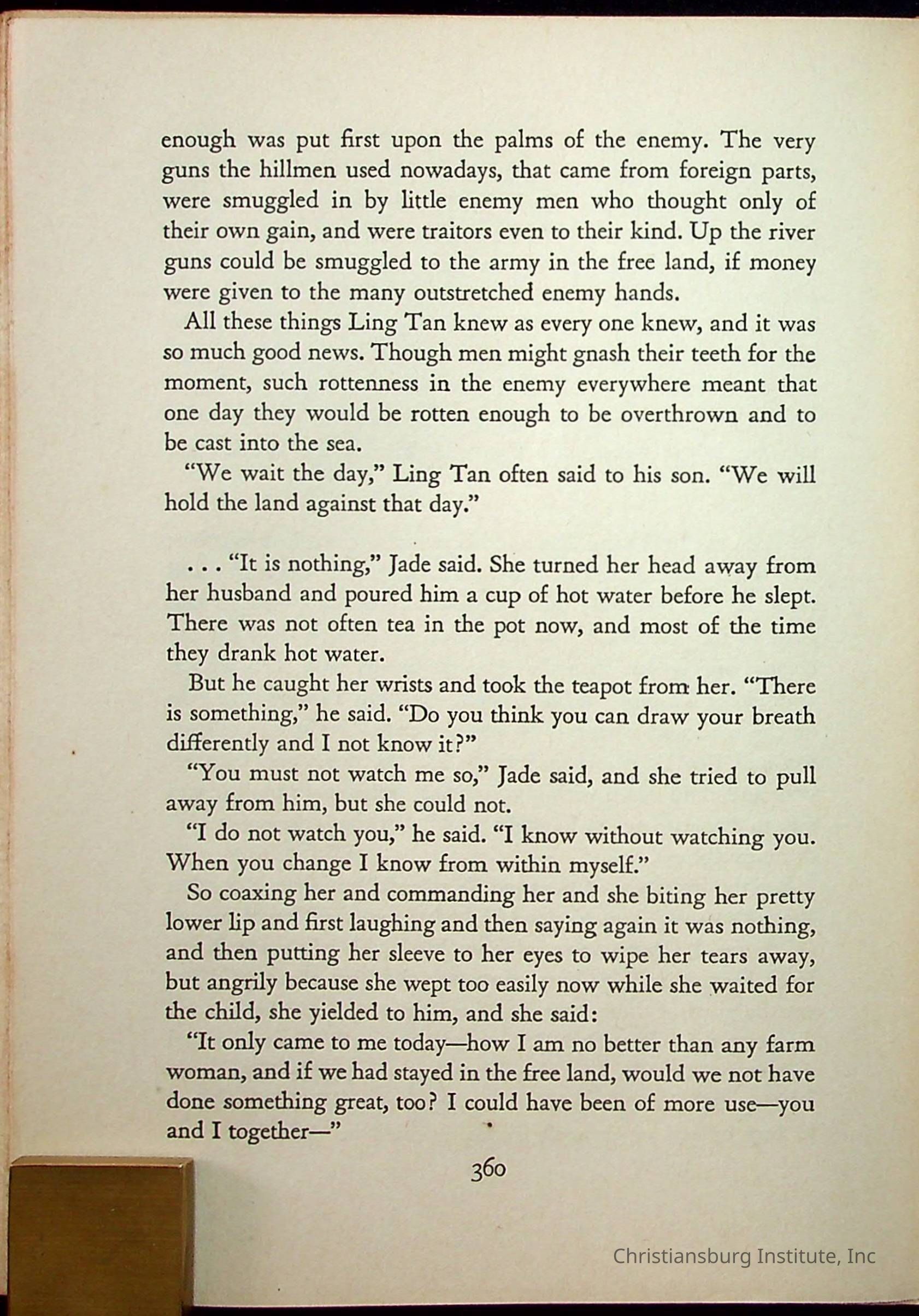 Dragon Seed, written by Pearl S. Buck and published in the year 1942. This book was used by Christiansburg Institute teacher, Viola Charlton in her class.Collection