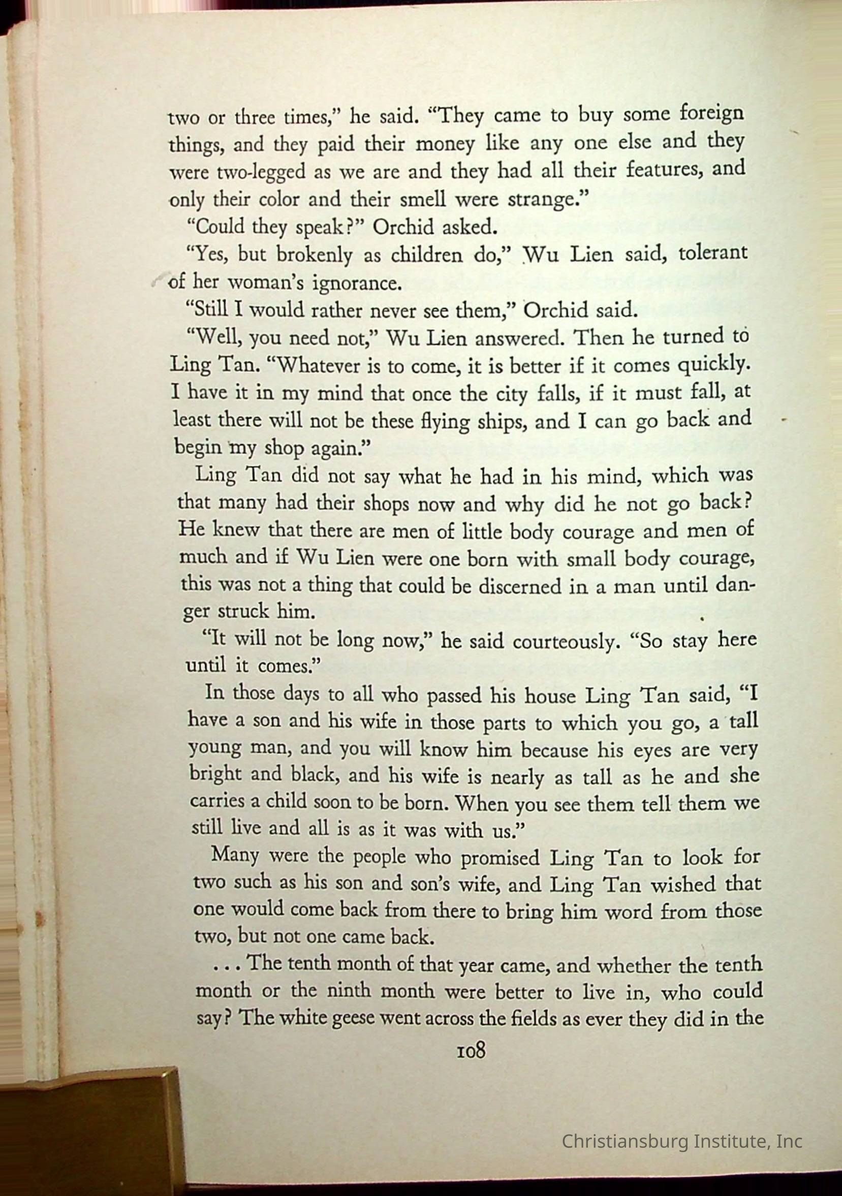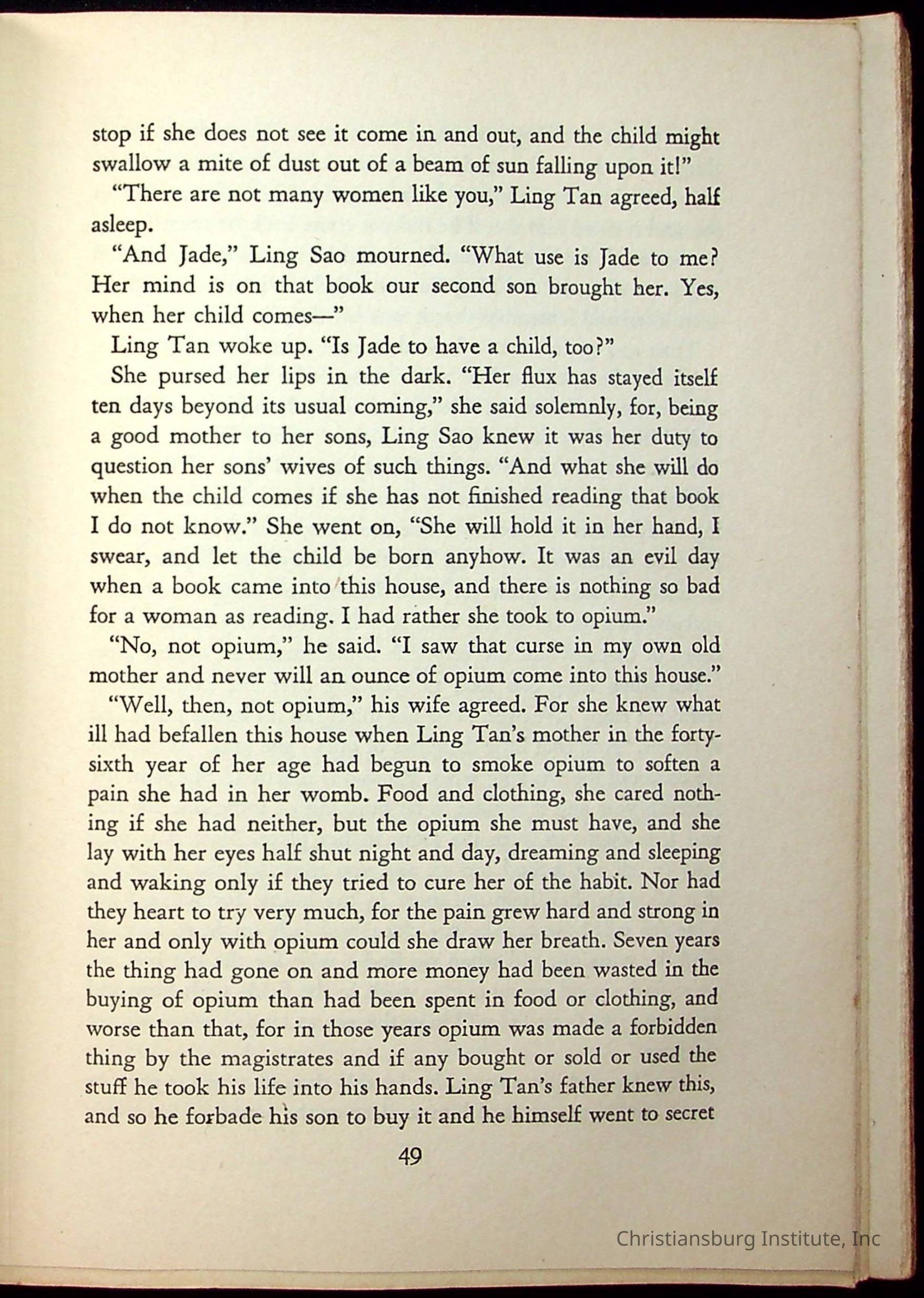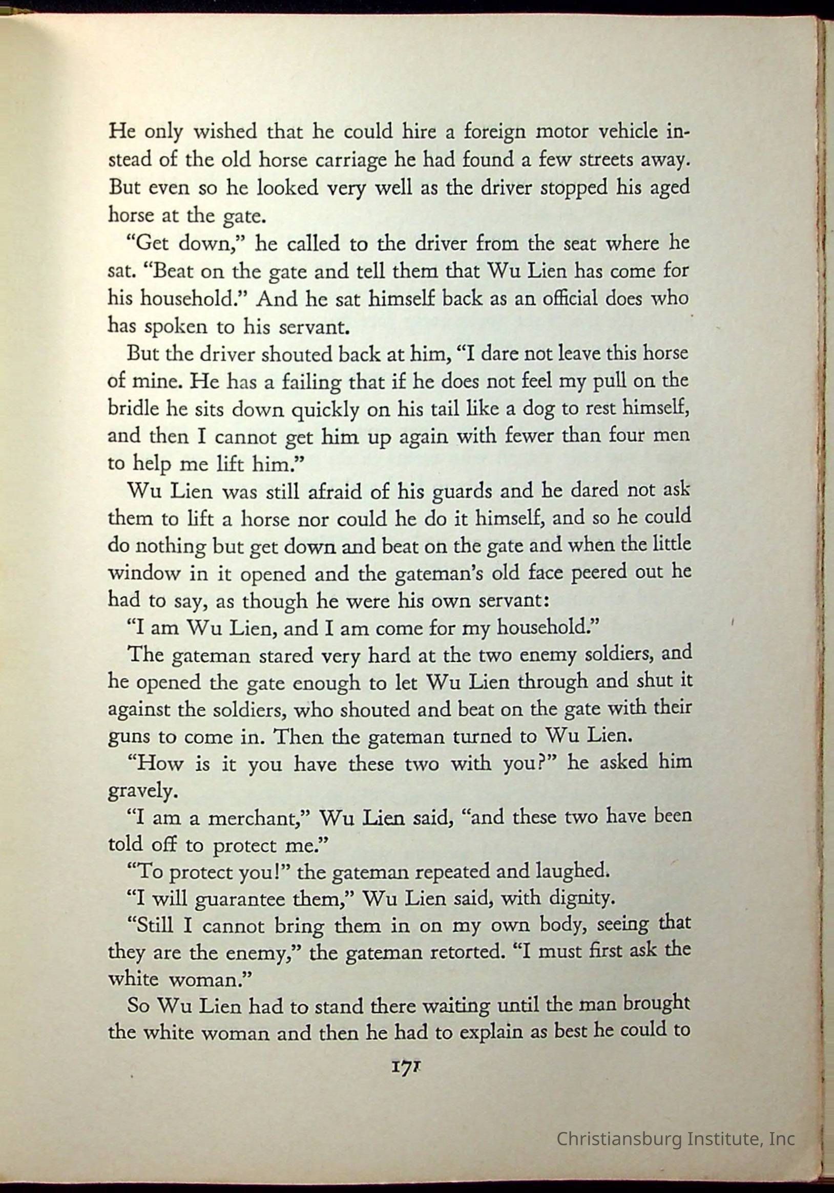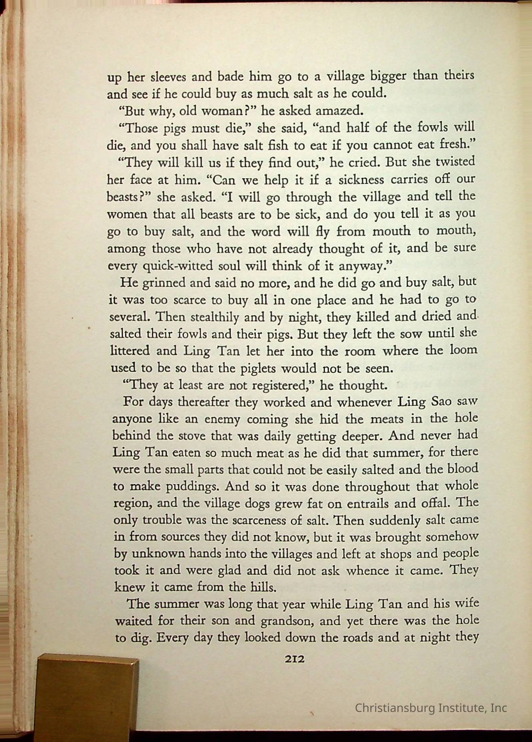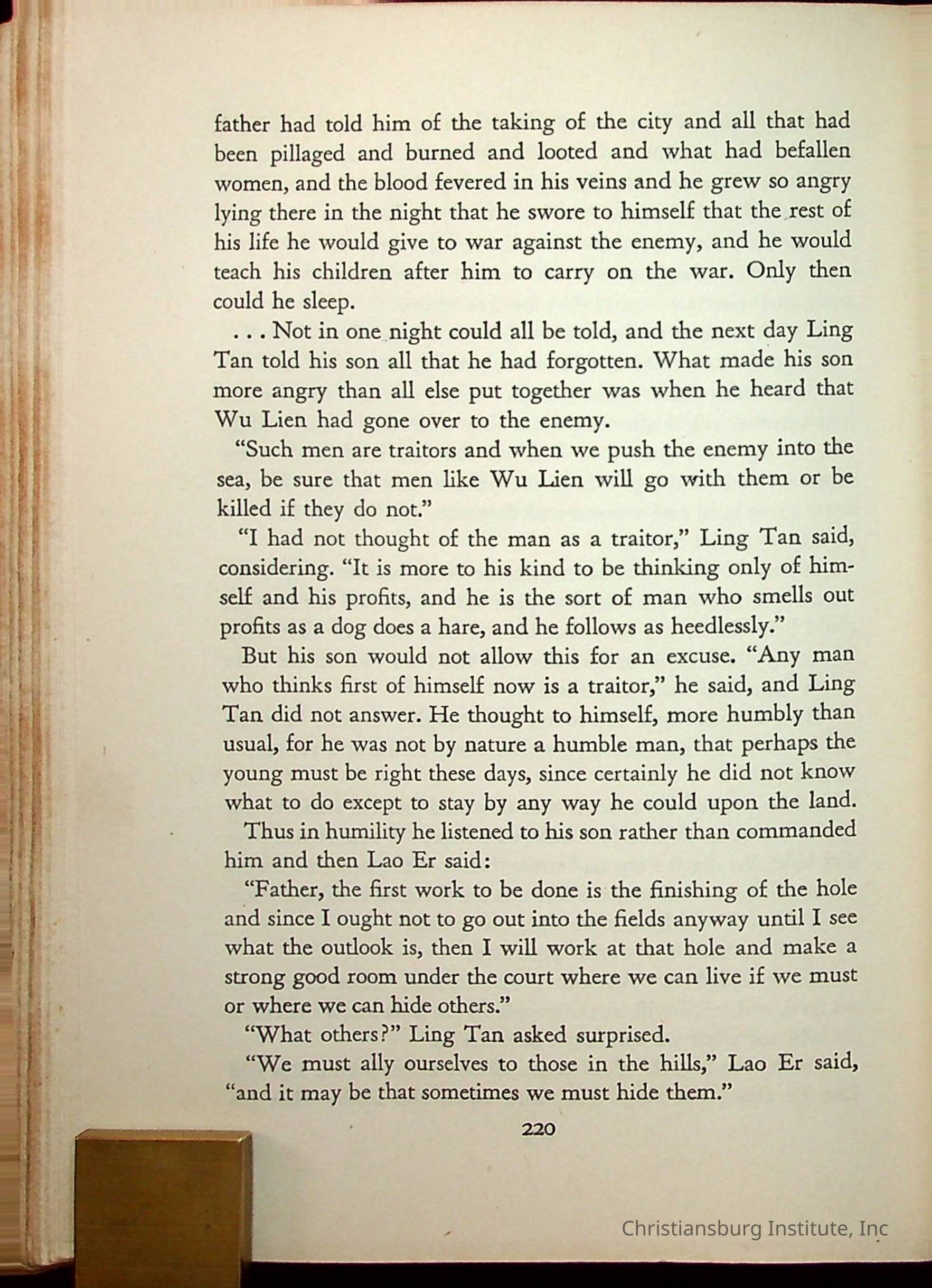 Dragon Seed, written by Pearl S. Buck and published in the year 1942. This book was used by Christiansburg Institute teacher, Viola Charlton in her class.Collection