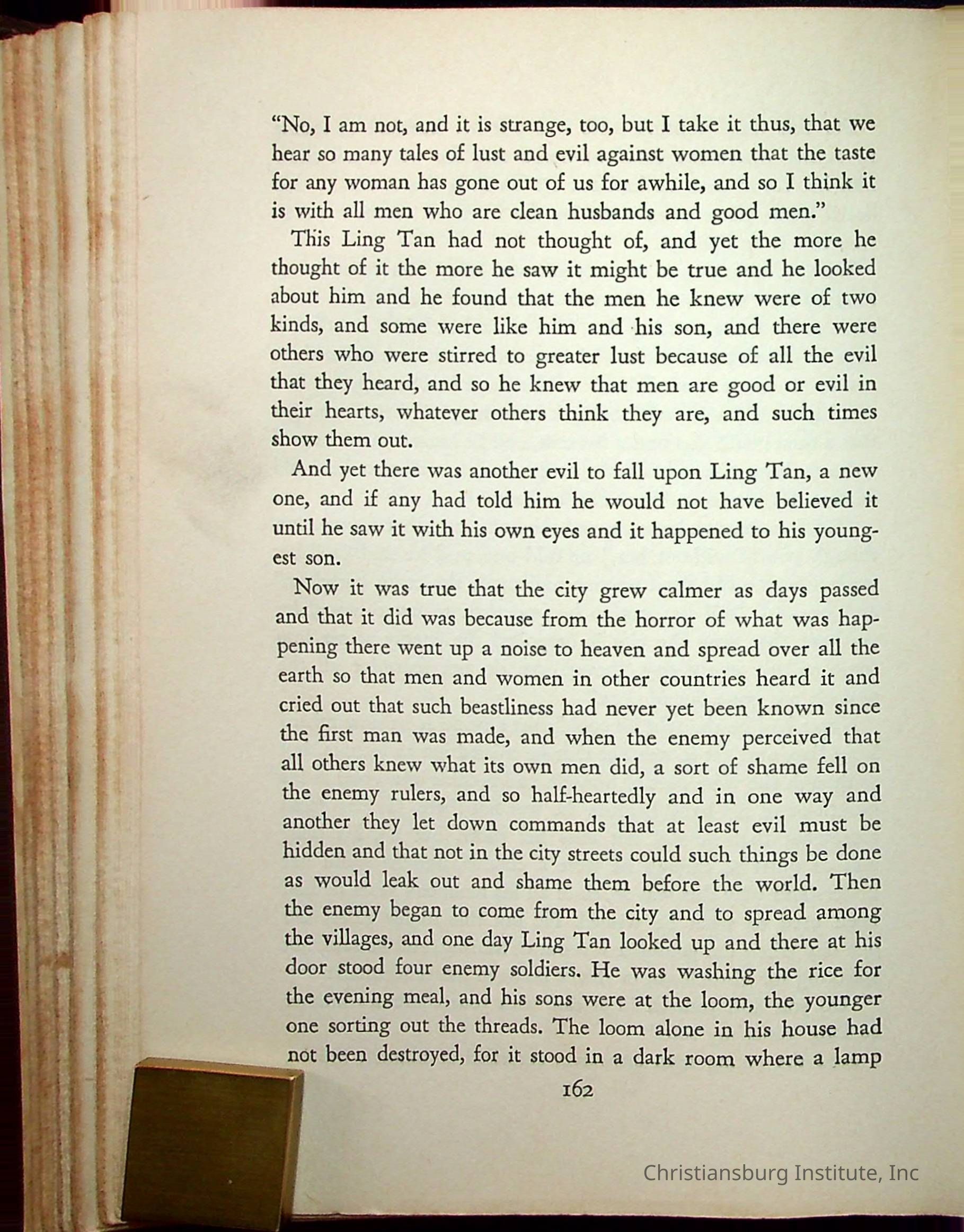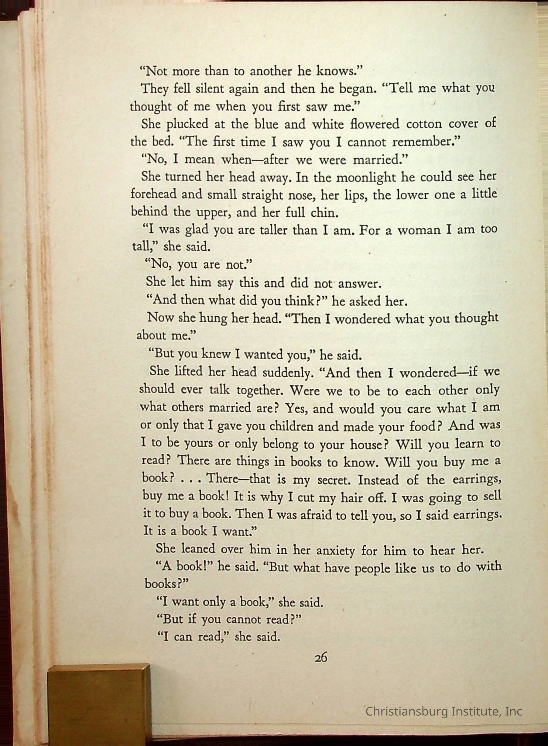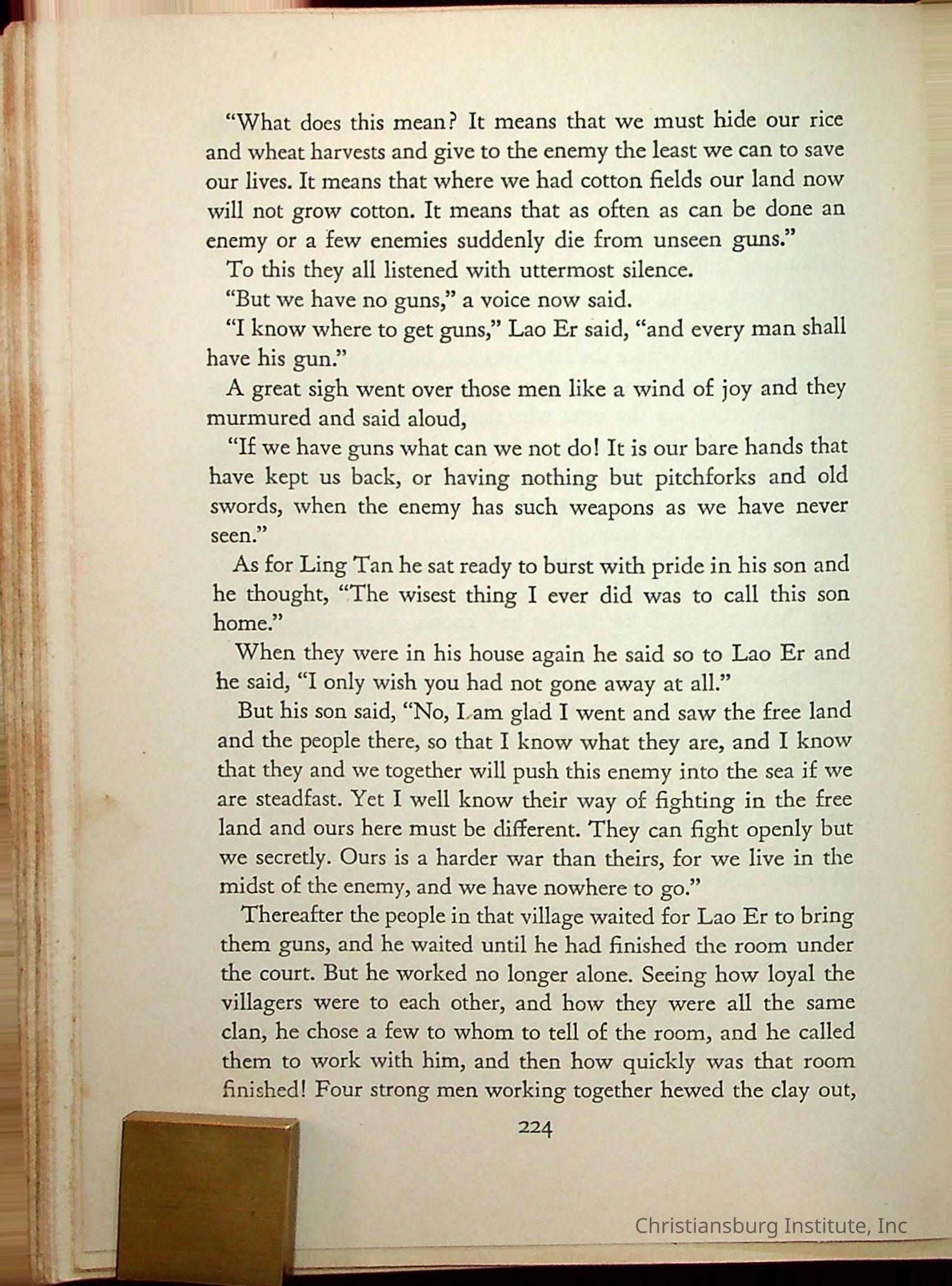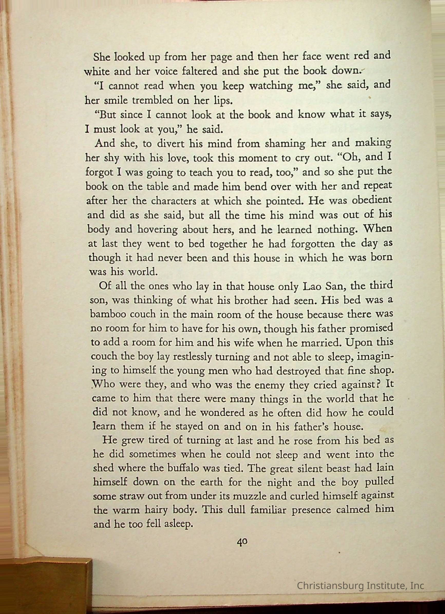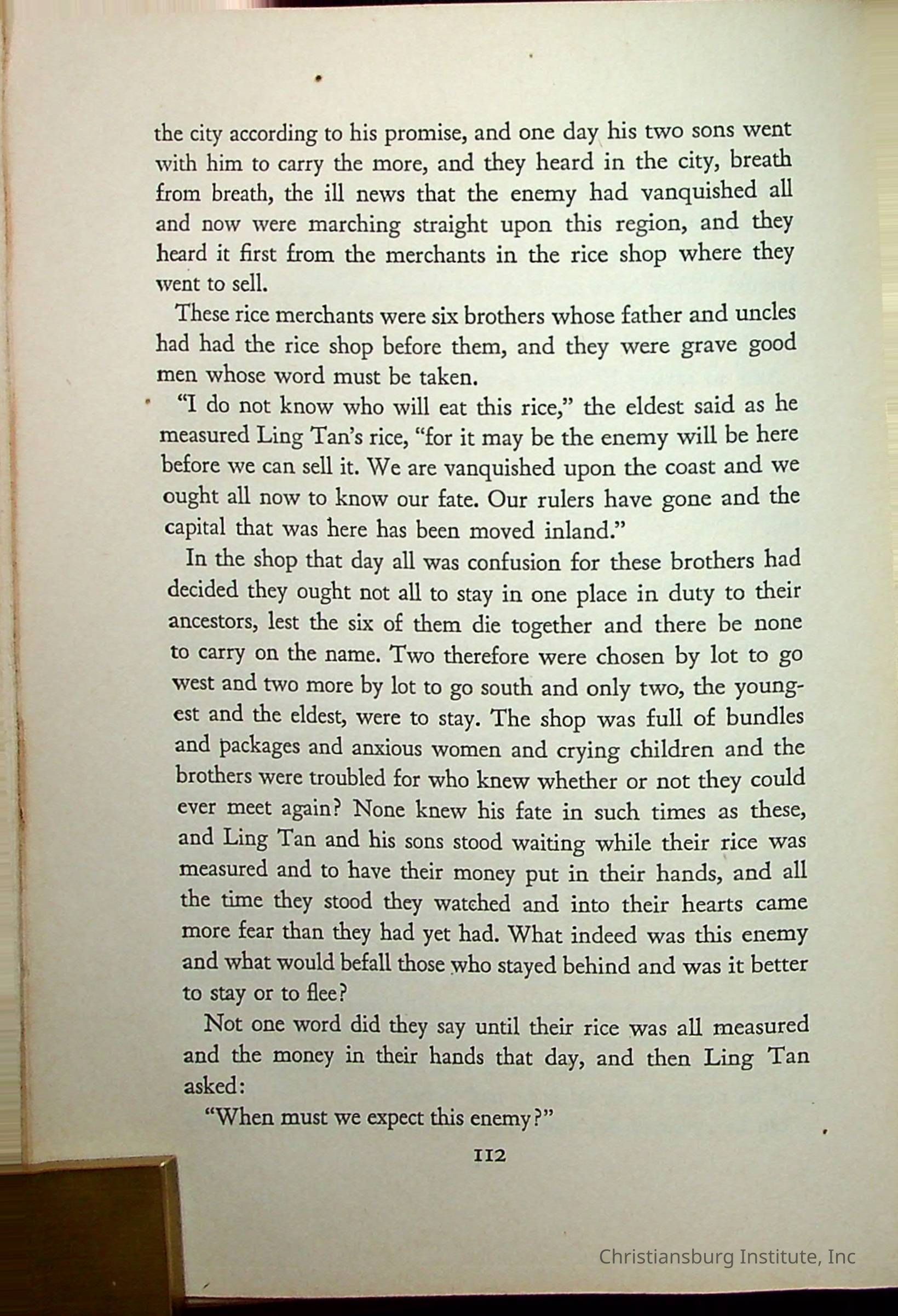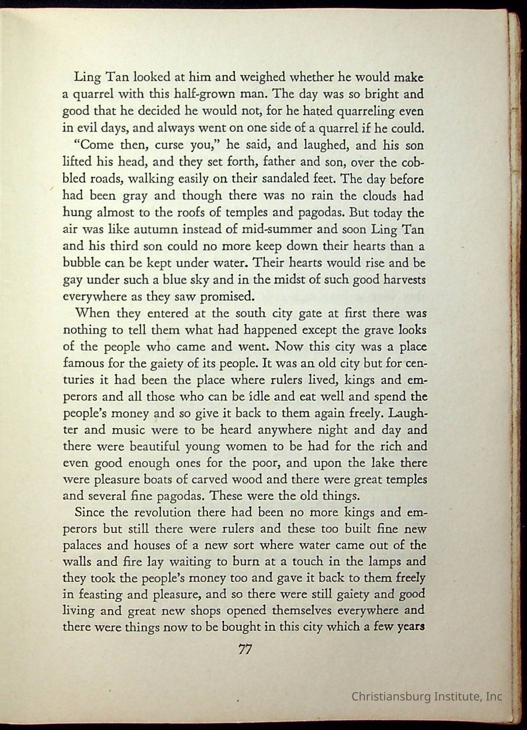 Dragon Seed, written by Pearl S. Buck and published in the year 1942. This book was used by Christiansburg Institute teacher, Viola Charlton in her class.Collection