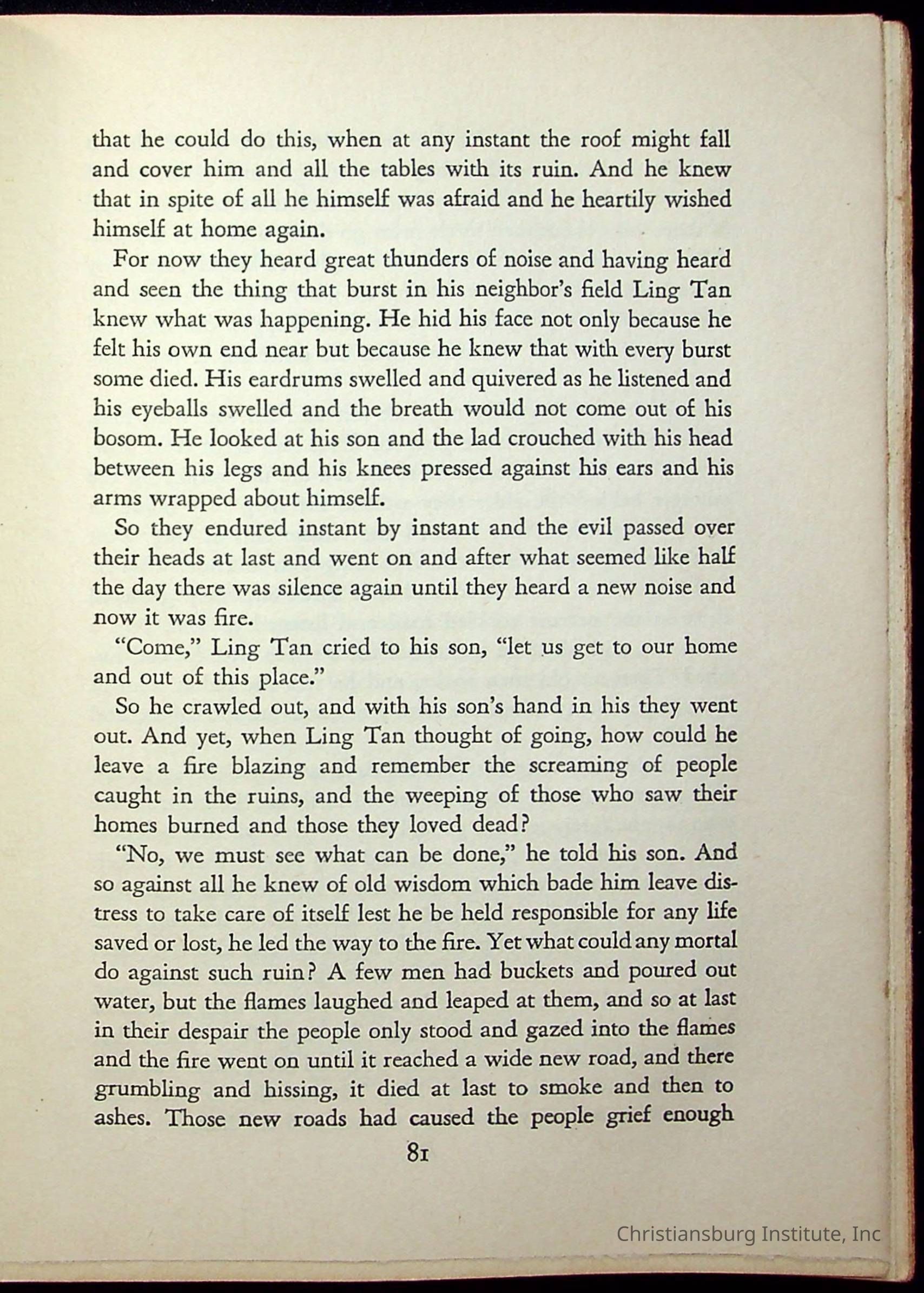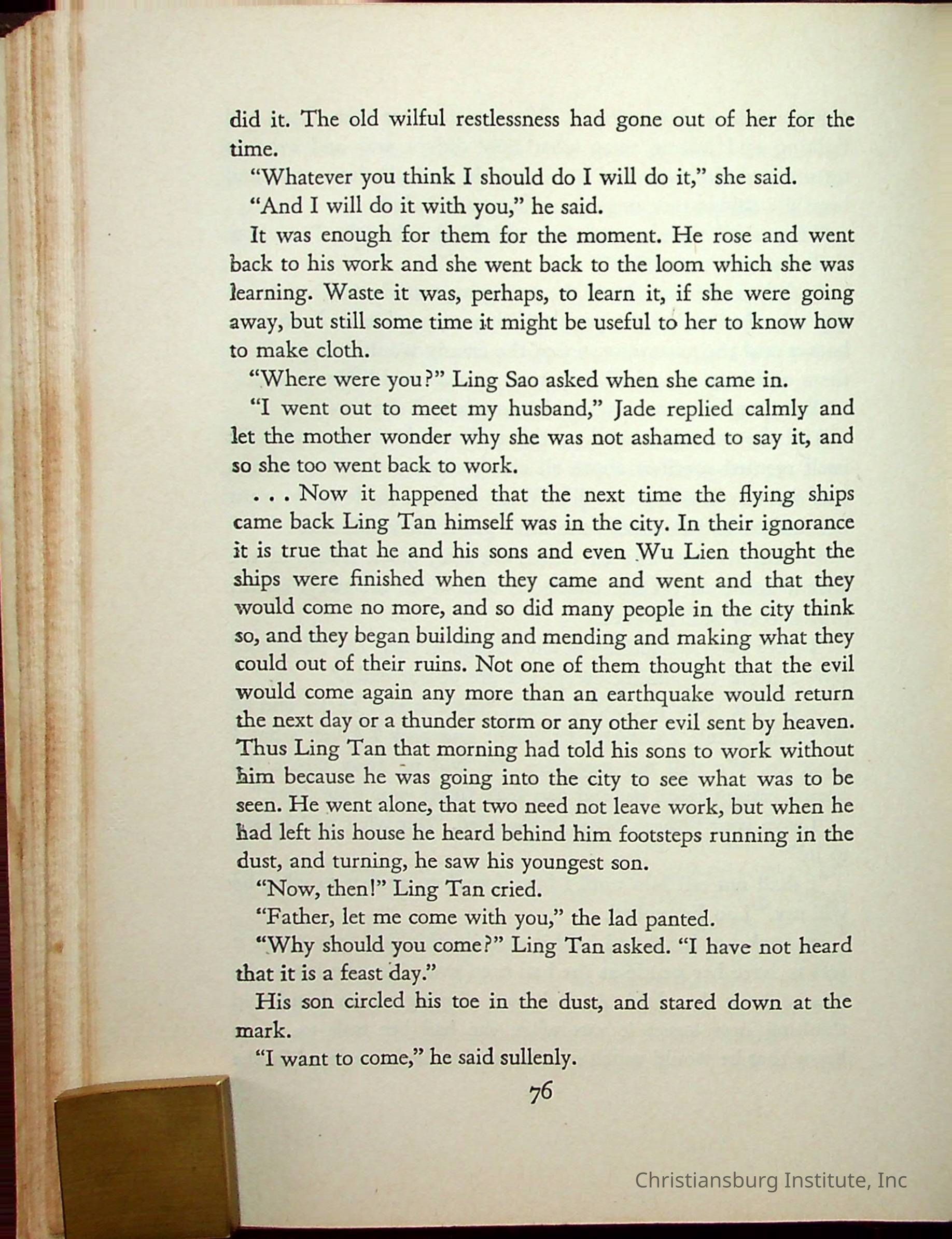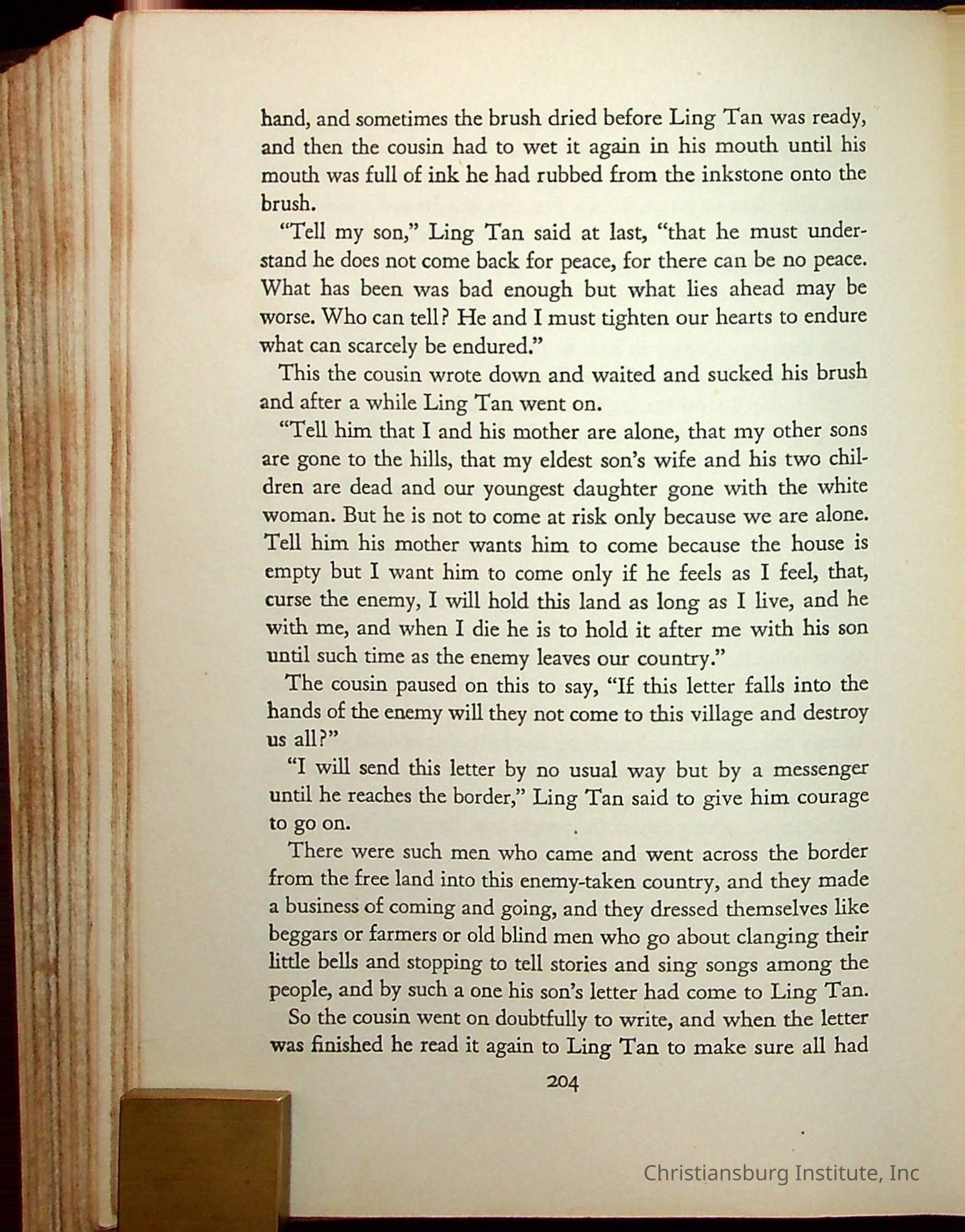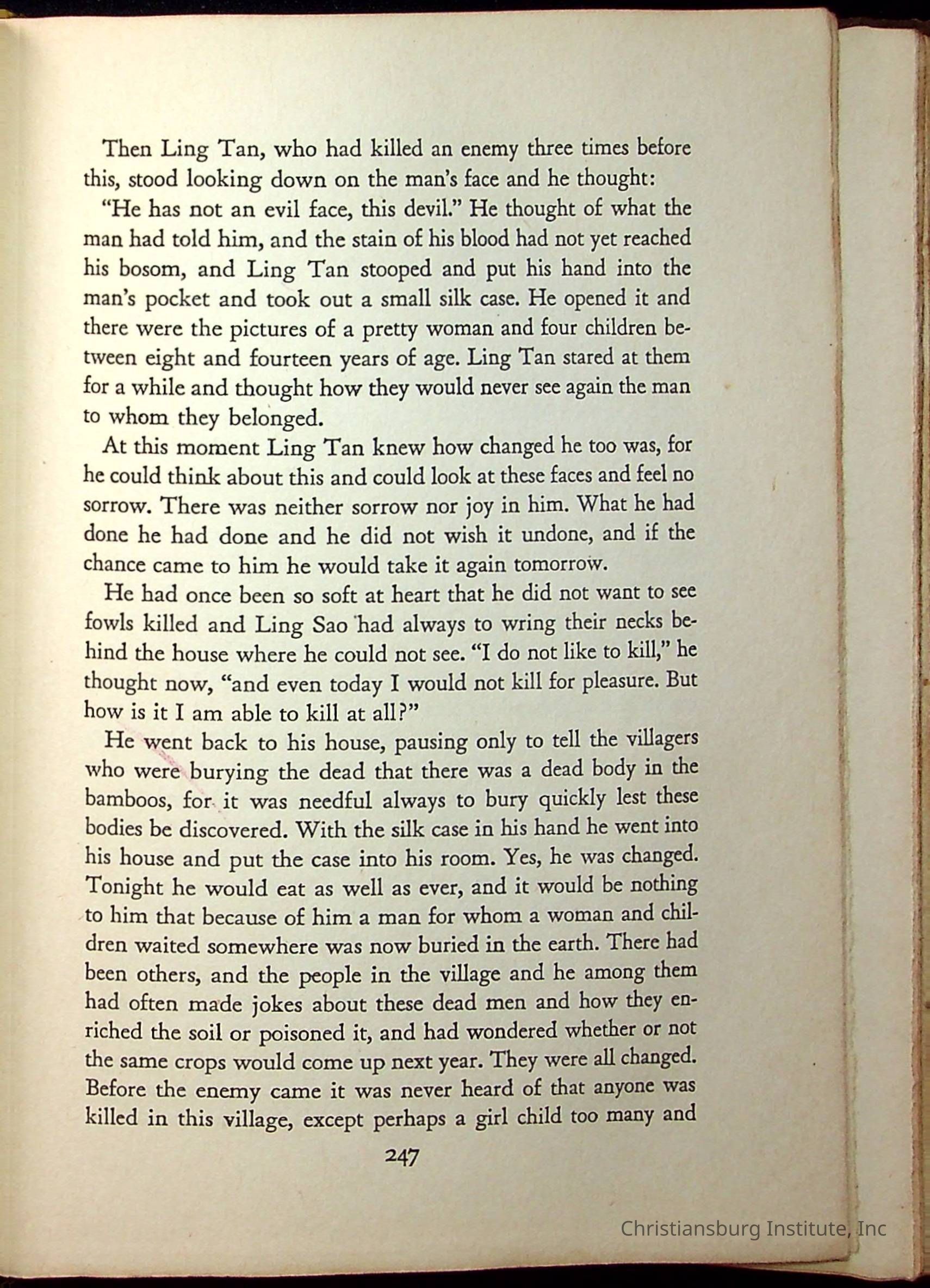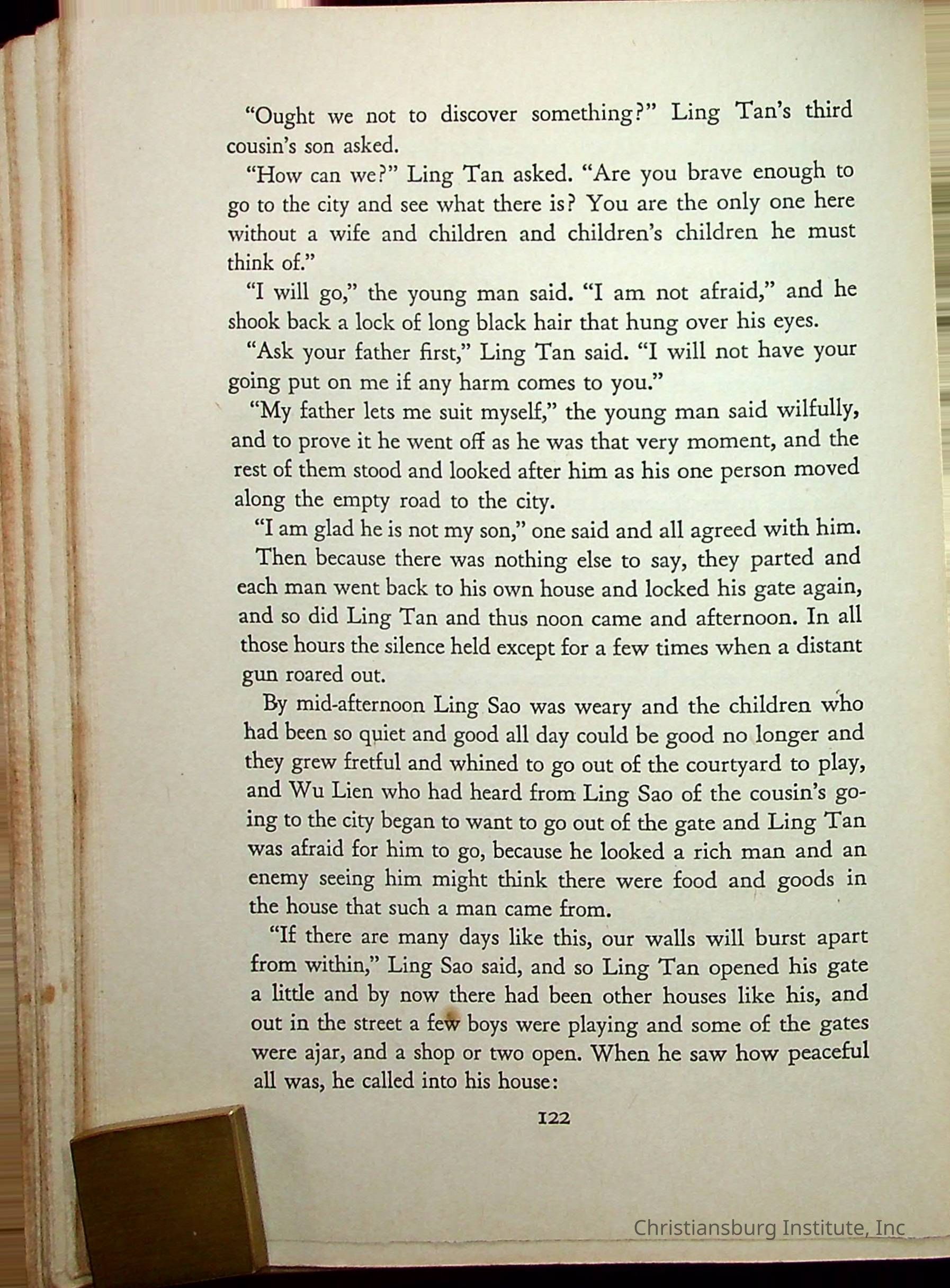 Dragon Seed, written by Pearl S. Buck and published in the year 1942. This book was used by Christiansburg Institute teacher, Viola Charlton in her class.Collection