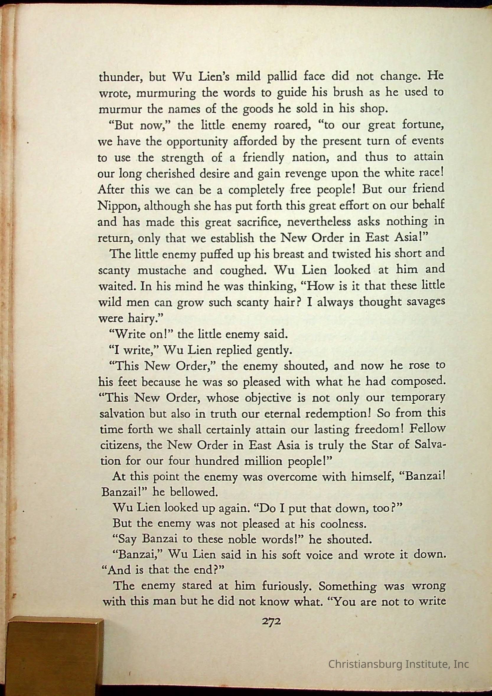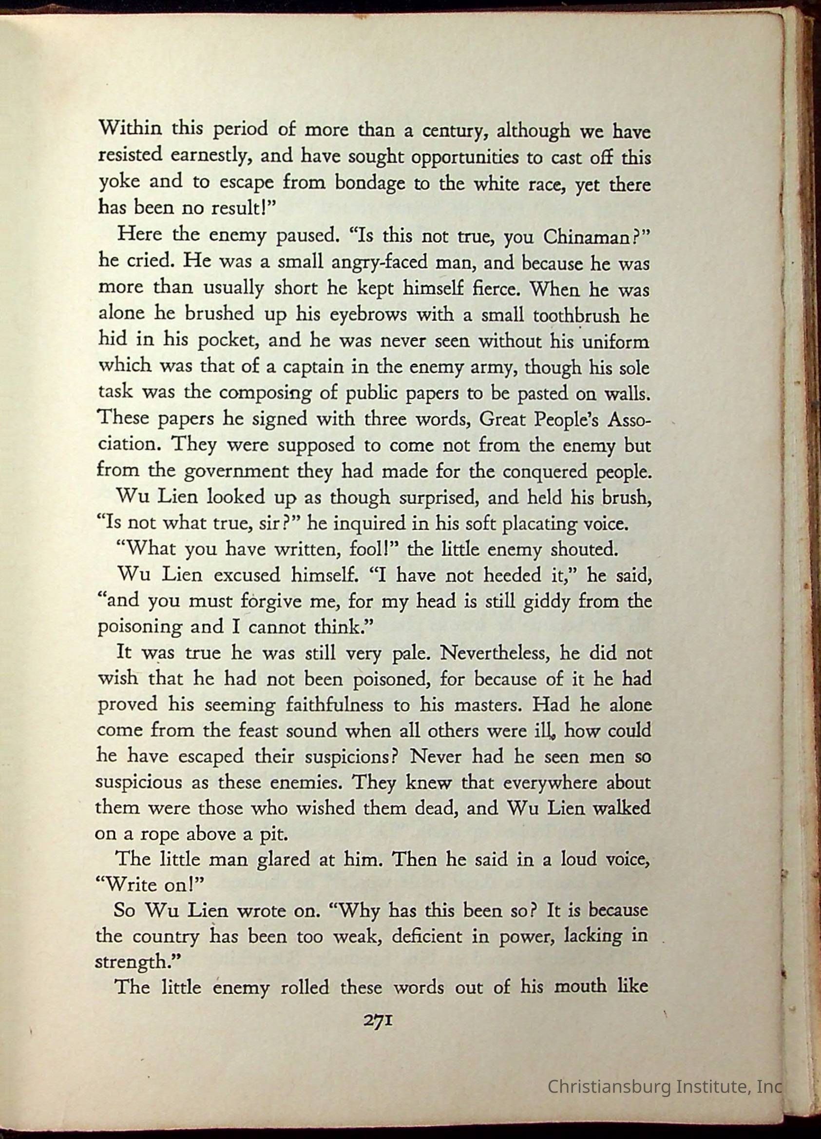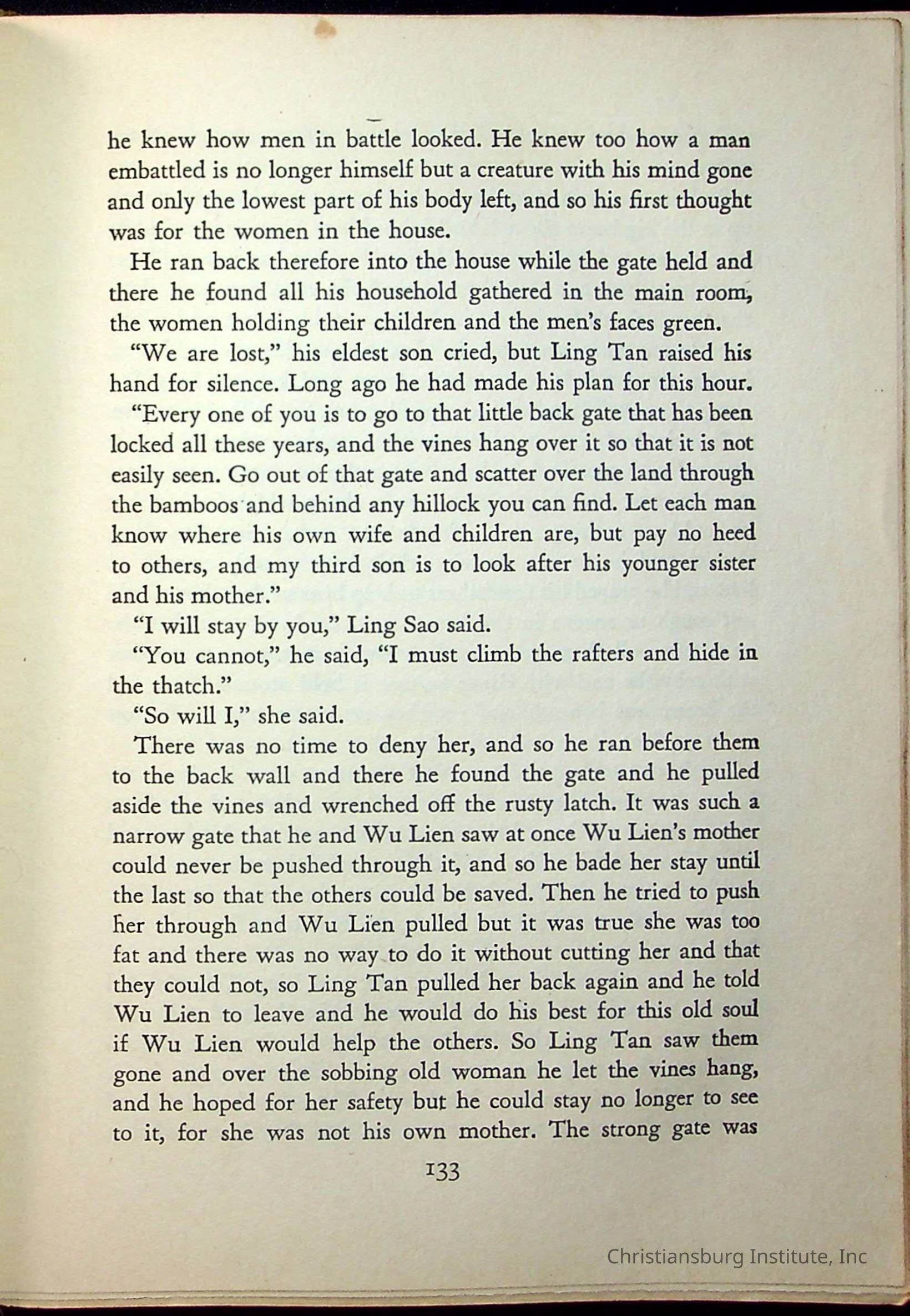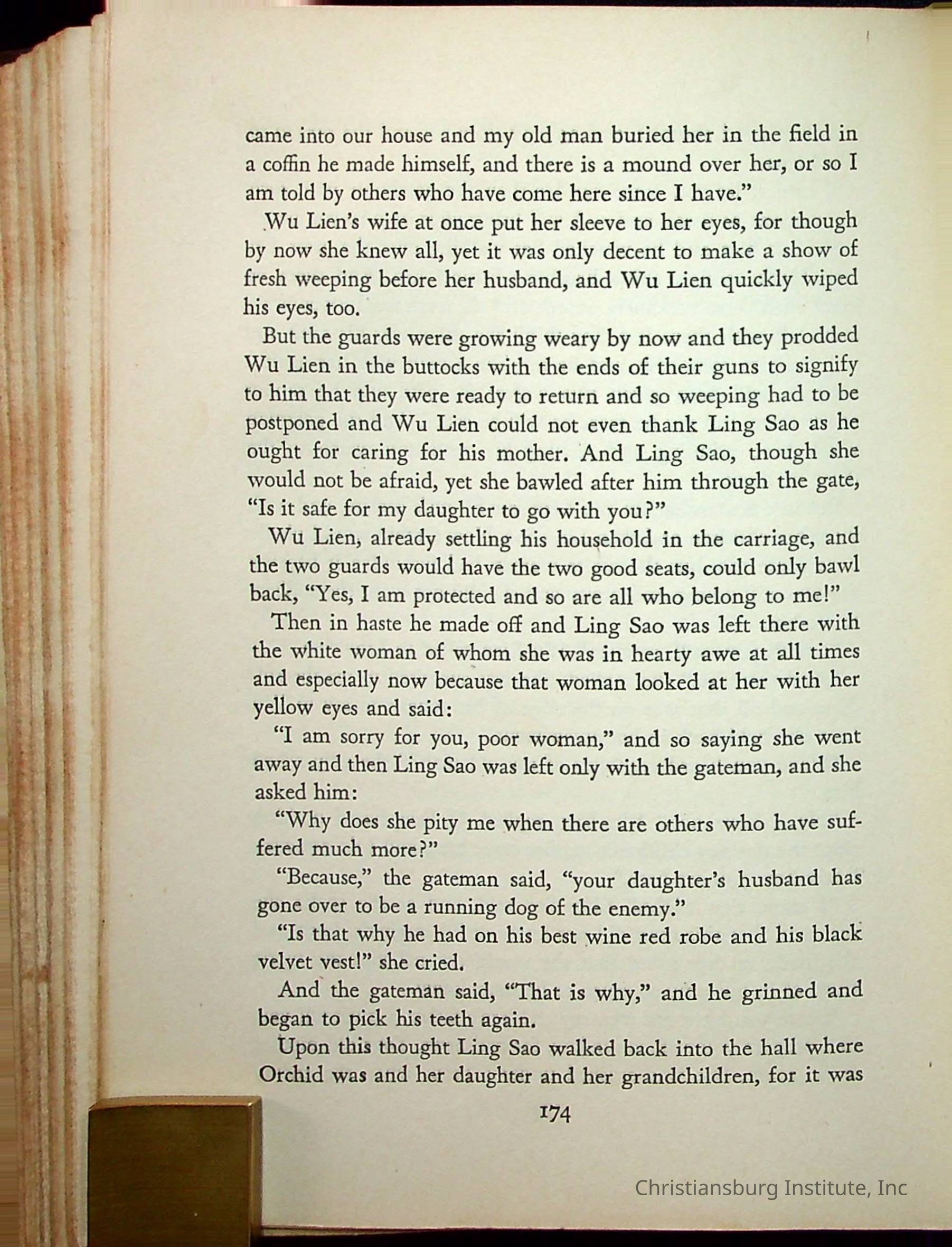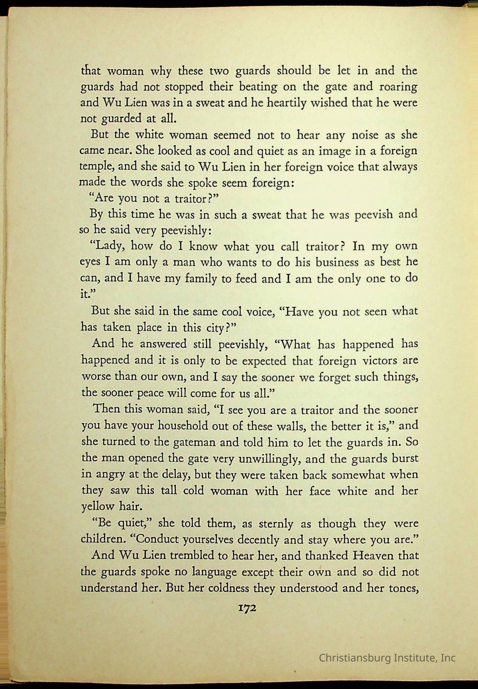 Dragon Seed, written by Pearl S. Buck and published in the year 1942. This book was used by Christiansburg Institute teacher, Viola Charlton in her class.Collection