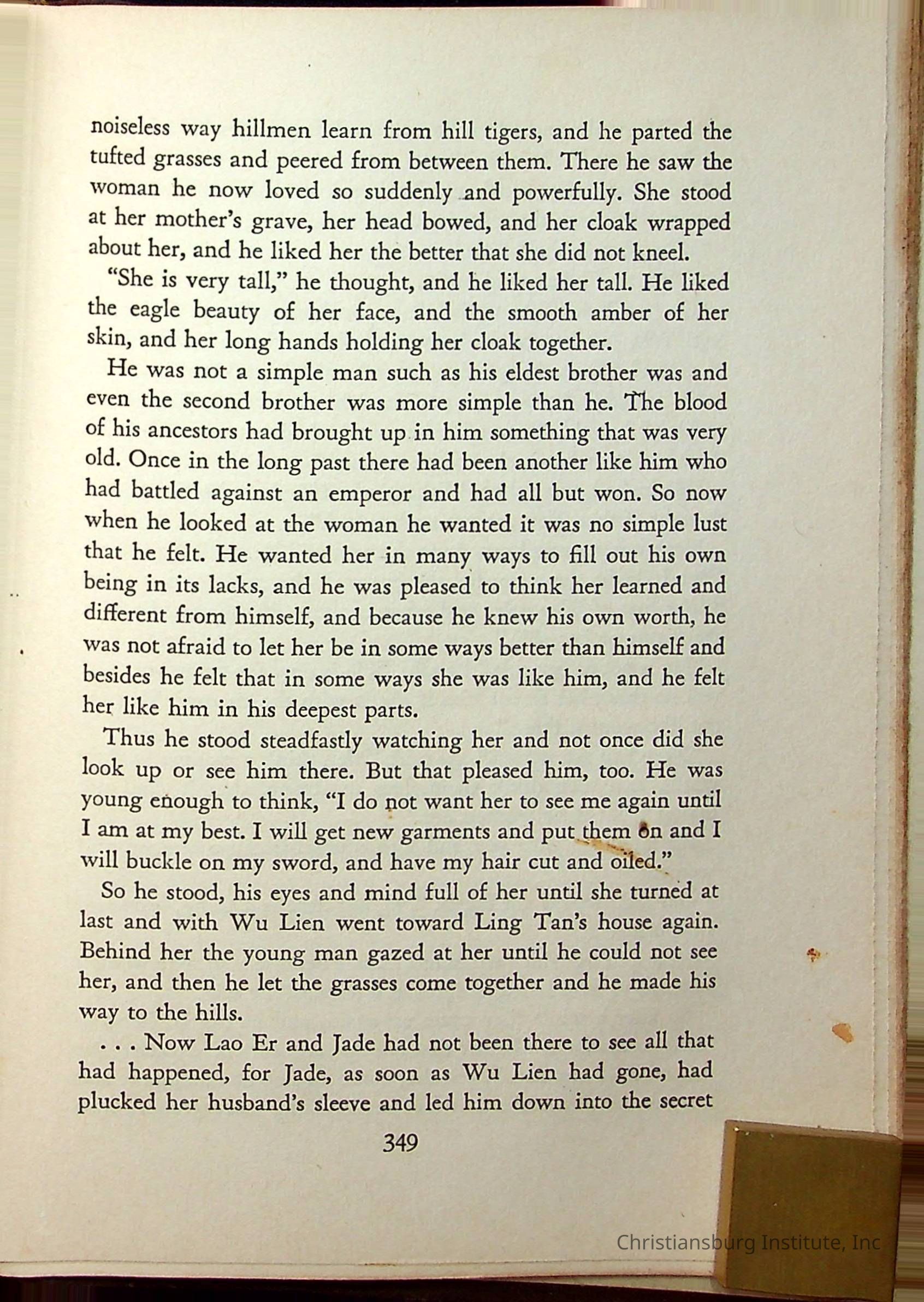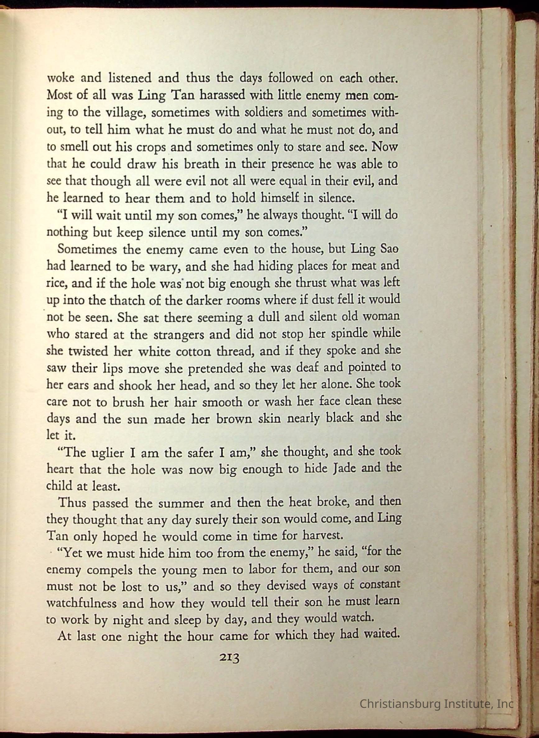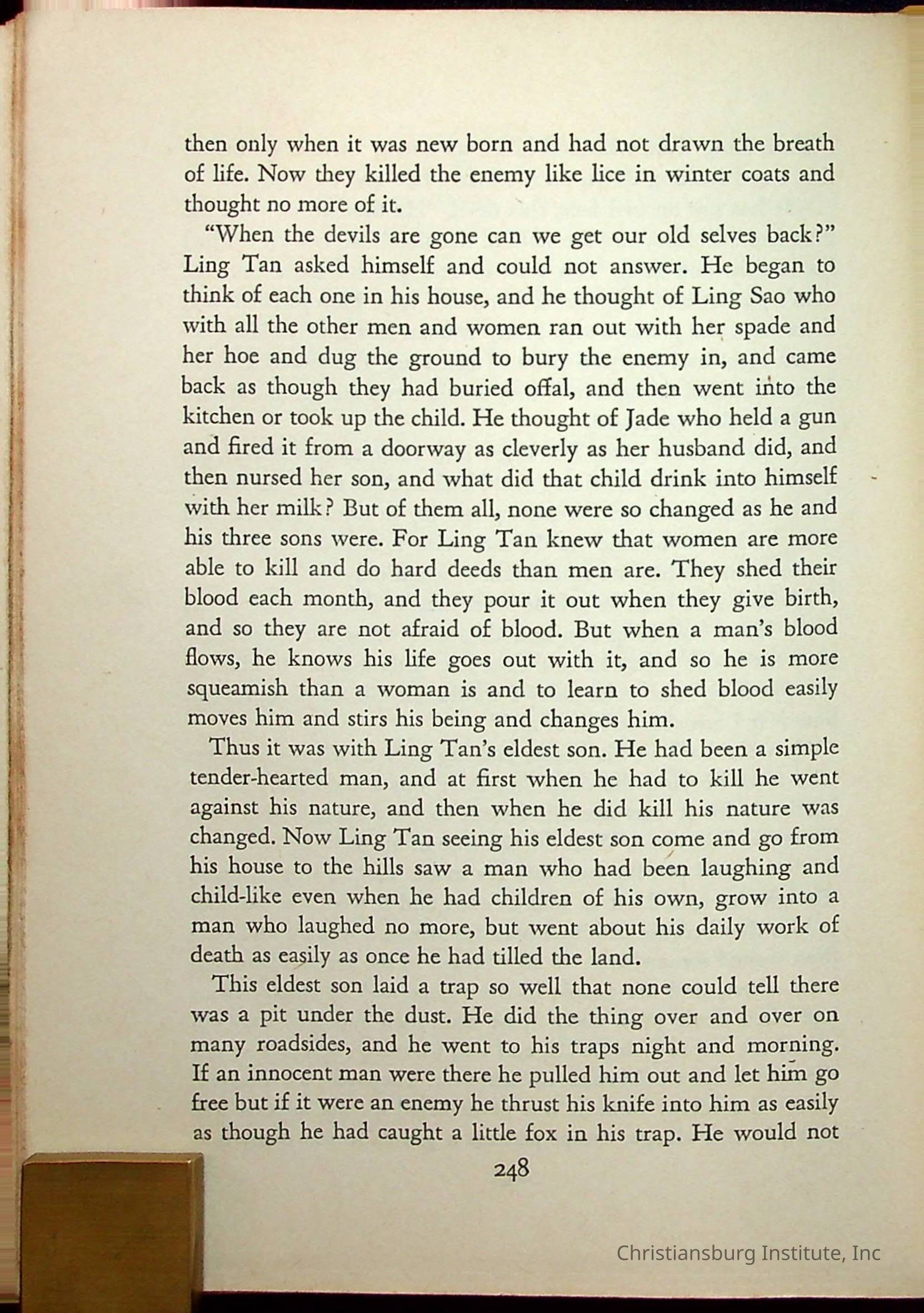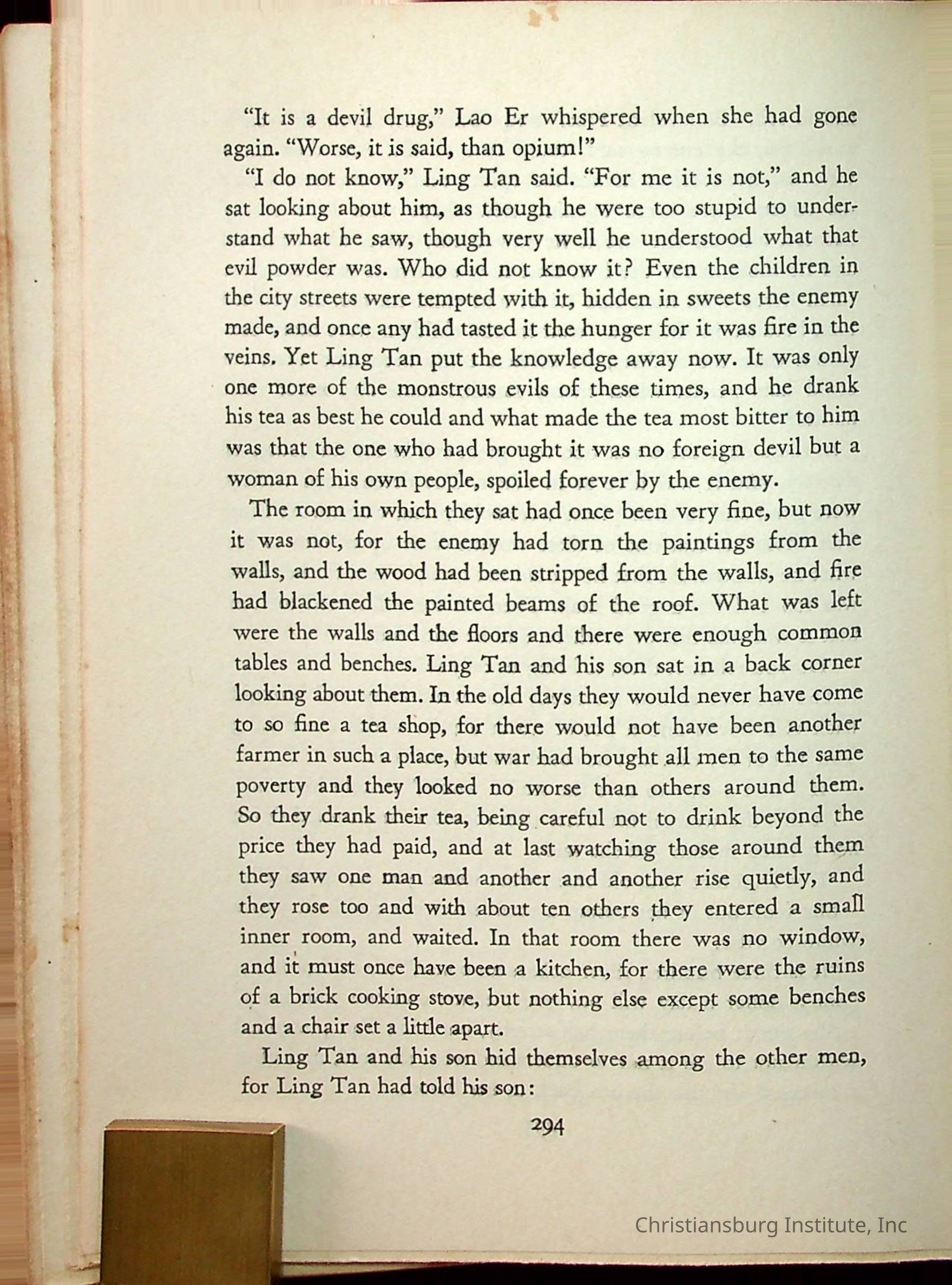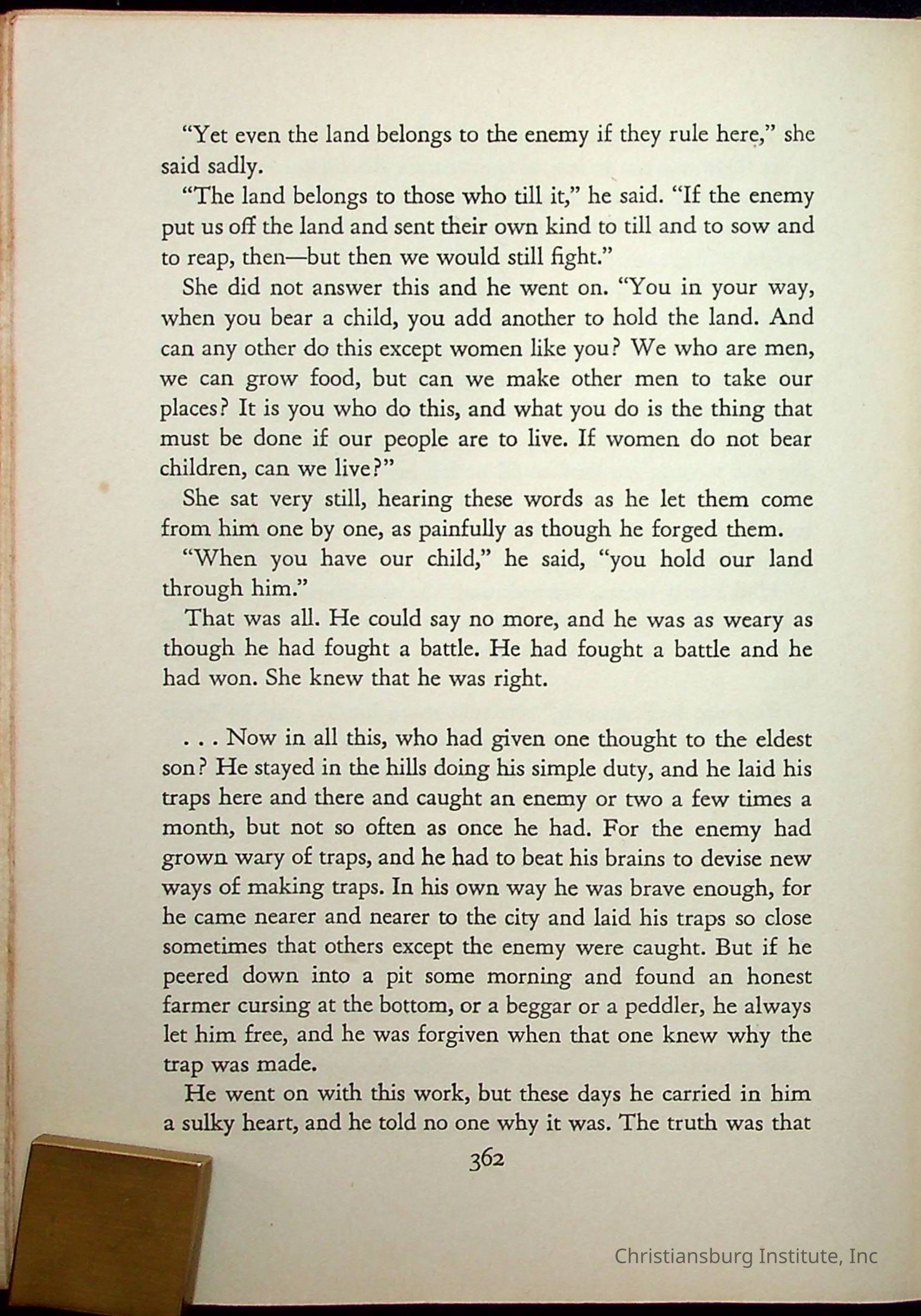 Dragon Seed, written by Pearl S. Buck and published in the year 1942. This book was used by Christiansburg Institute teacher, Viola Charlton in her class.Collection