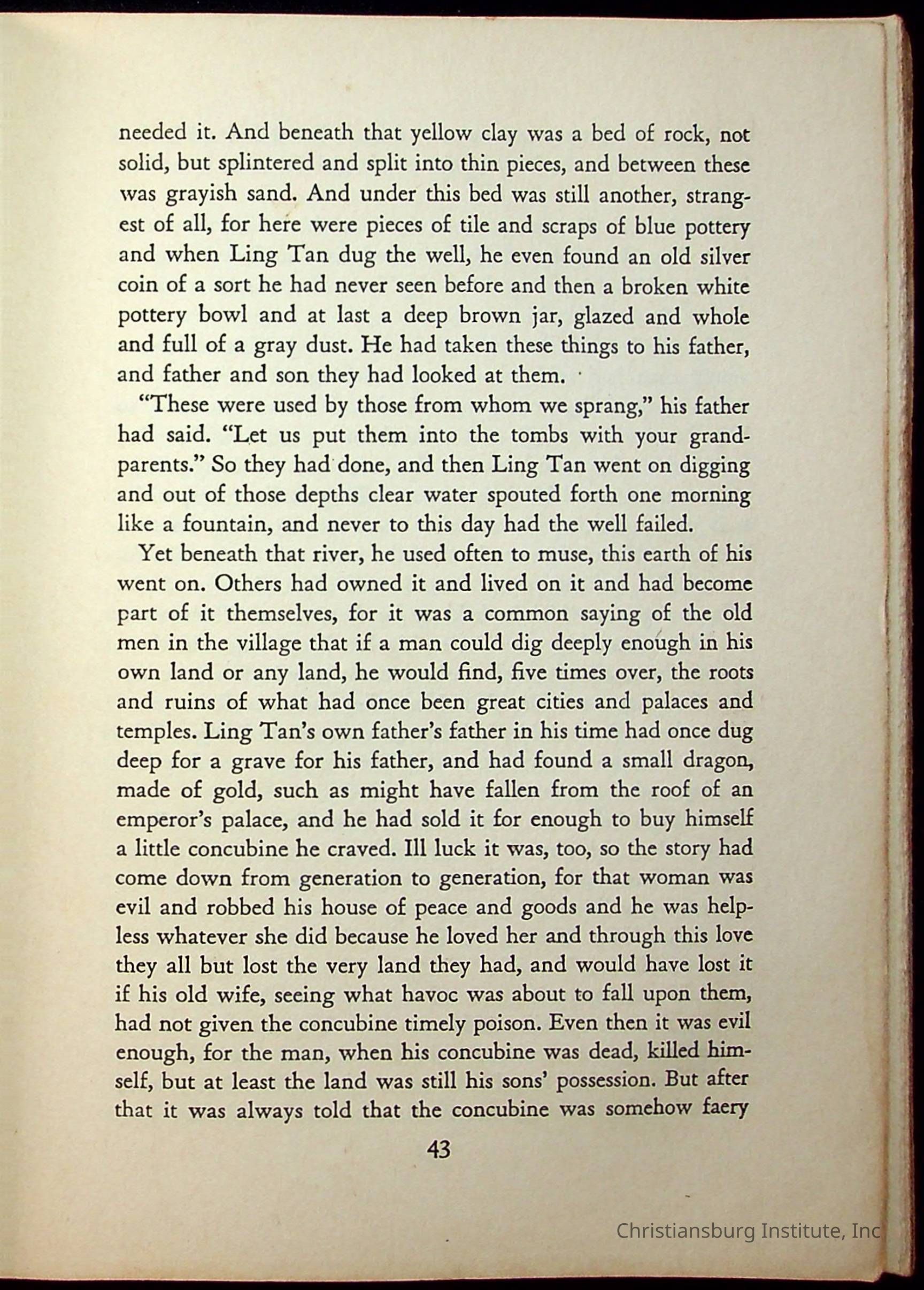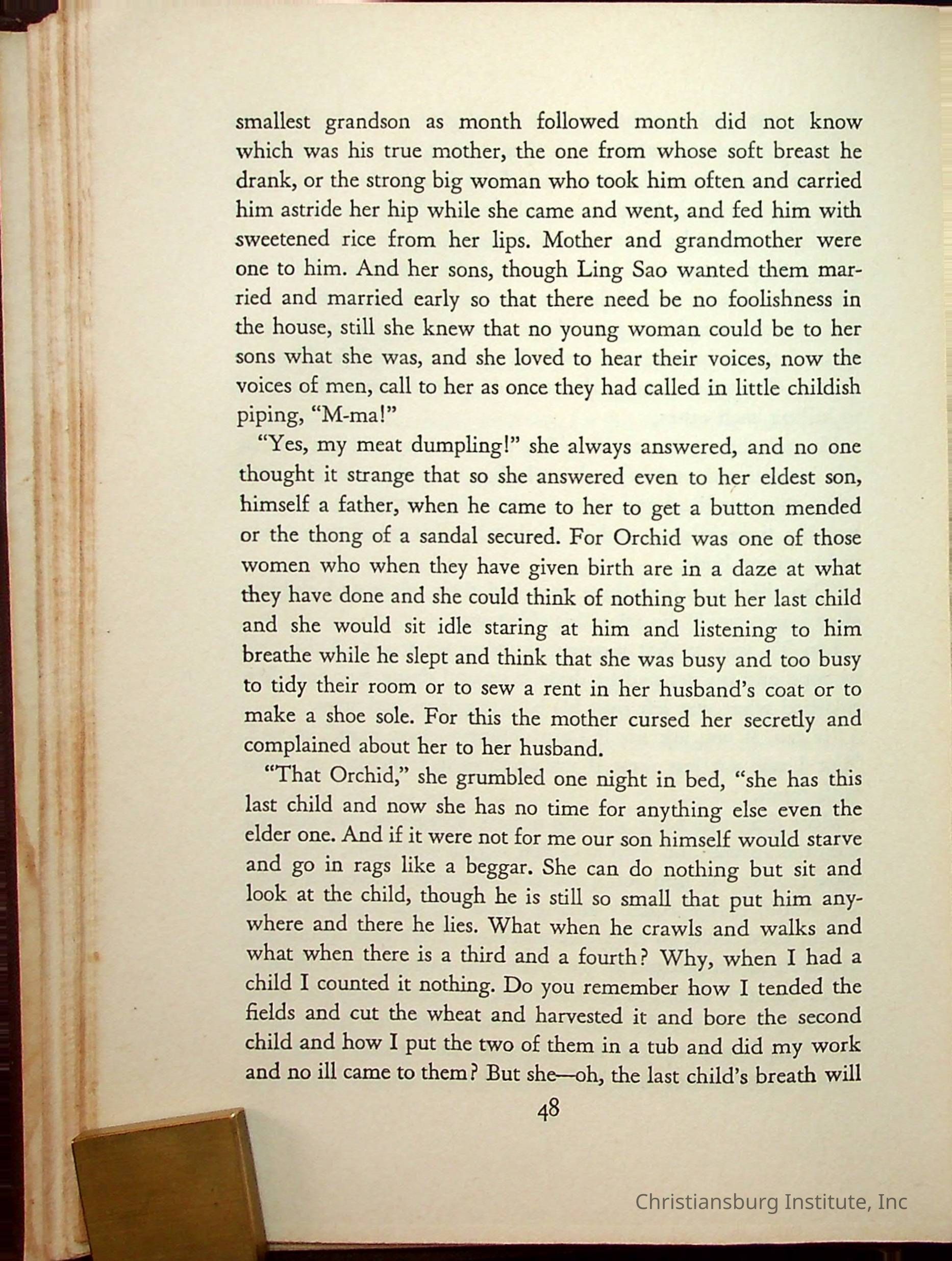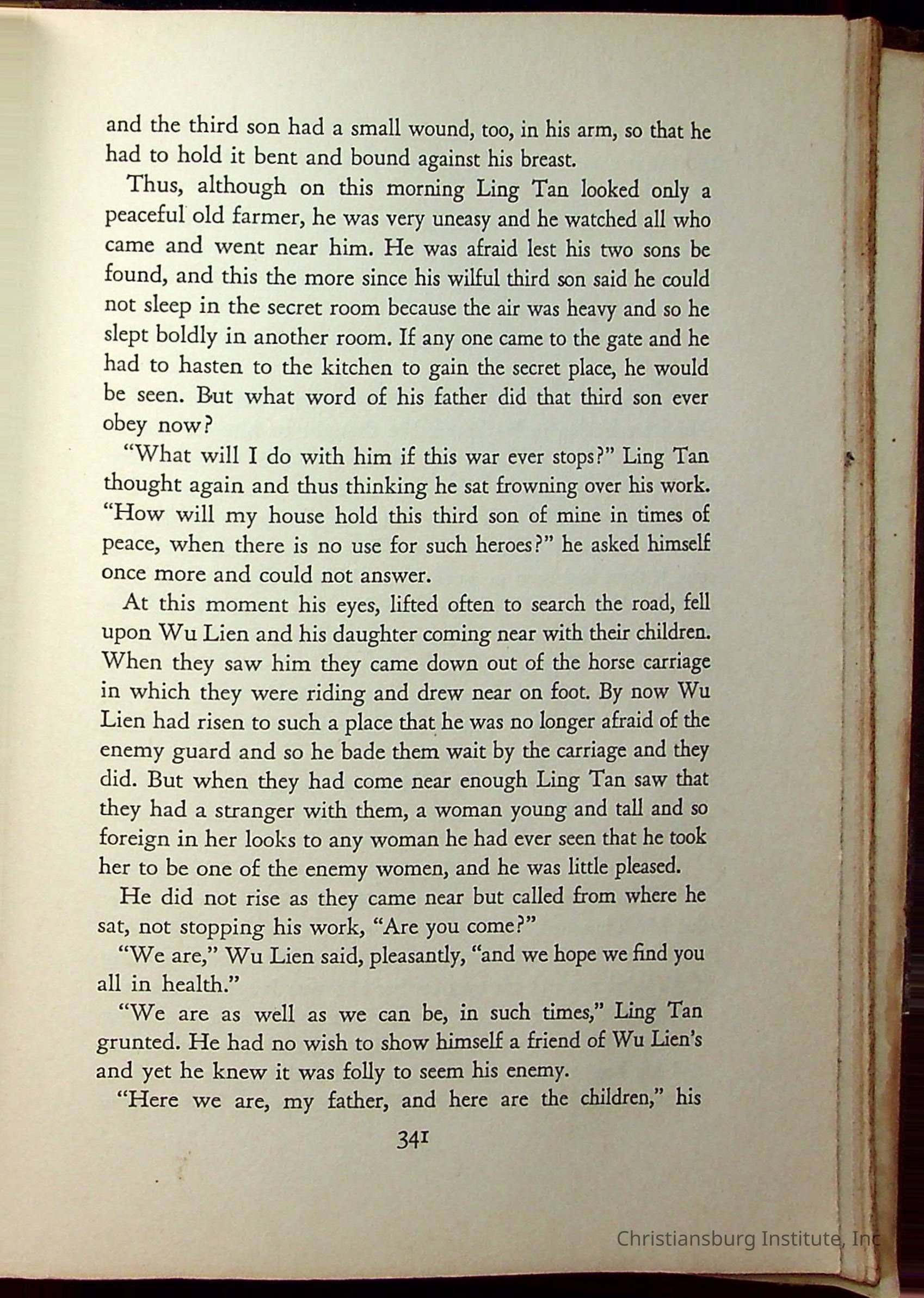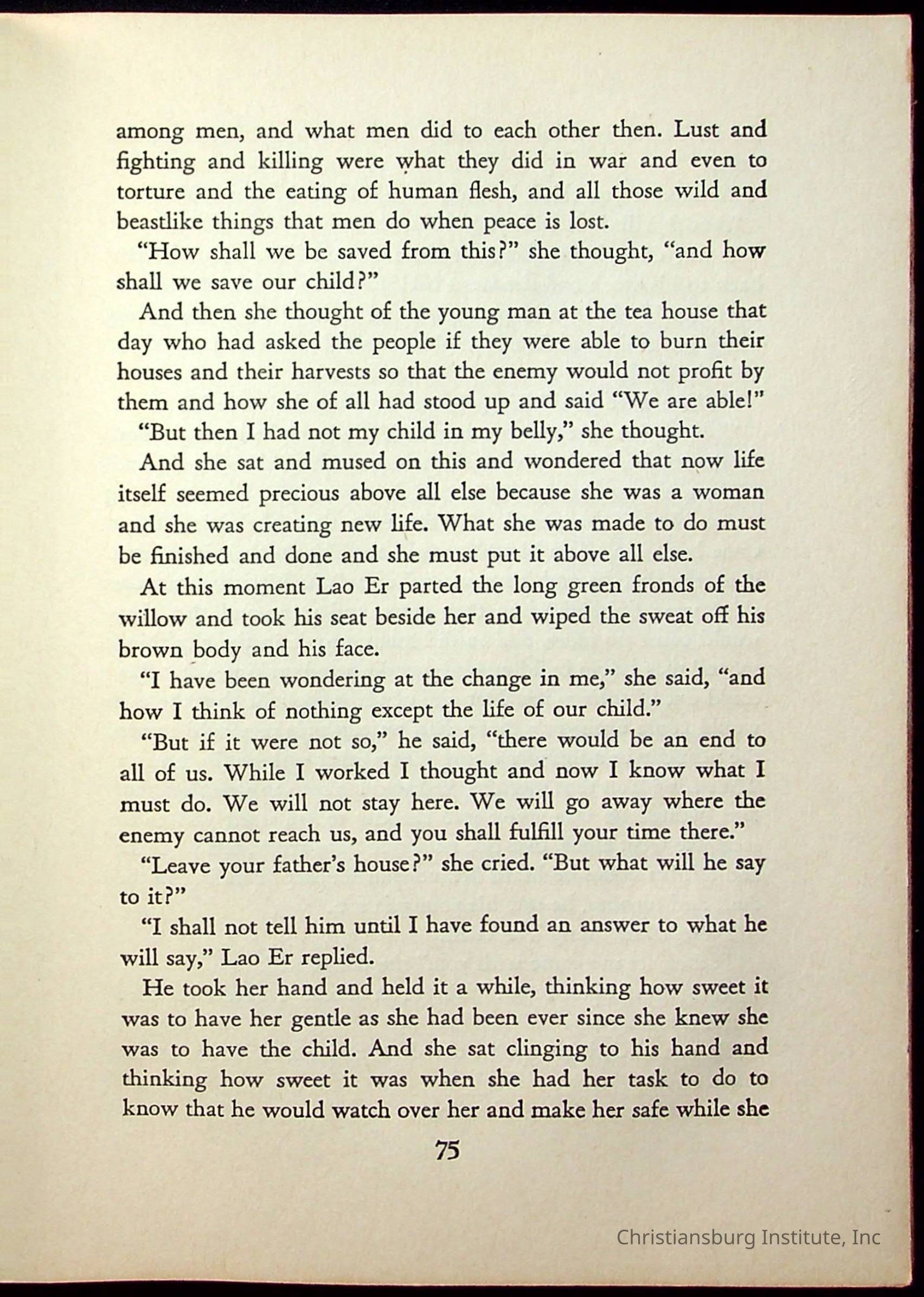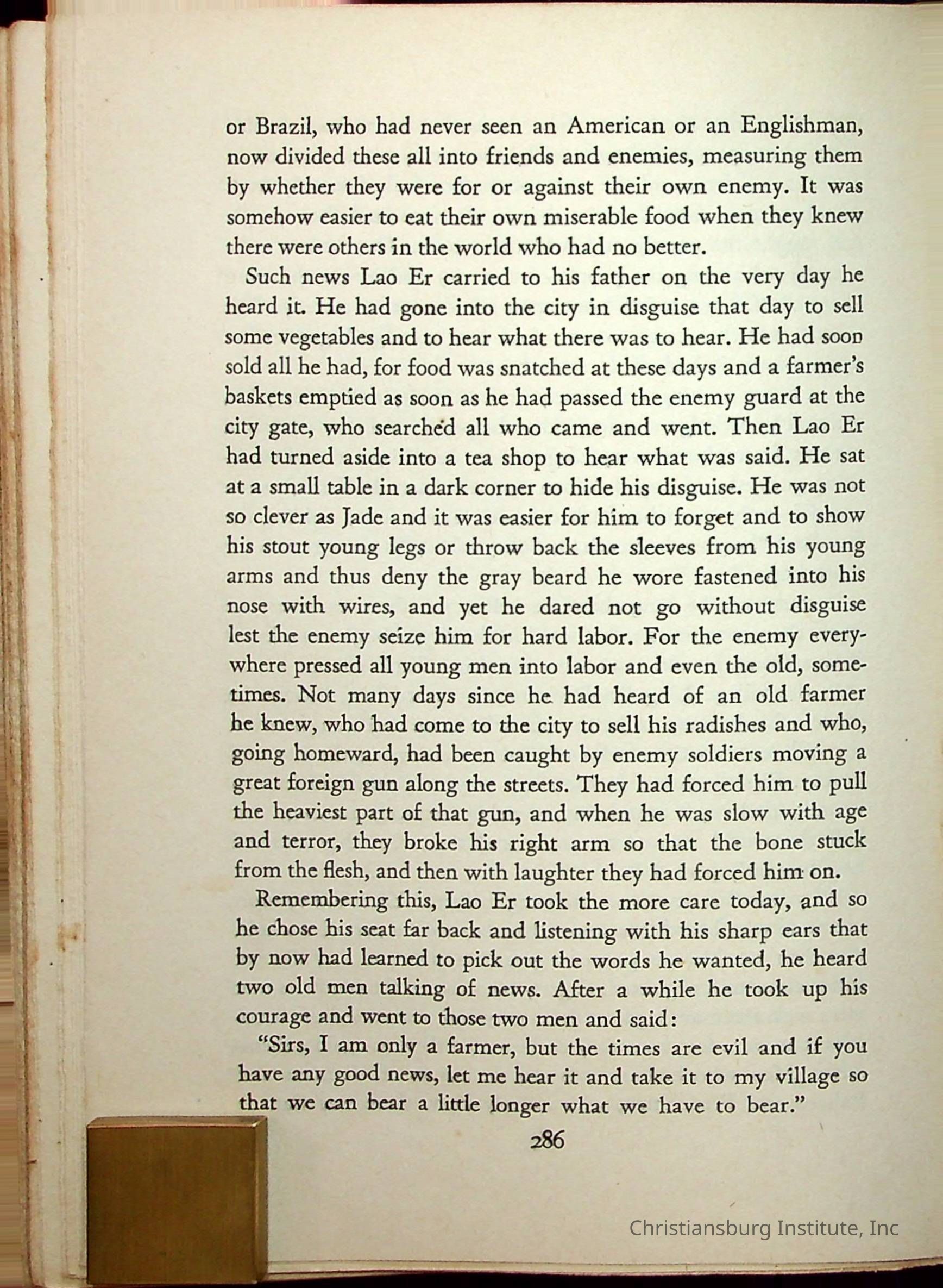 Dragon Seed, written by Pearl S. Buck and published in the year 1942. This book was used by Christiansburg Institute teacher, Viola Charlton in her class.Collection