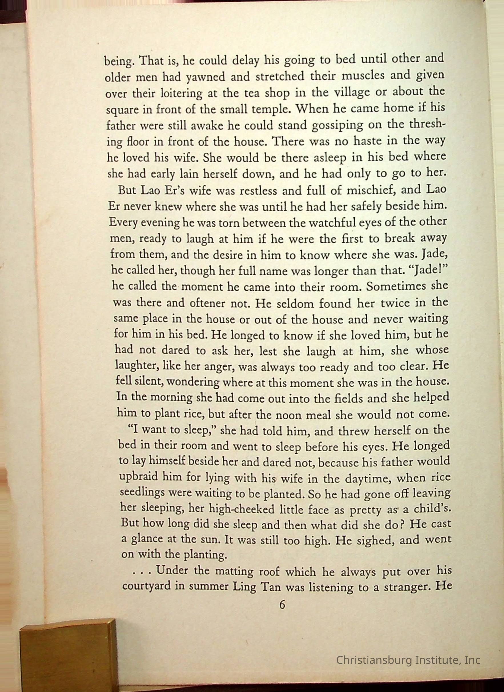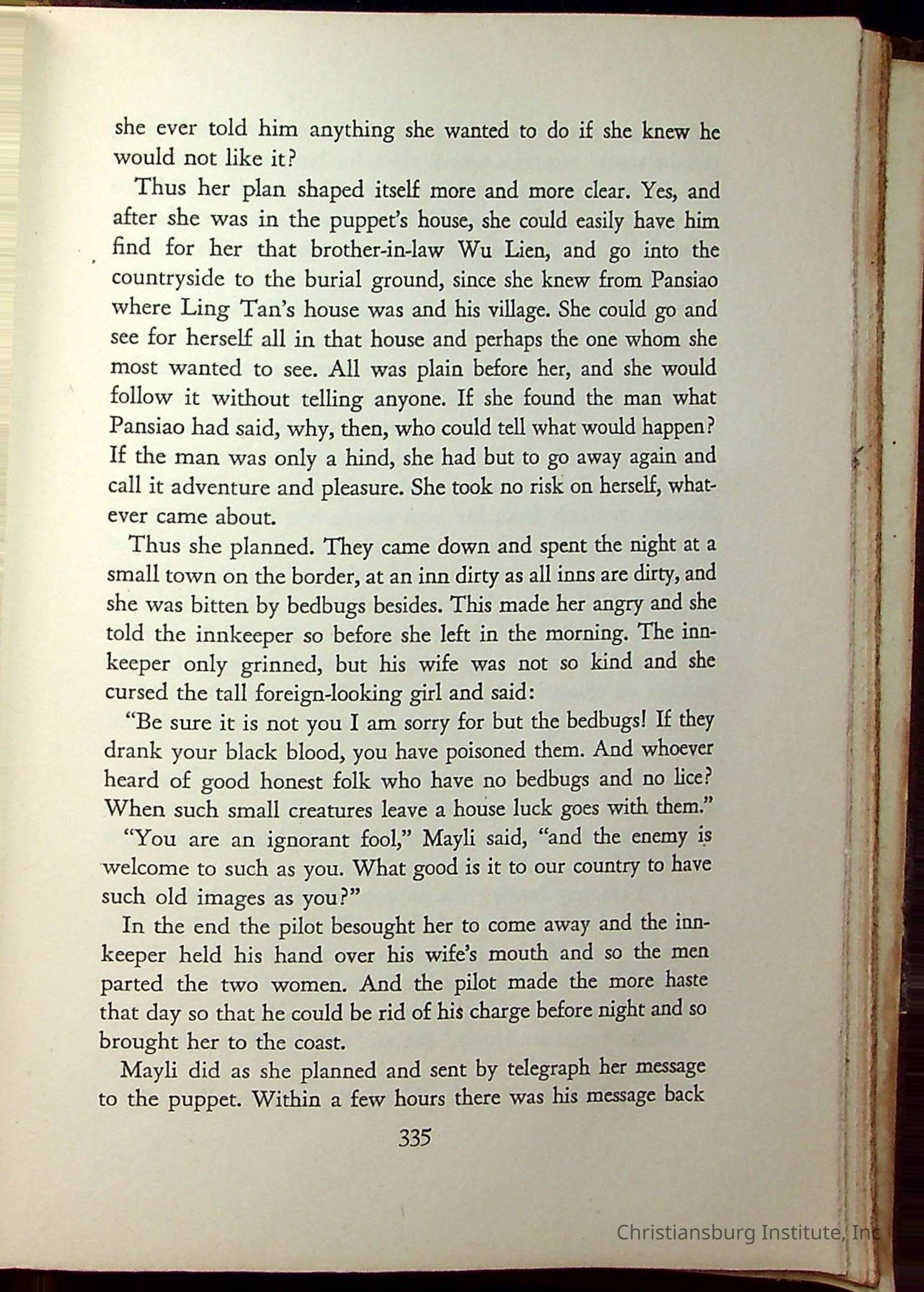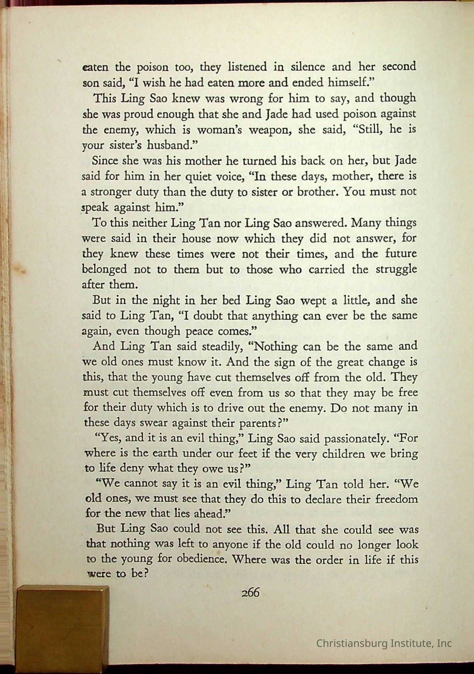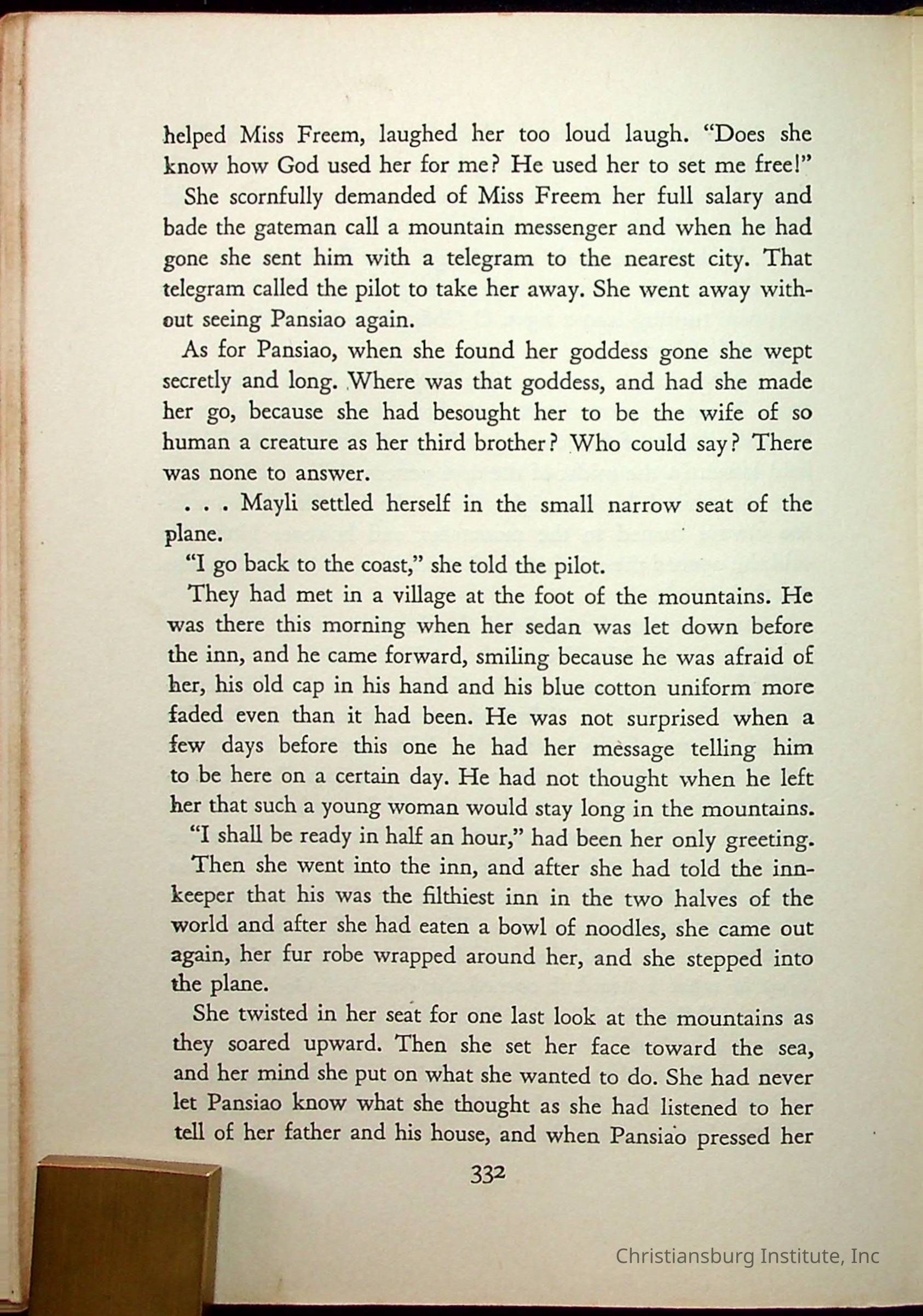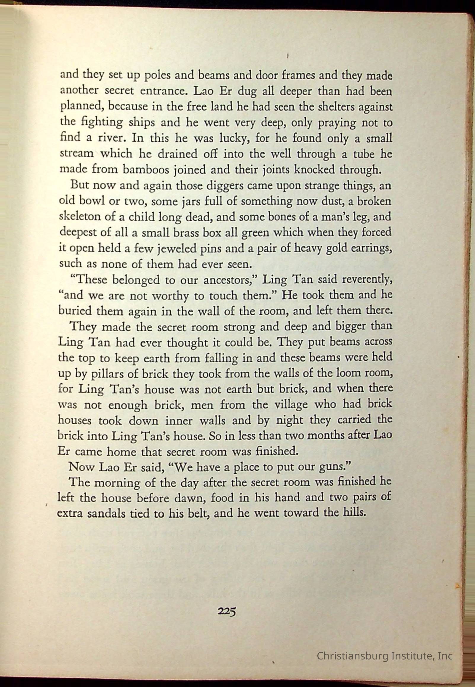 Dragon Seed, written by Pearl S. Buck and published in the year 1942. This book was used by Christiansburg Institute teacher, Viola Charlton in her class.Collection