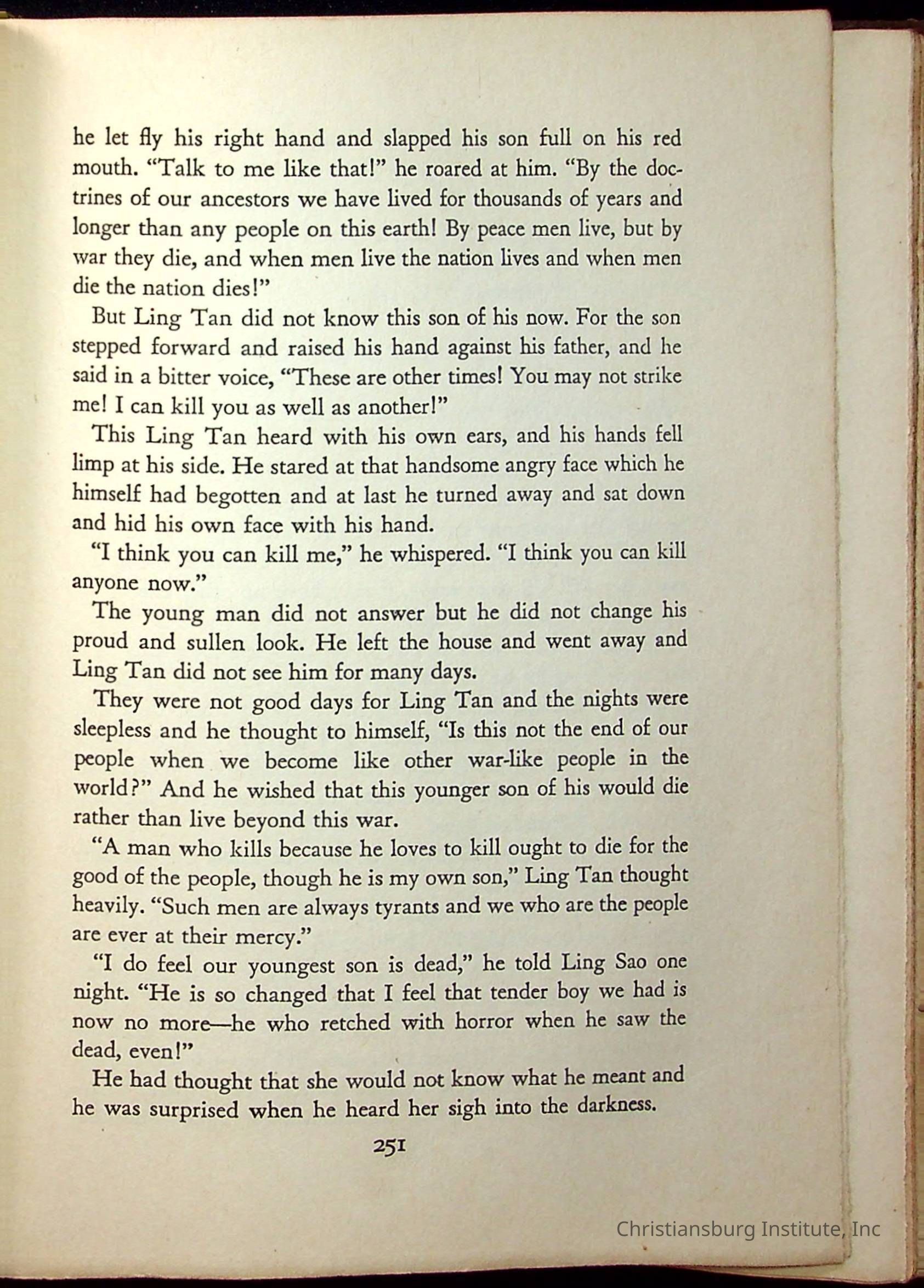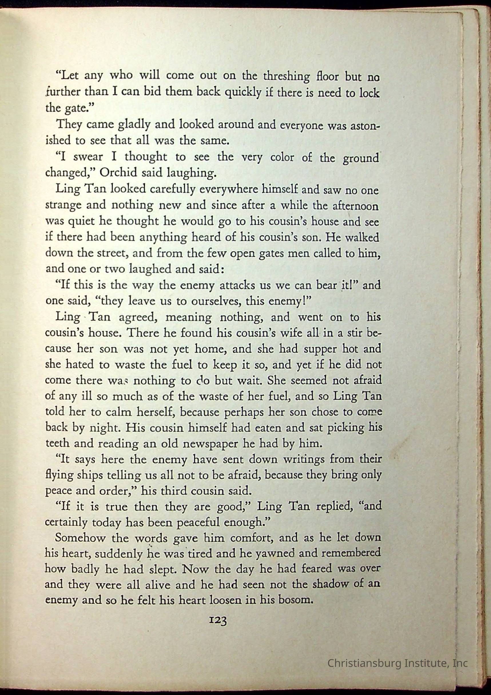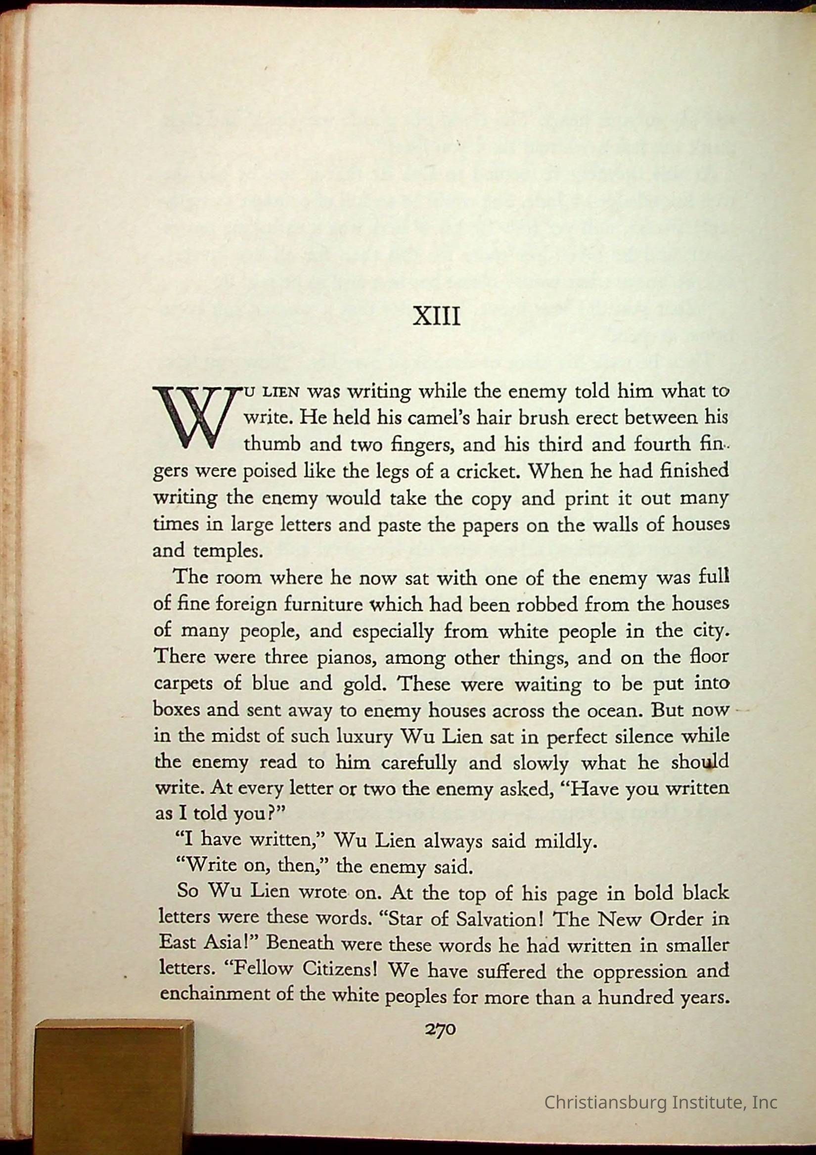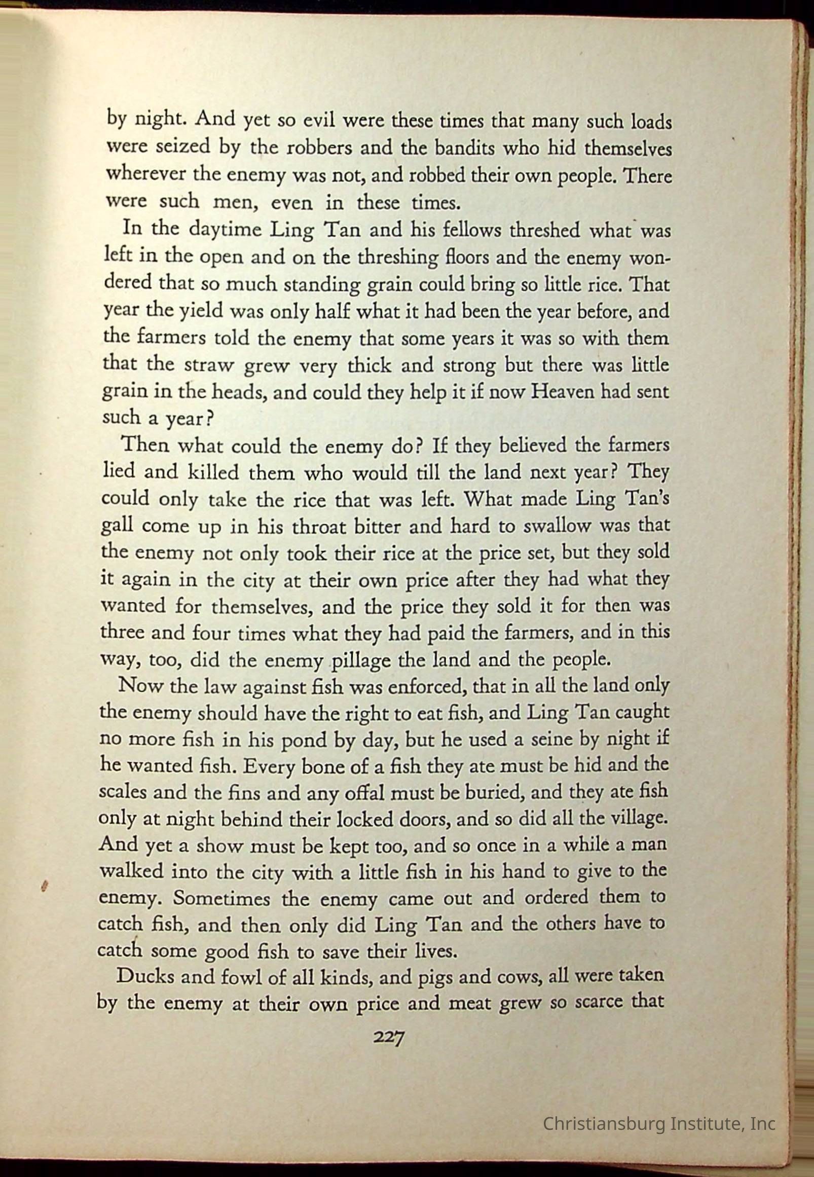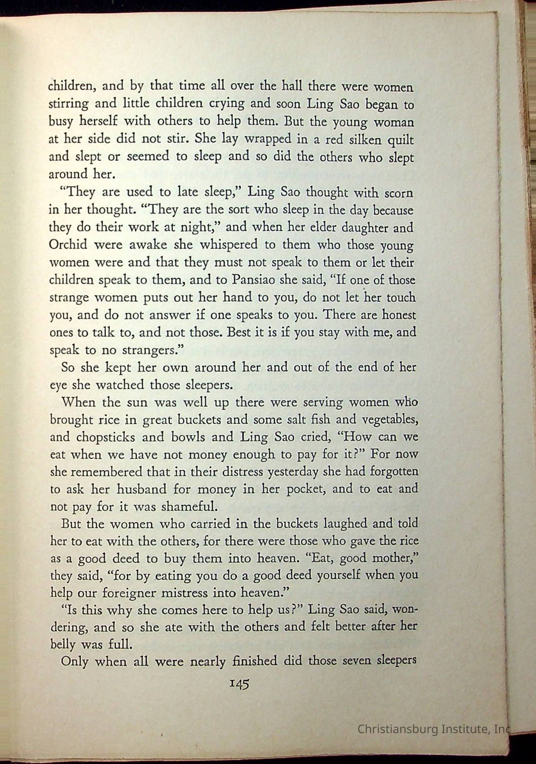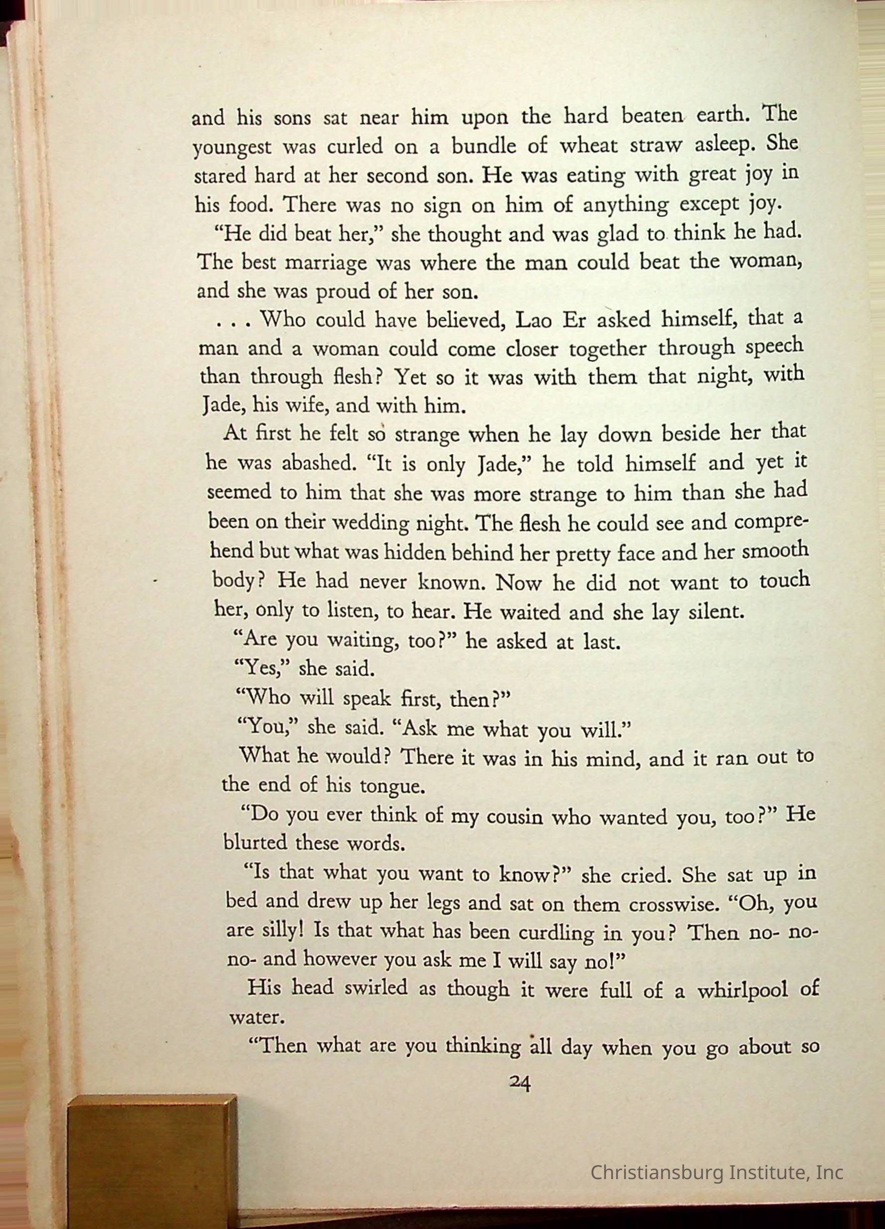 Dragon Seed, written by Pearl S. Buck and published in the year 1942. This book was used by Christiansburg Institute teacher, Viola Charlton in her class.Collection