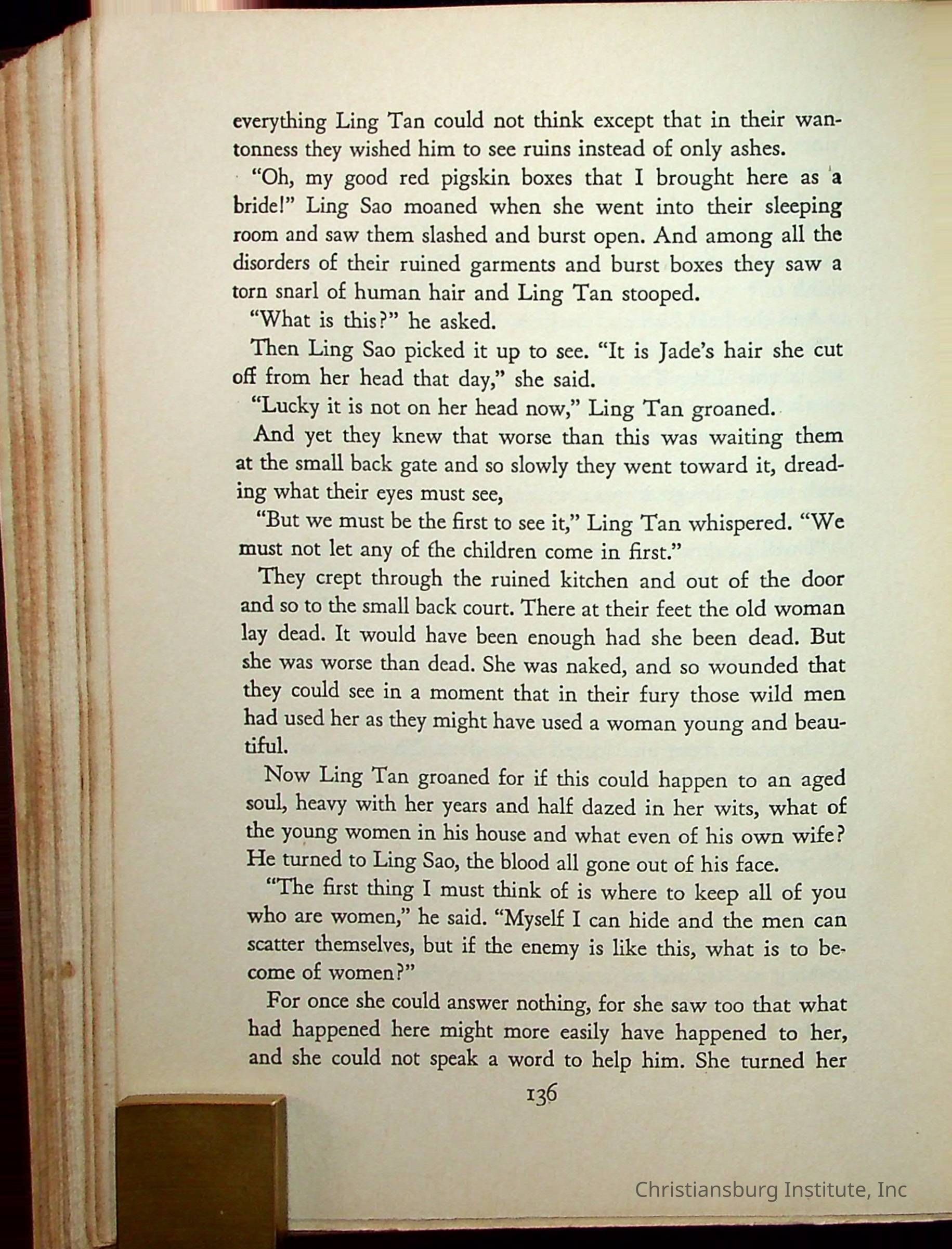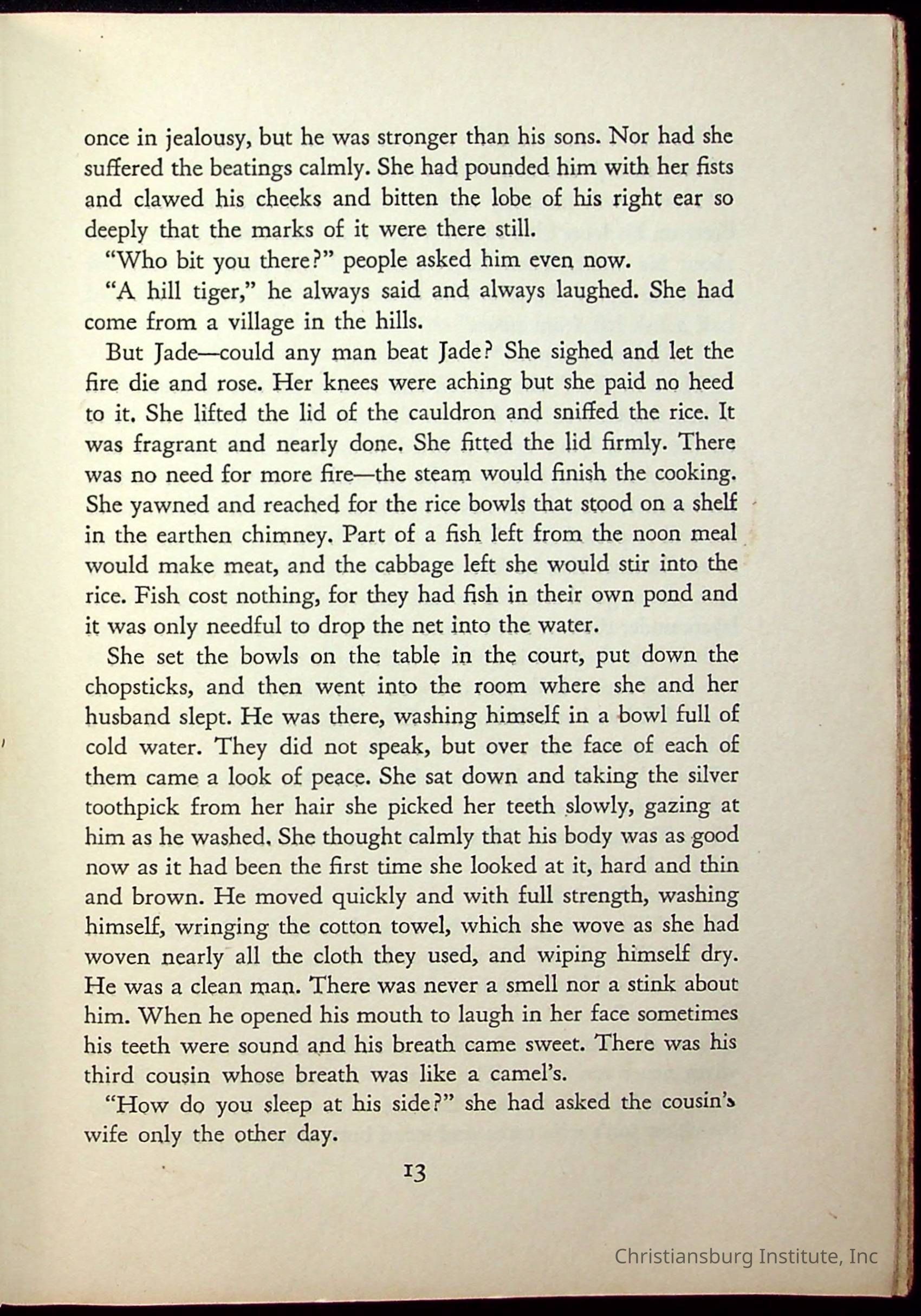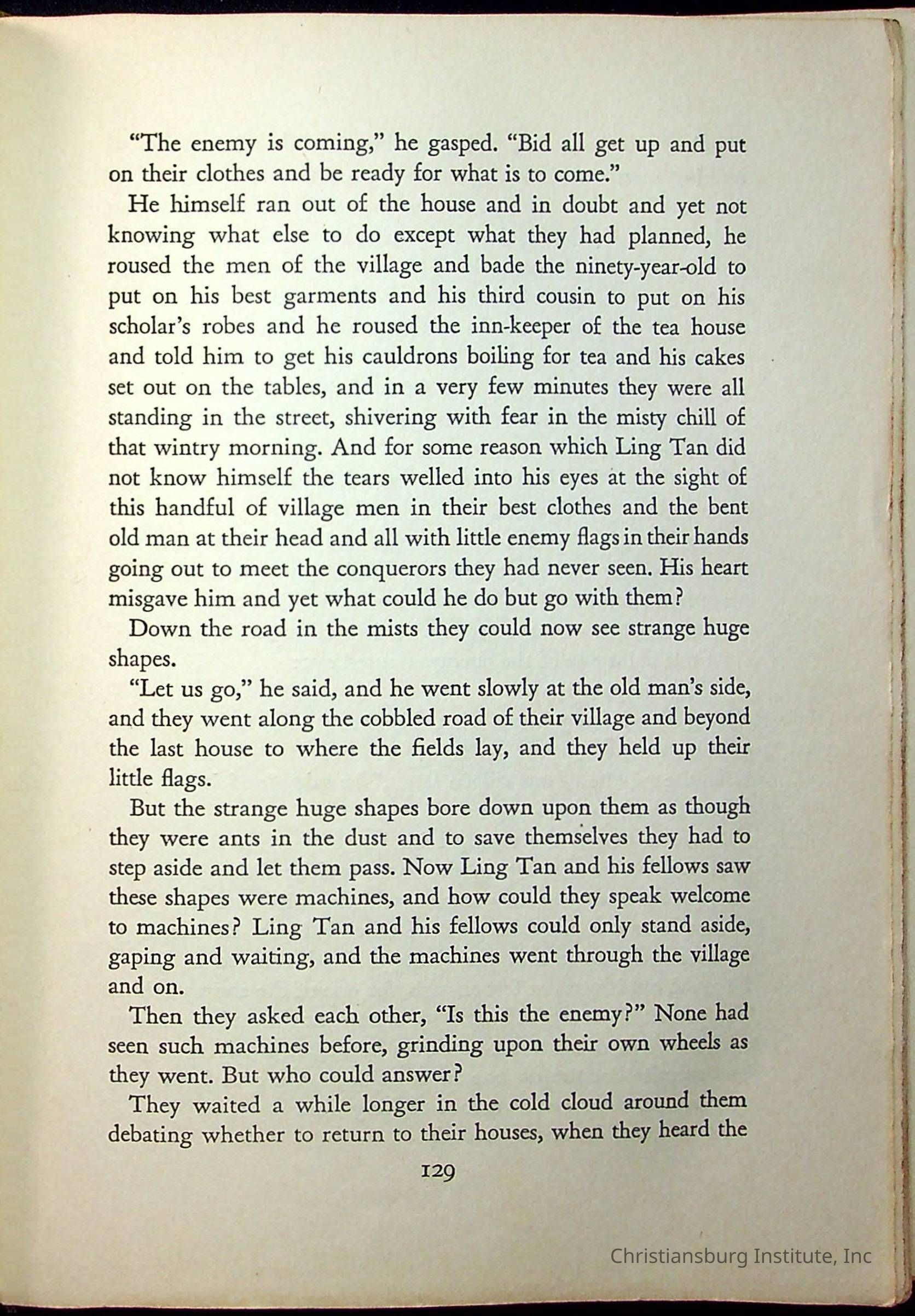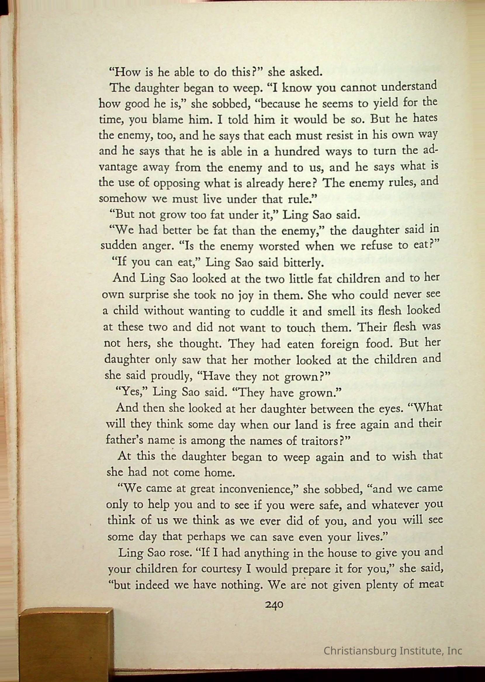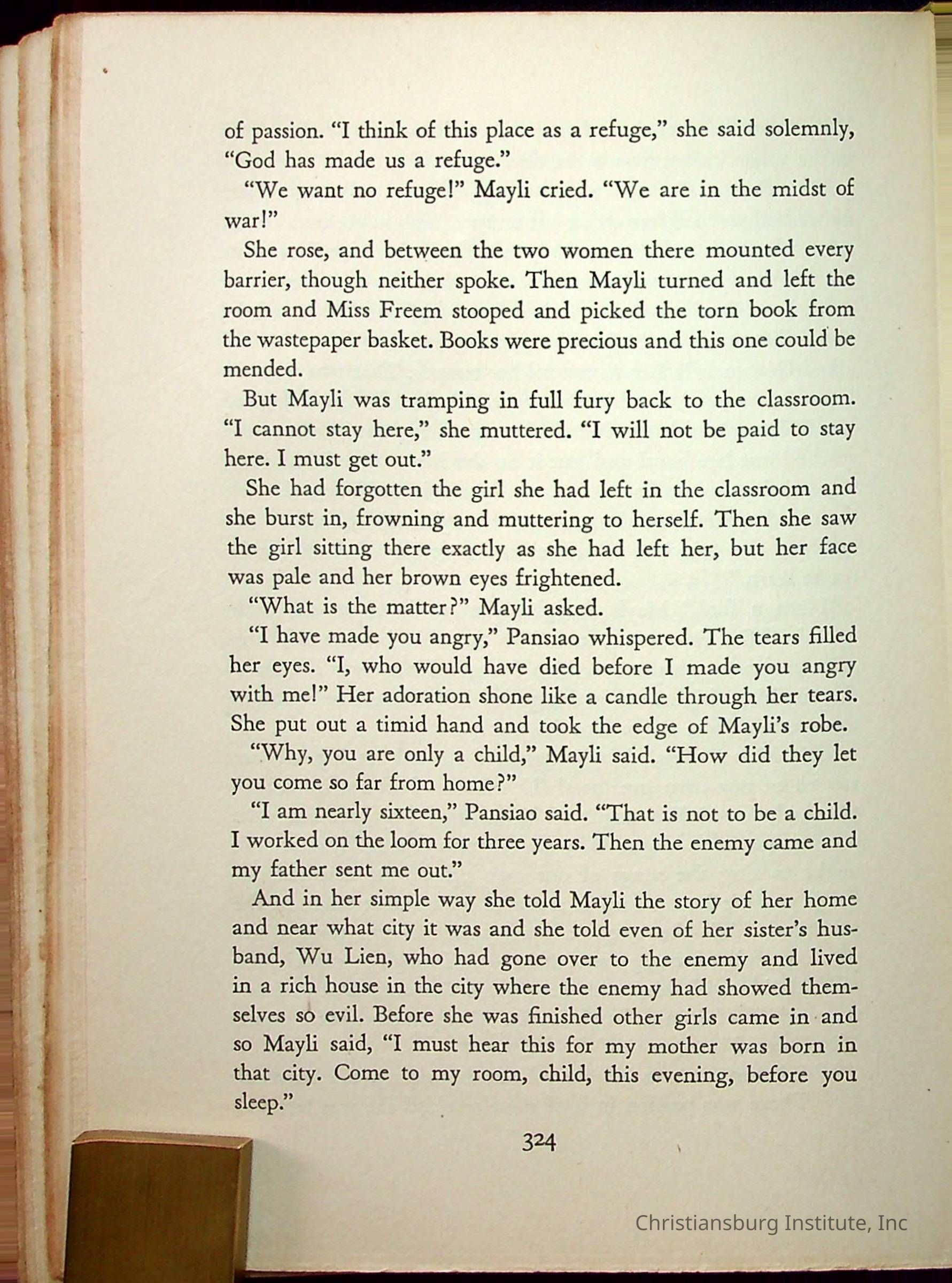 Dragon Seed, written by Pearl S. Buck and published in the year 1942. This book was used by Christiansburg Institute teacher, Viola Charlton in her class.Collection