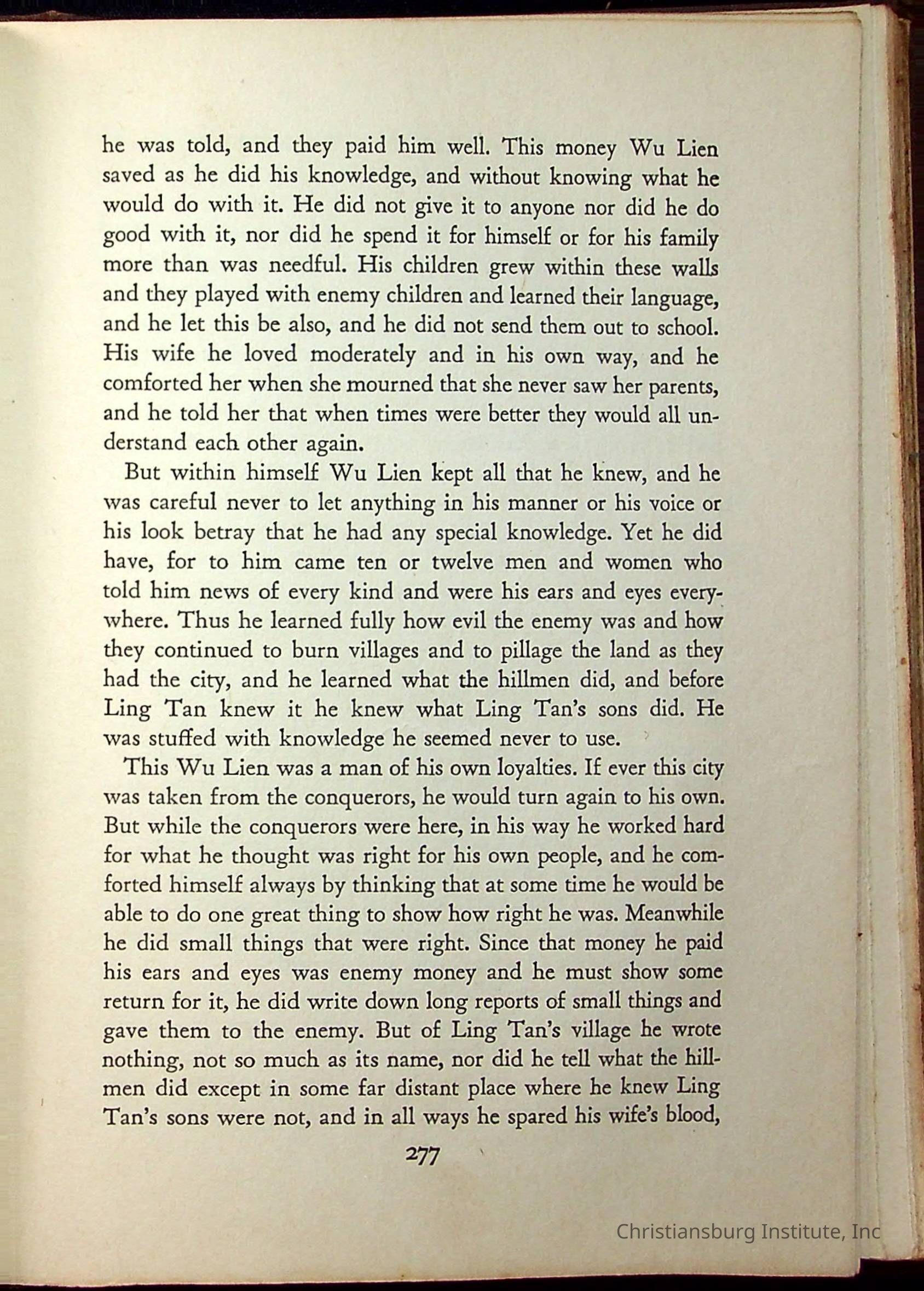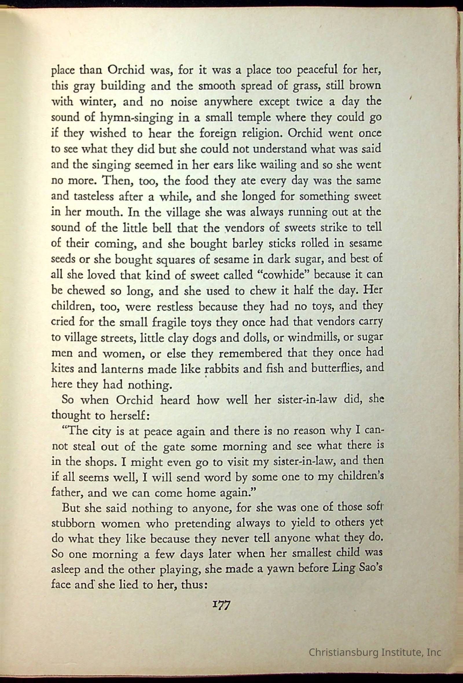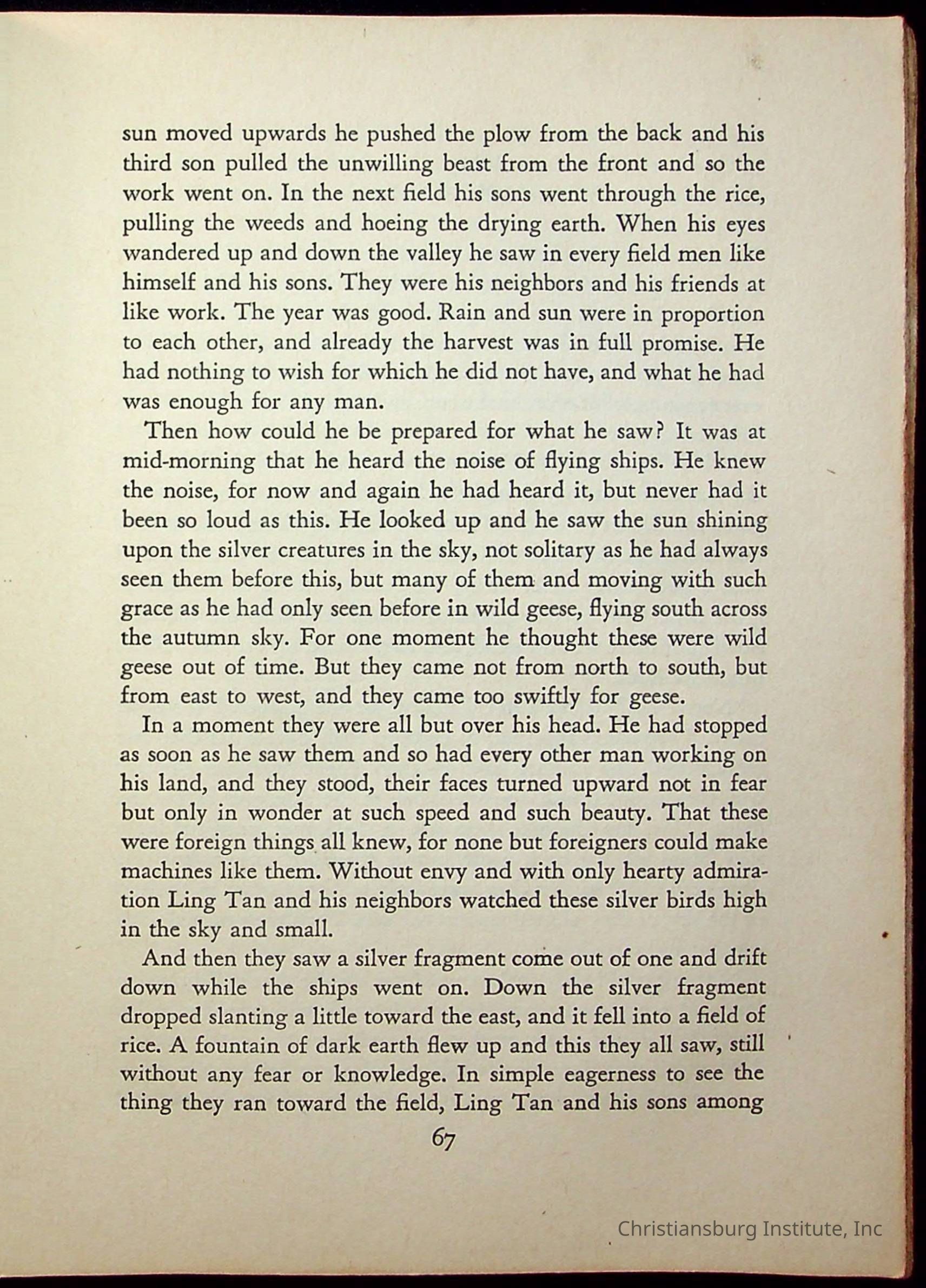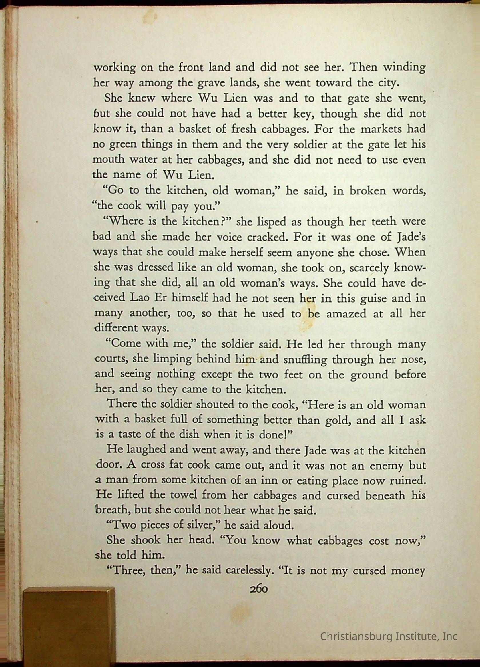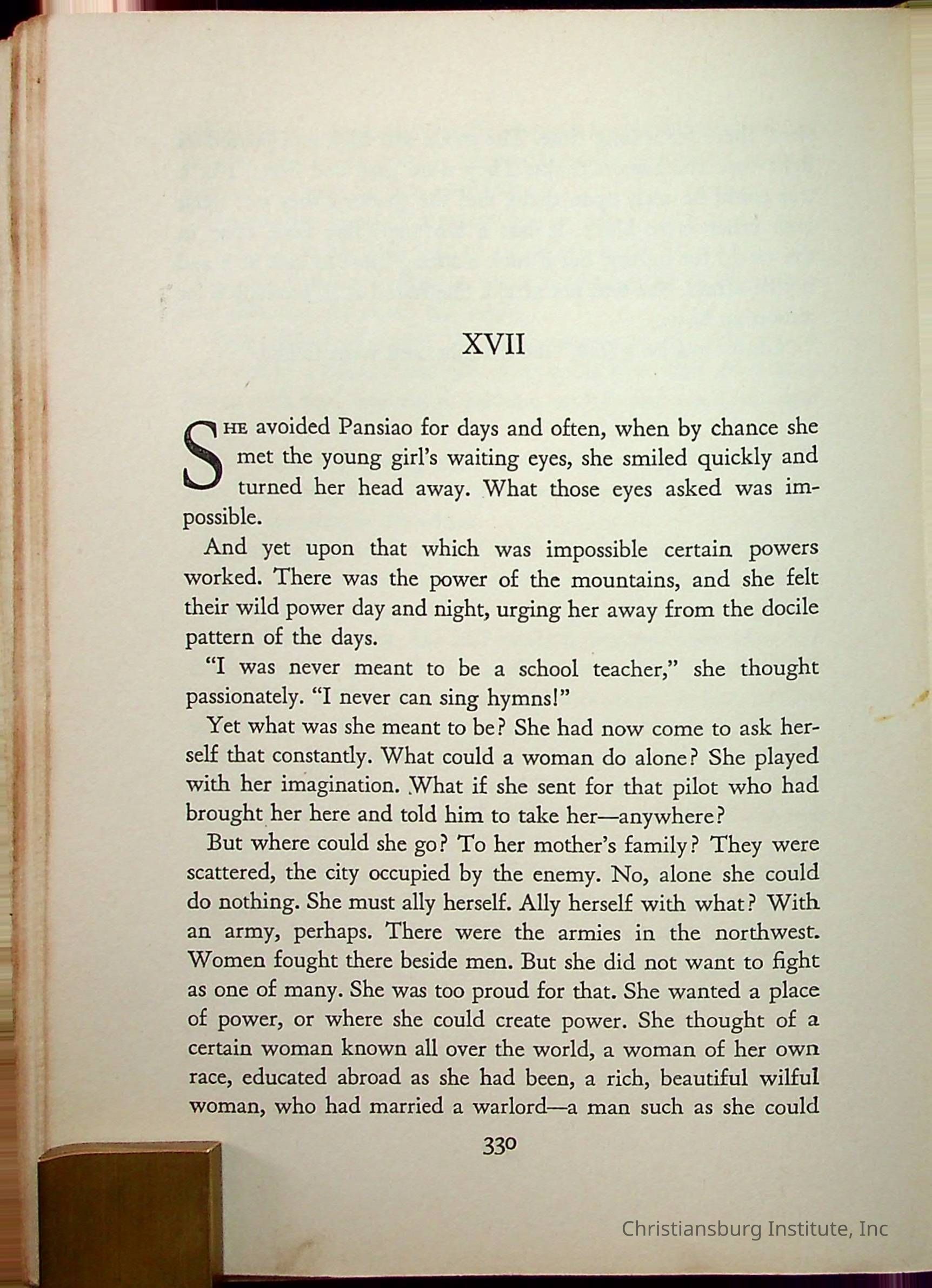 Dragon Seed, written by Pearl S. Buck and published in the year 1942. This book was used by Christiansburg Institute teacher, Viola Charlton in her class.Collection