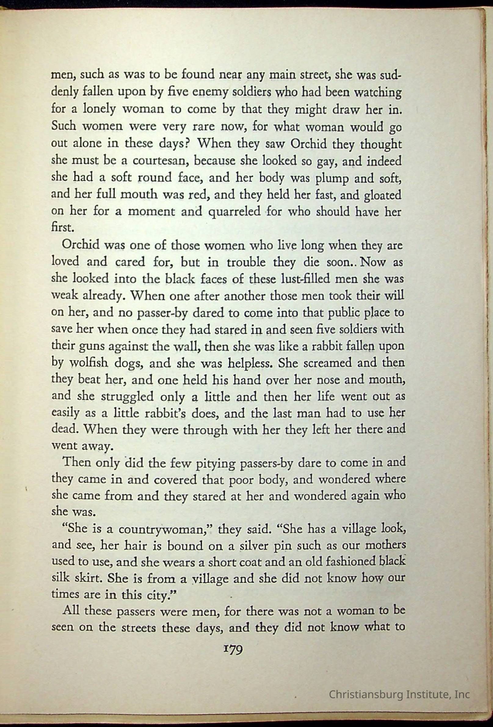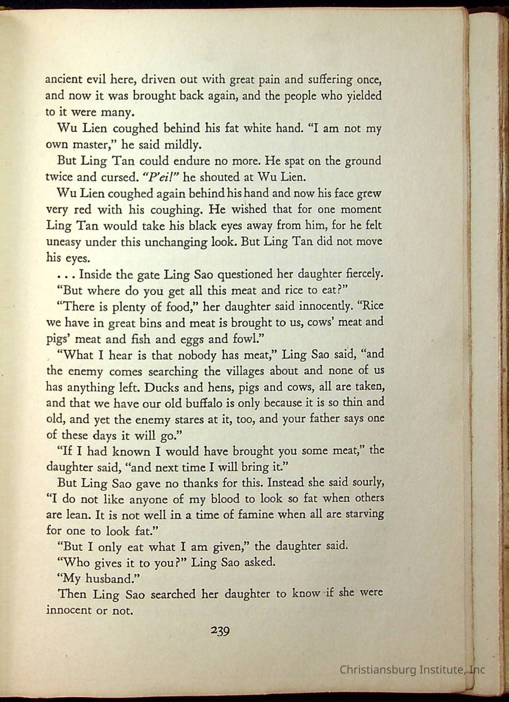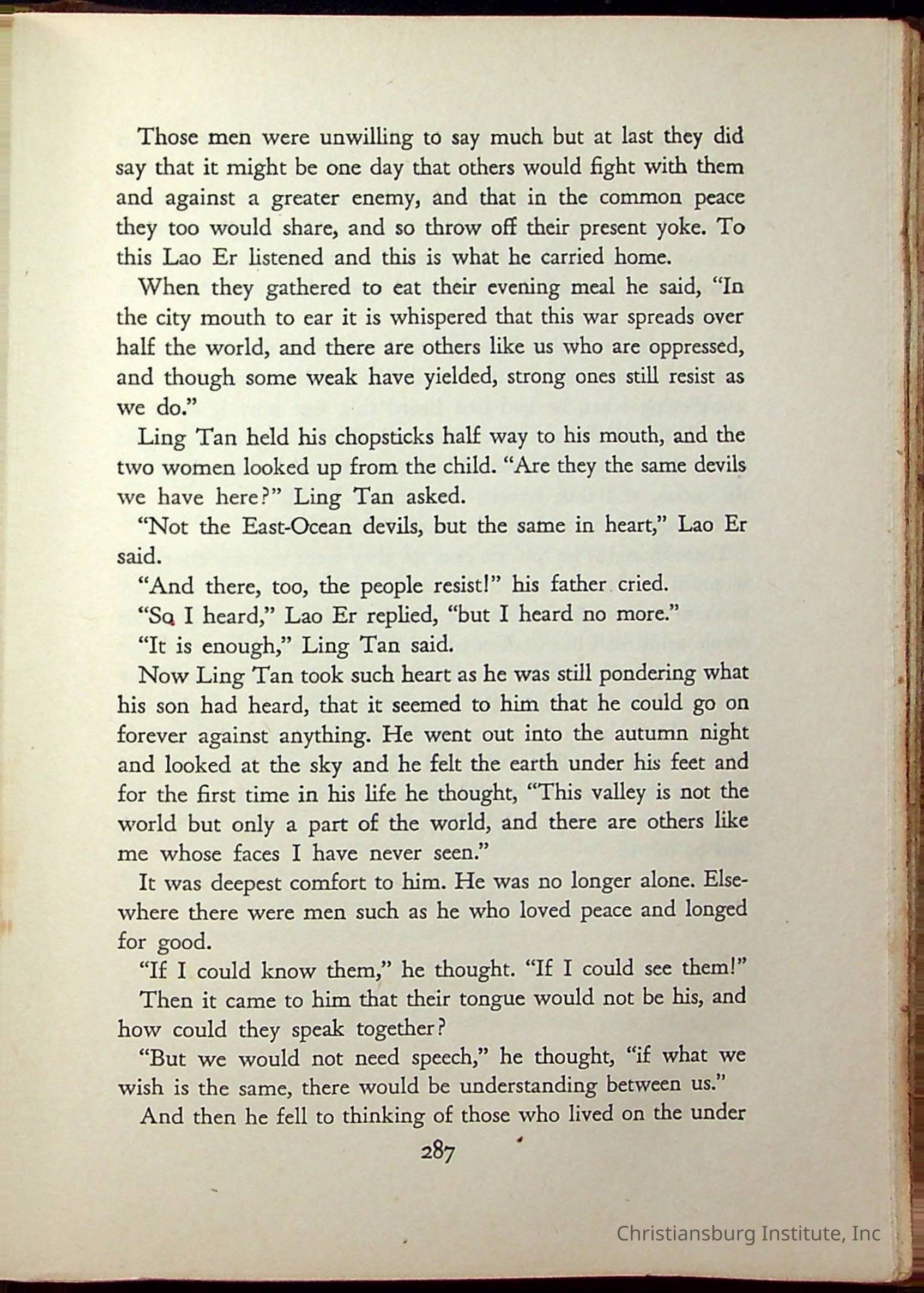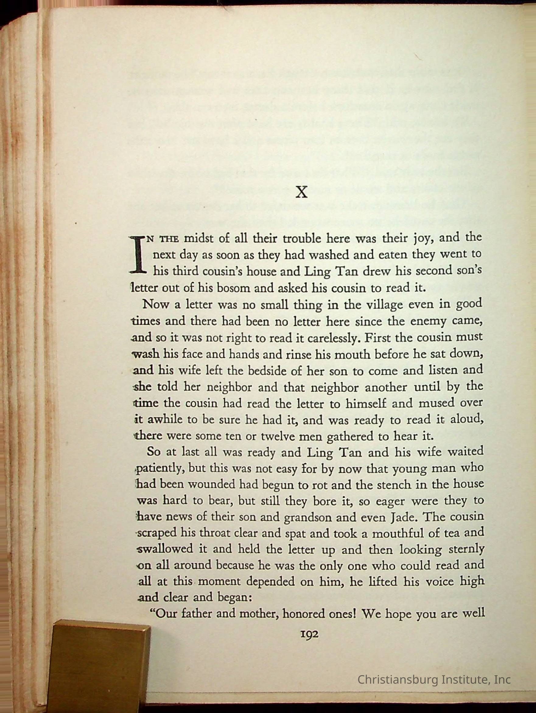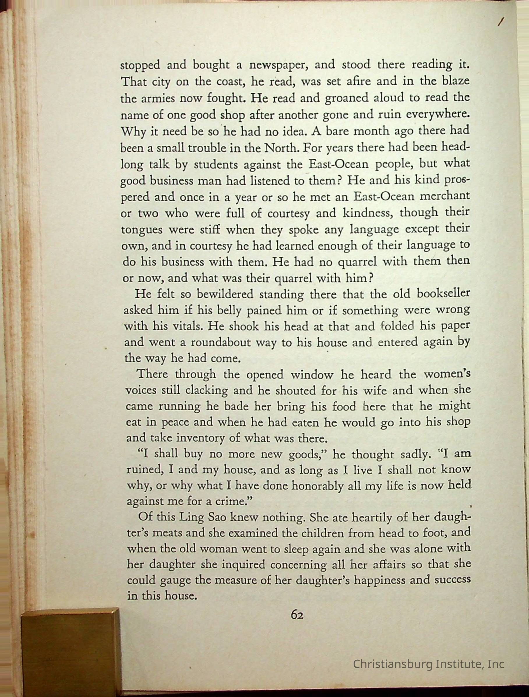 Dragon Seed, written by Pearl S. Buck and published in the year 1942. This book was used by Christiansburg Institute teacher, Viola Charlton in her class.Collection