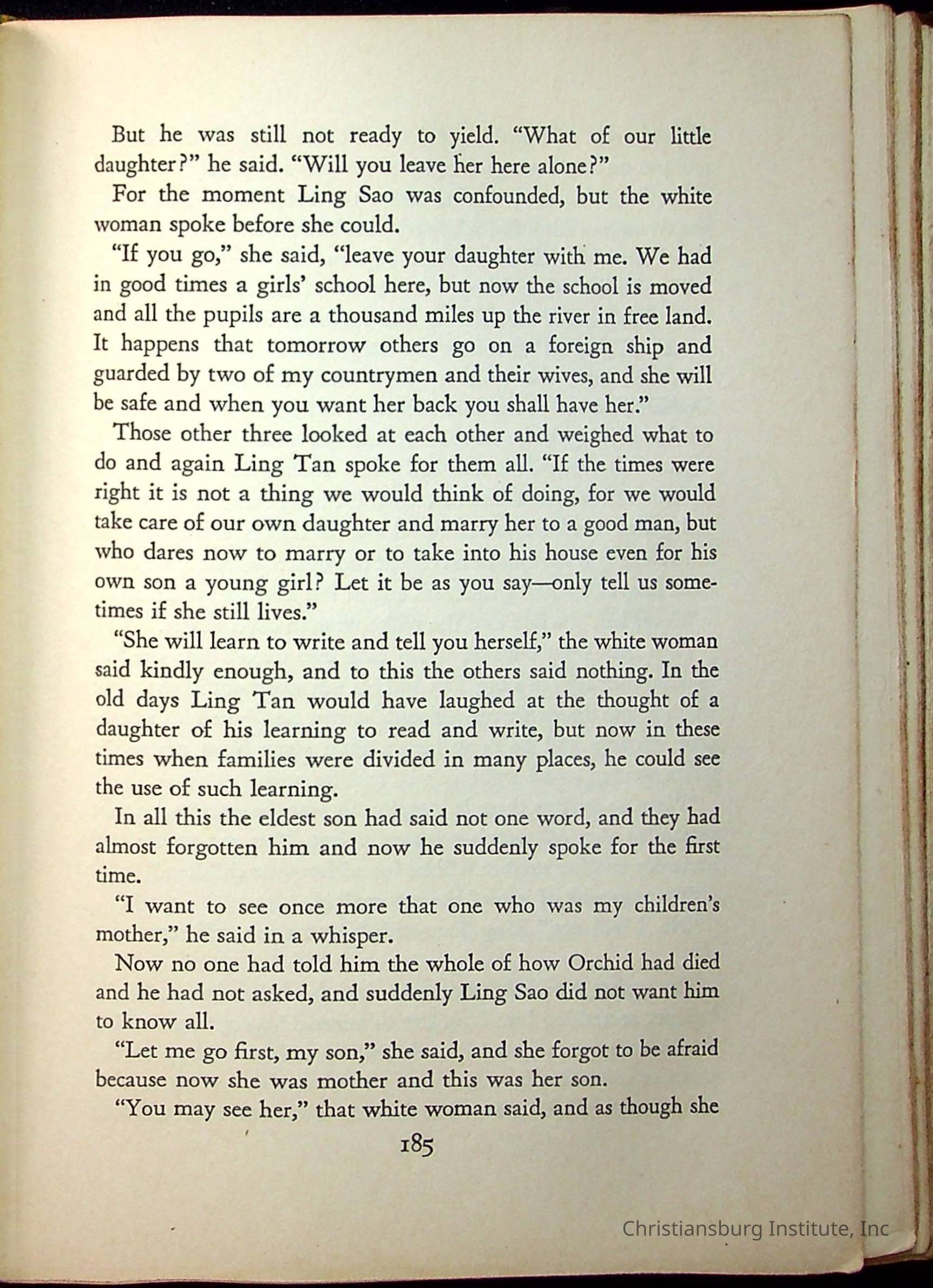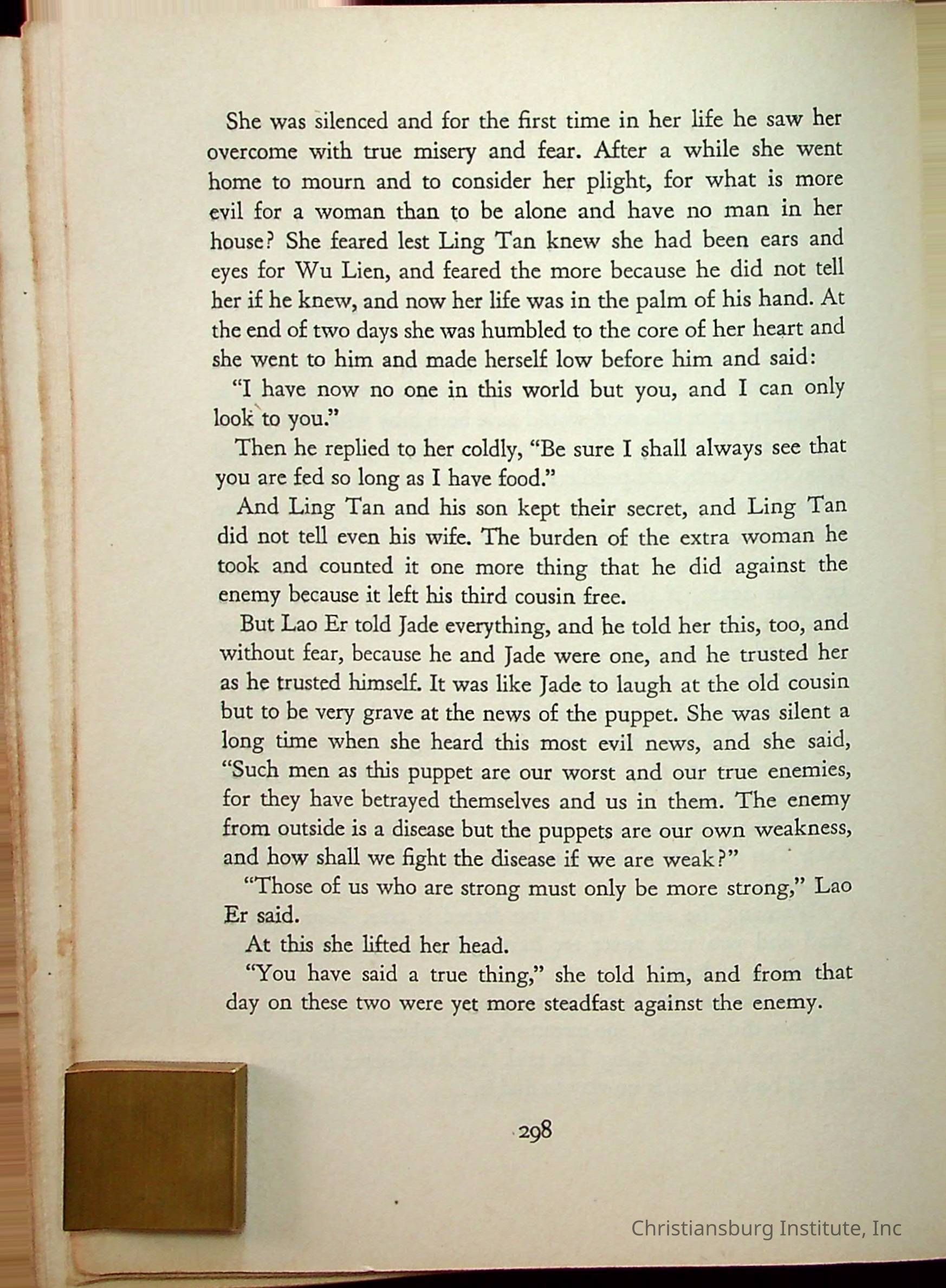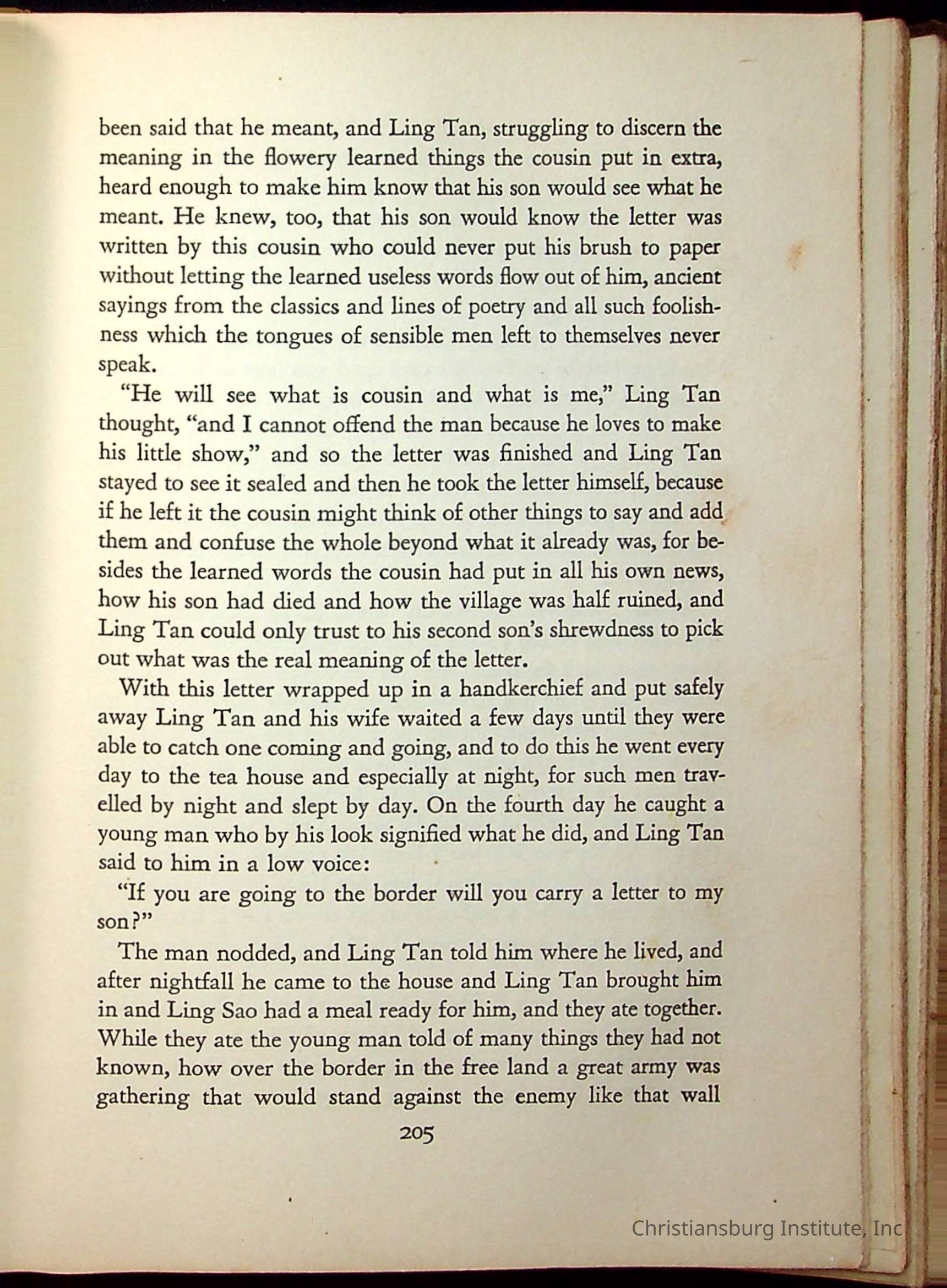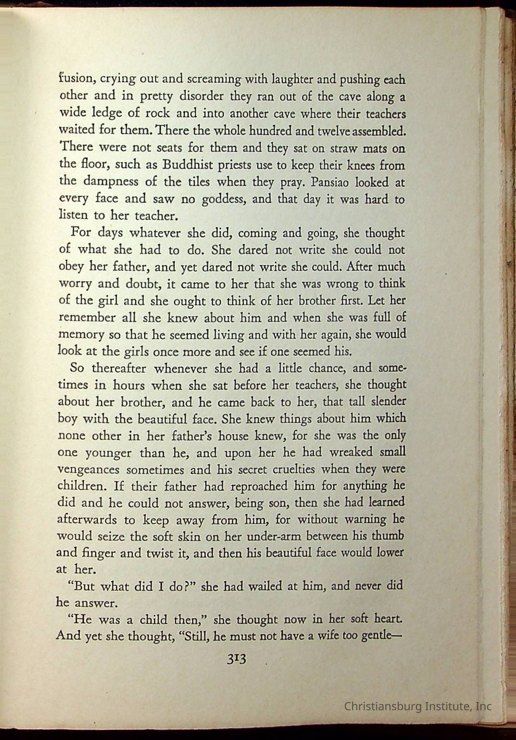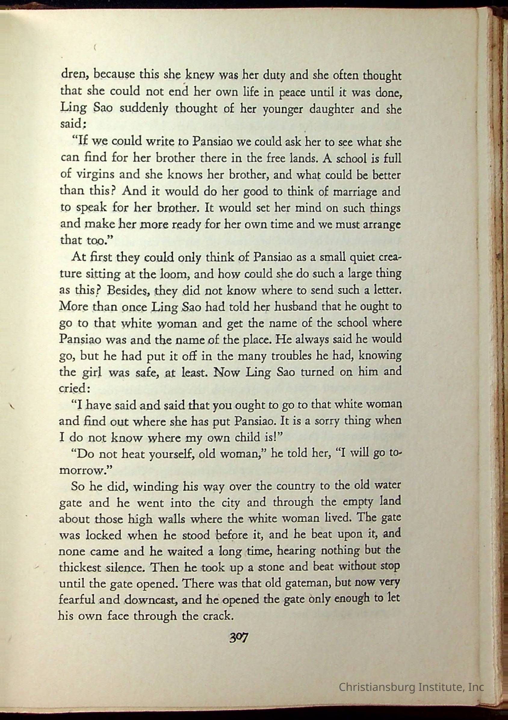 Dragon Seed, written by Pearl S. Buck and published in the year 1942. This book was used by Christiansburg Institute teacher, Viola Charlton in her class.Collection