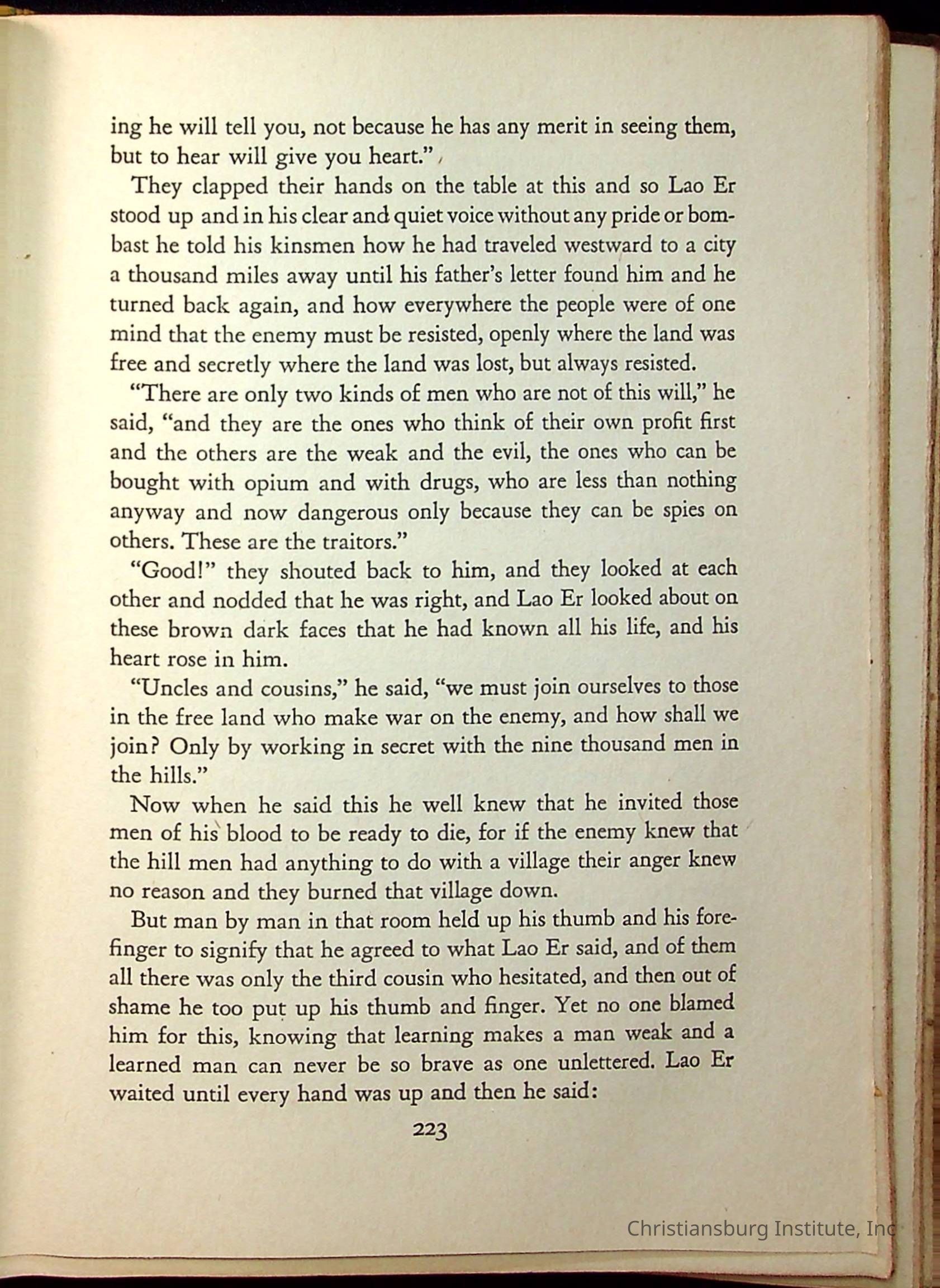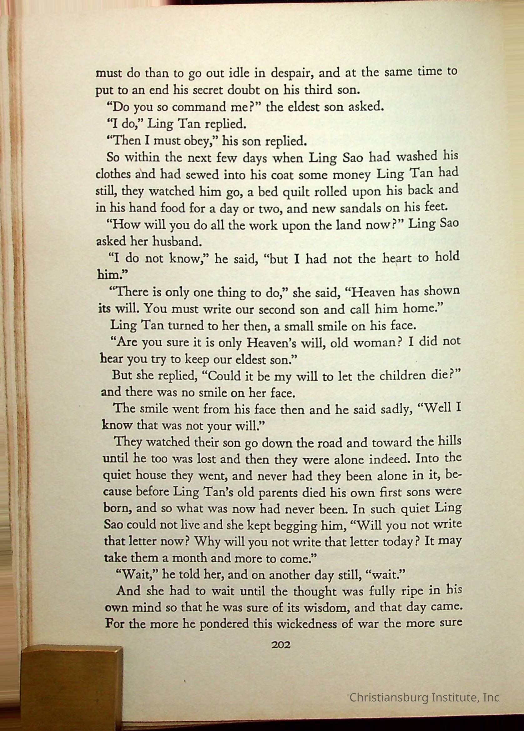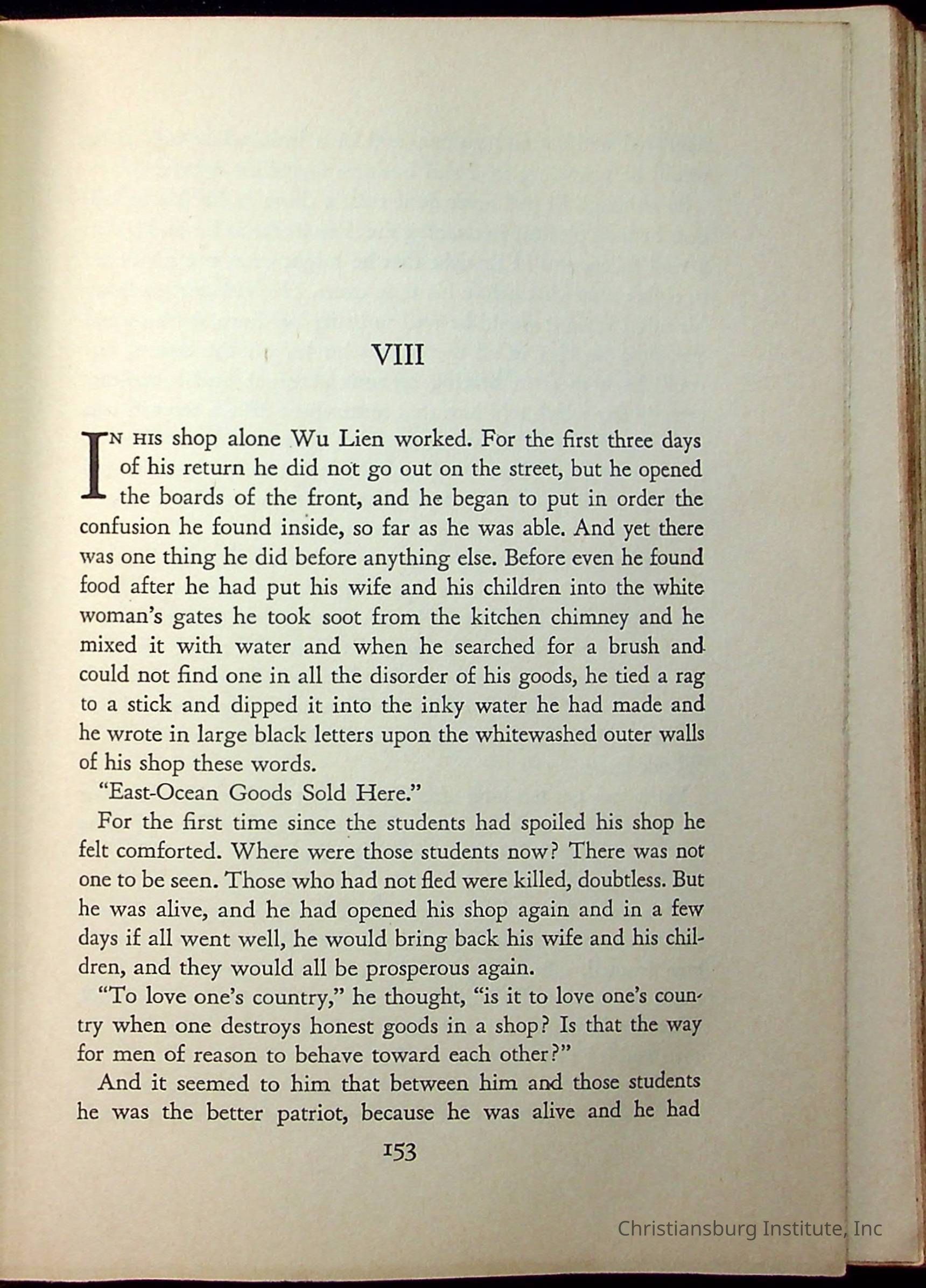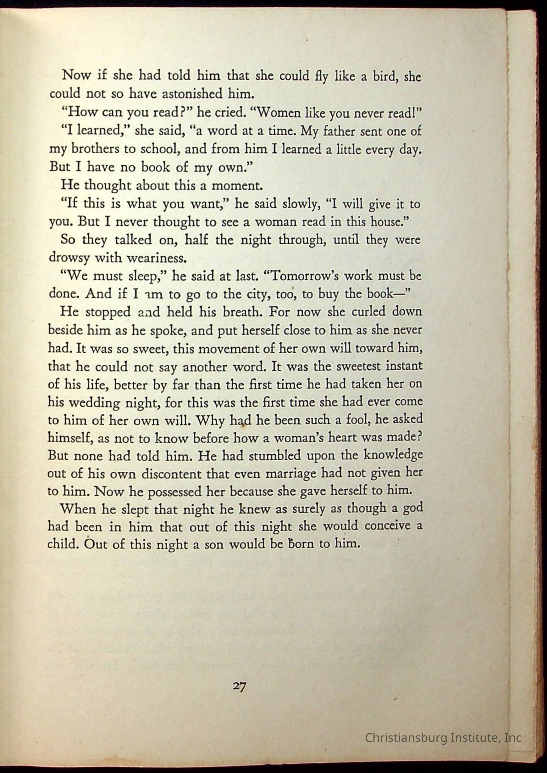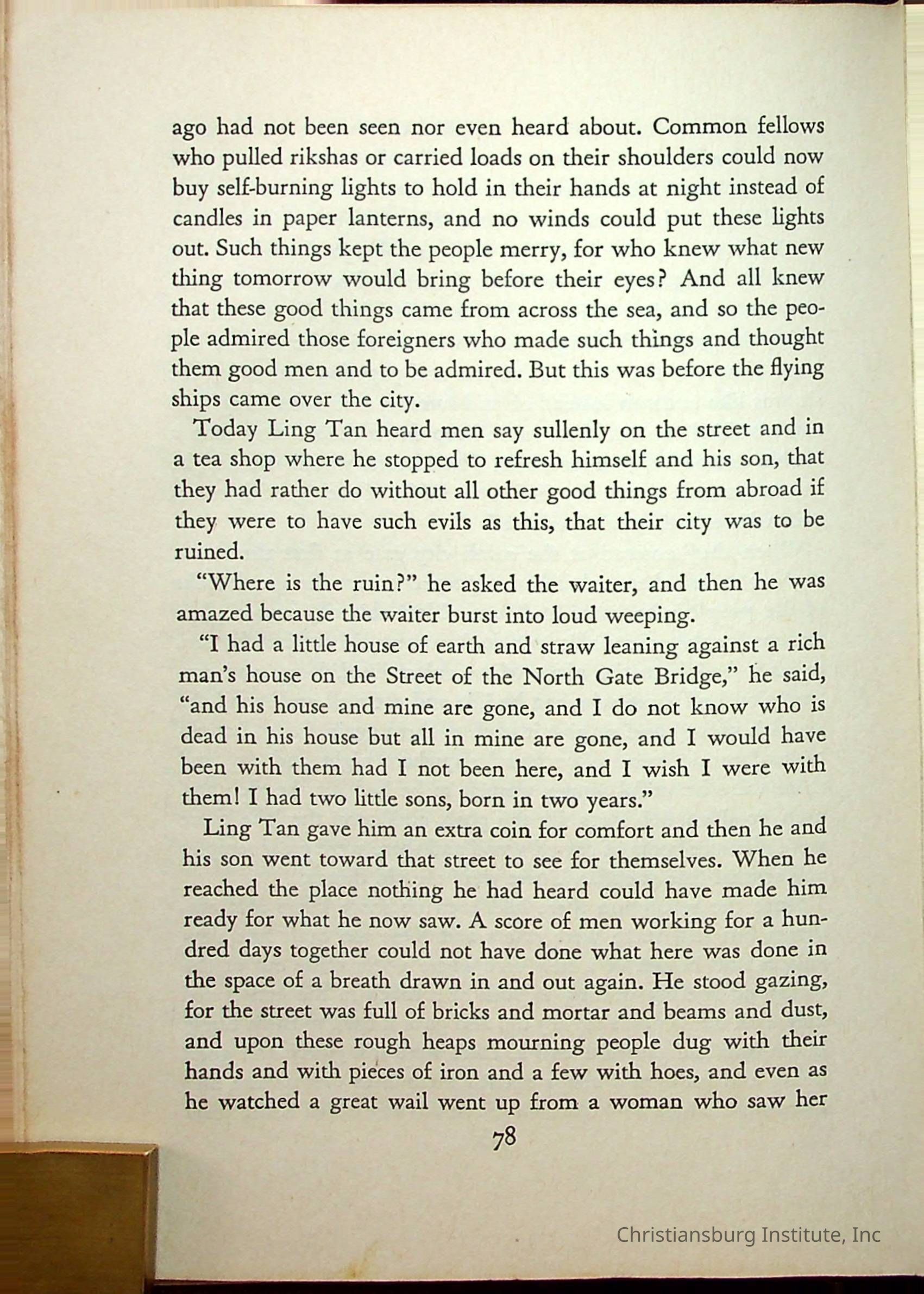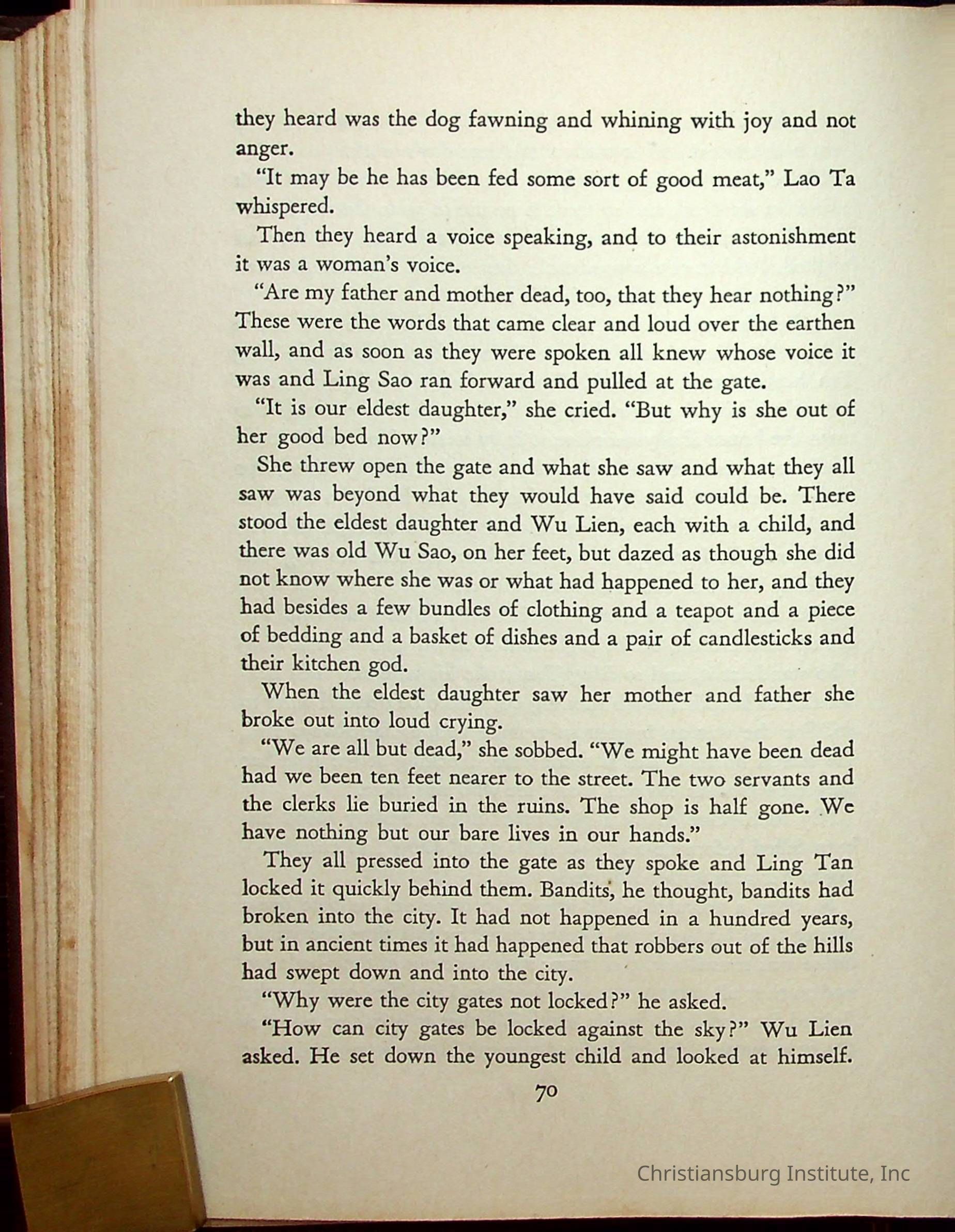 Dragon Seed, written by Pearl S. Buck and published in the year 1942. This book was used by Christiansburg Institute teacher, Viola Charlton in her class.Collection