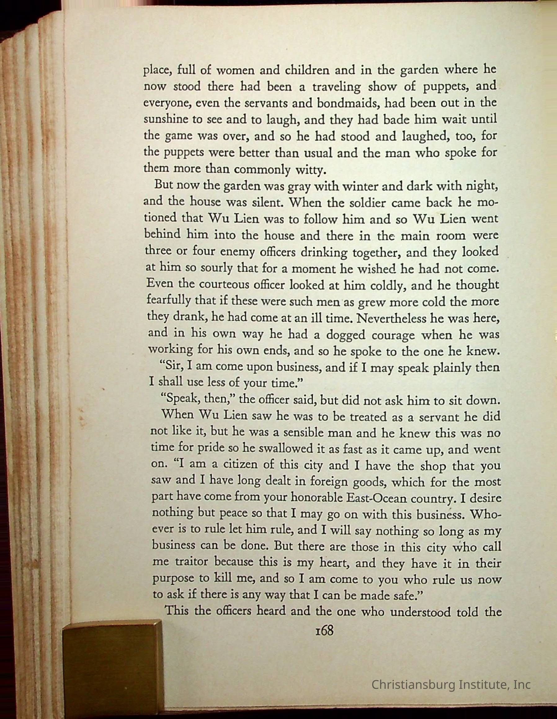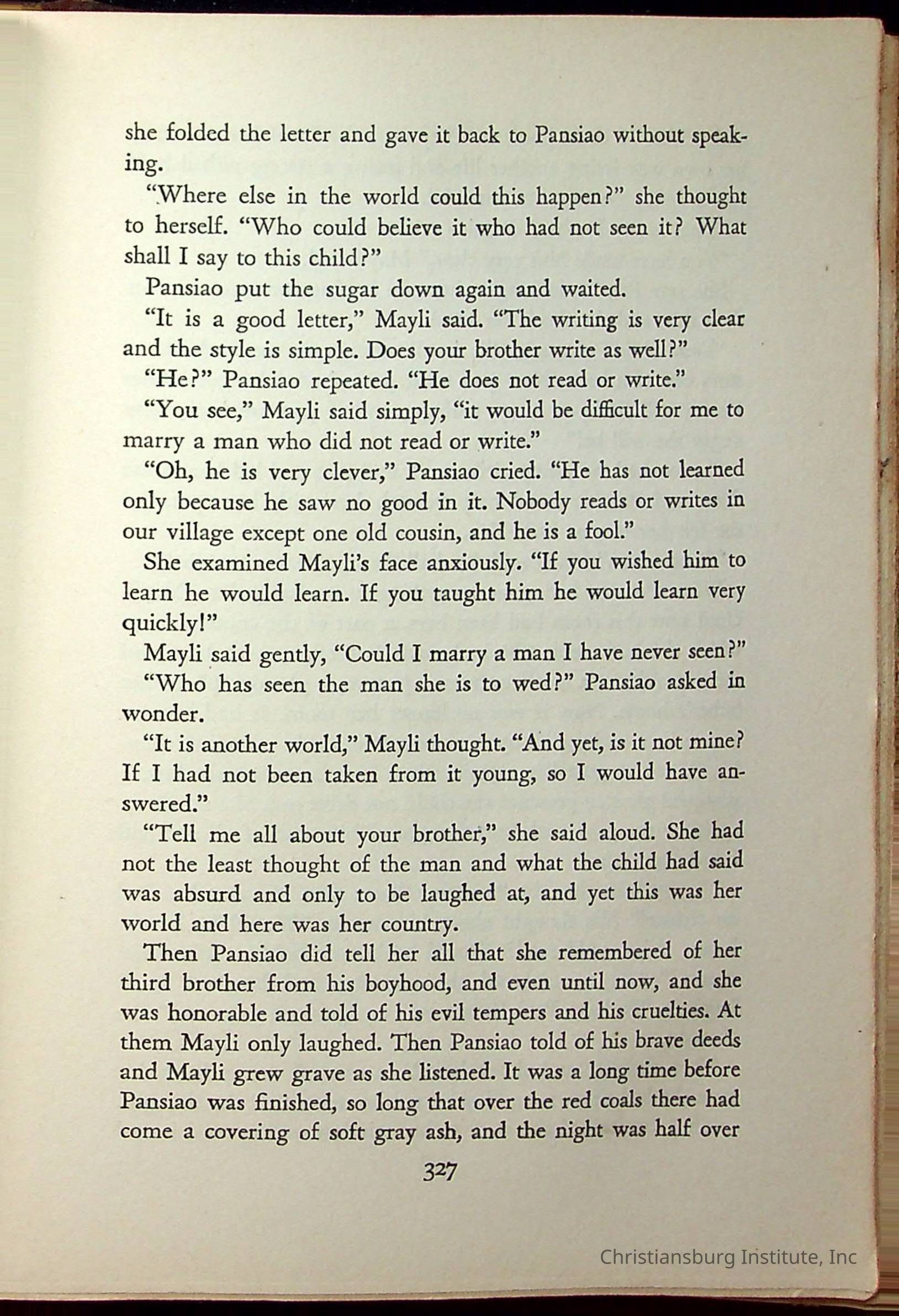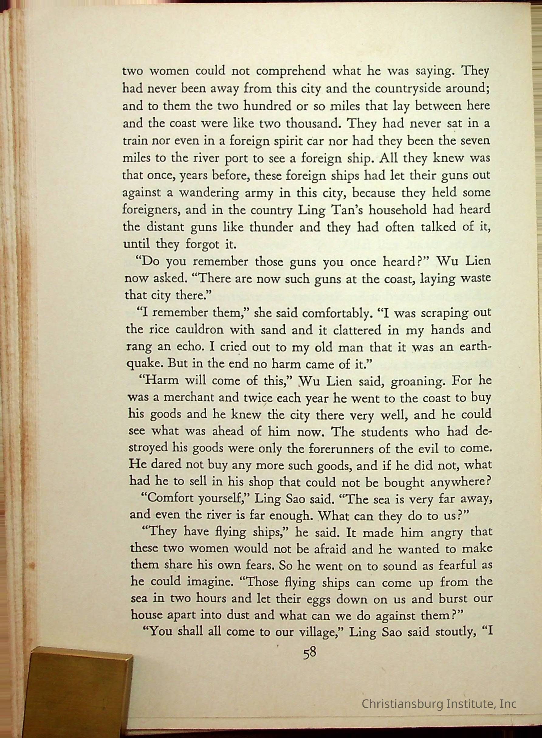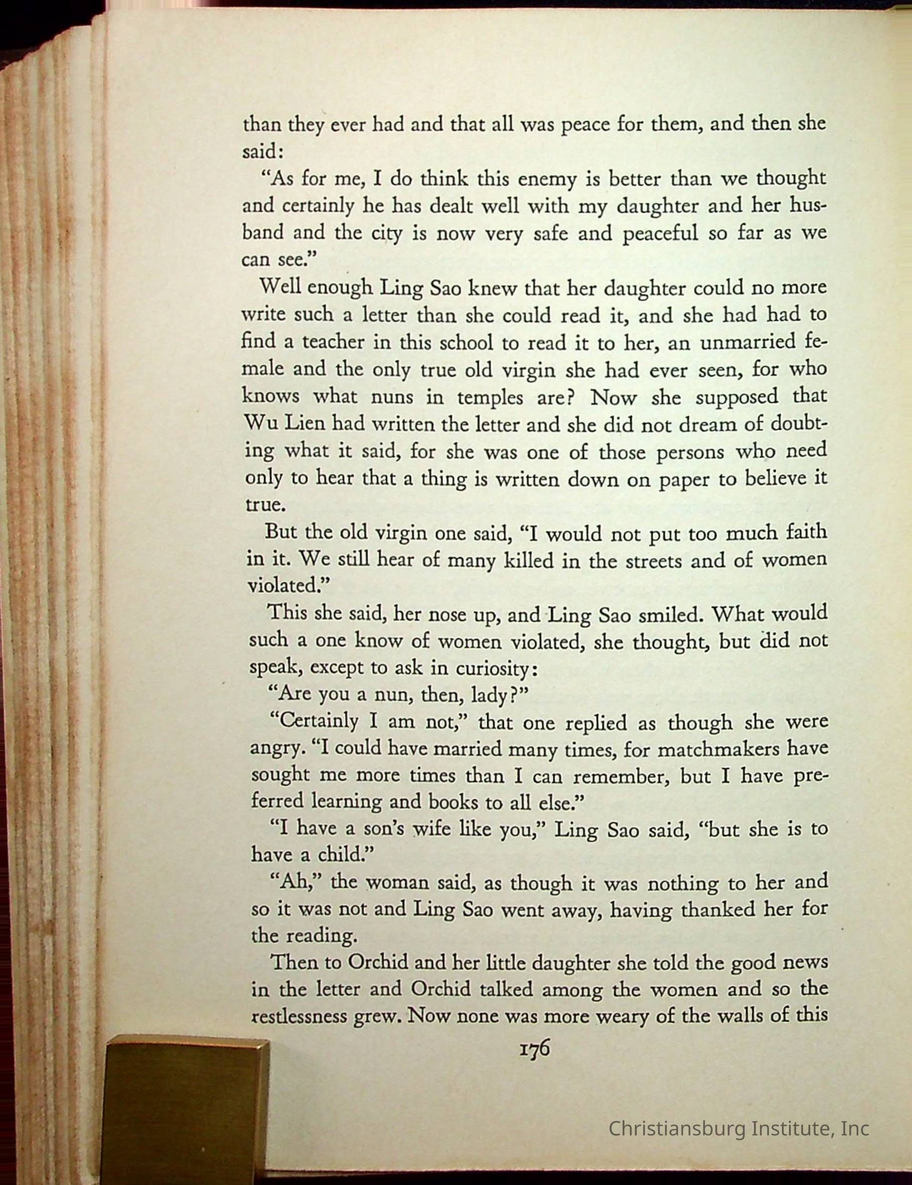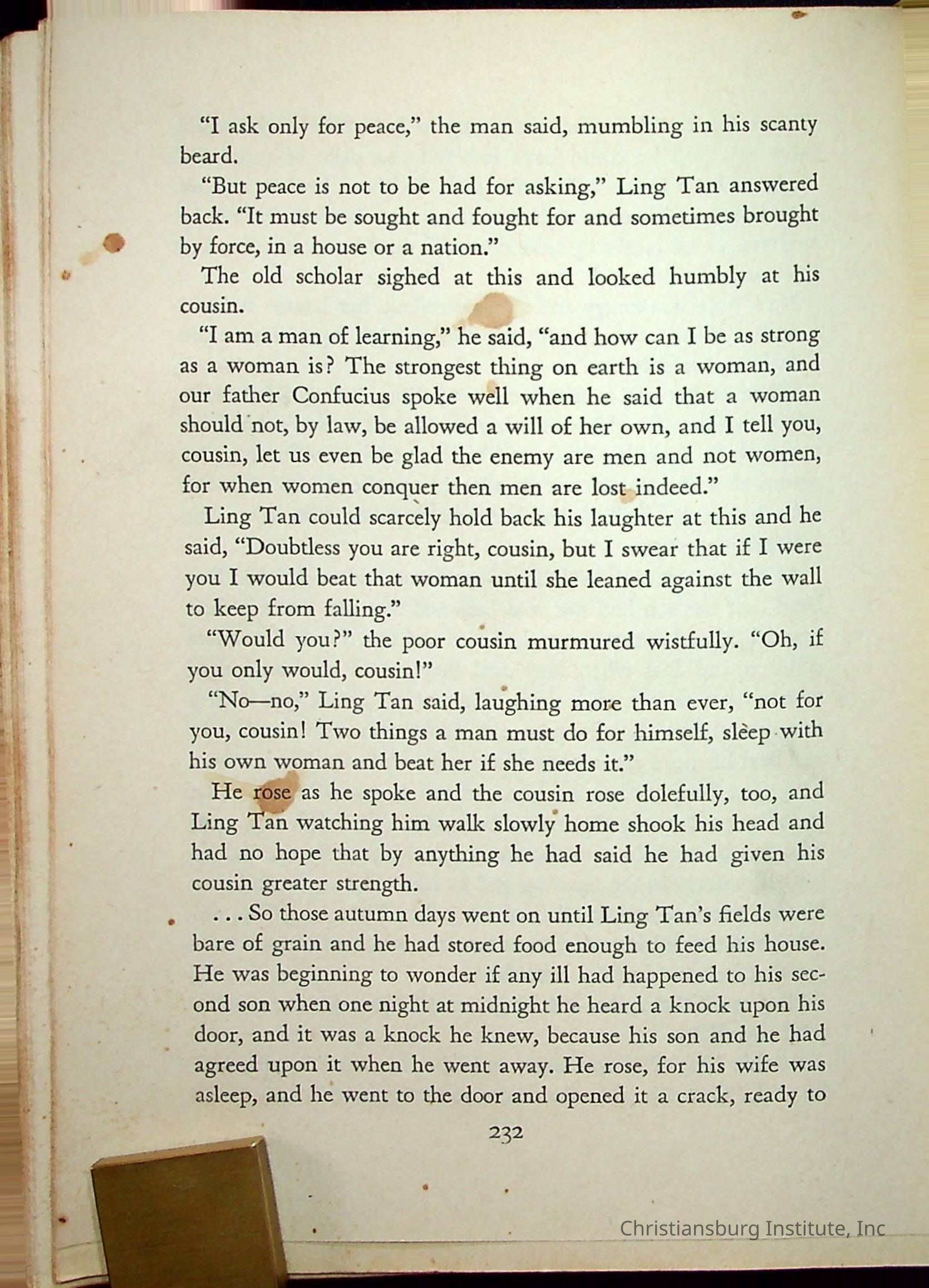 Dragon Seed, written by Pearl S. Buck and published in the year 1942. This book was used by Christiansburg Institute teacher, Viola Charlton in her class.Collection