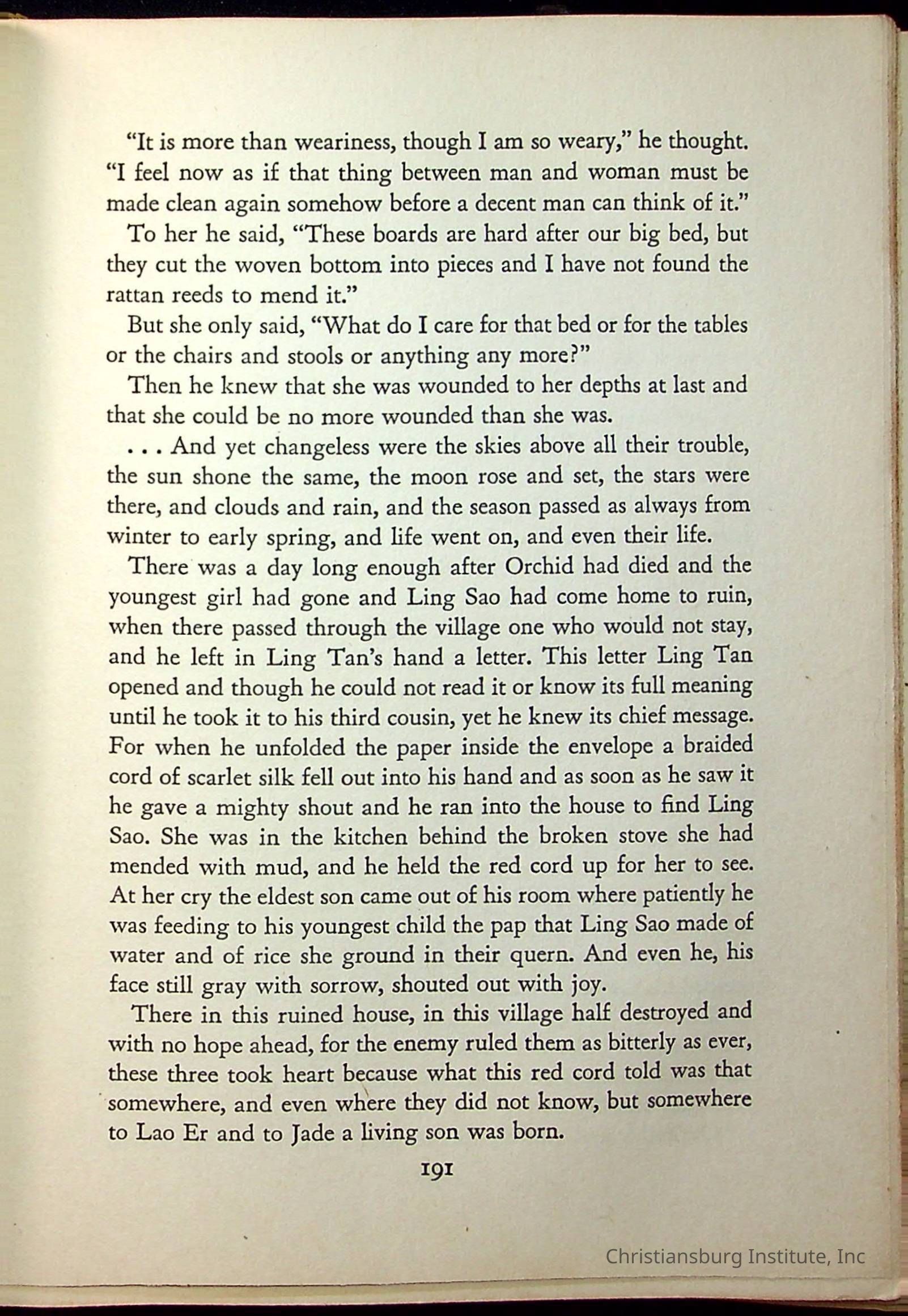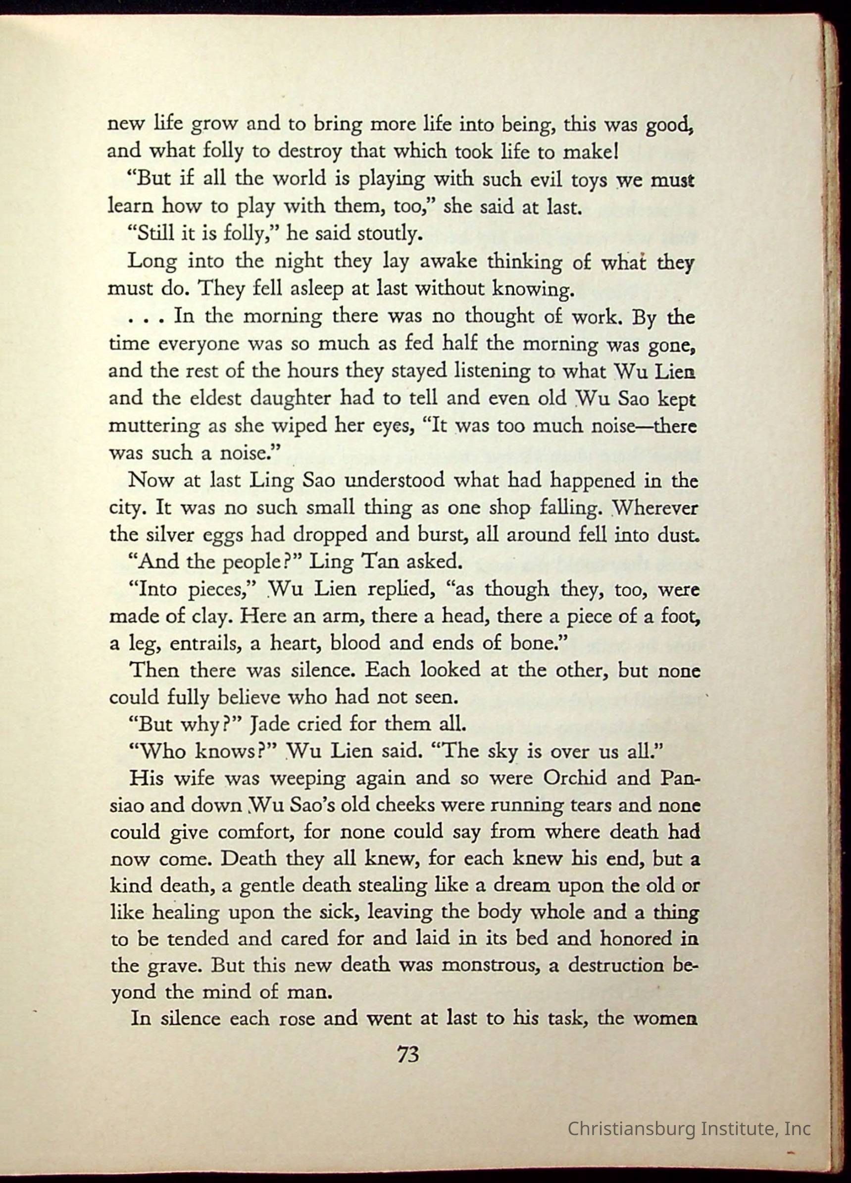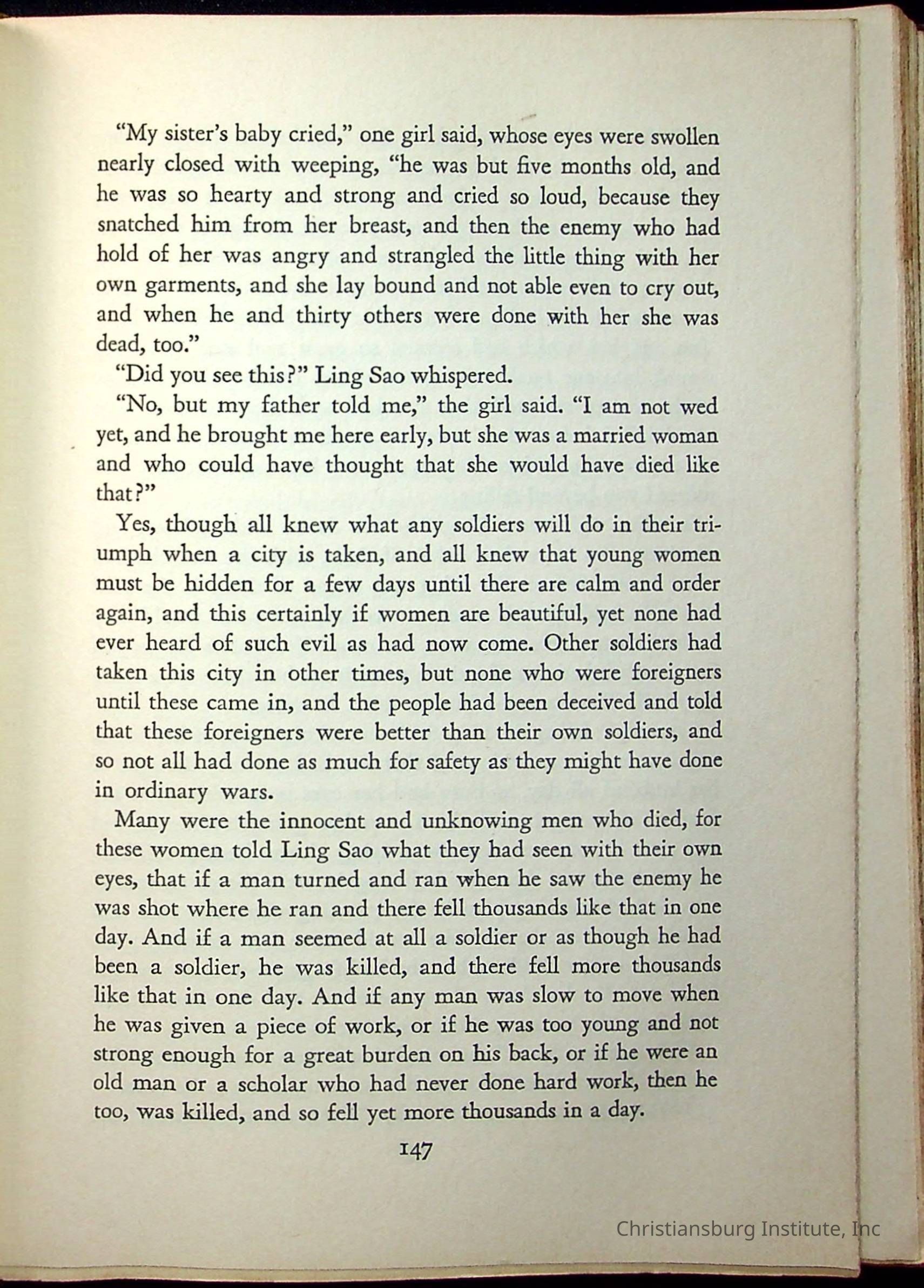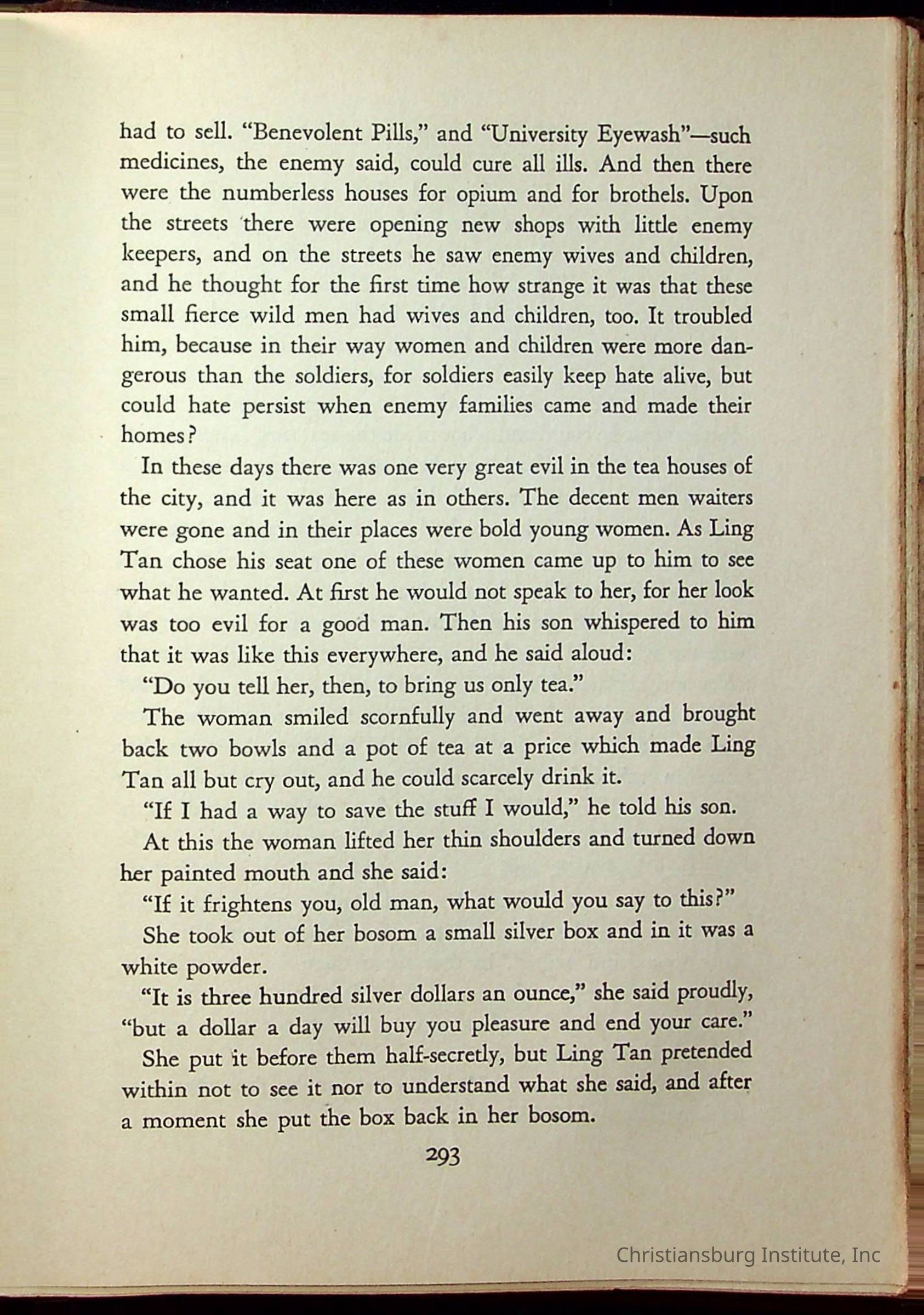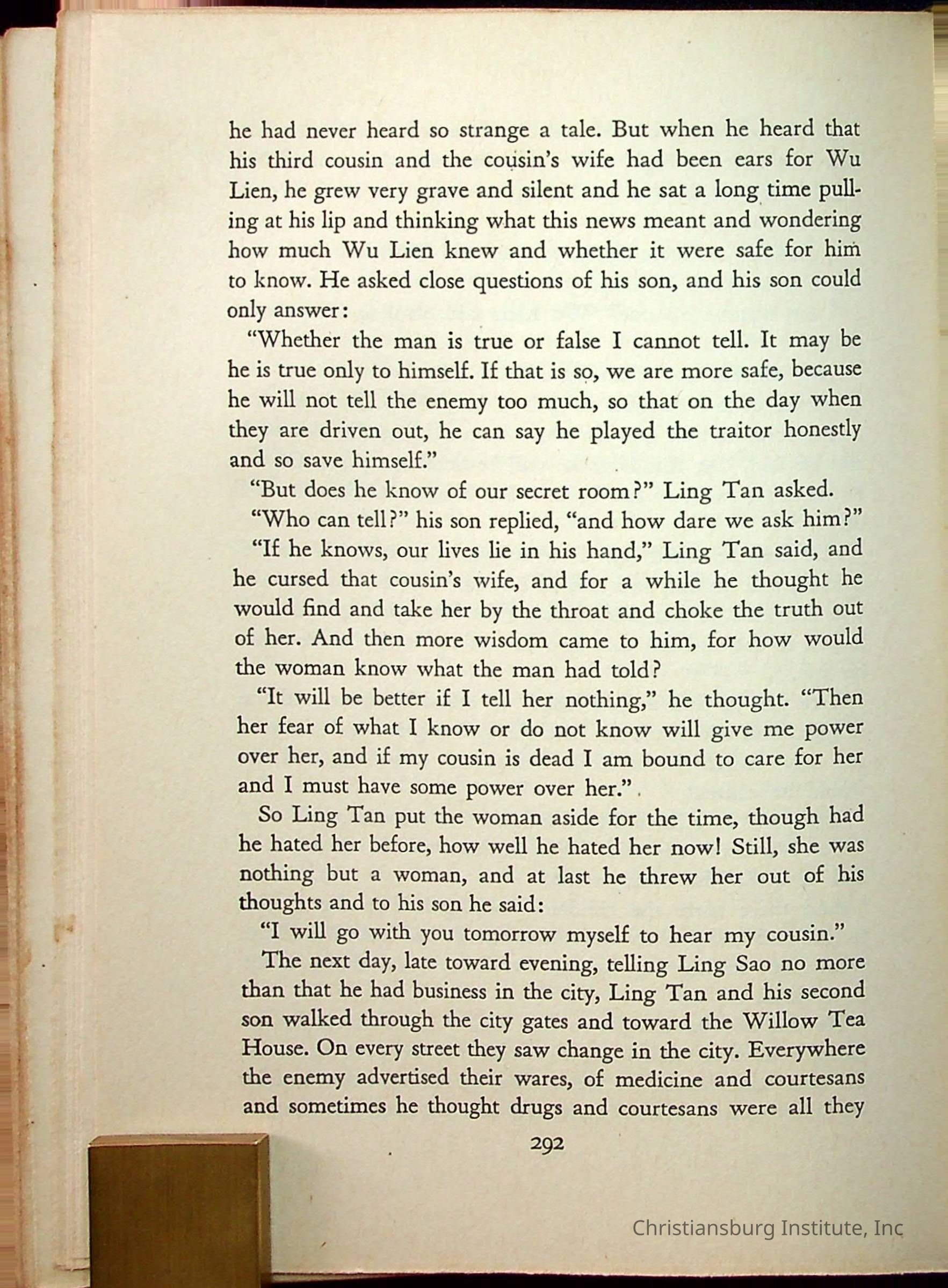 Dragon Seed, written by Pearl S. Buck and published in the year 1942. This book was used by Christiansburg Institute teacher, Viola Charlton in her class.Collection
