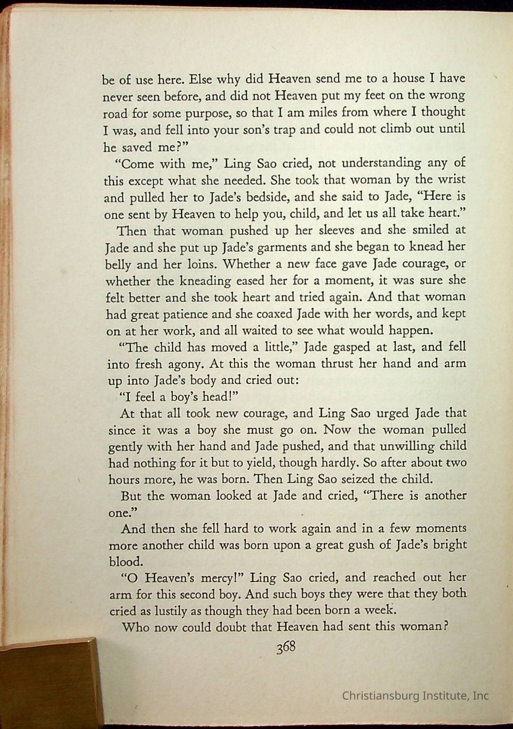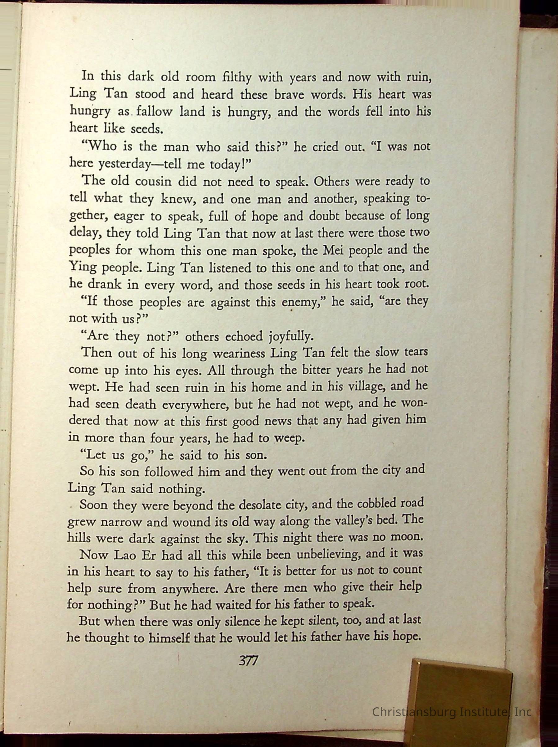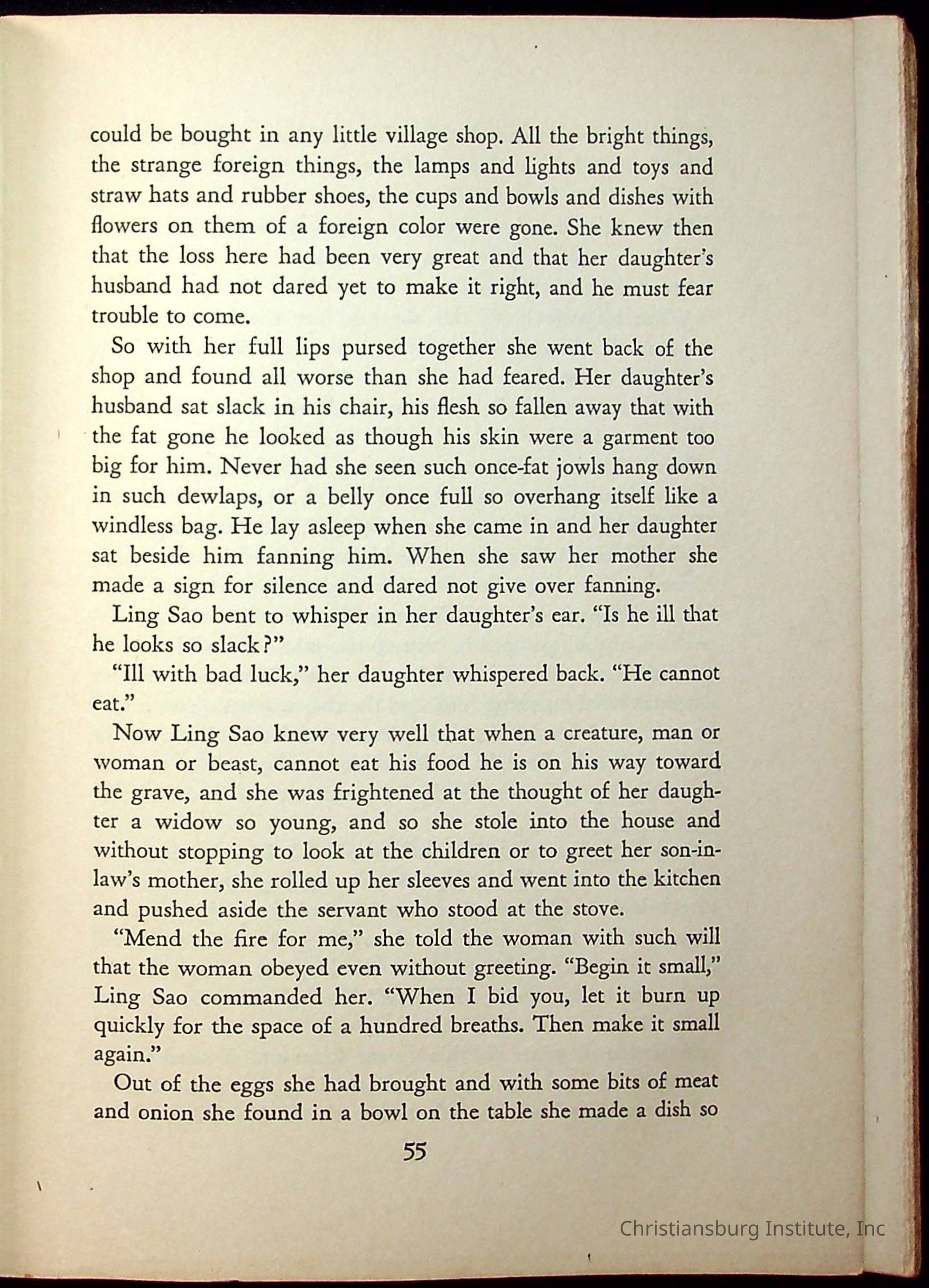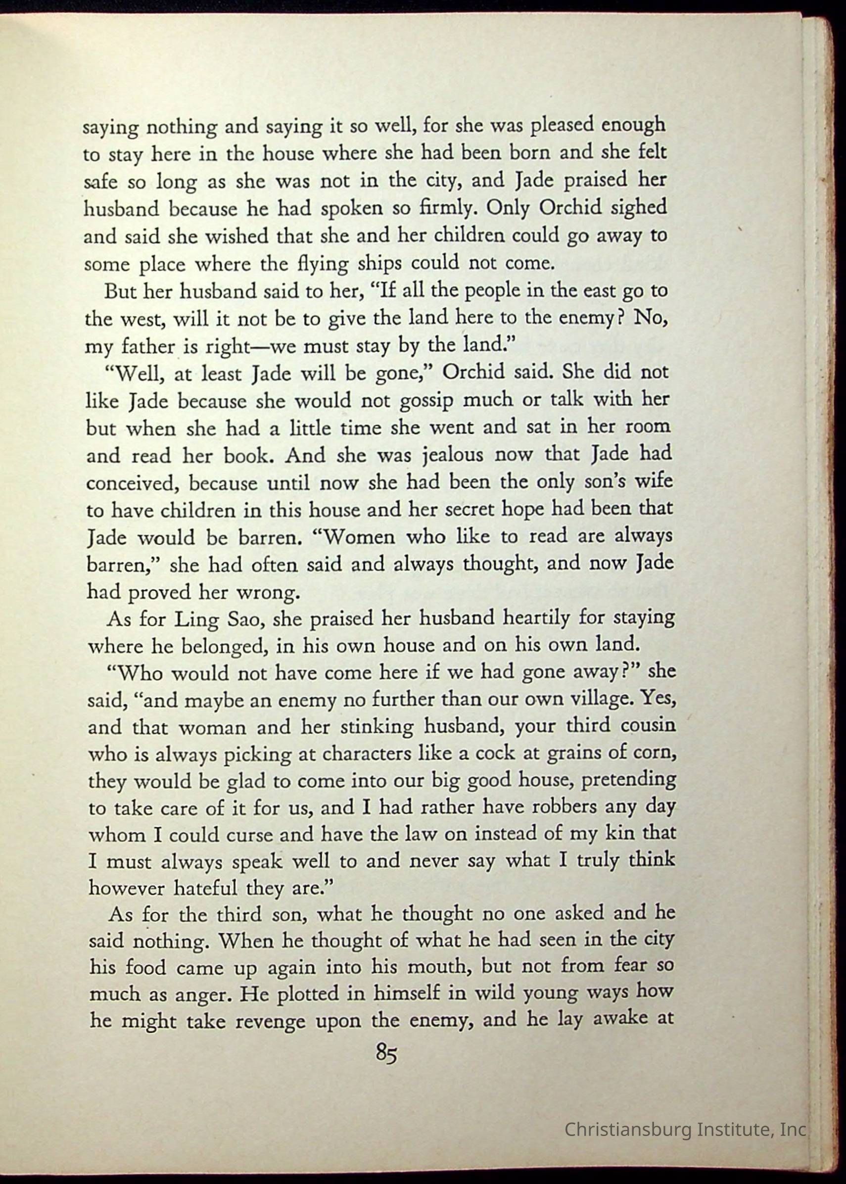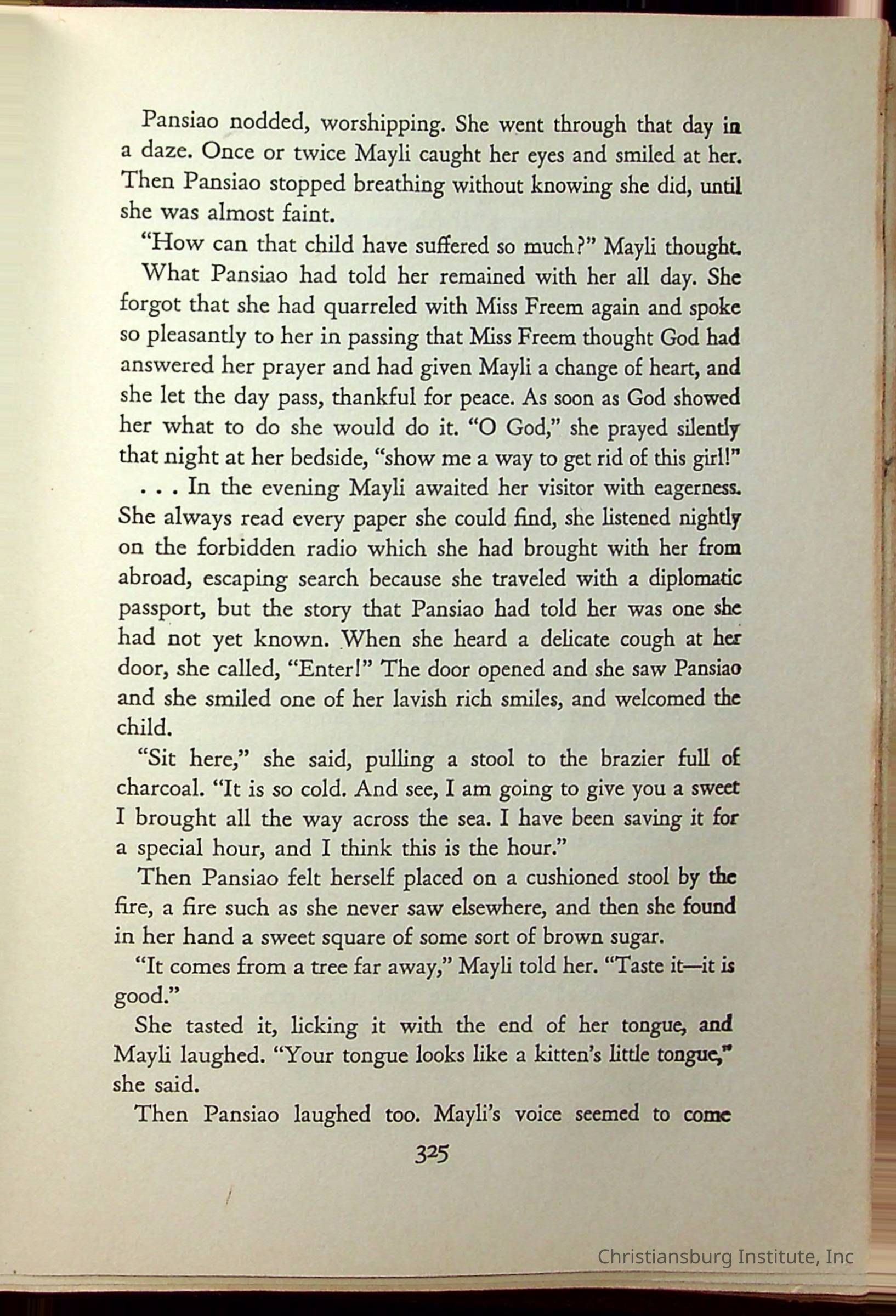Dragon Seed, written by Pearl S. Buck and published in the year 1942. This book was used by Christiansburg Institute teacher, Viola Charlton in her class.Collection