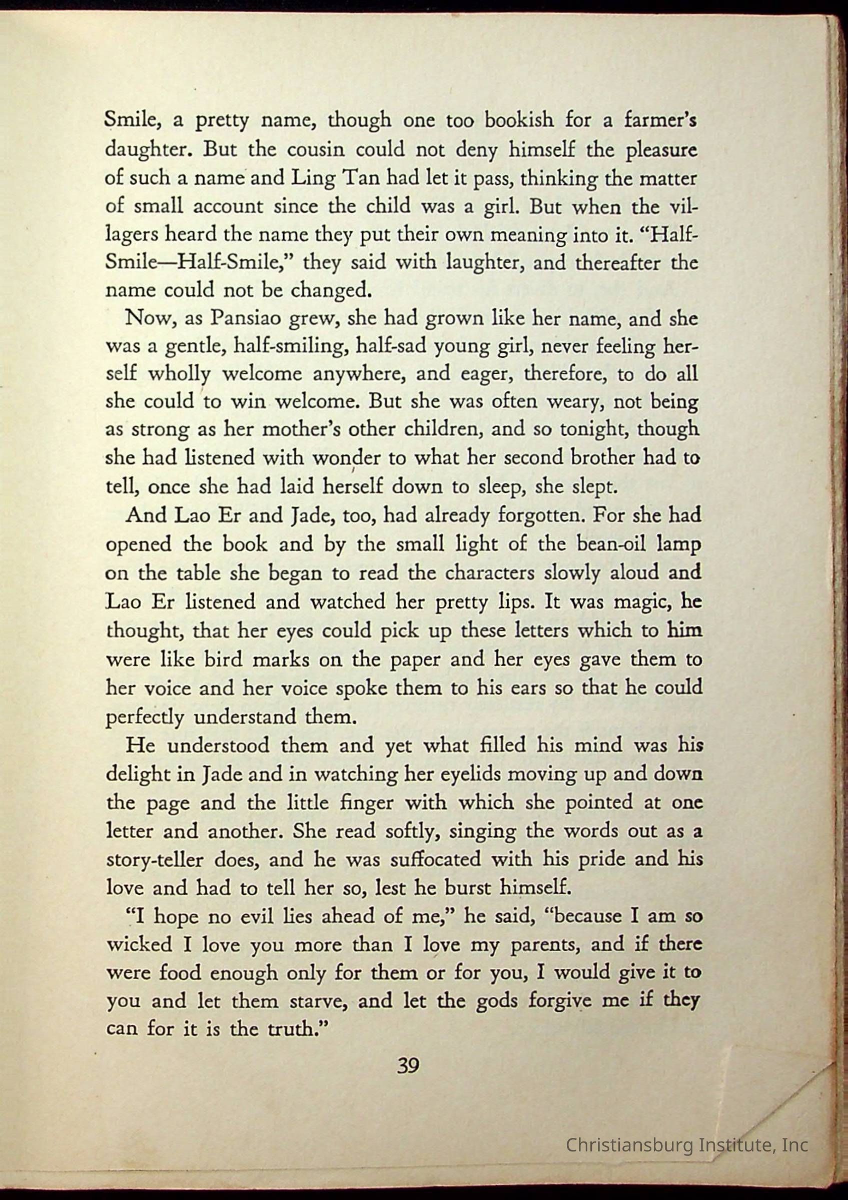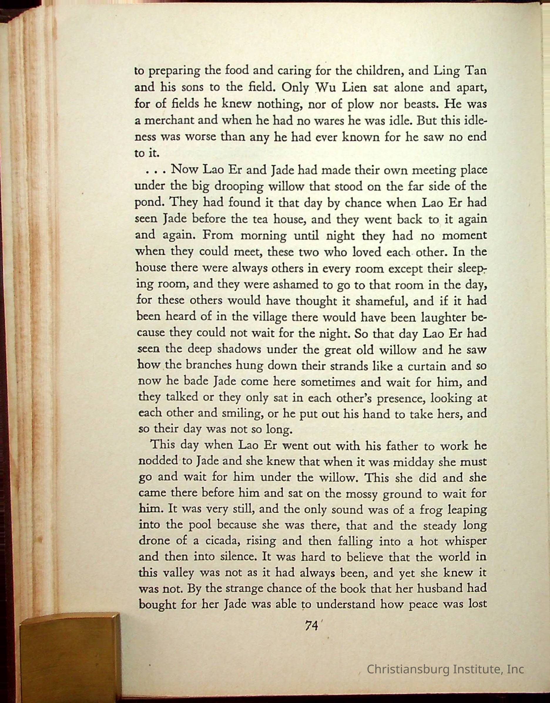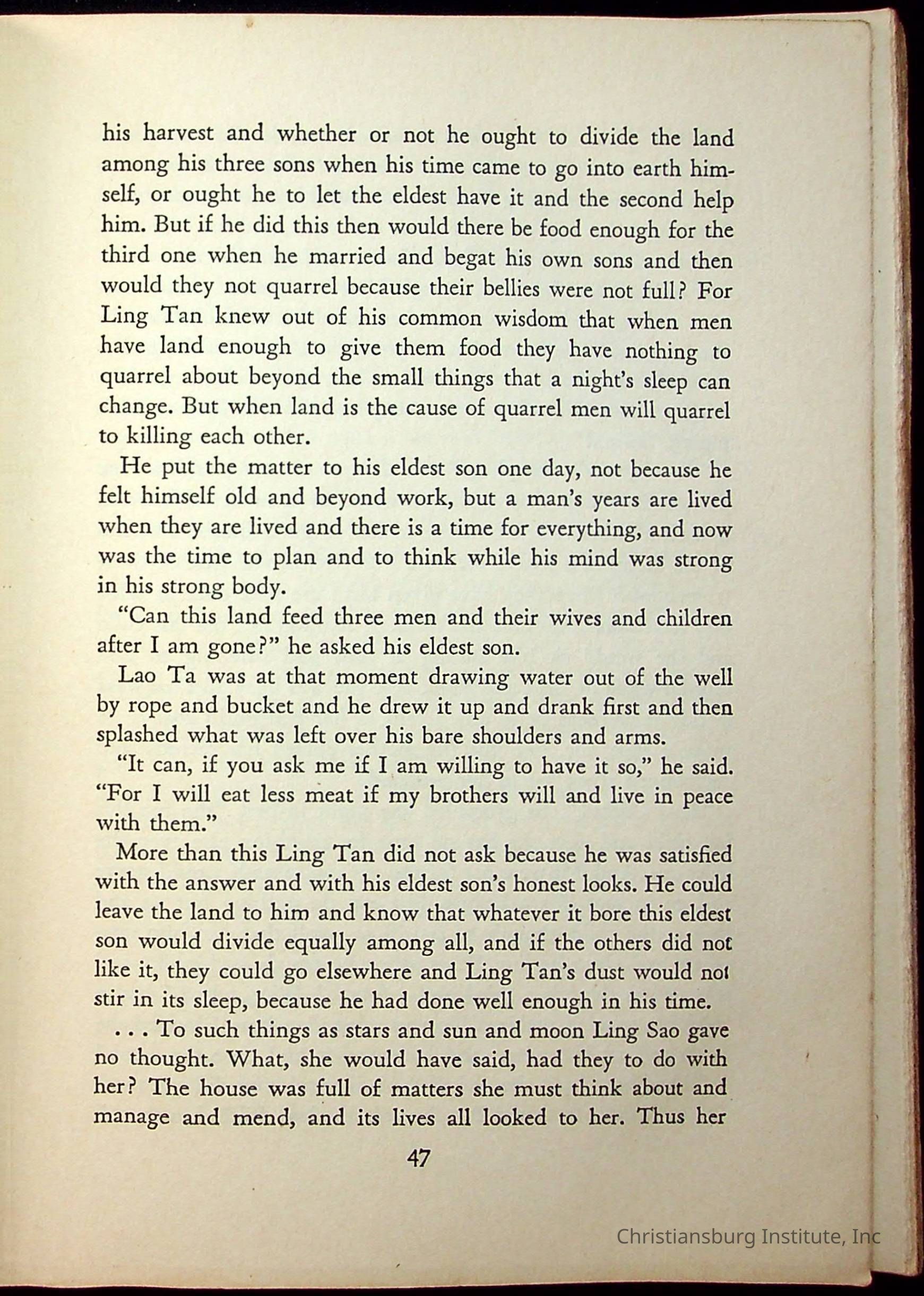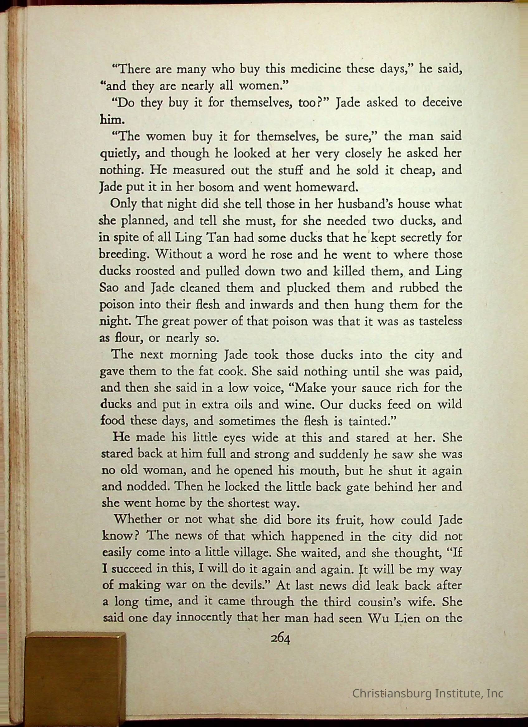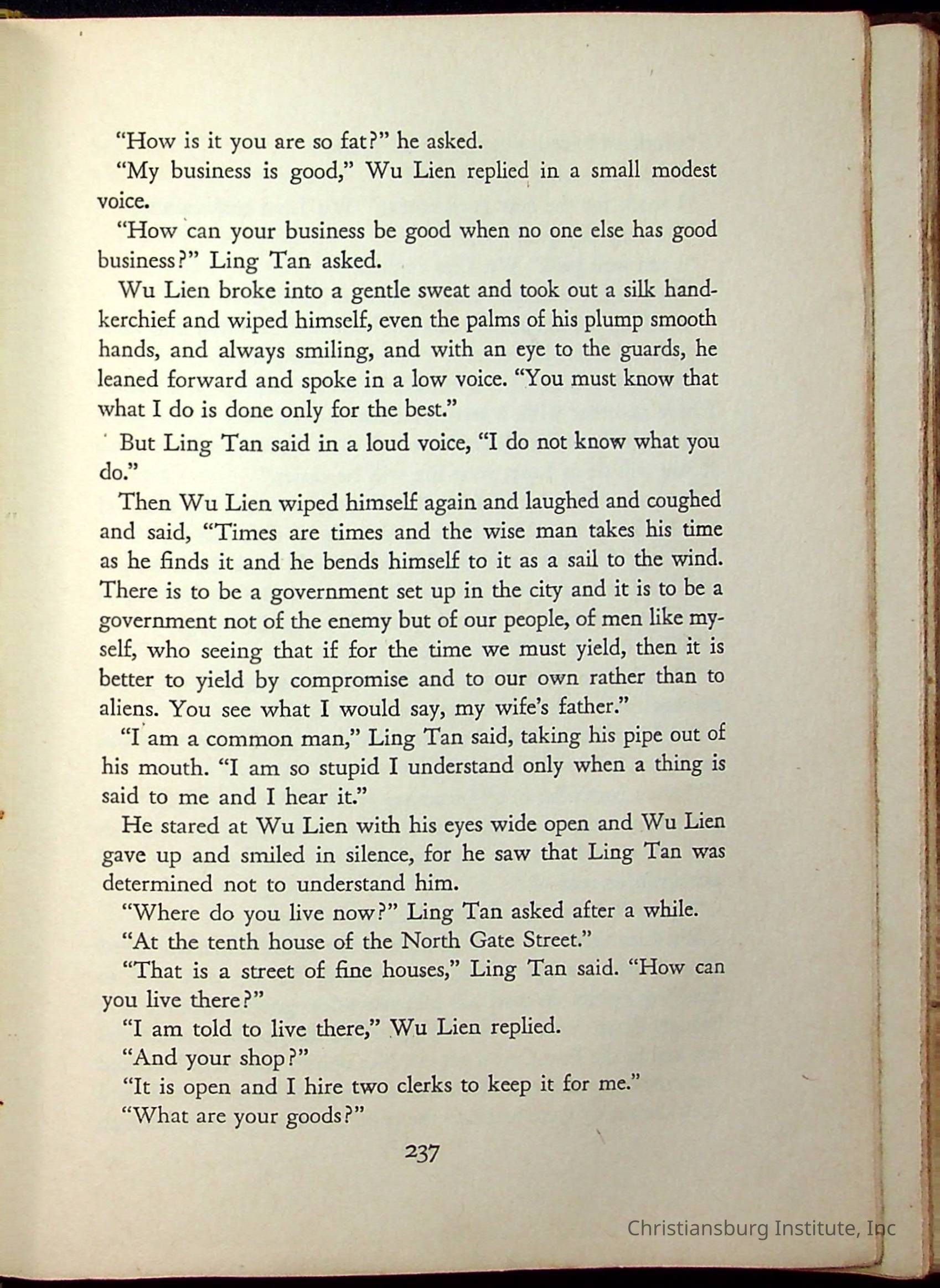 Dragon Seed, written by Pearl S. Buck and published in the year 1942. This book was used by Christiansburg Institute teacher, Viola Charlton in her class.Collection
