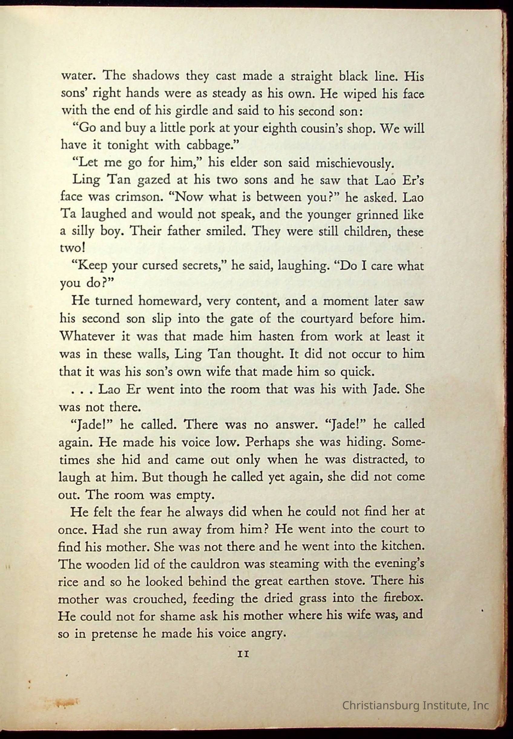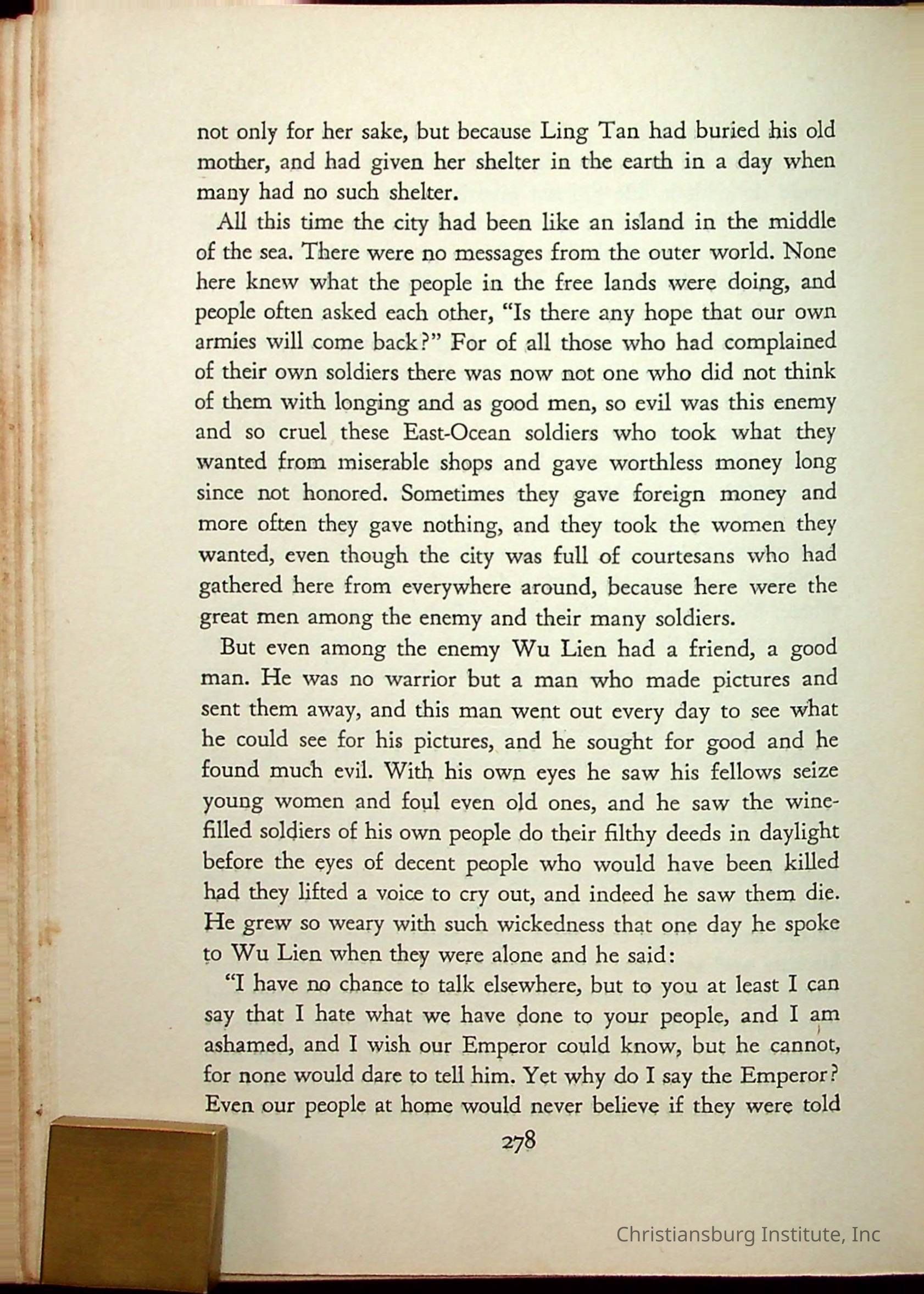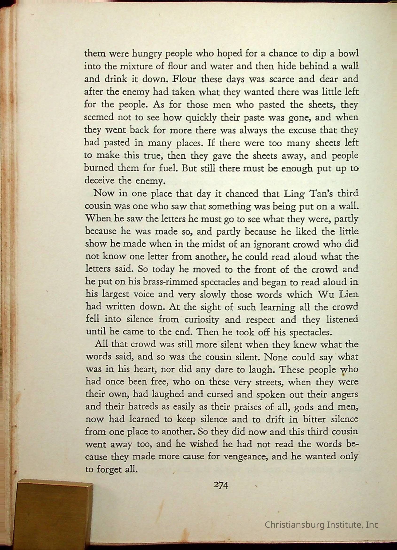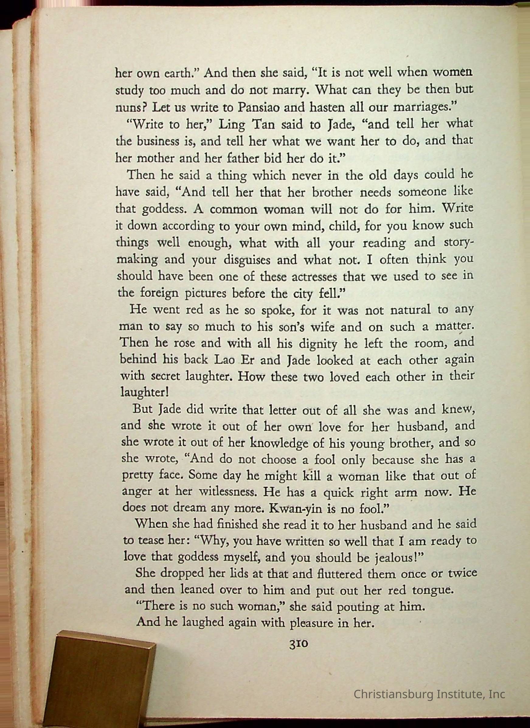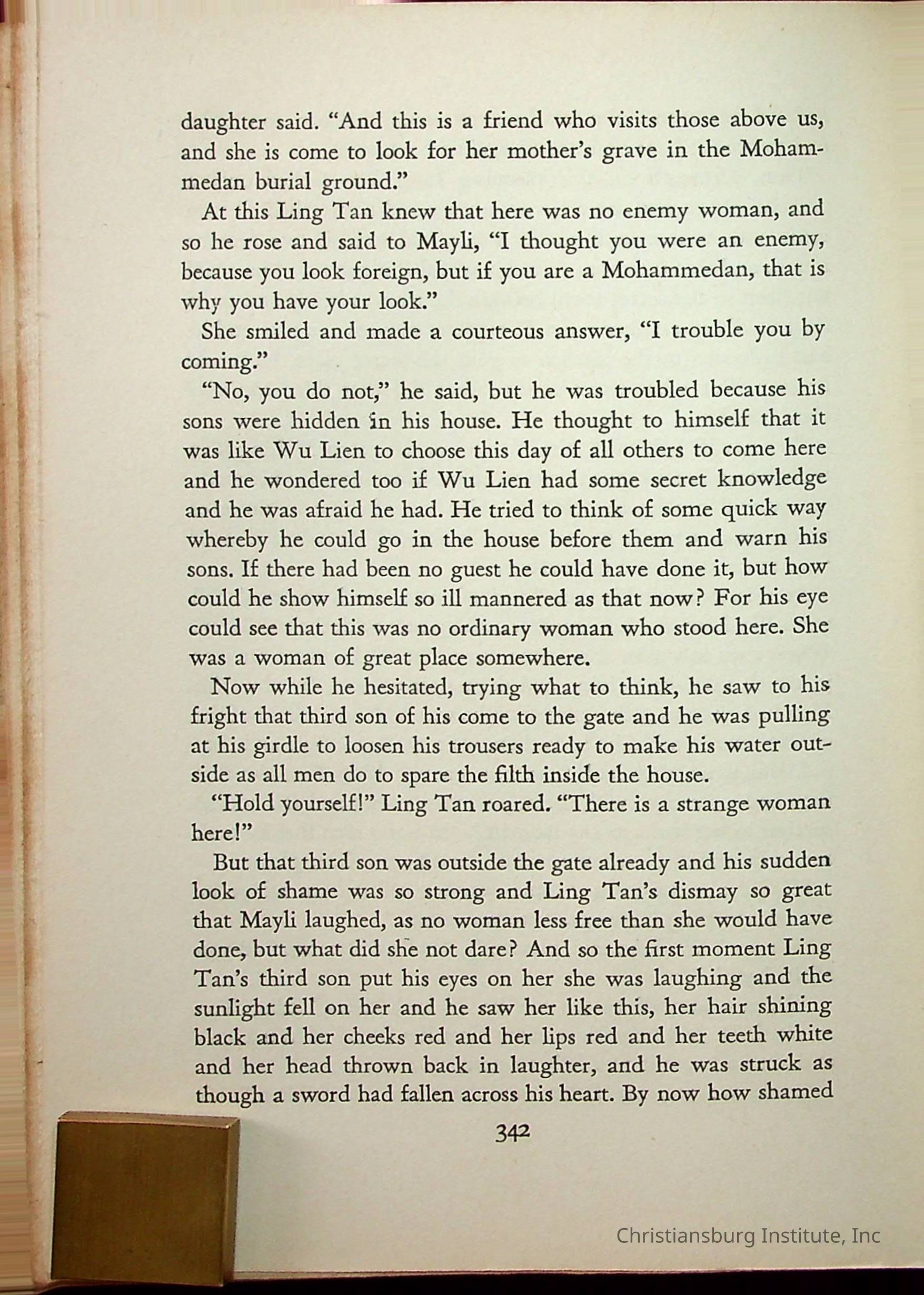 Dragon Seed, written by Pearl S. Buck and published in the year 1942. This book was used by Christiansburg Institute teacher, Viola Charlton in her class.Collection