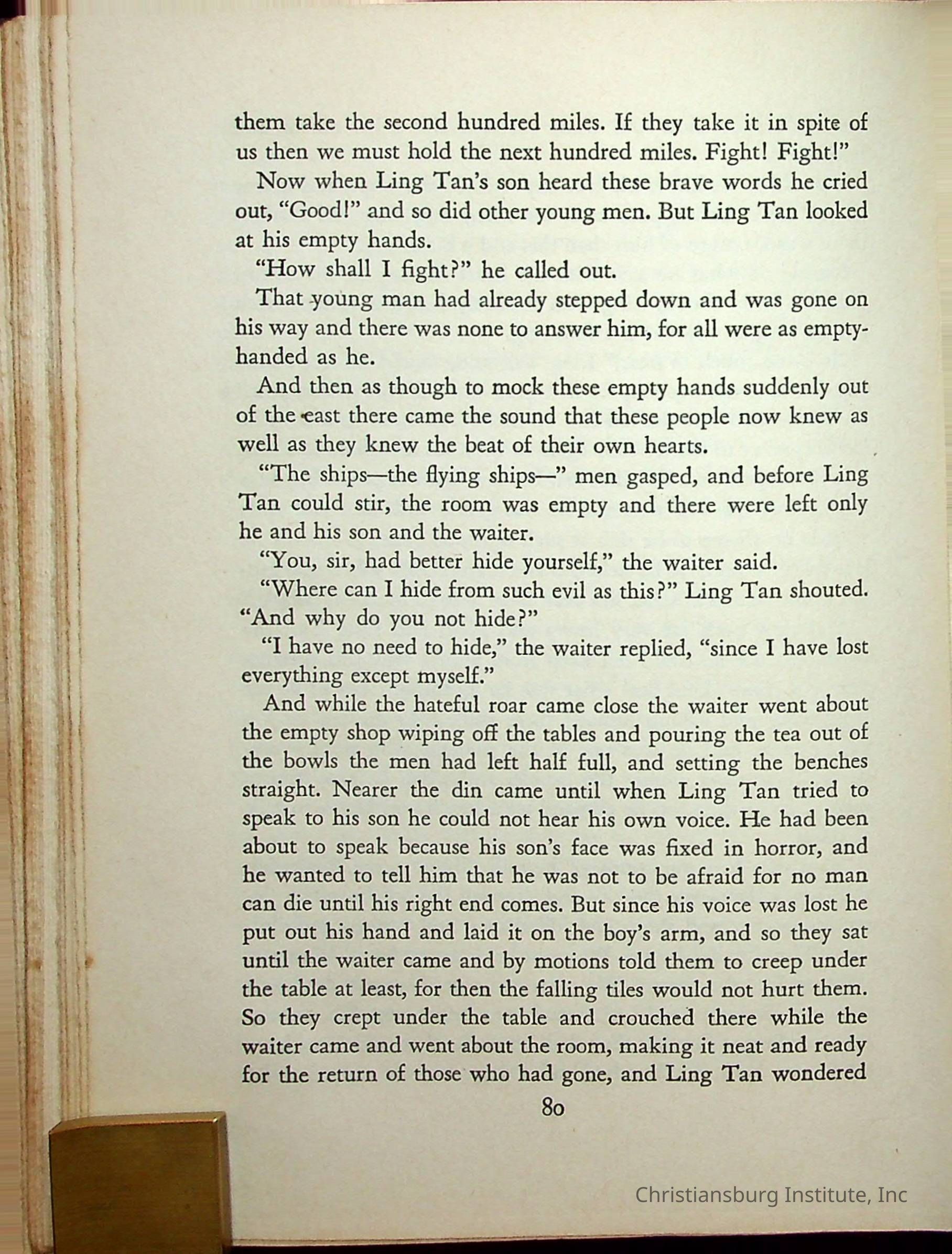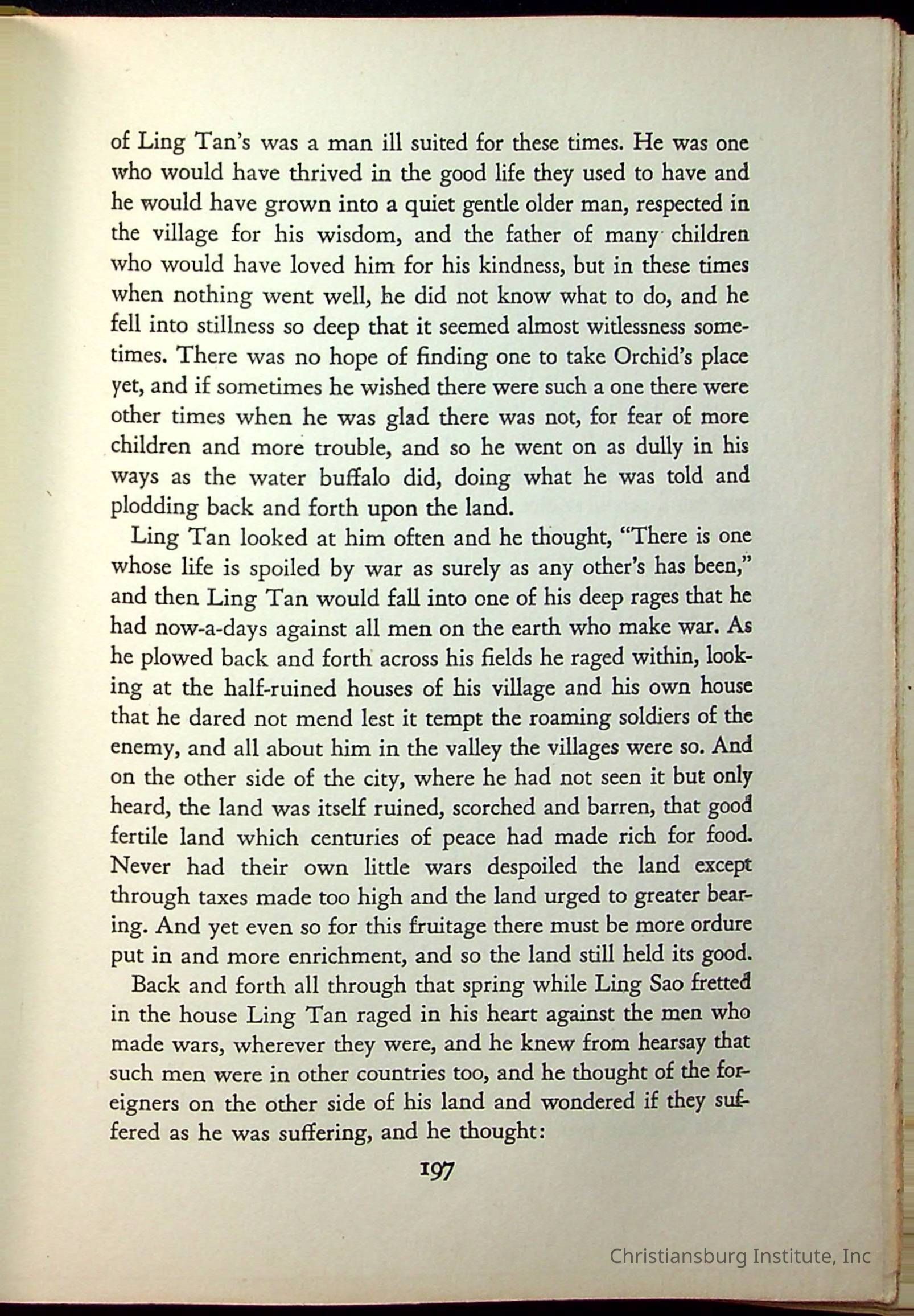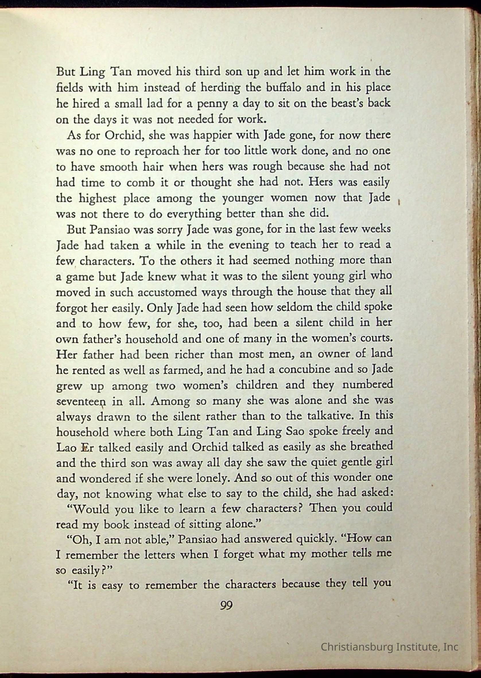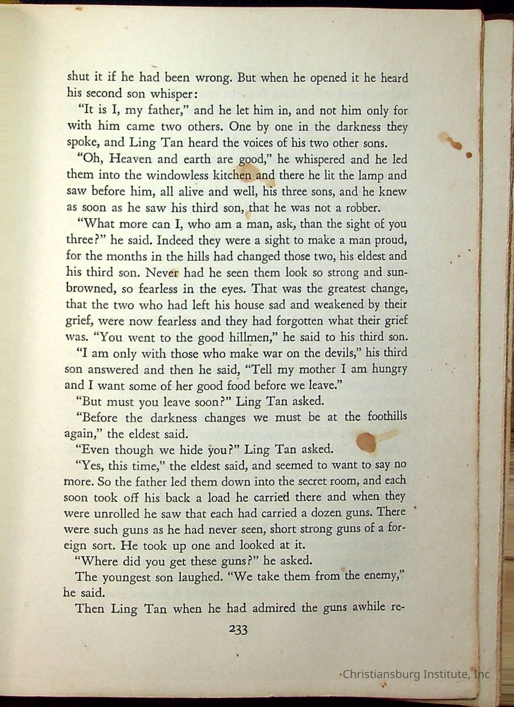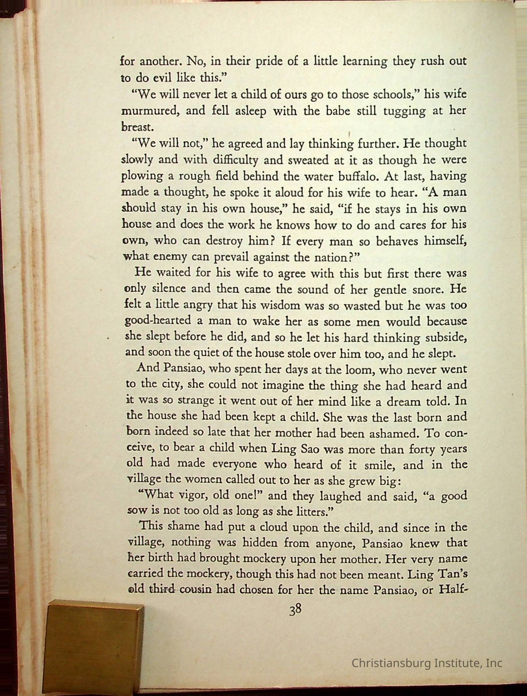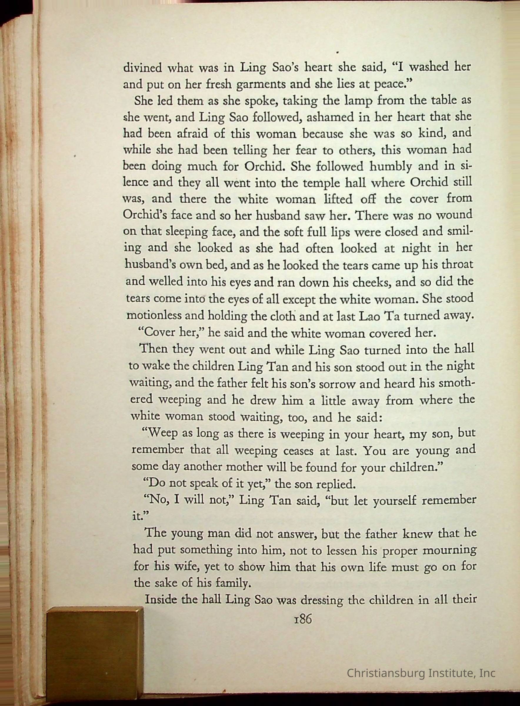 Dragon Seed, written by Pearl S. Buck and published in the year 1942. This book was used by Christiansburg Institute teacher, Viola Charlton in her class.Collection