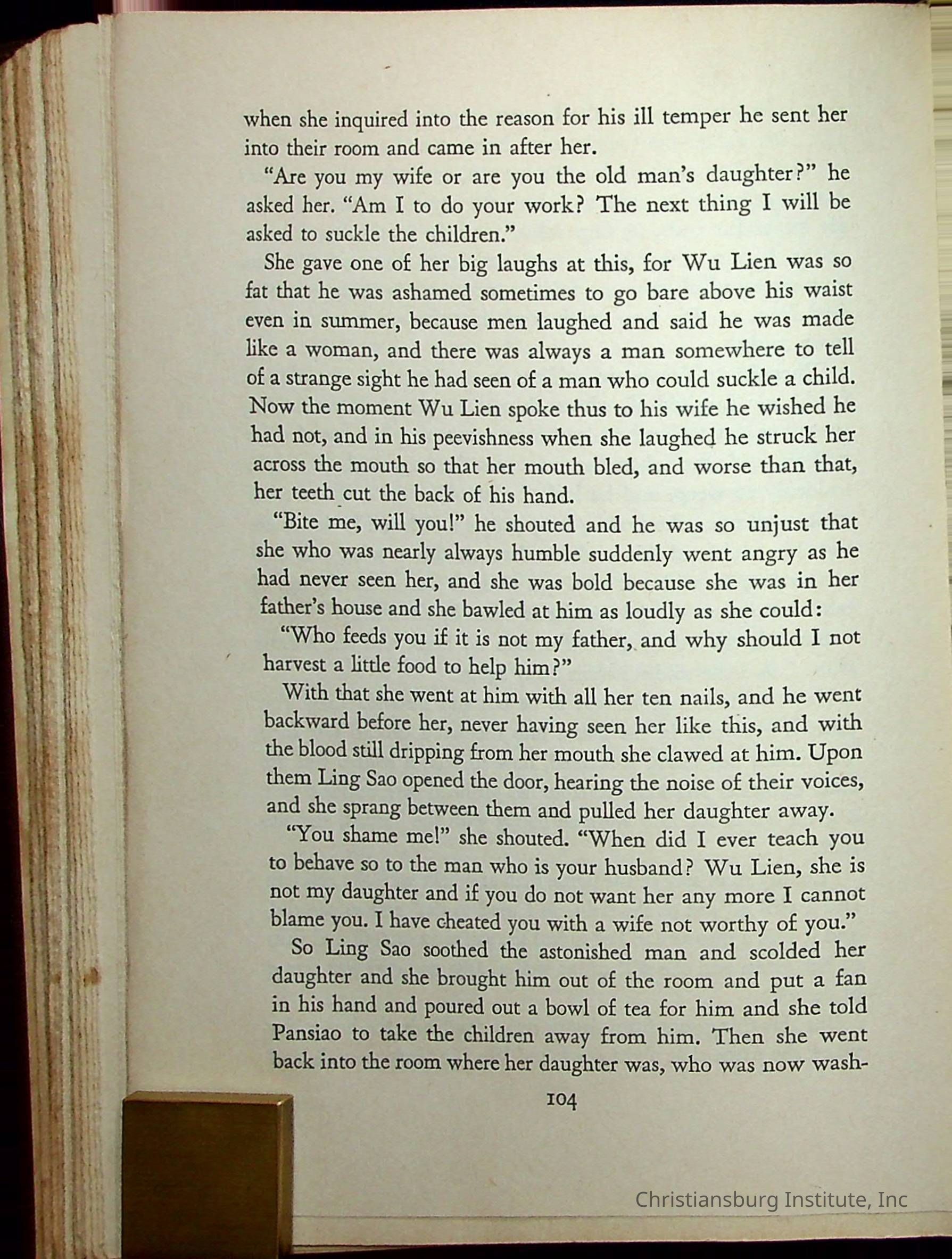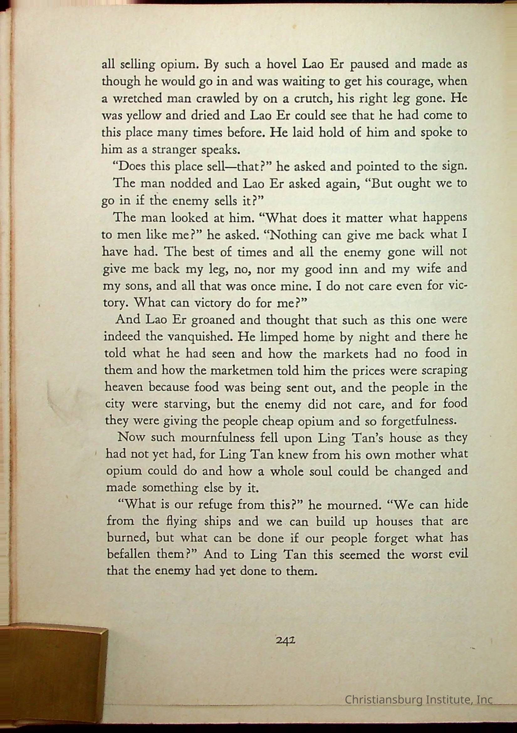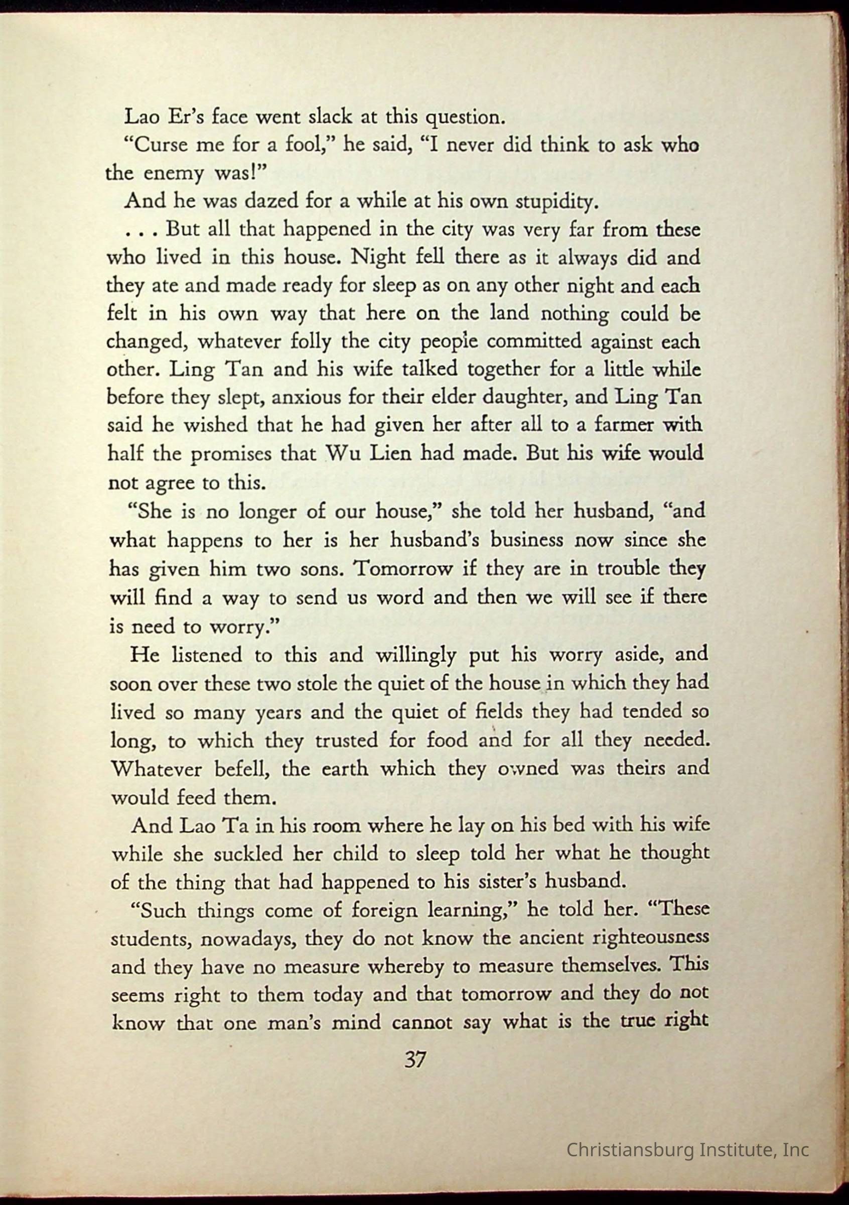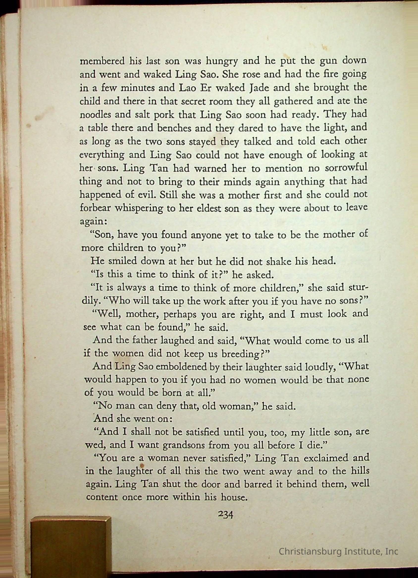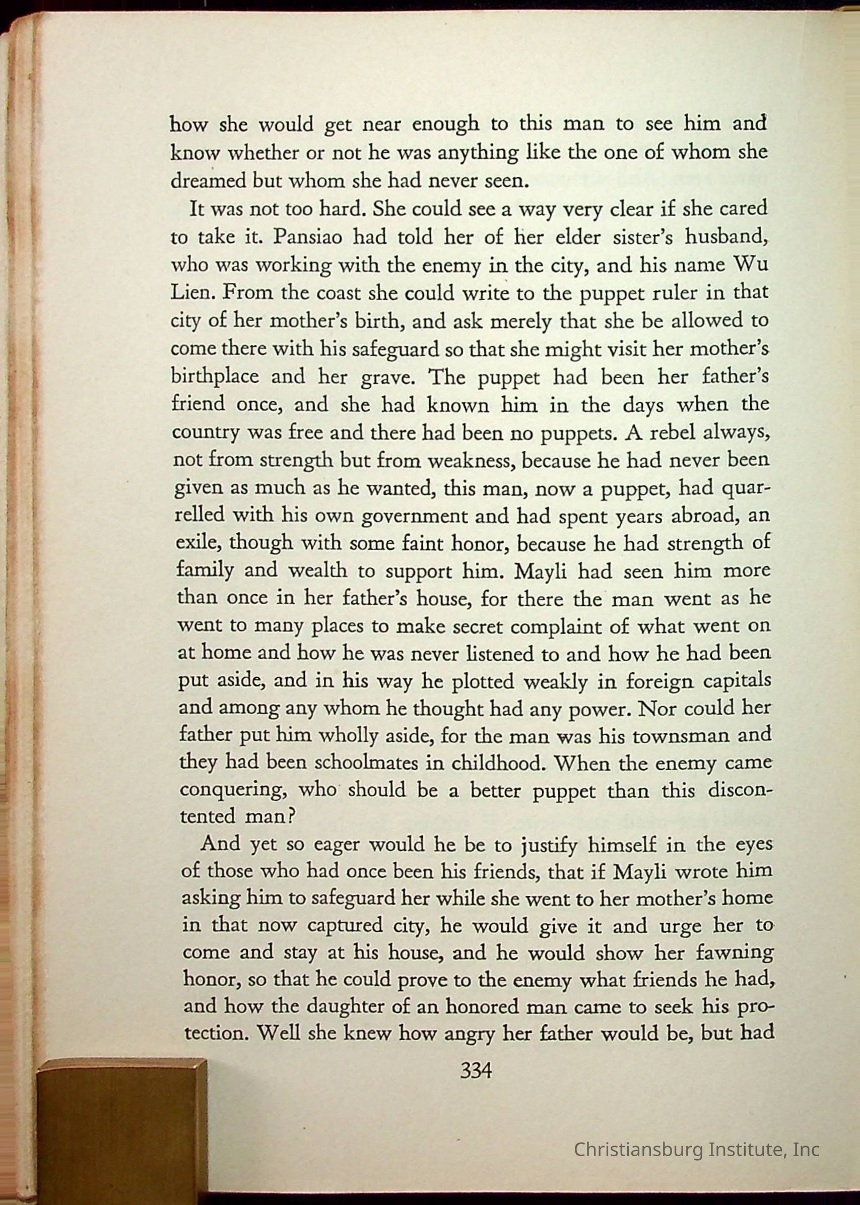 Dragon Seed, written by Pearl S. Buck and published in the year 1942. This book was used by Christiansburg Institute teacher, Viola Charlton in her class.Collection