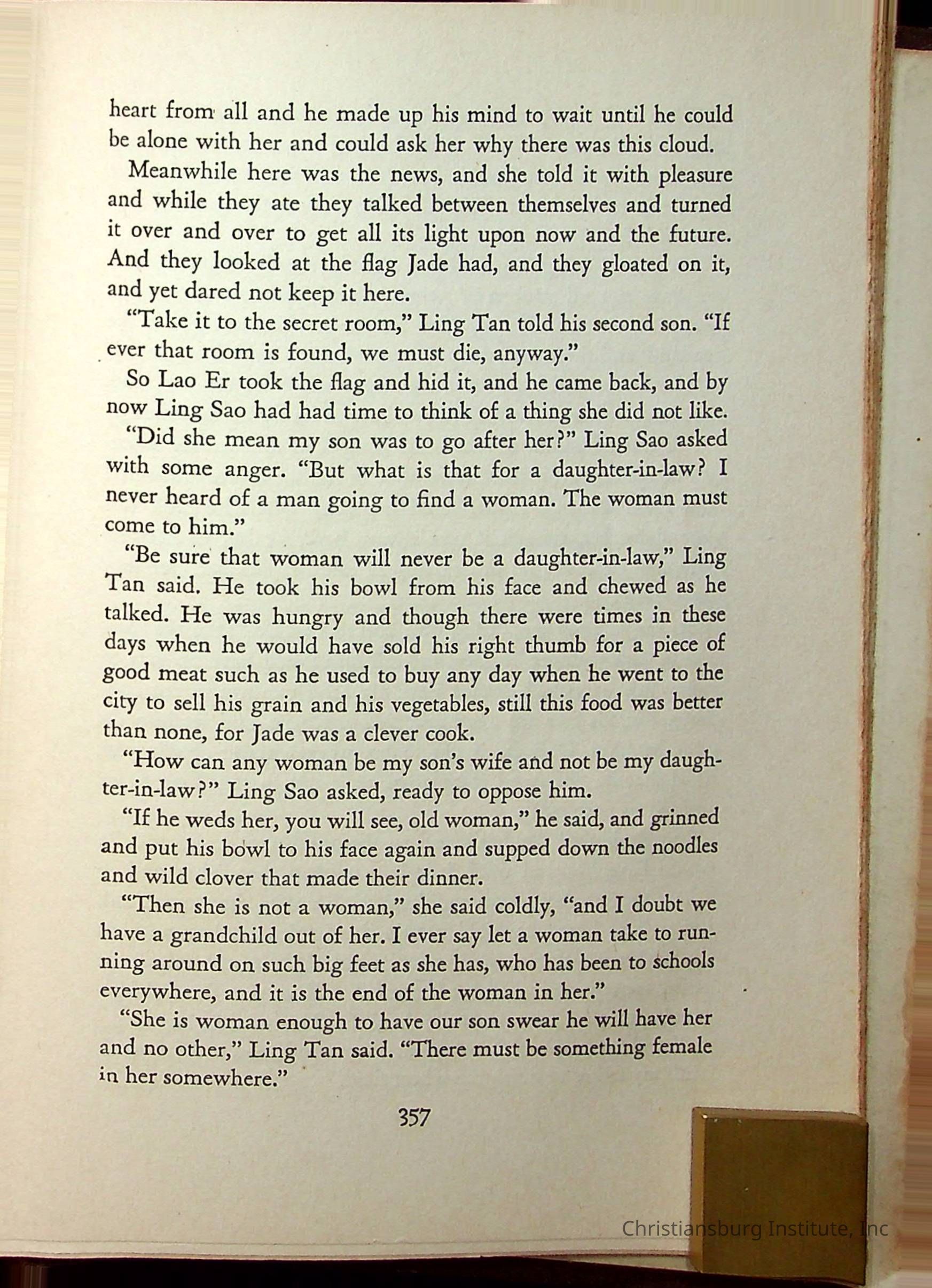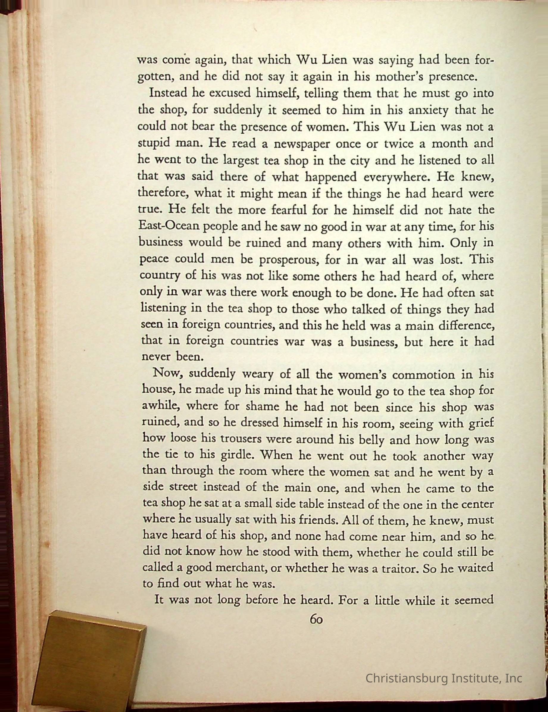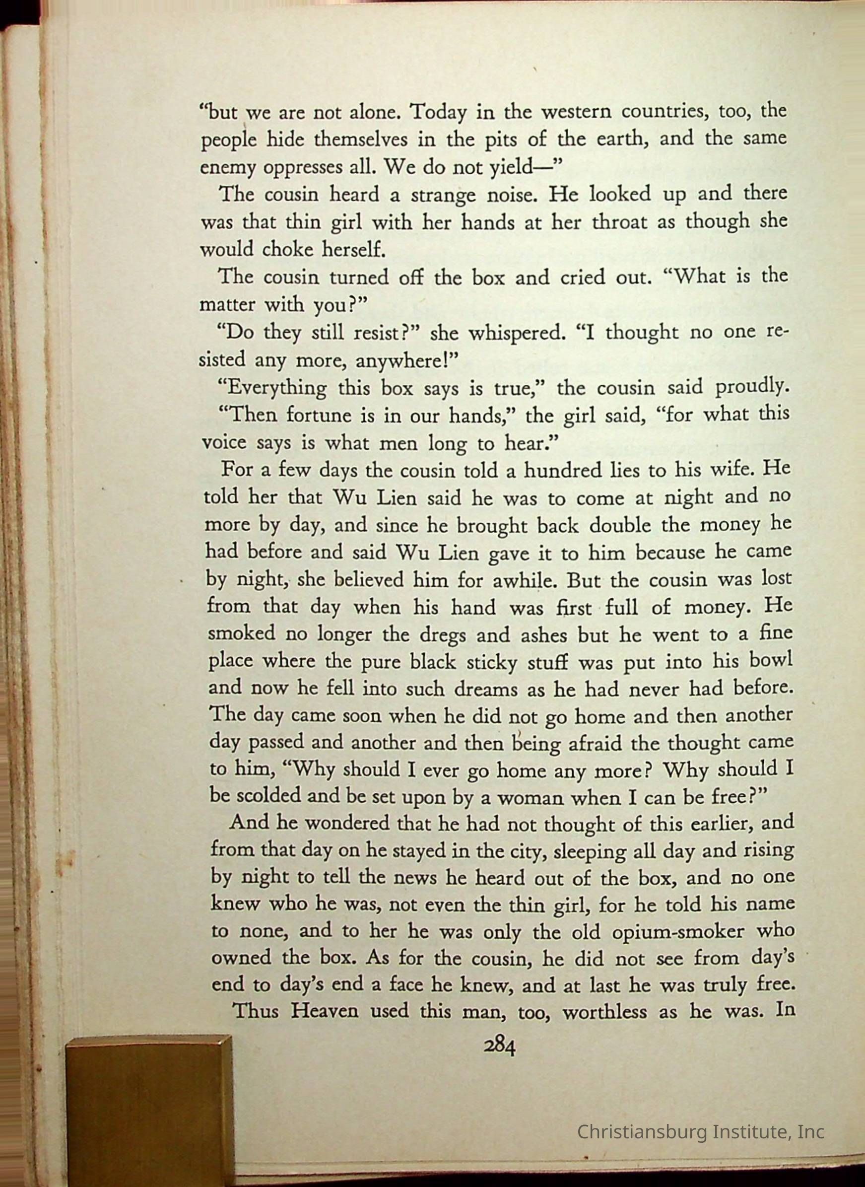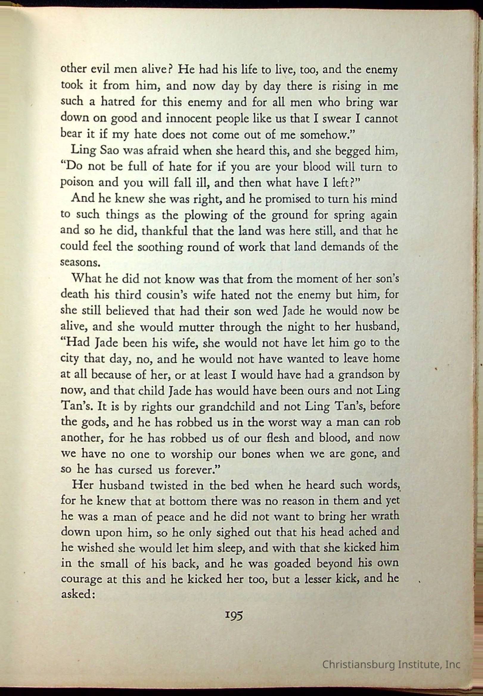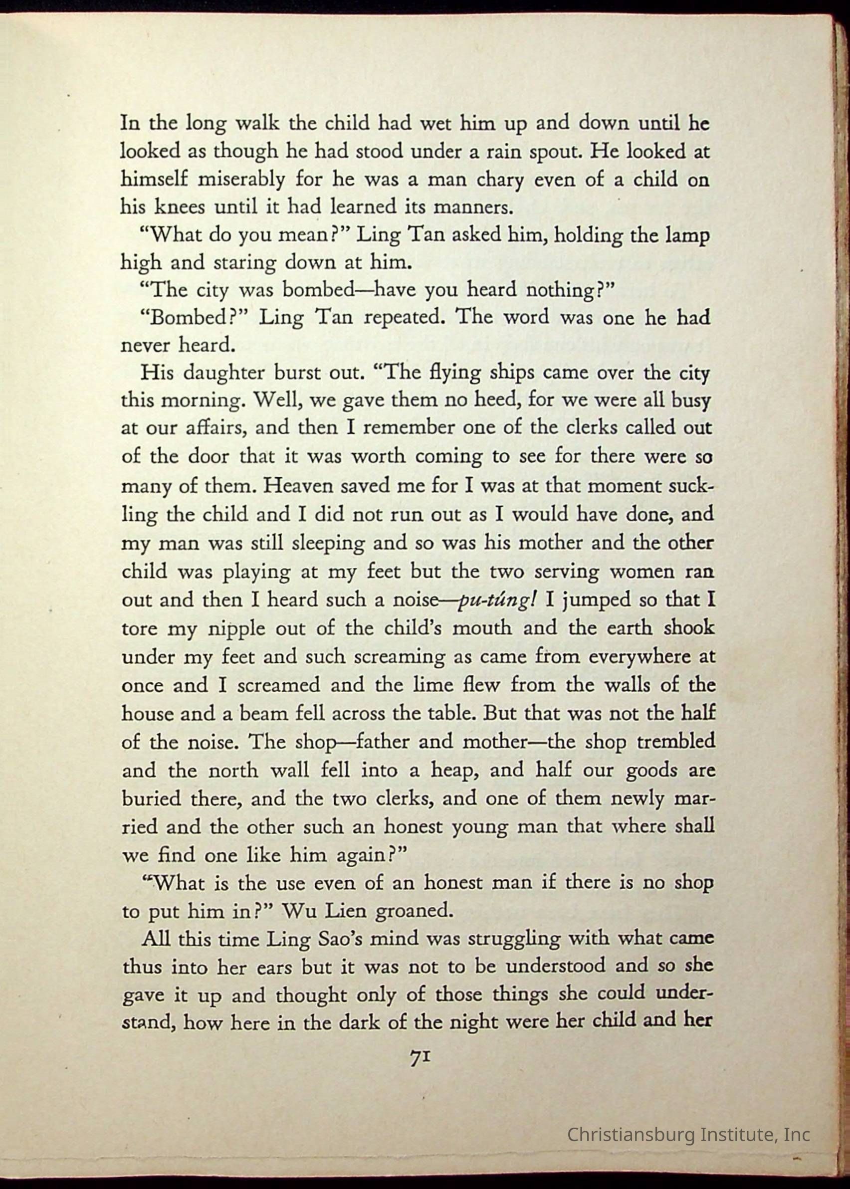 Dragon Seed, written by Pearl S. Buck and published in the year 1942. This book was used by Christiansburg Institute teacher, Viola Charlton in her class.Collection