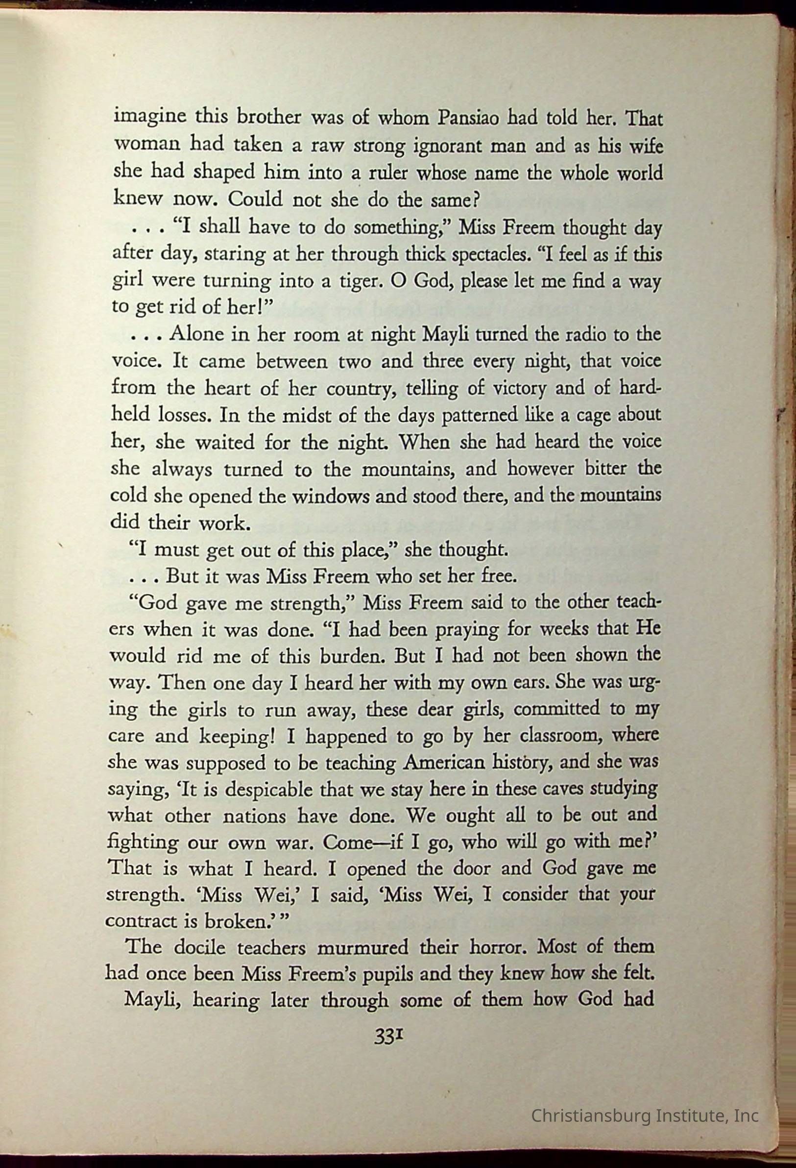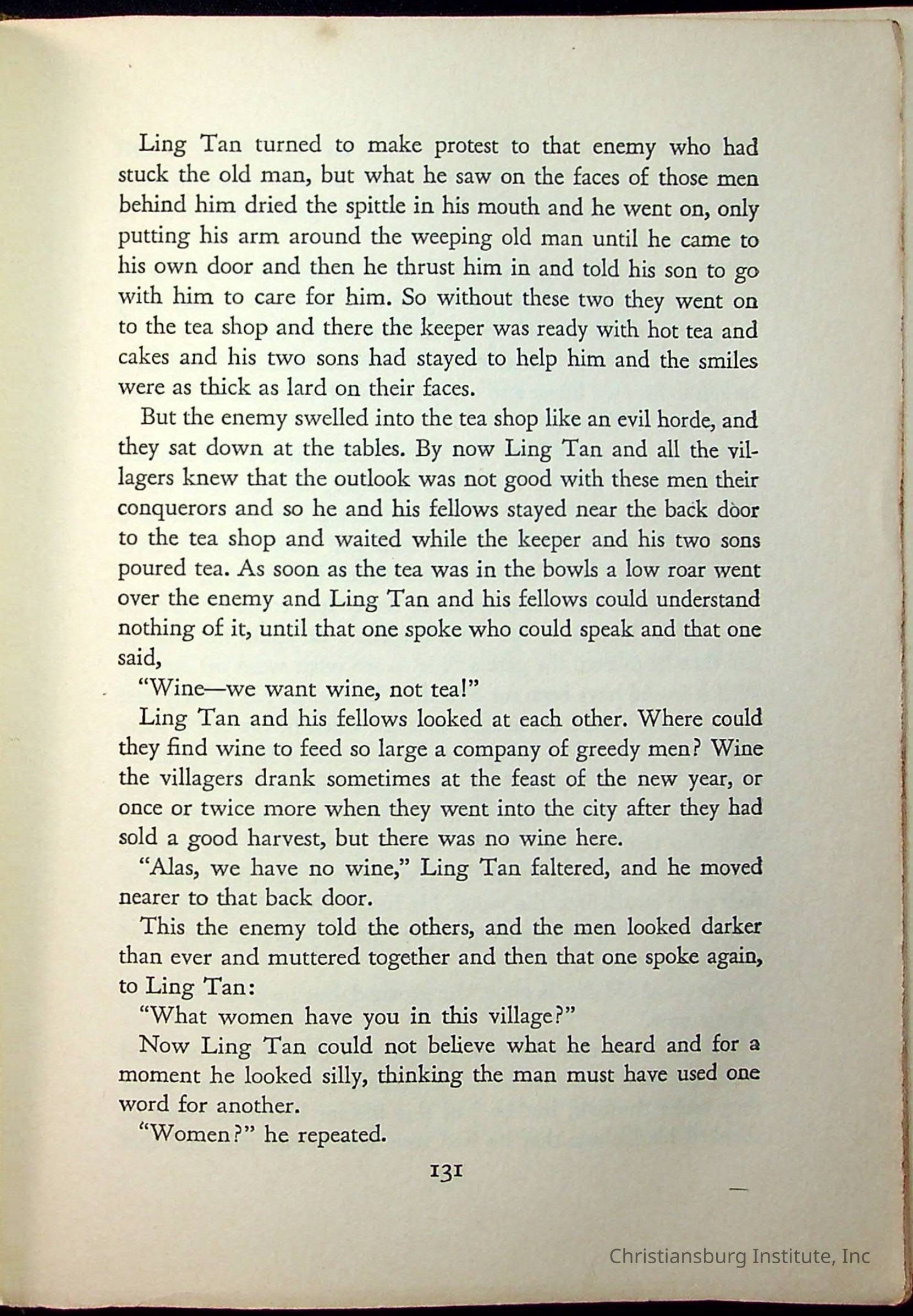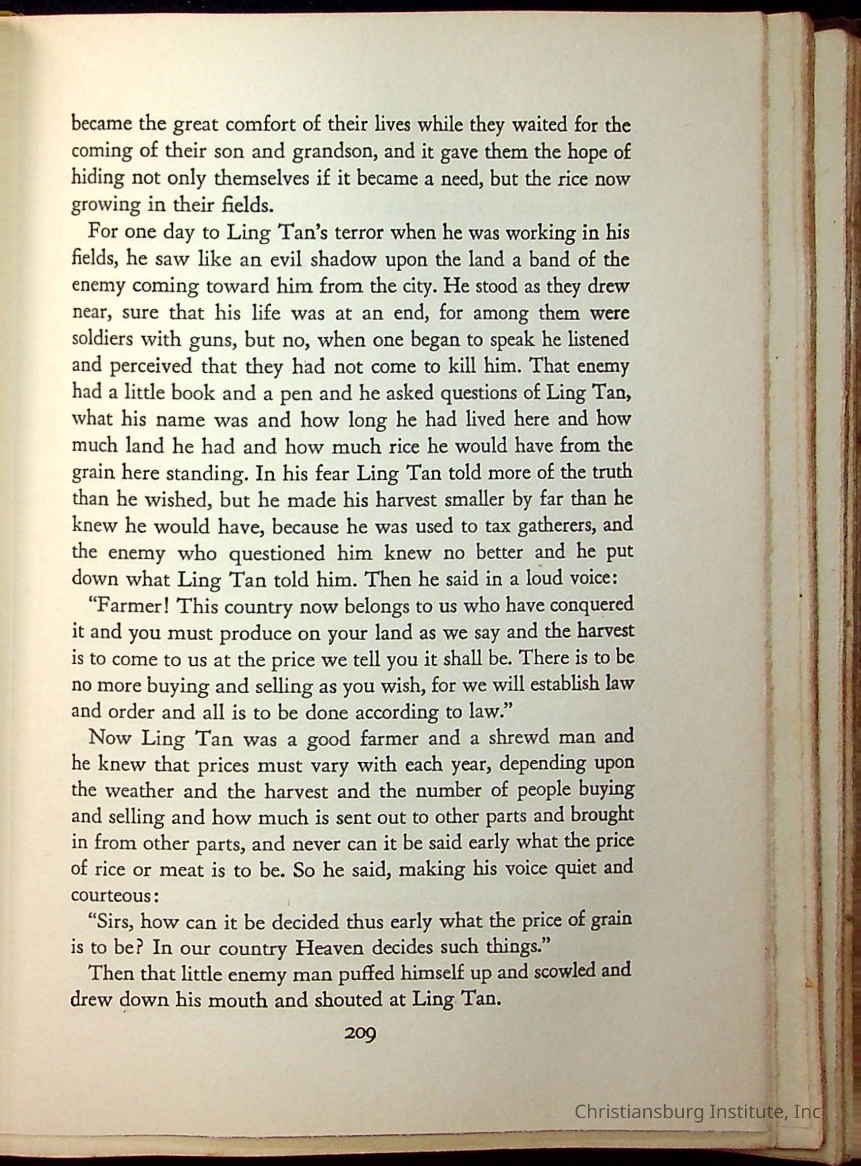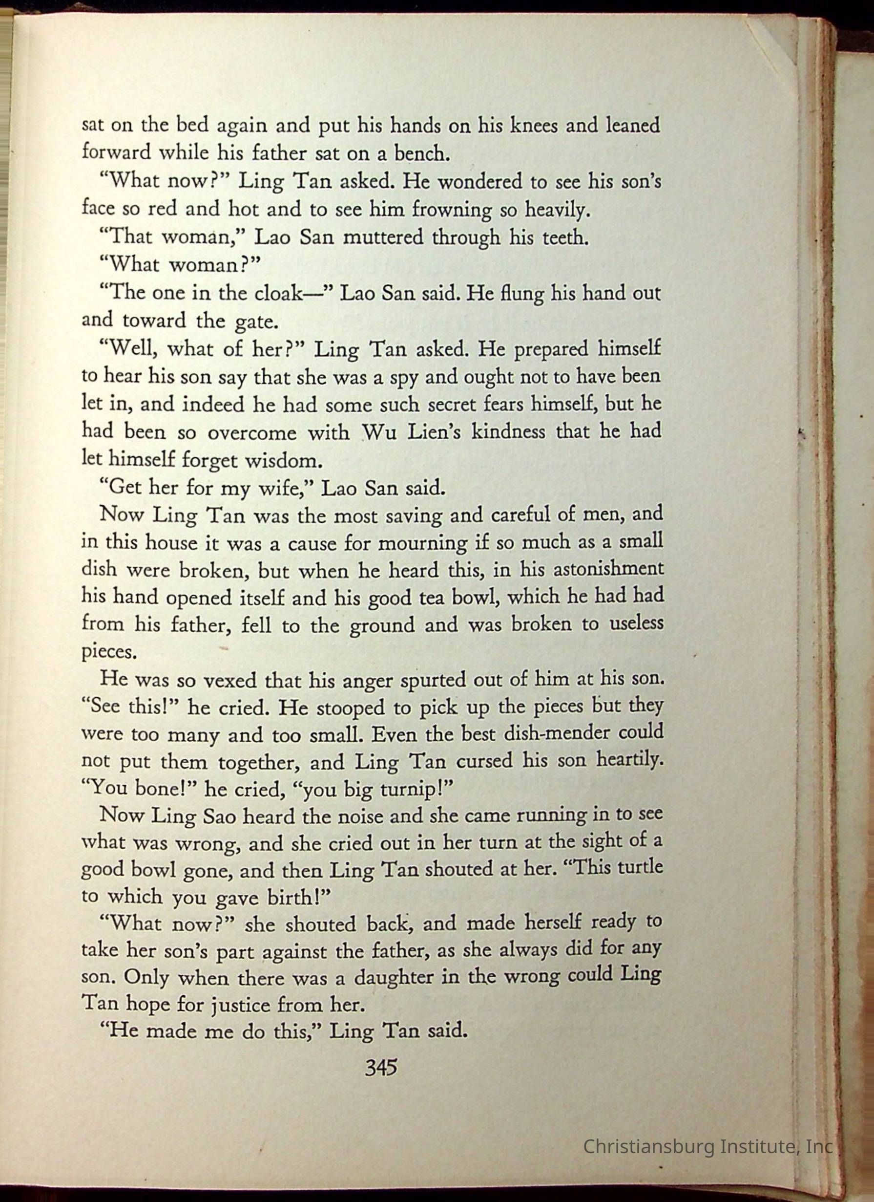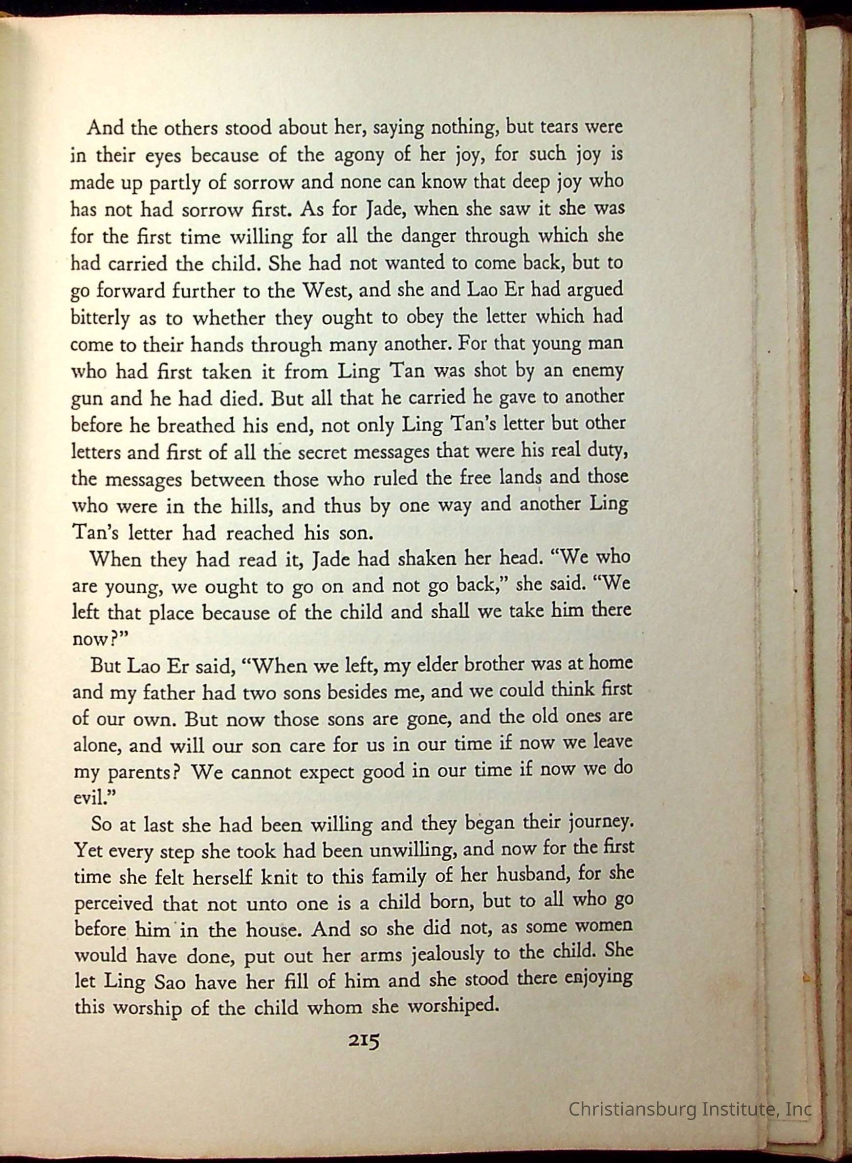 Dragon Seed, written by Pearl S. Buck and published in the year 1942. This book was used by Christiansburg Institute teacher, Viola Charlton in her class.Collection