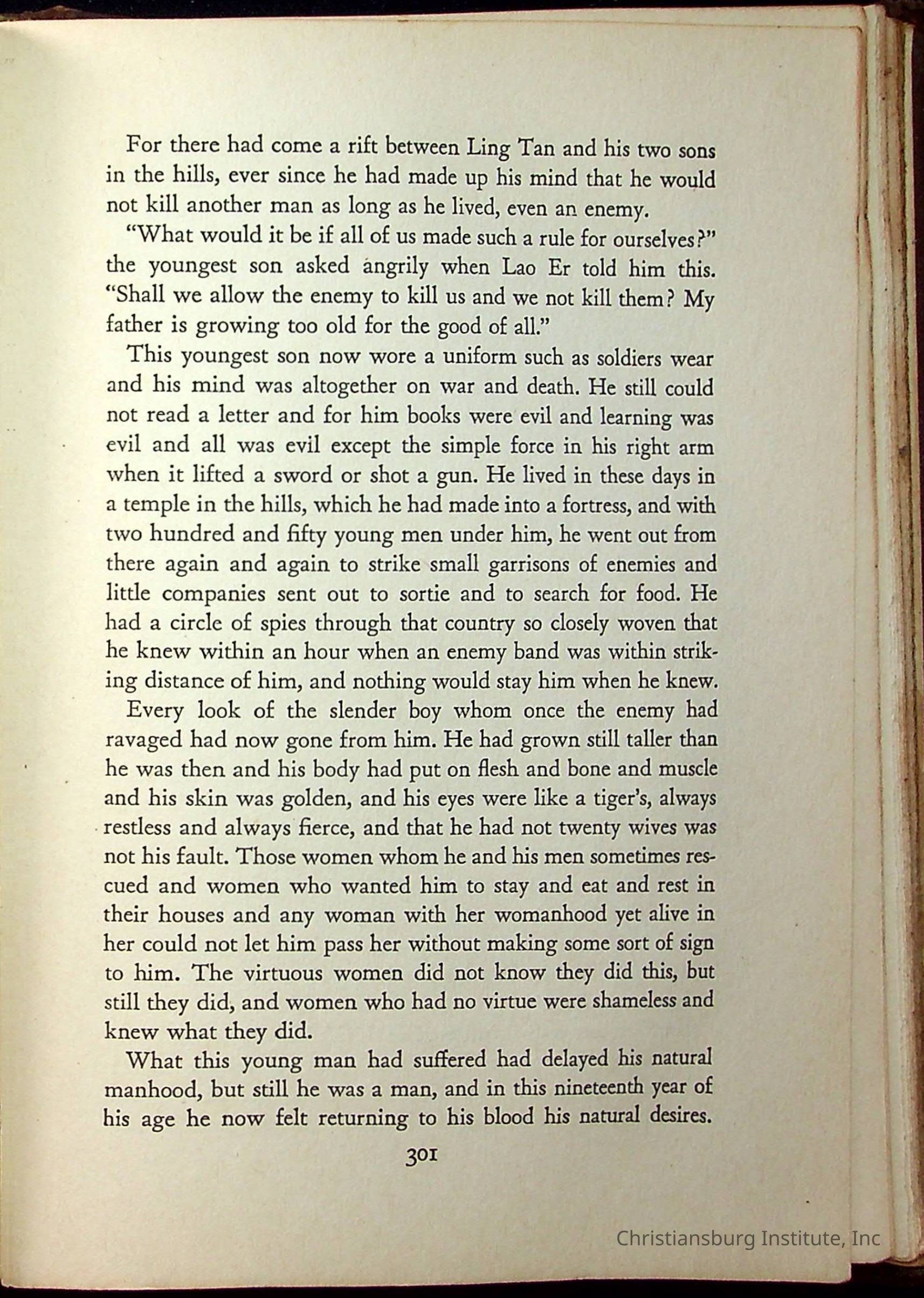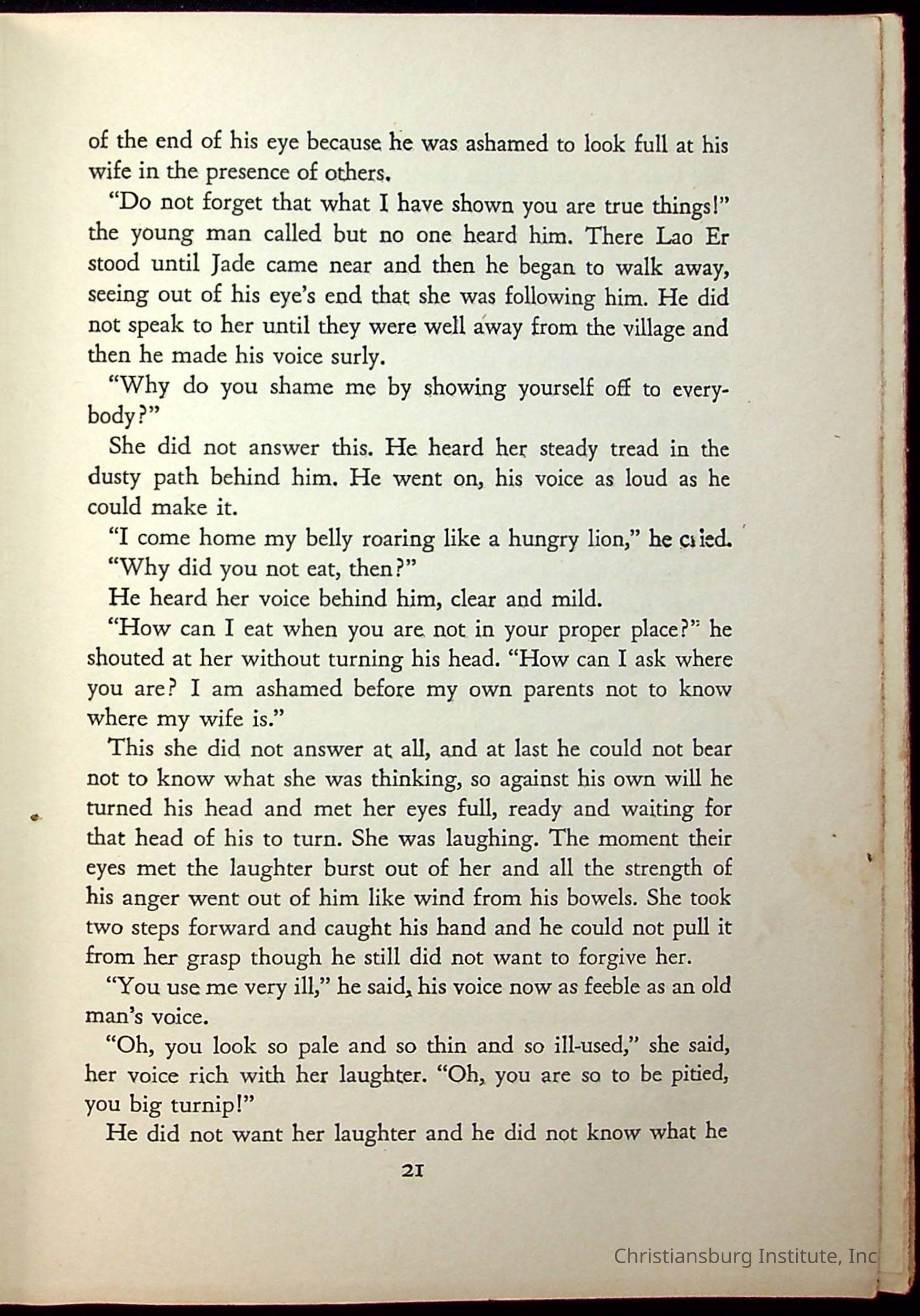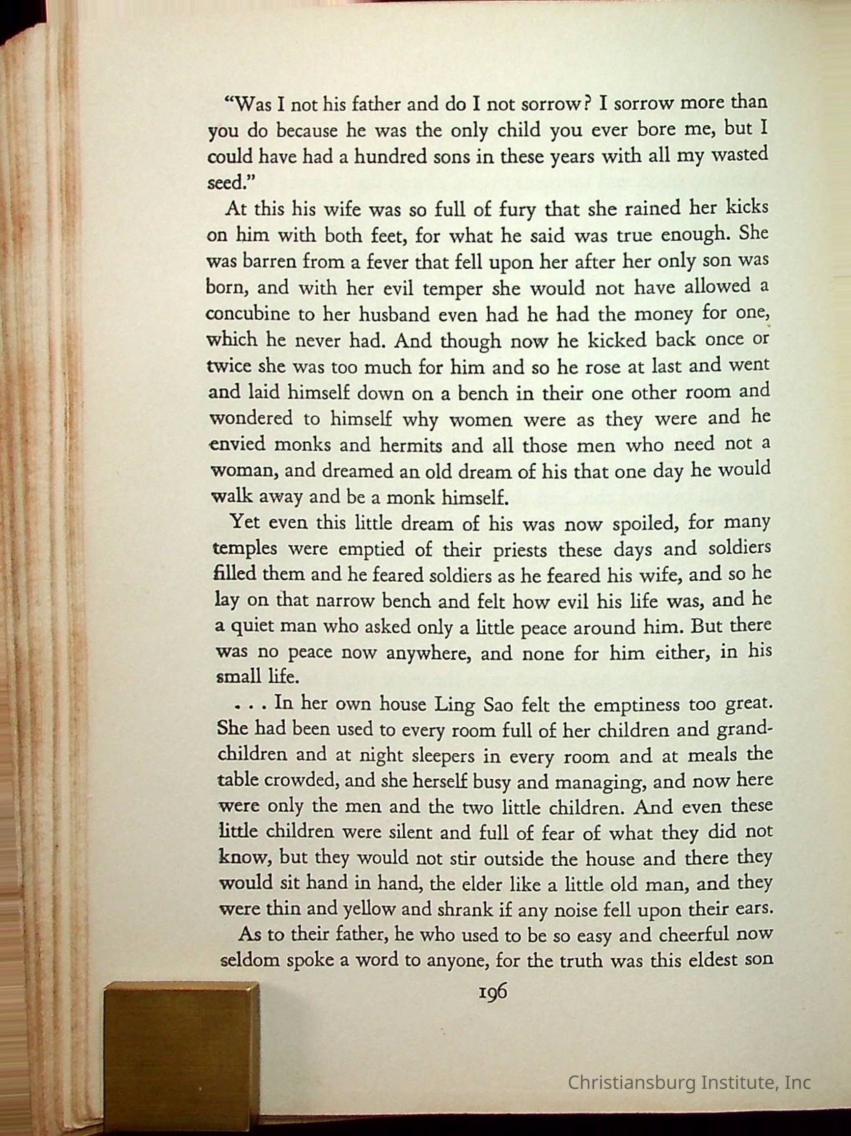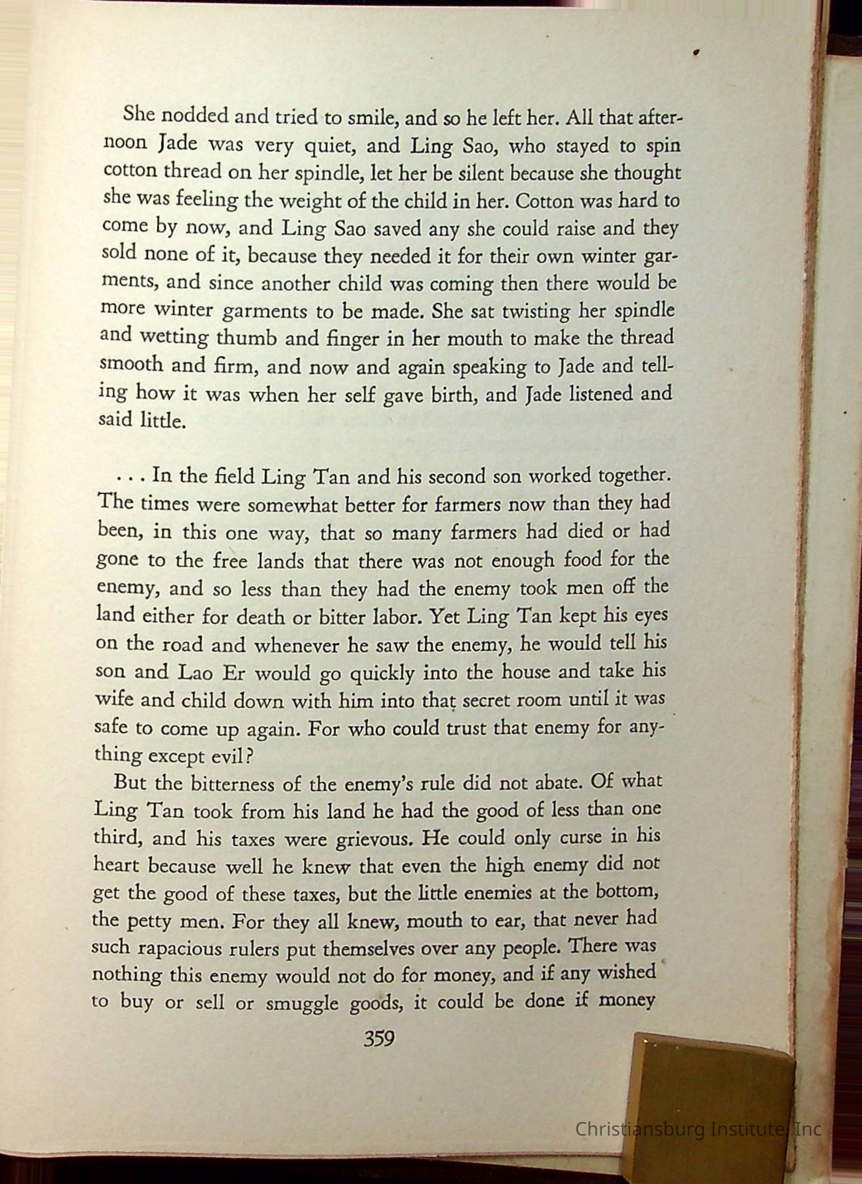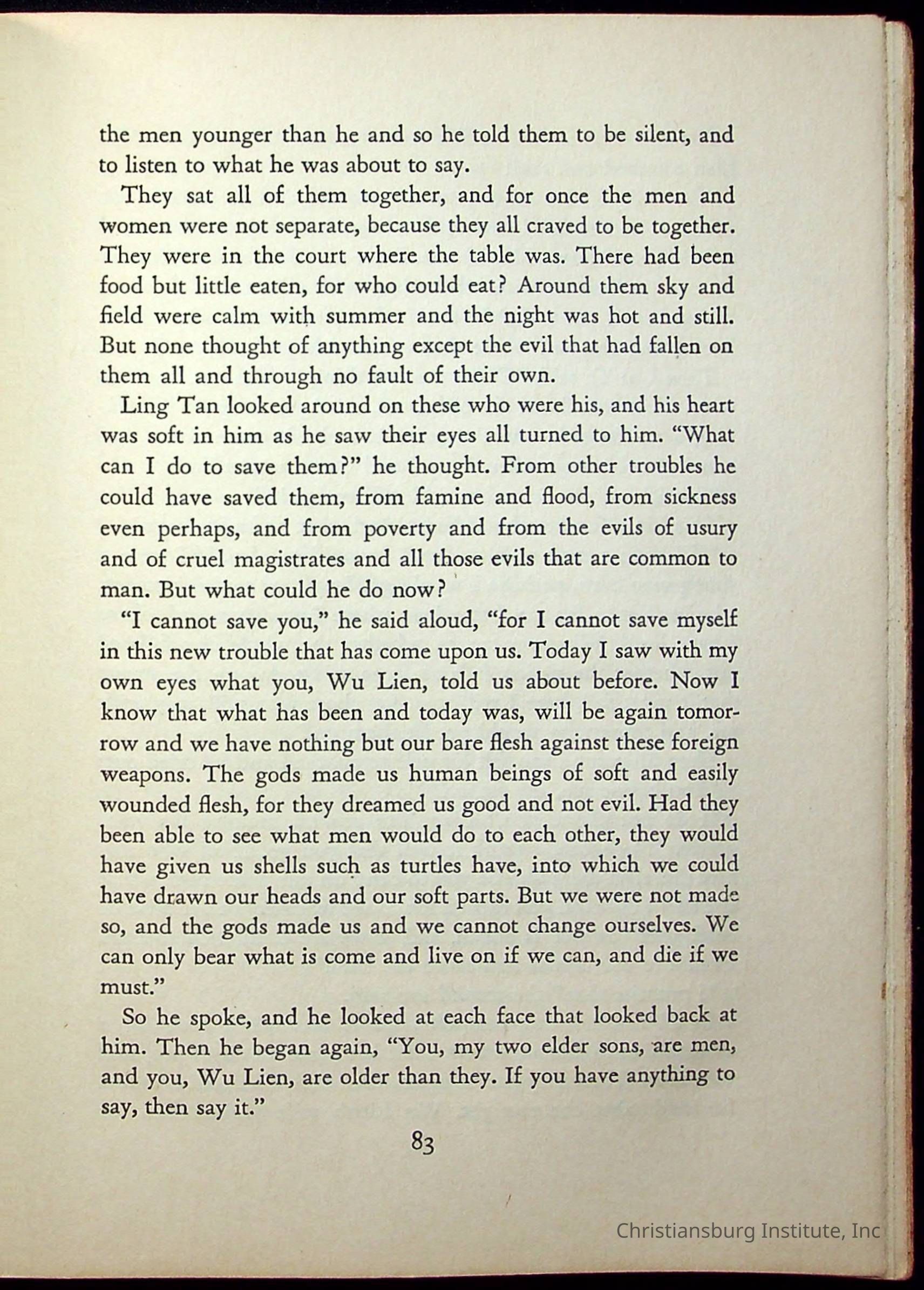 Dragon Seed, written by Pearl S. Buck and published in the year 1942. This book was used by Christiansburg Institute teacher, Viola Charlton in her class.Collection