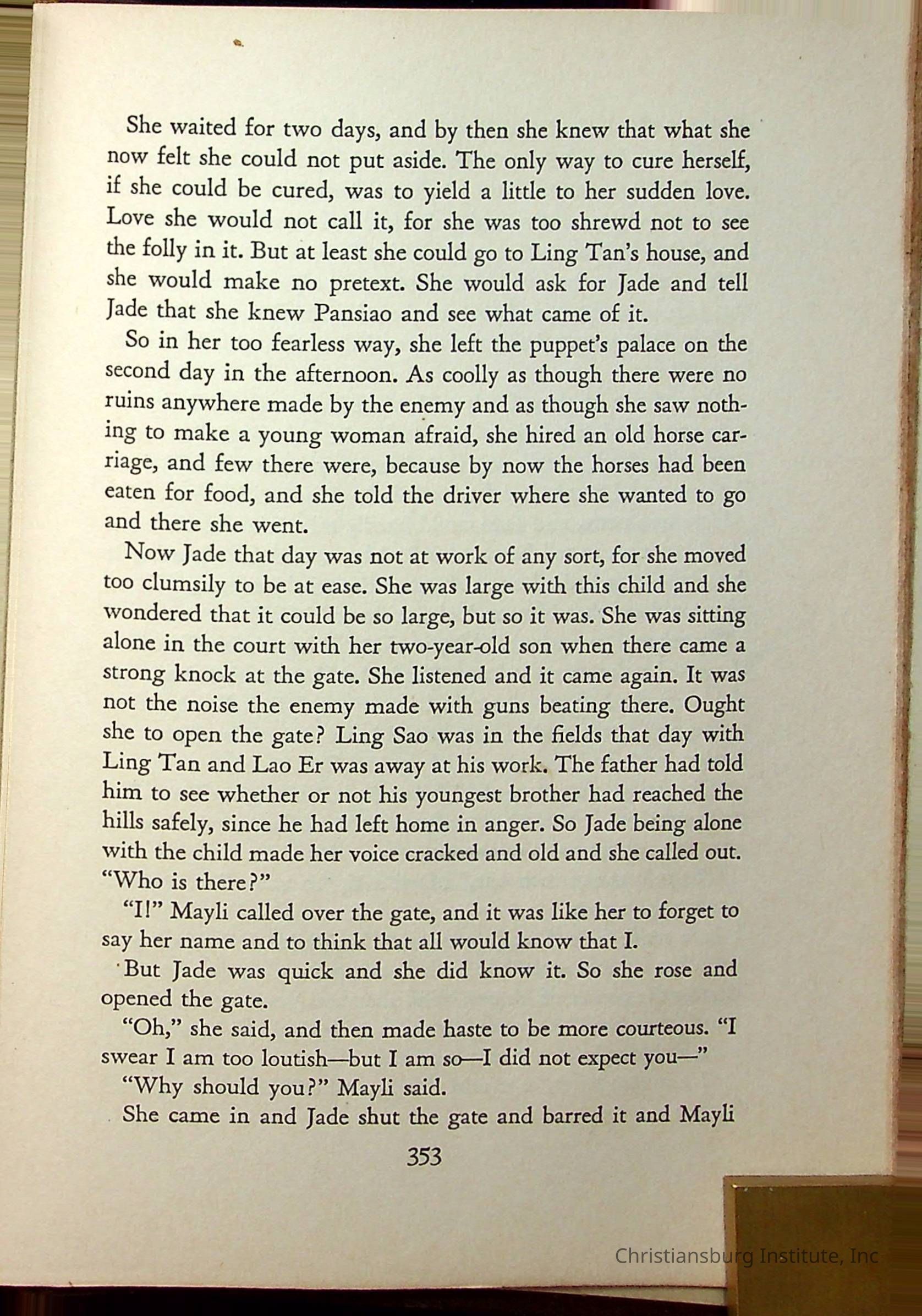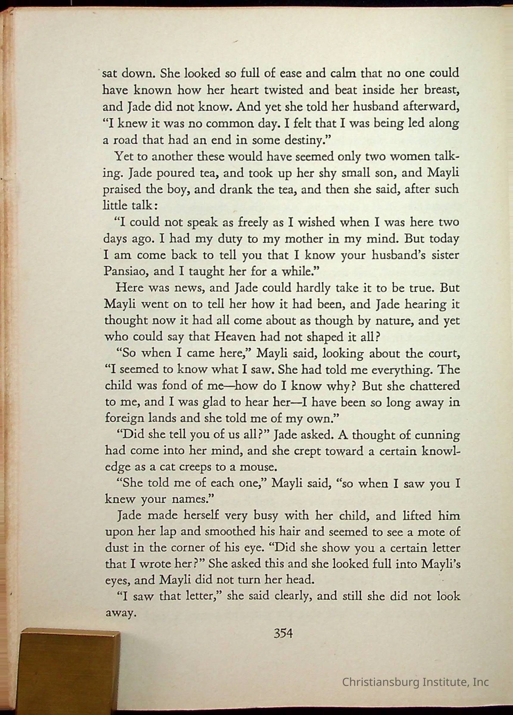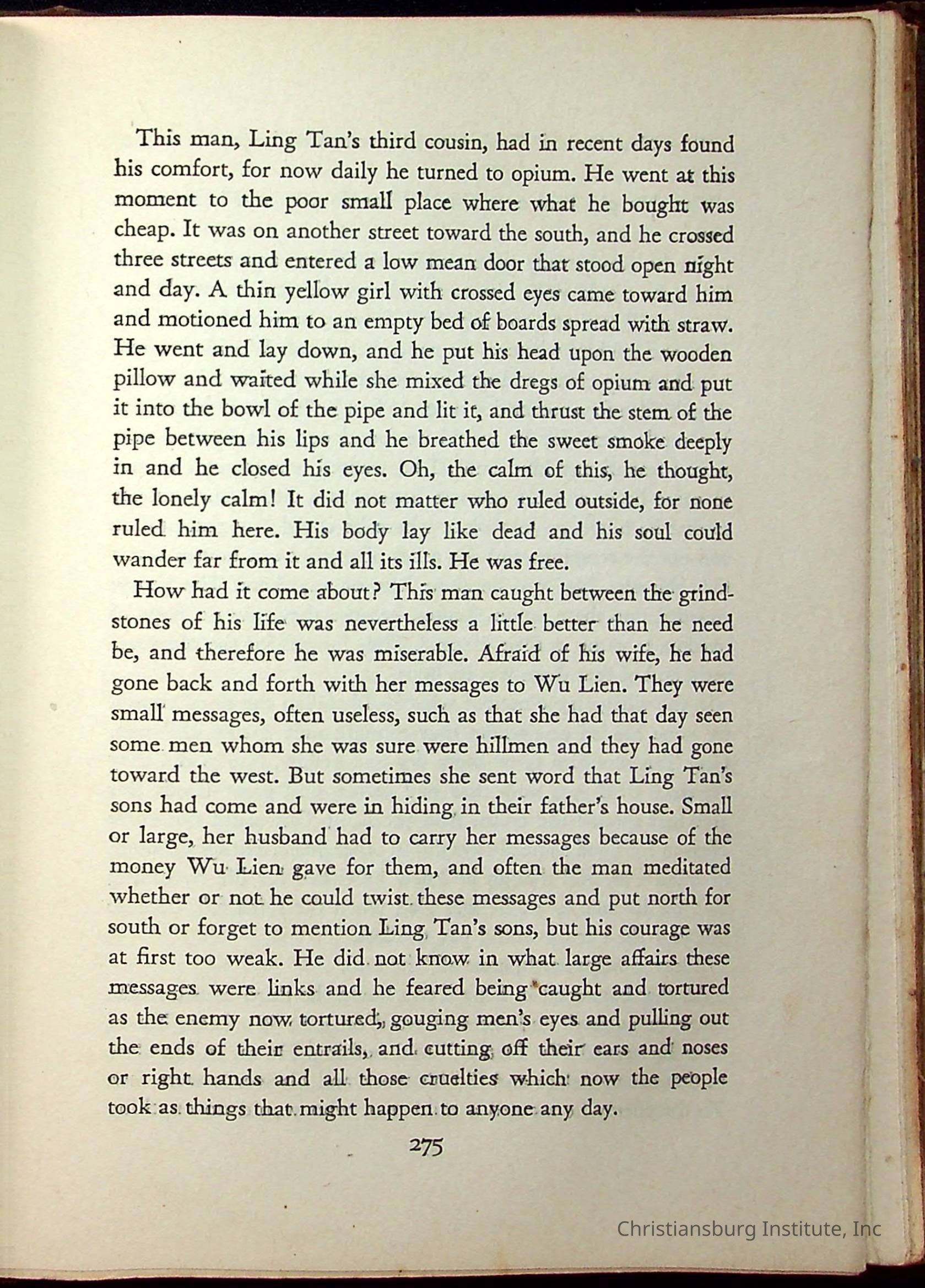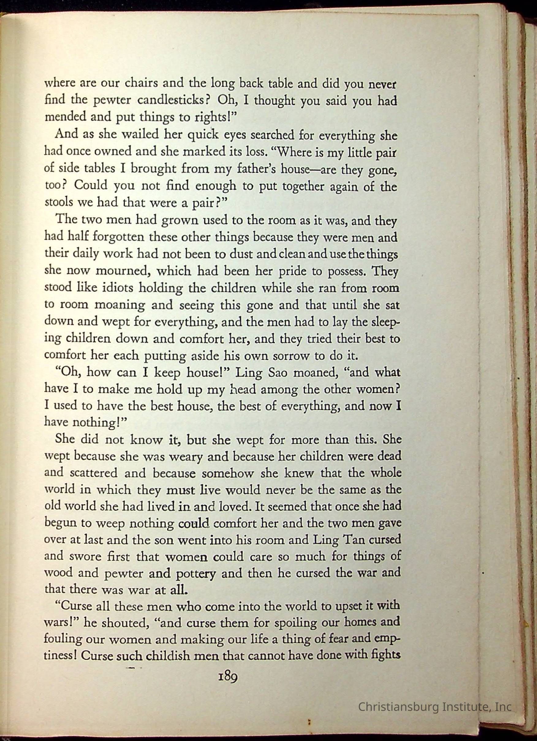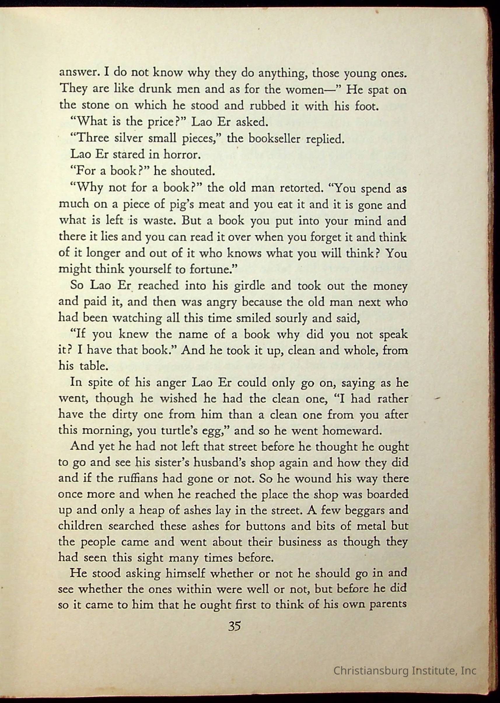 Dragon Seed, written by Pearl S. Buck and published in the year 1942. This book was used by Christiansburg Institute teacher, Viola Charlton in her class.Collection