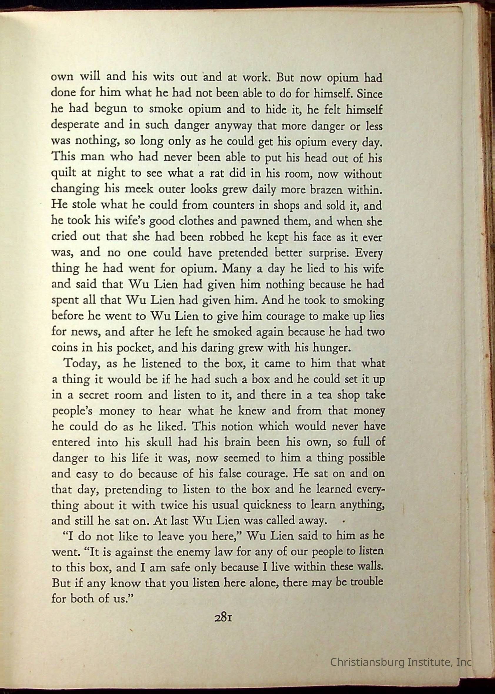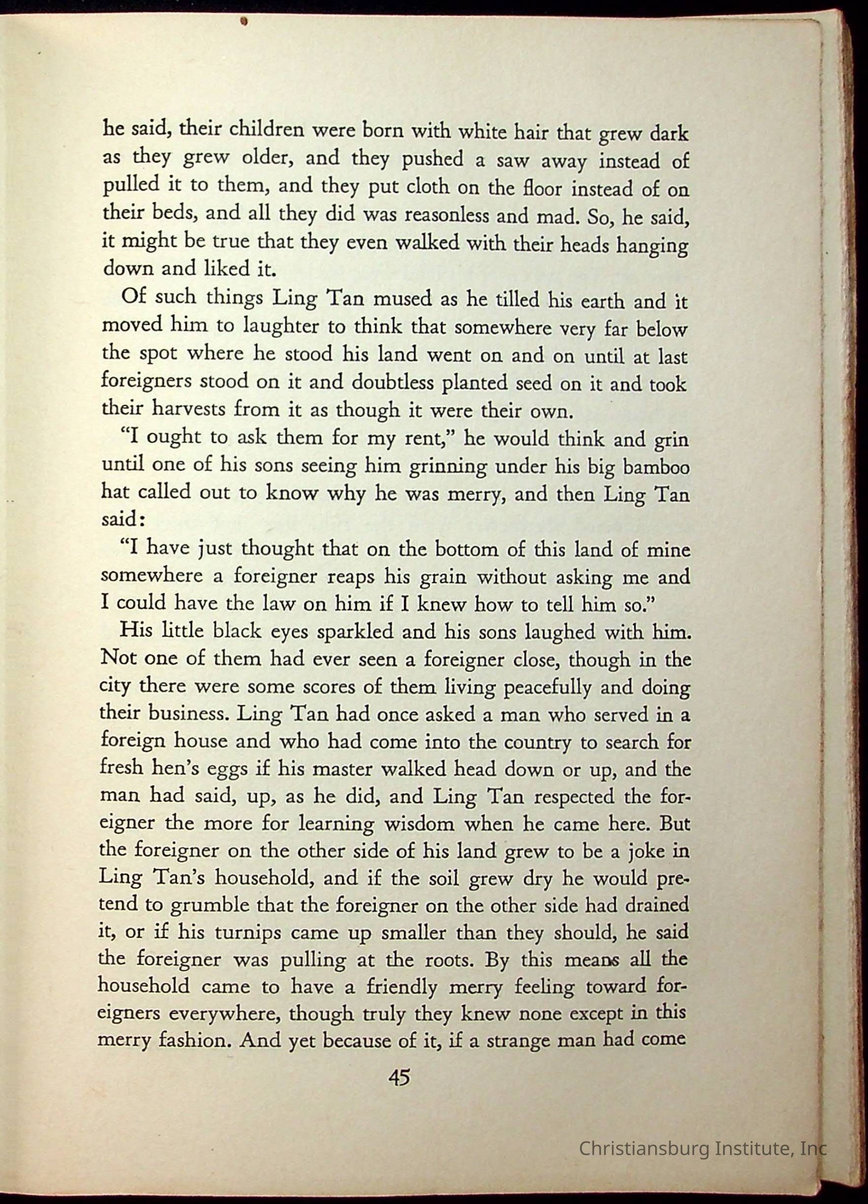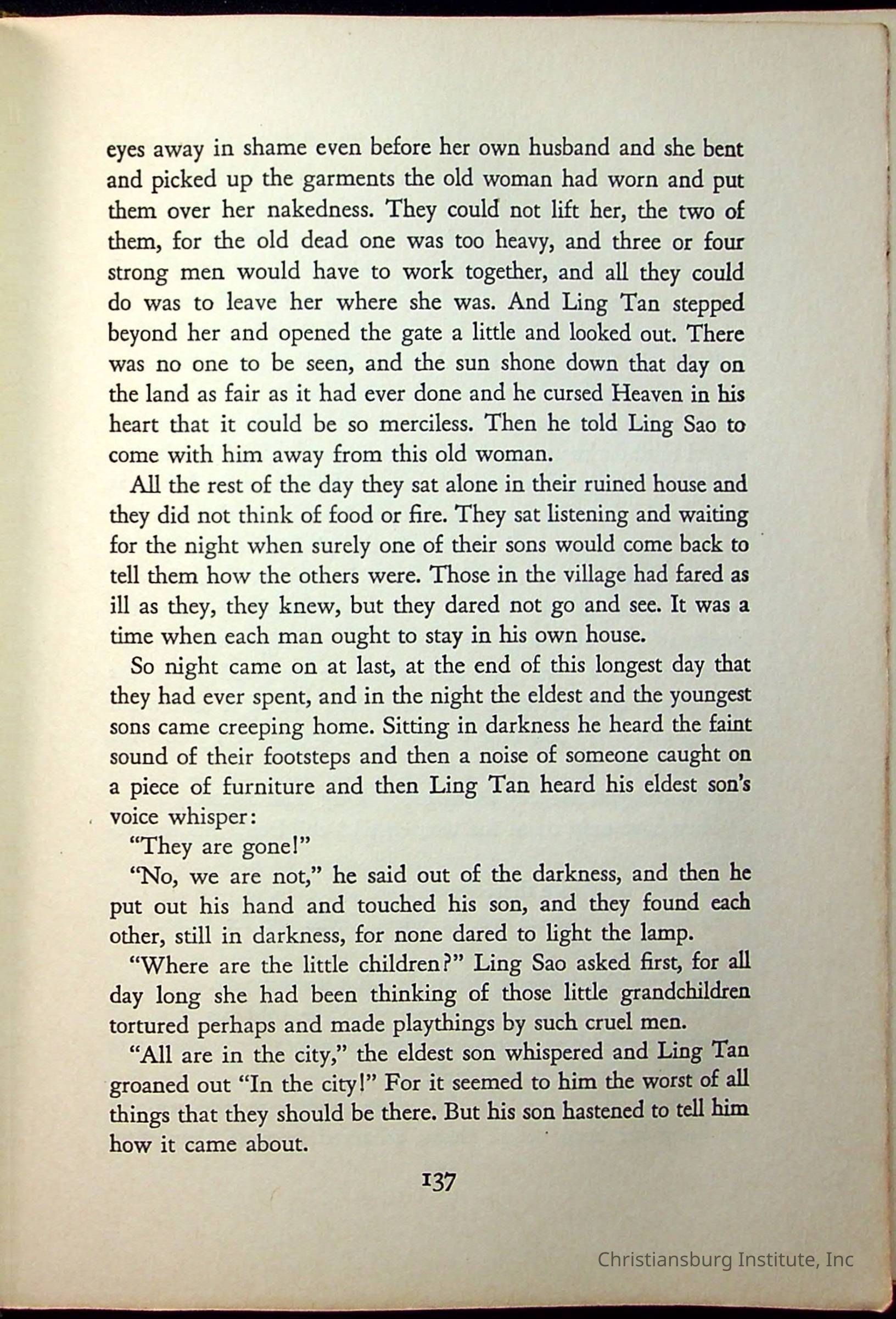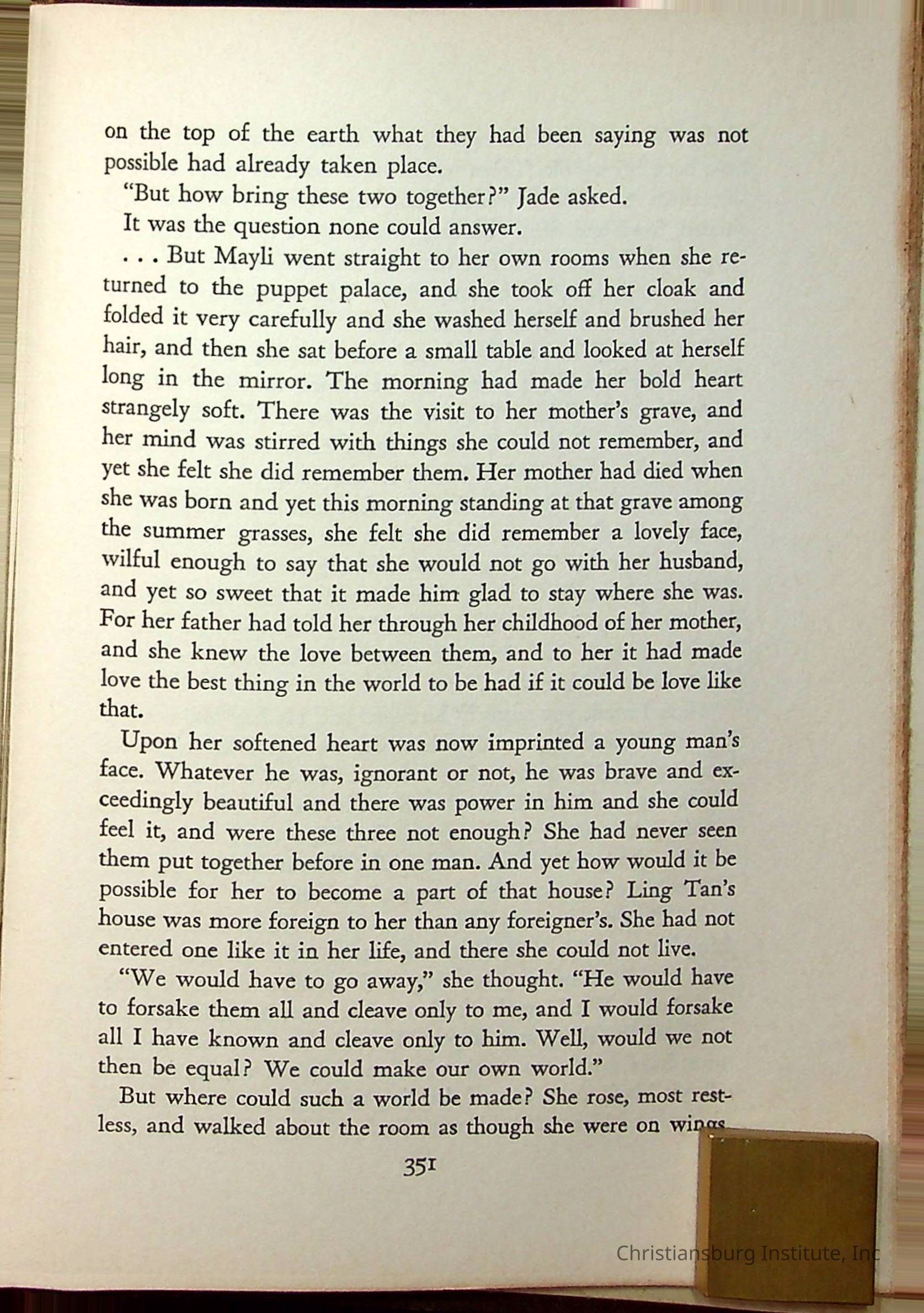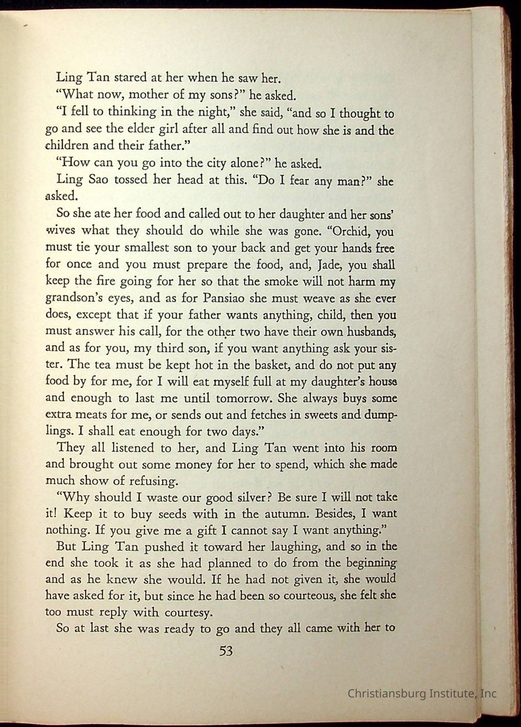 Dragon Seed, written by Pearl S. Buck and published in the year 1942. This book was used by Christiansburg Institute teacher, Viola Charlton in her class.Collection