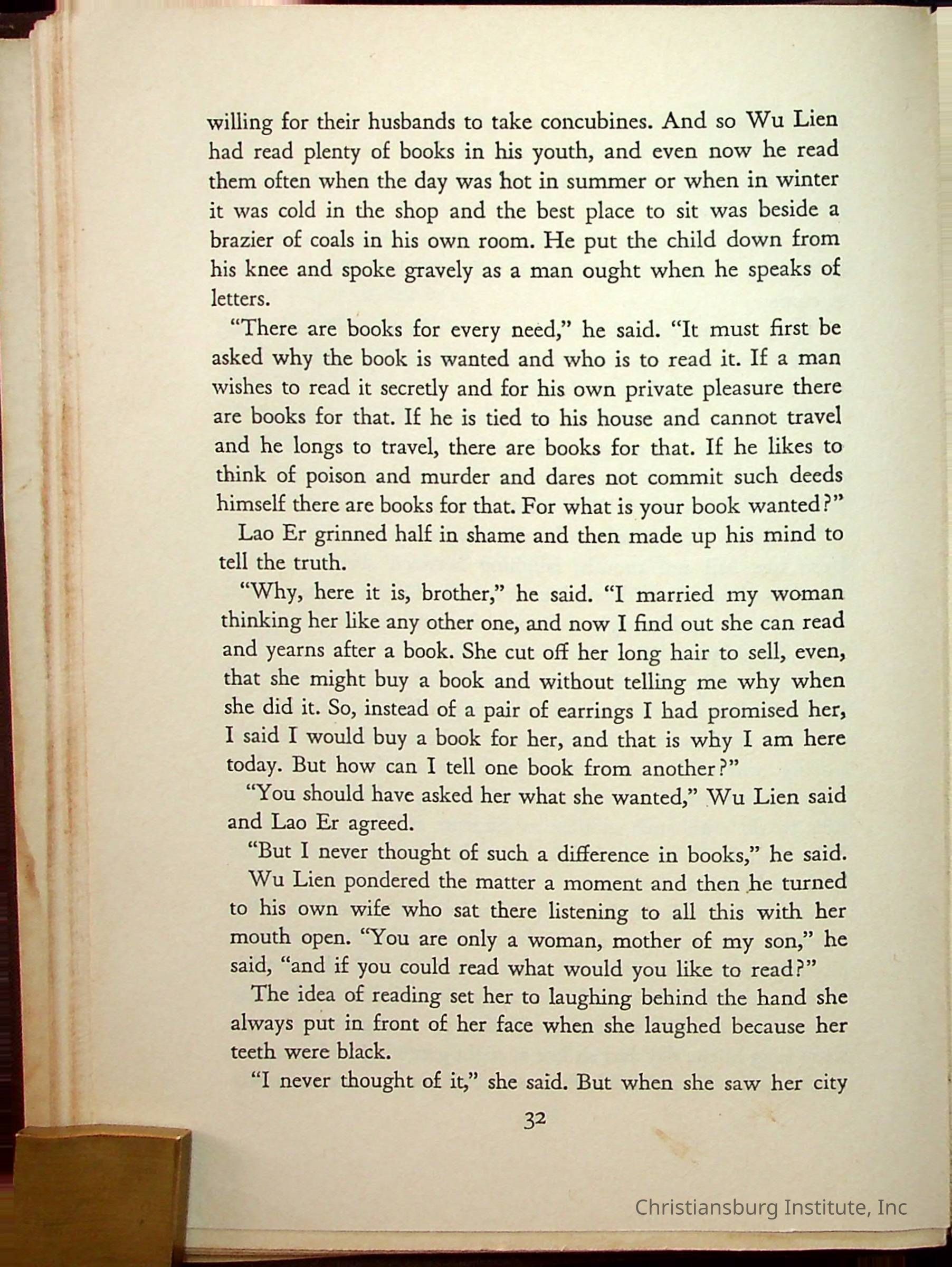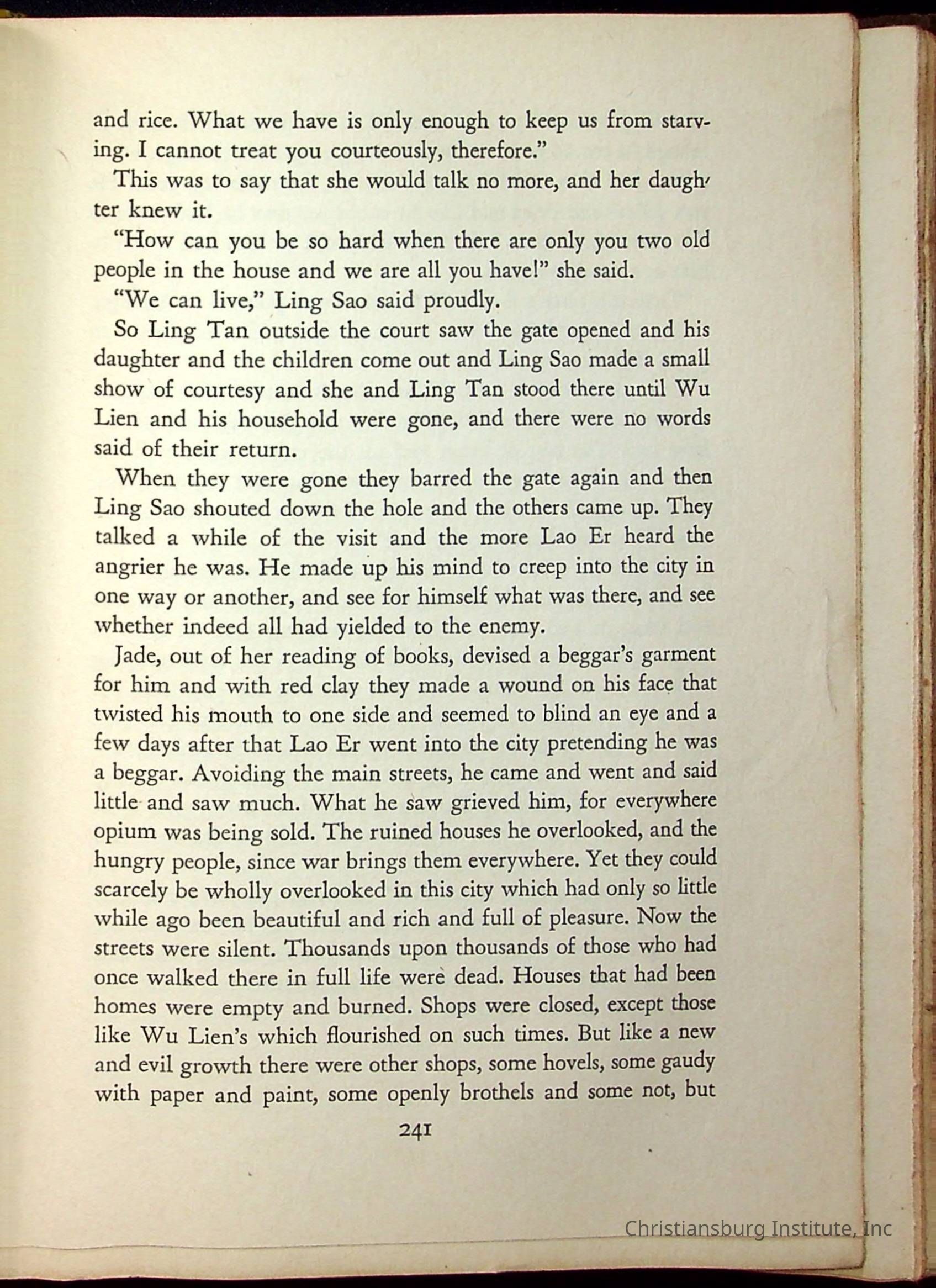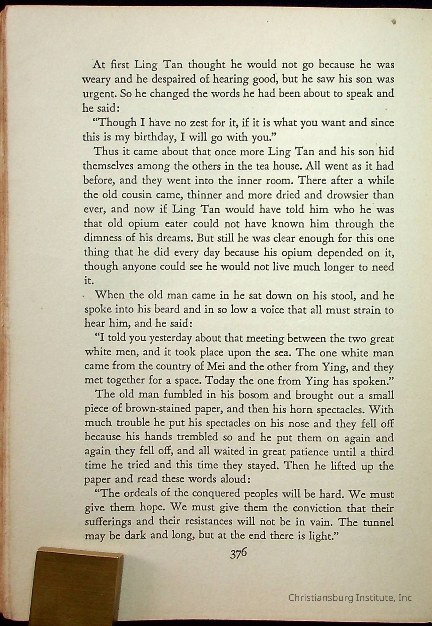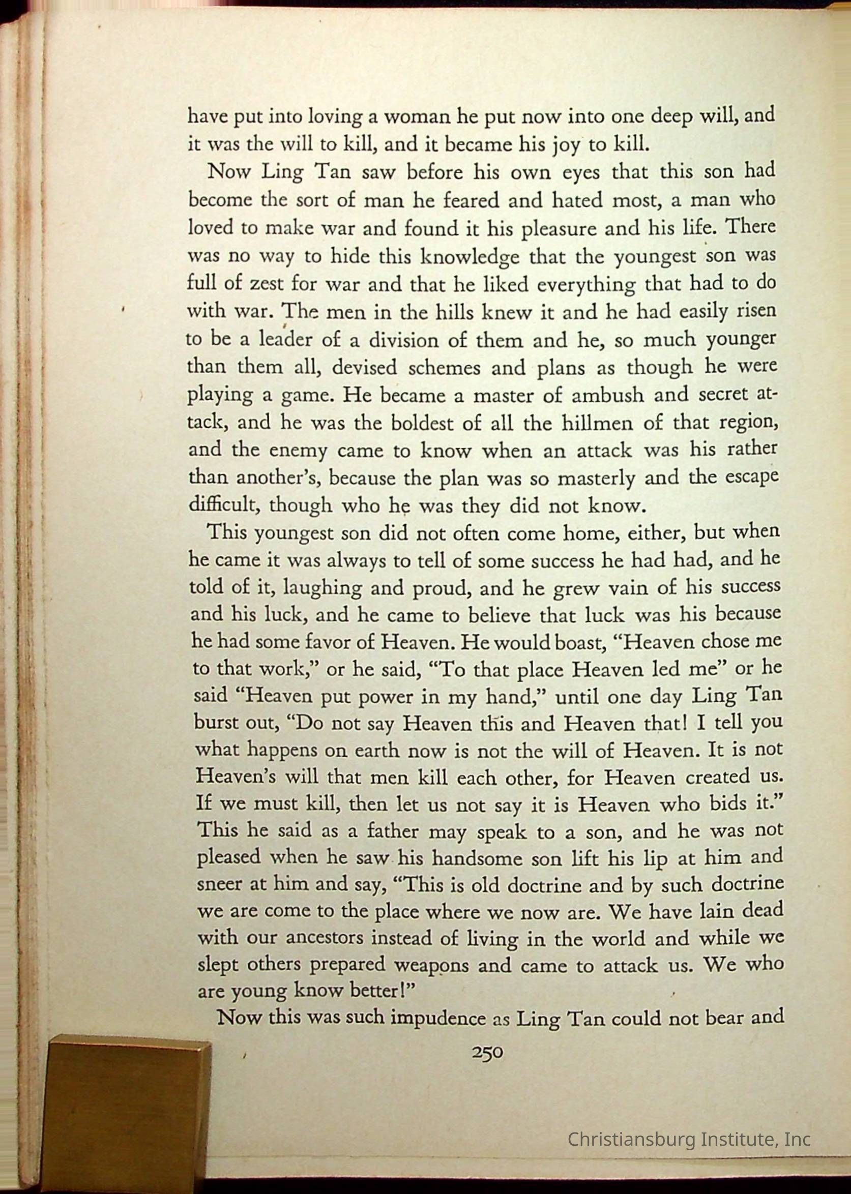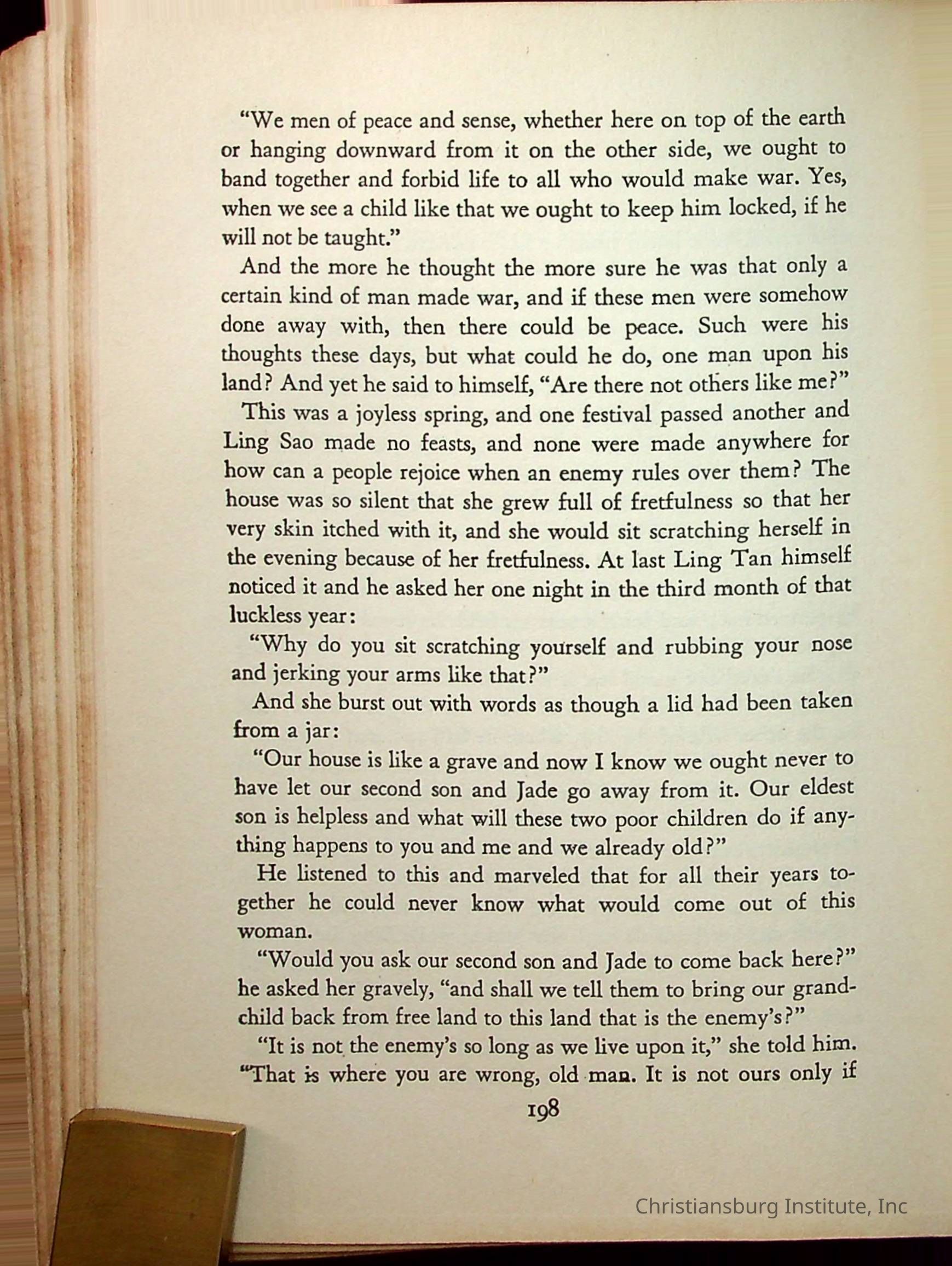 Dragon Seed, written by Pearl S. Buck and published in the year 1942. This book was used by Christiansburg Institute teacher, Viola Charlton in her class.Collection