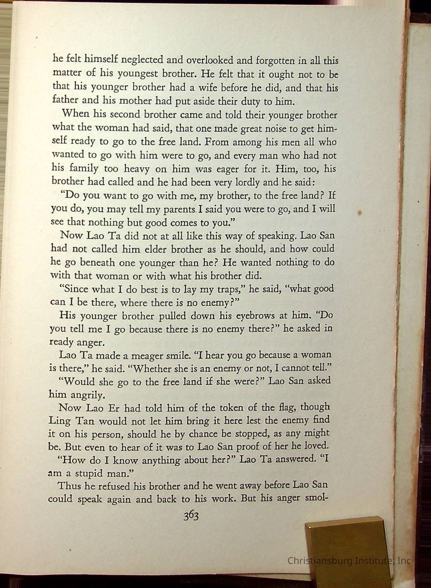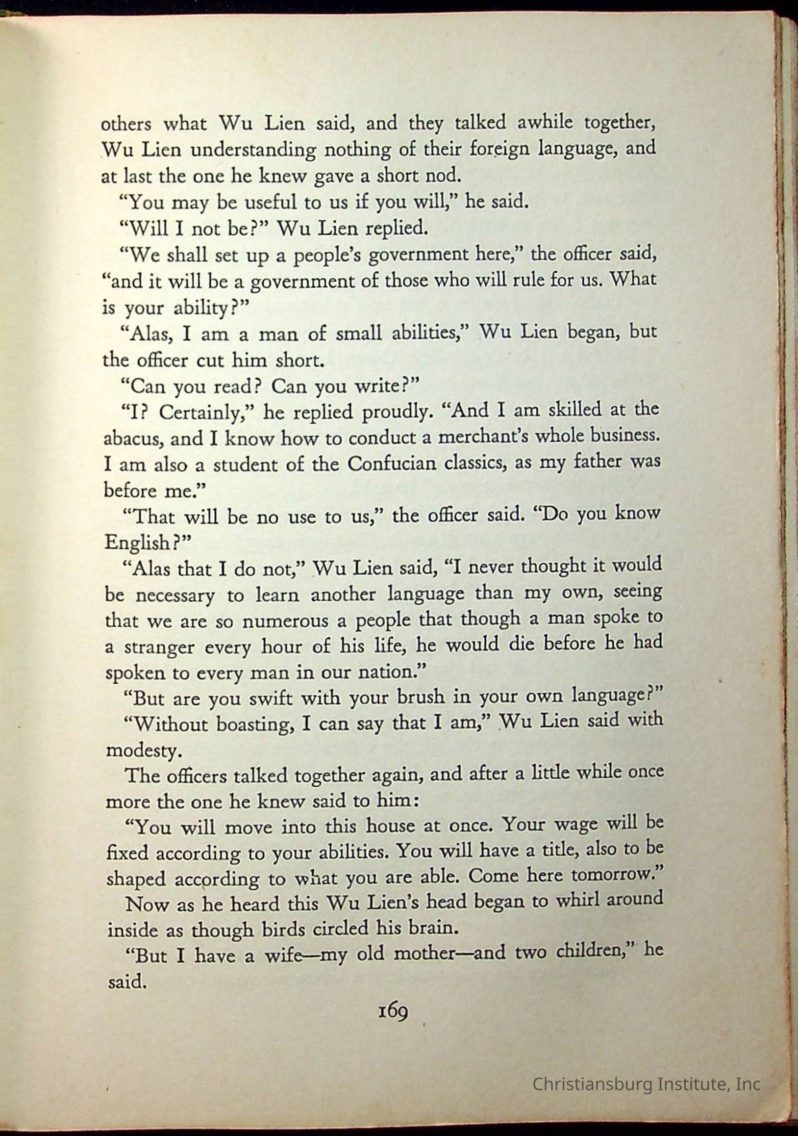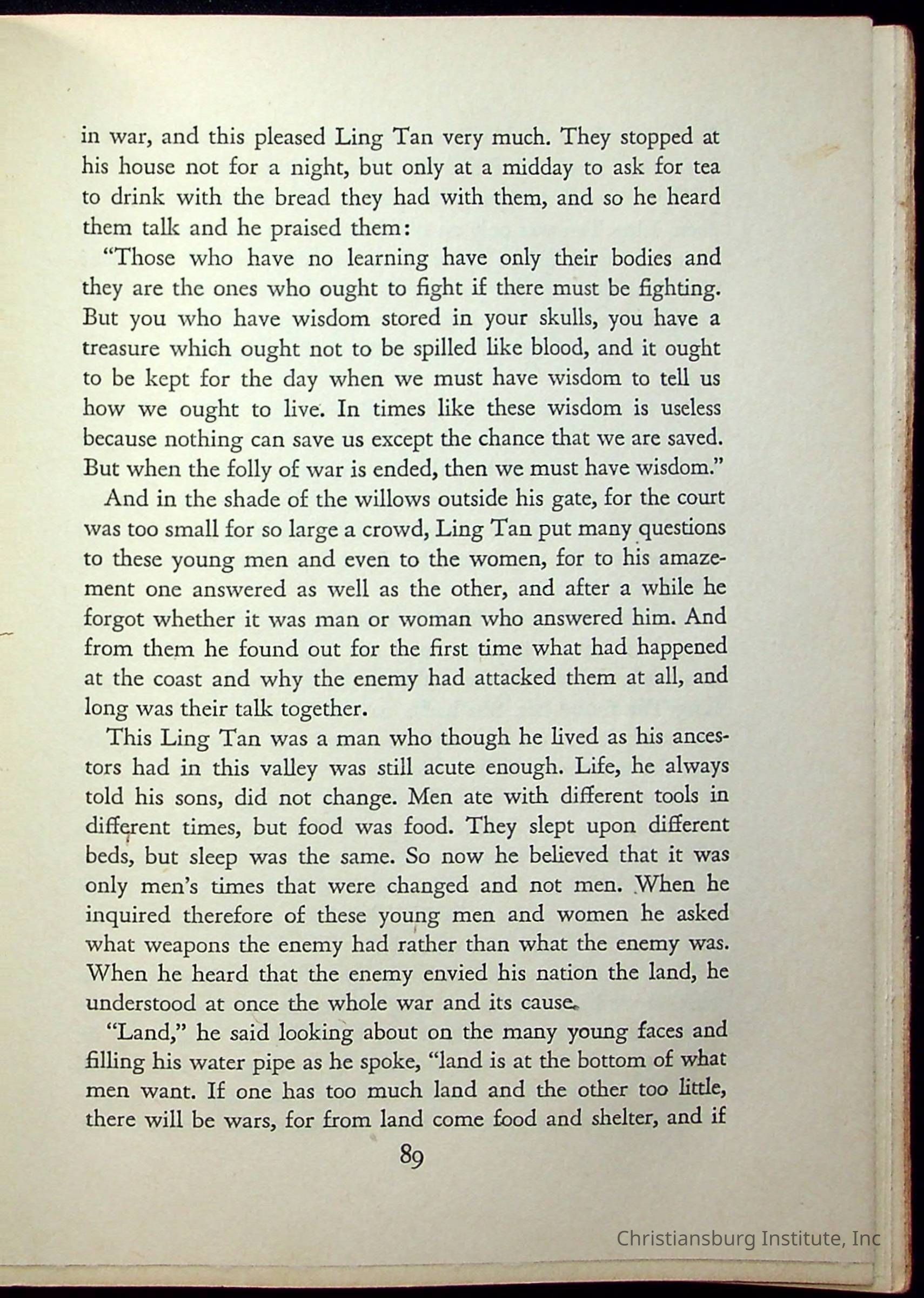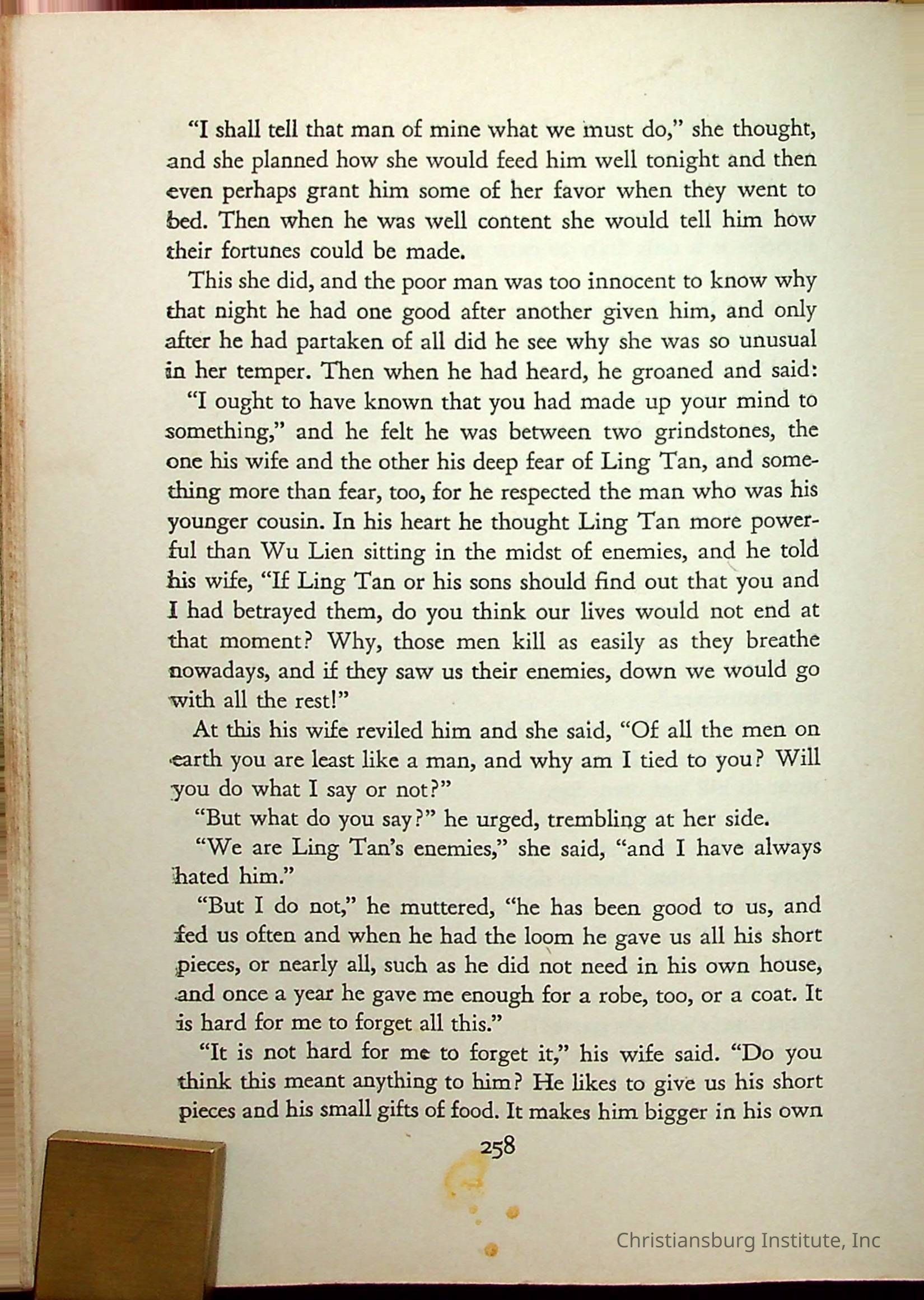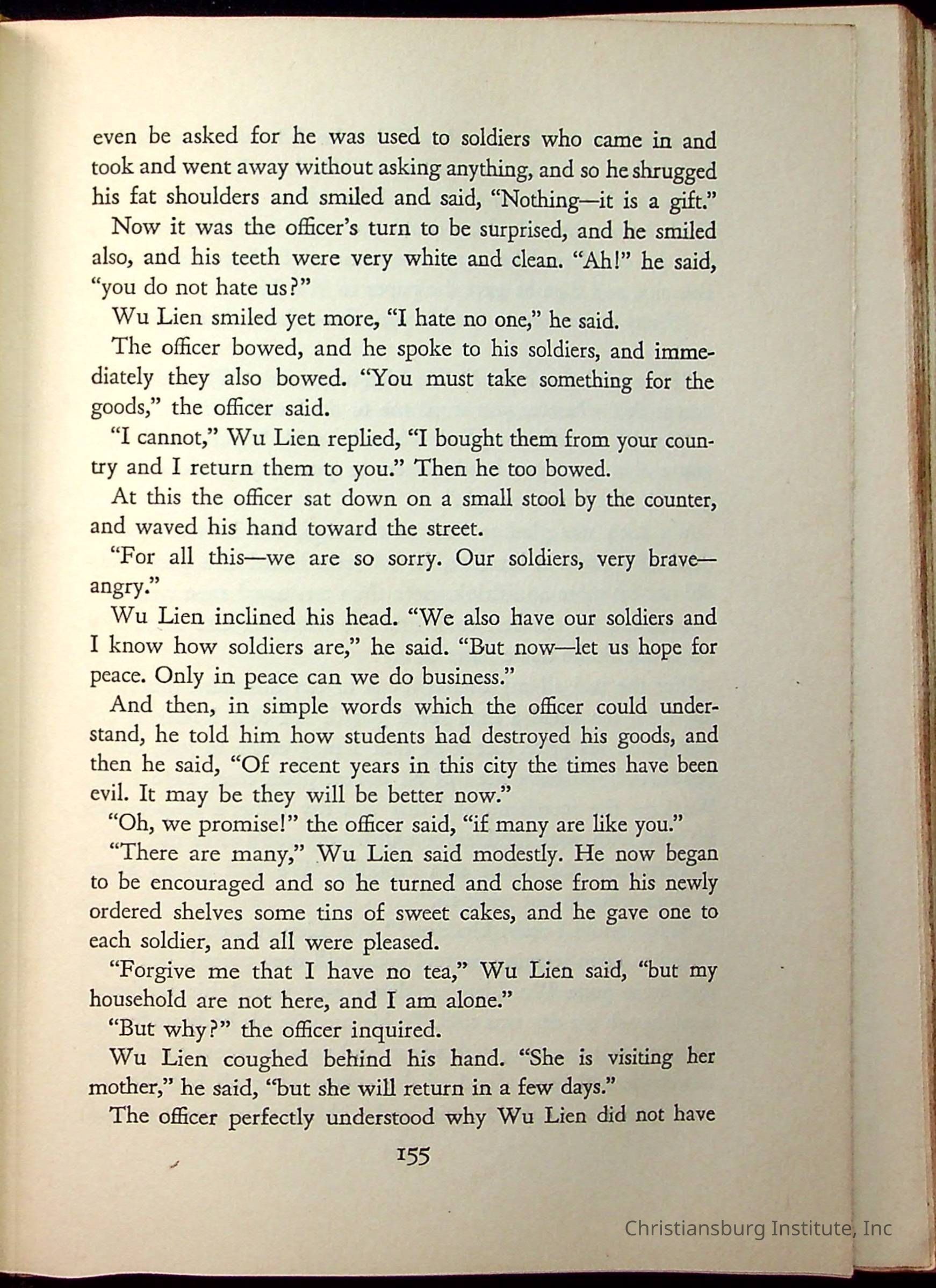 Dragon Seed, written by Pearl S. Buck and published in the year 1942. This book was used by Christiansburg Institute teacher, Viola Charlton in her class.Collection