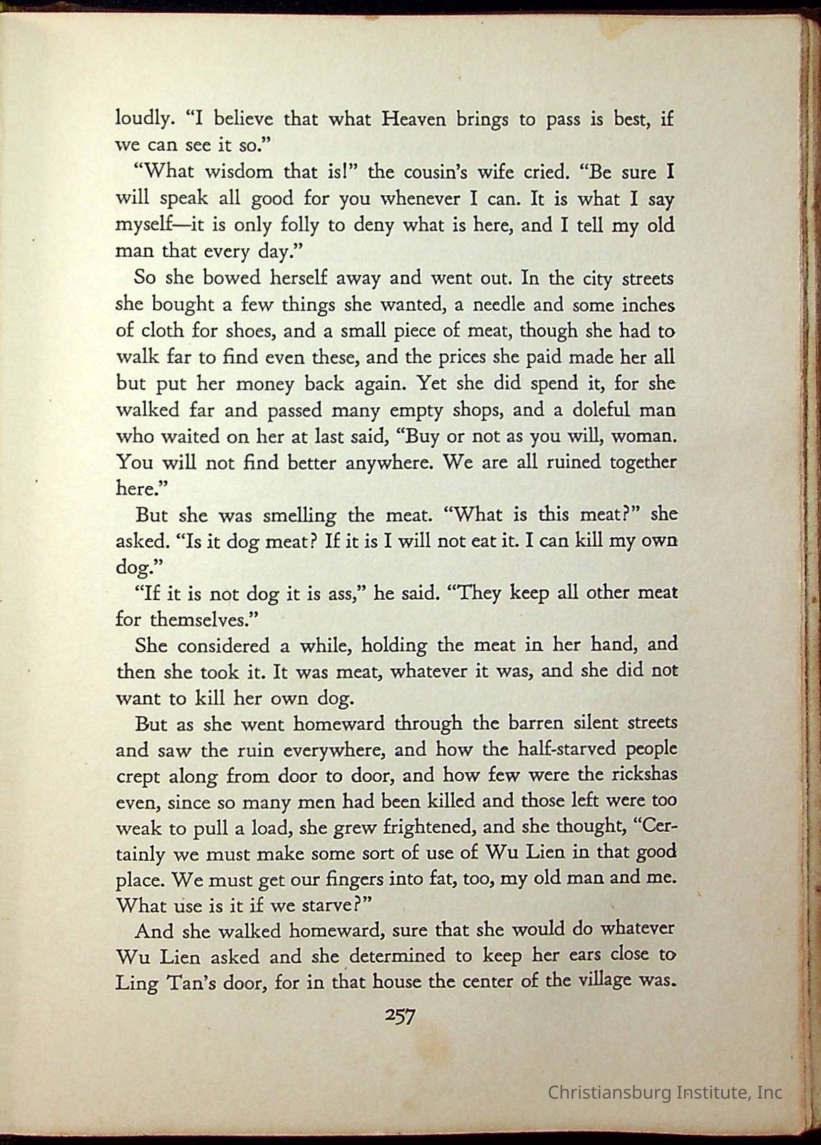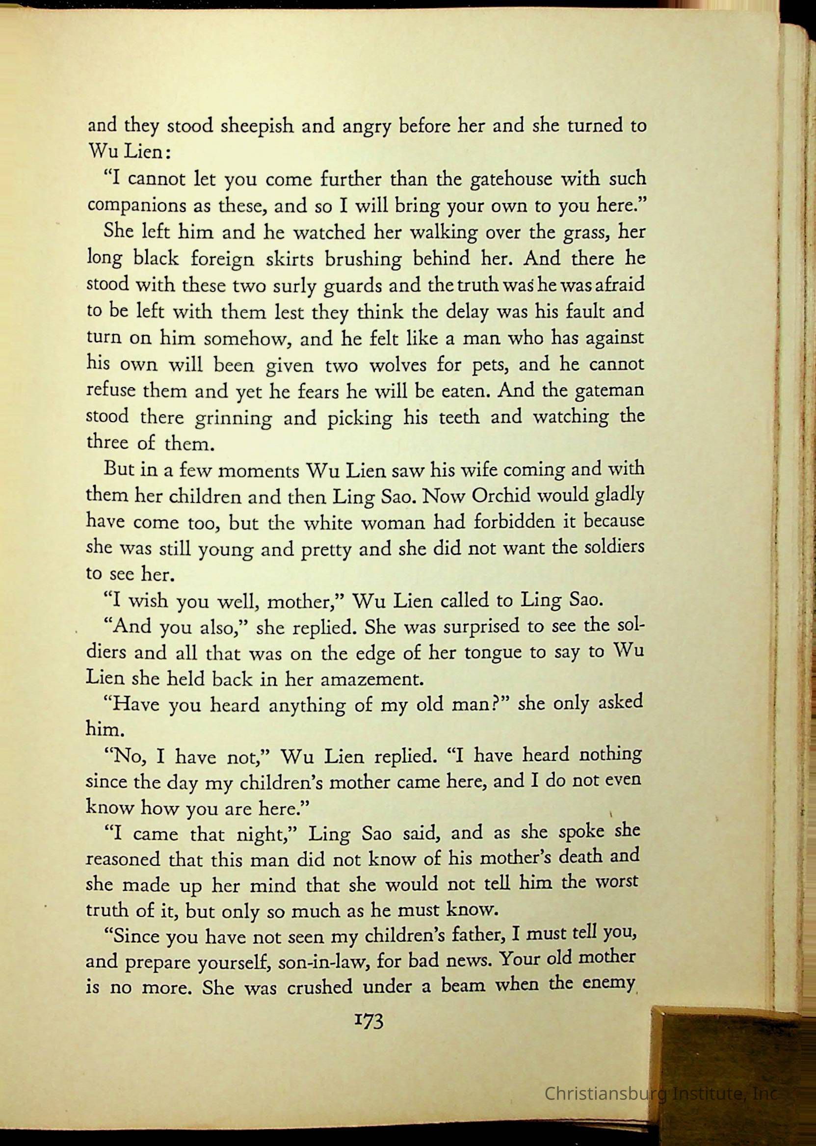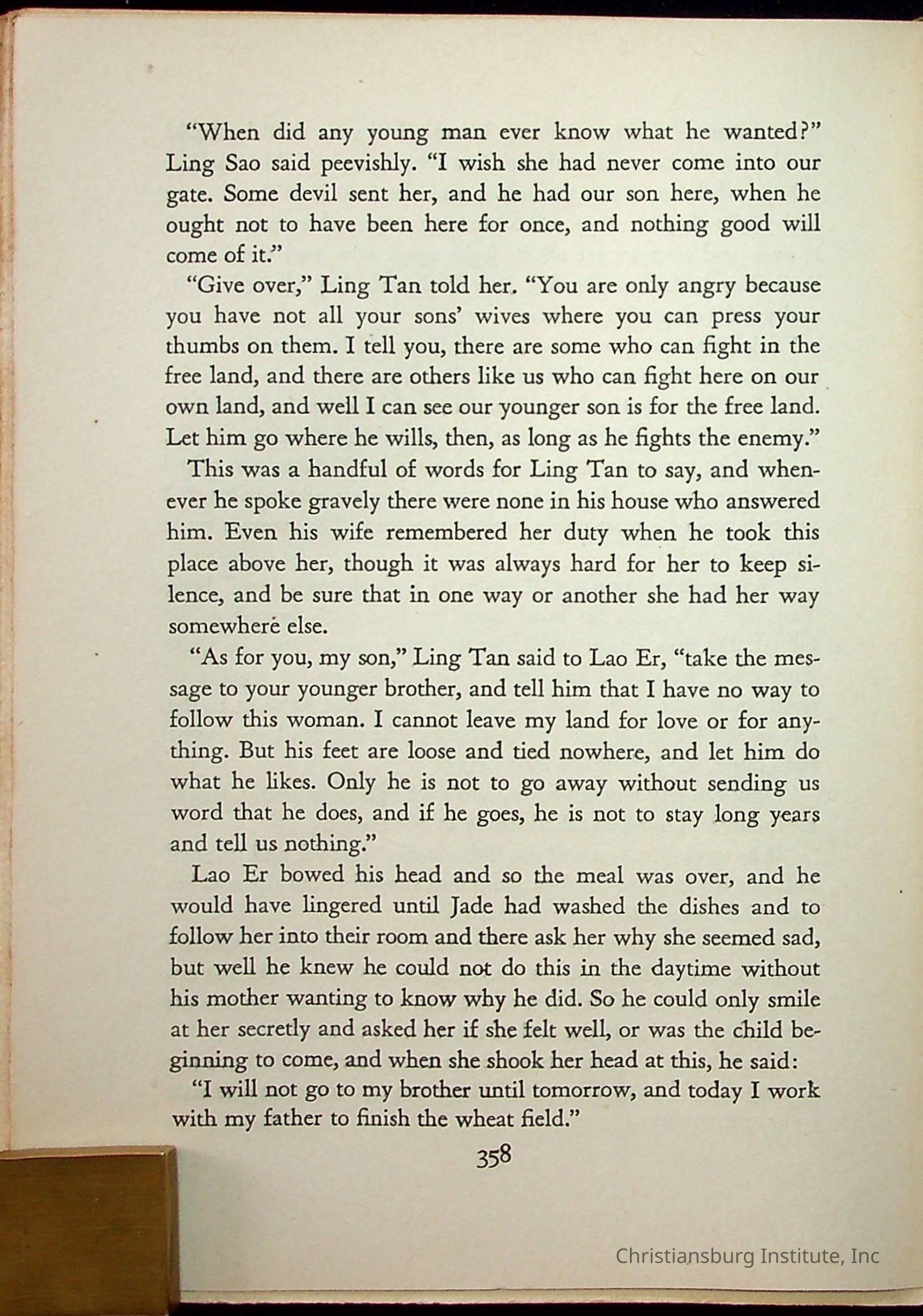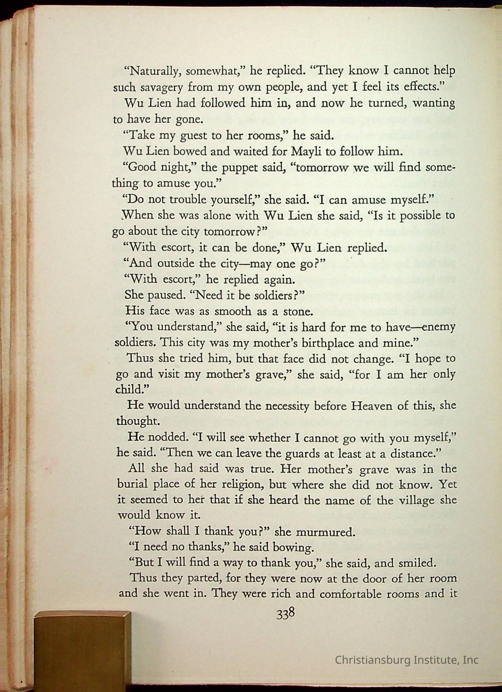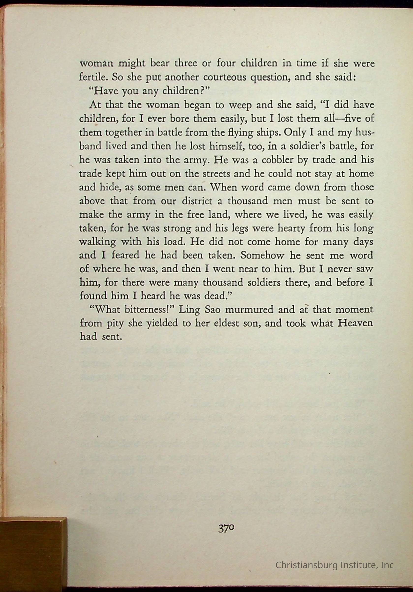 Dragon Seed, written by Pearl S. Buck and published in the year 1942. This book was used by Christiansburg Institute teacher, Viola Charlton in her class.Collection