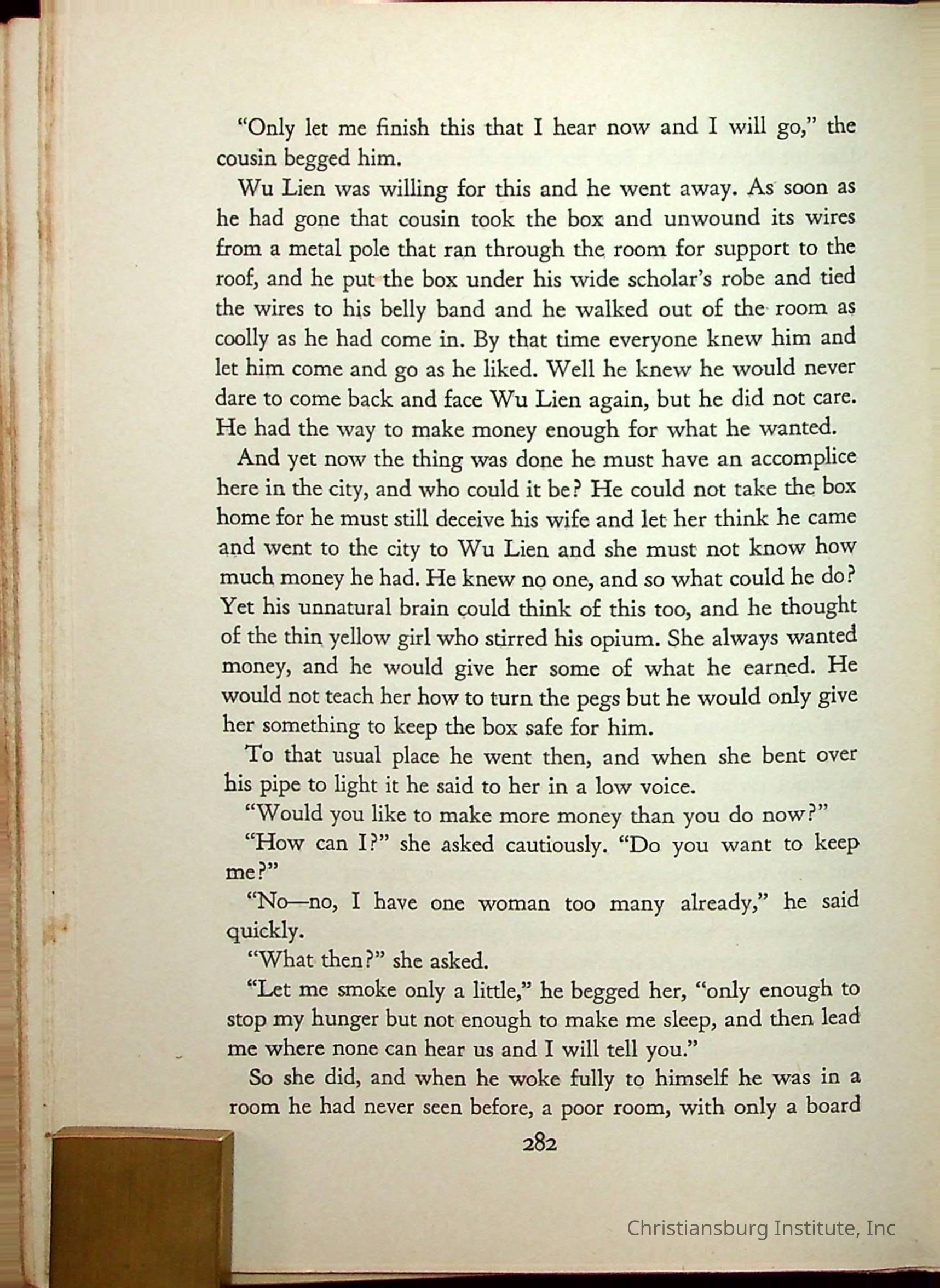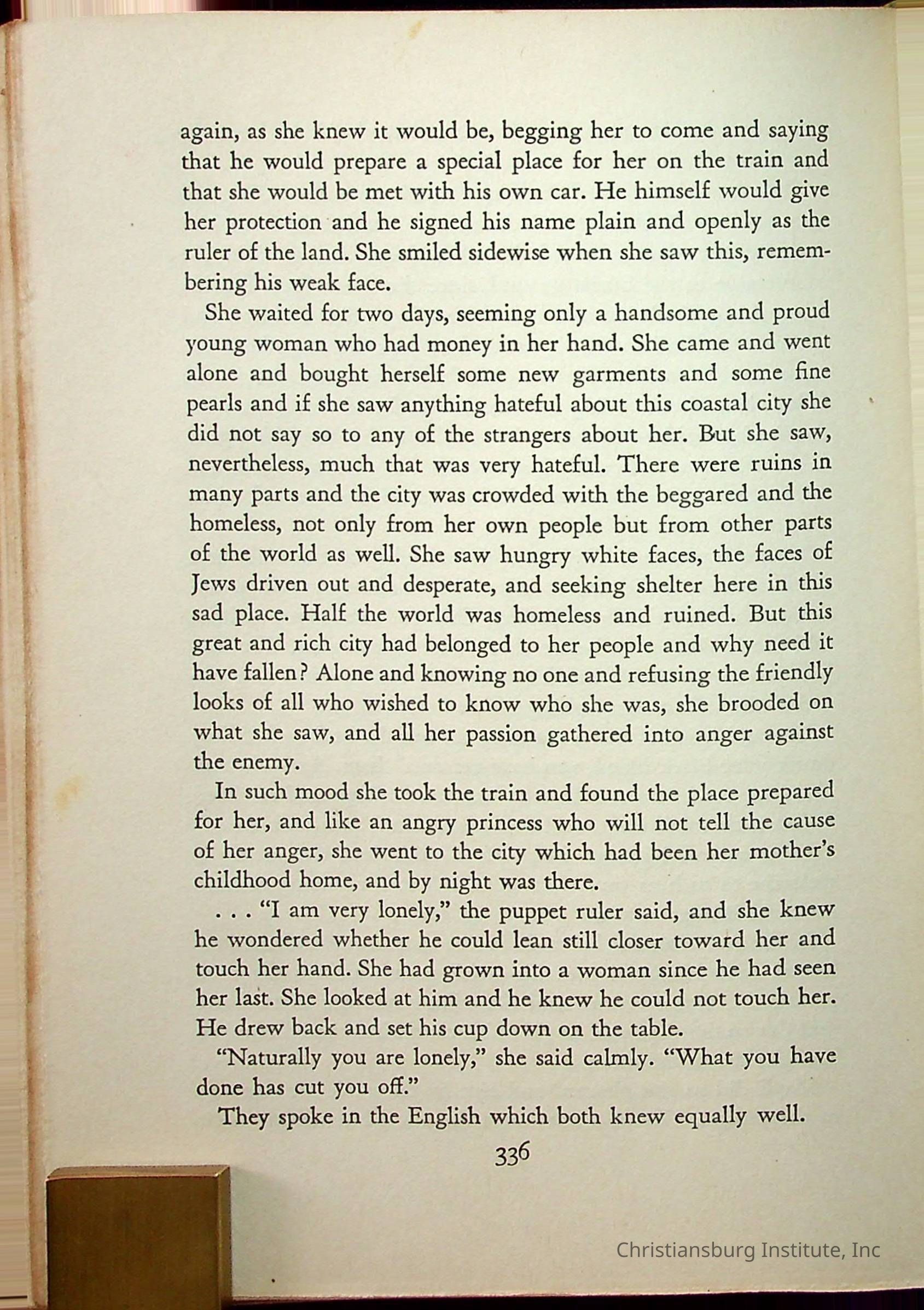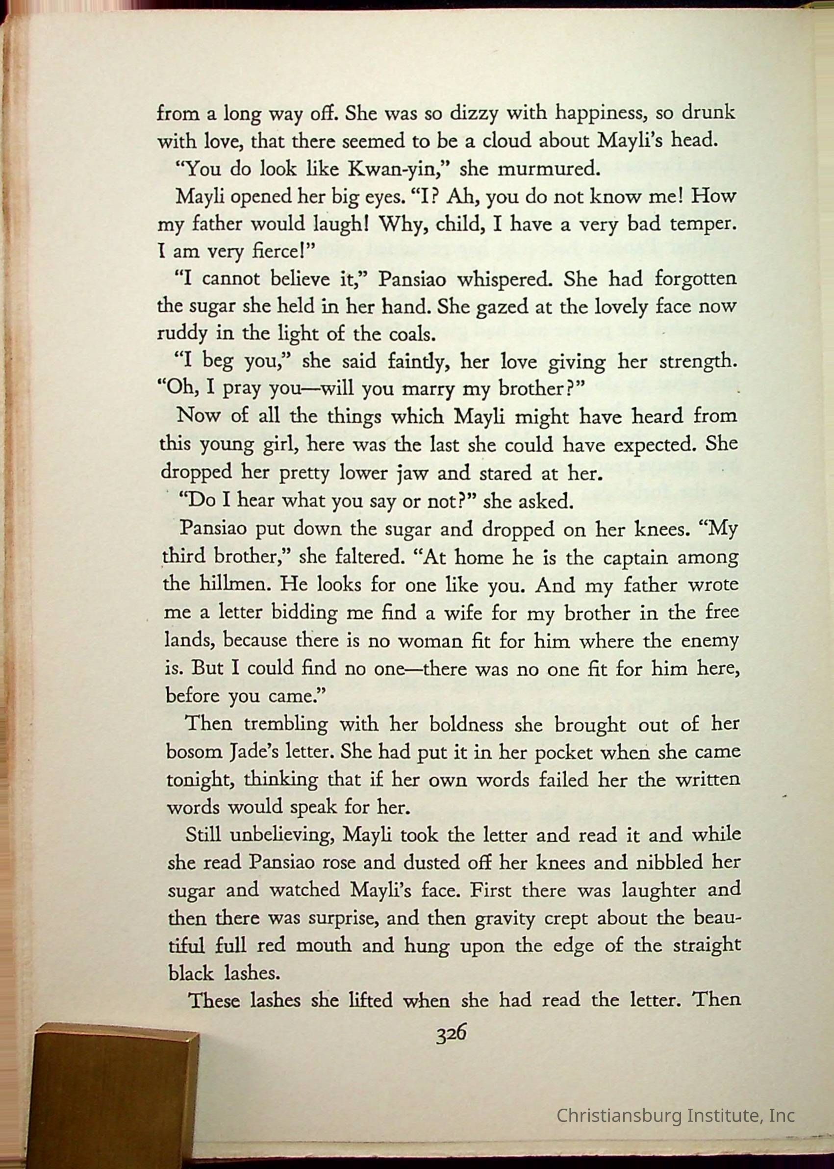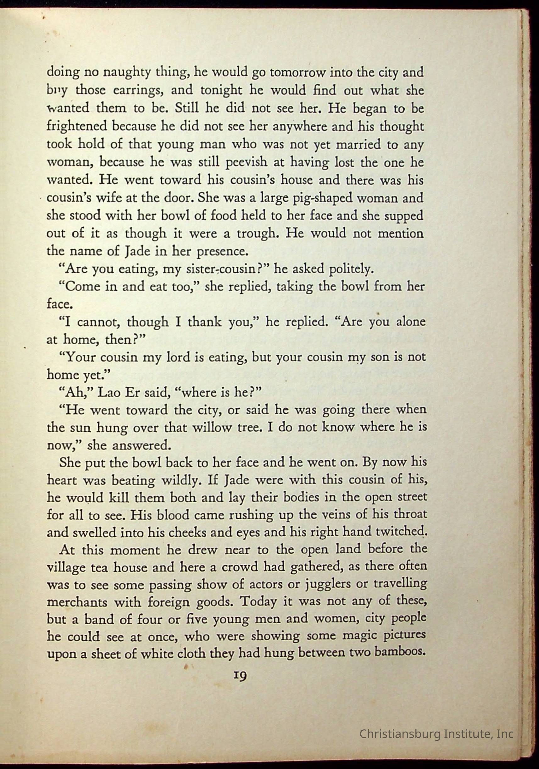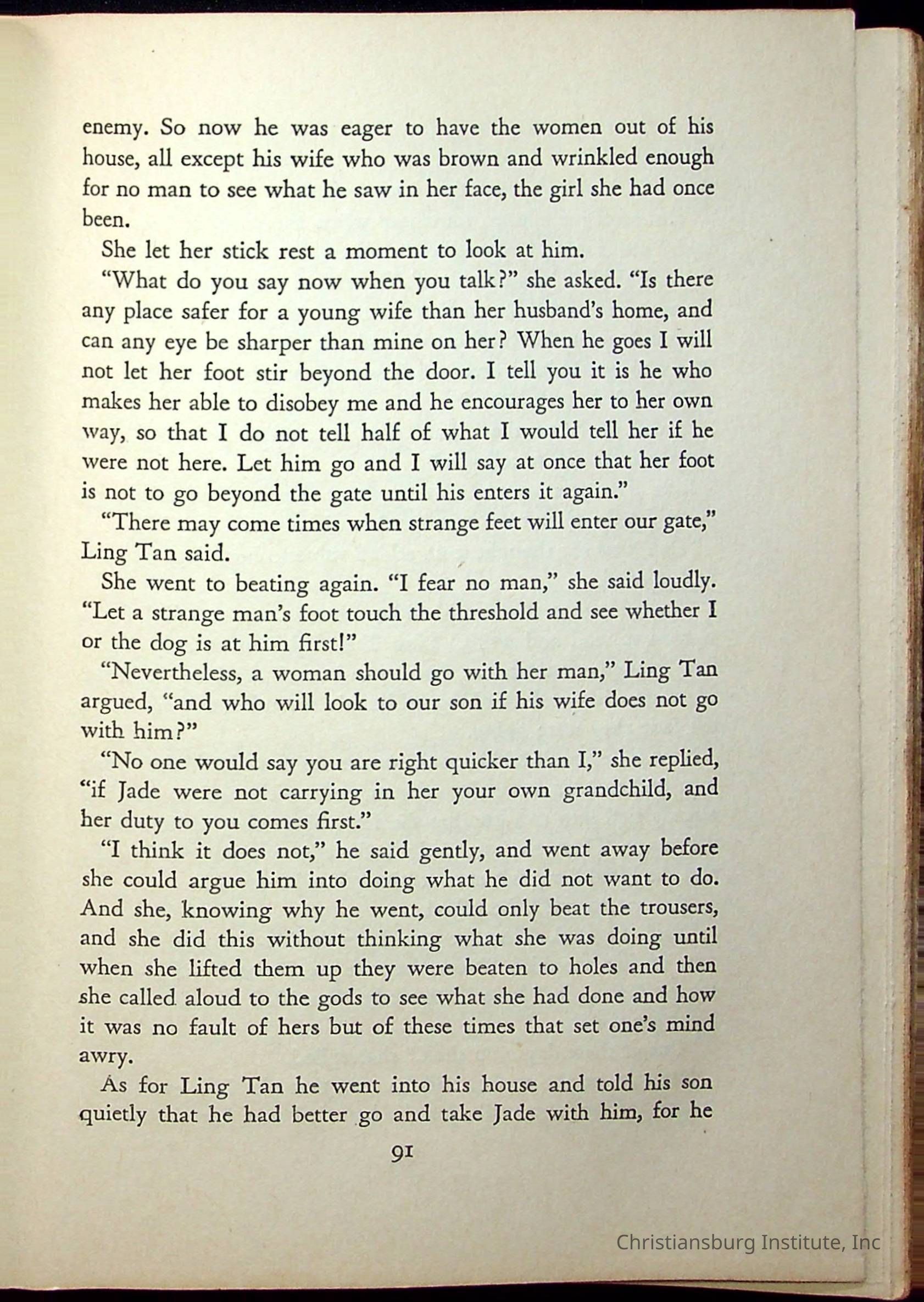 Dragon Seed, written by Pearl S. Buck and published in the year 1942. This book was used by Christiansburg Institute teacher, Viola Charlton in her class.Collection