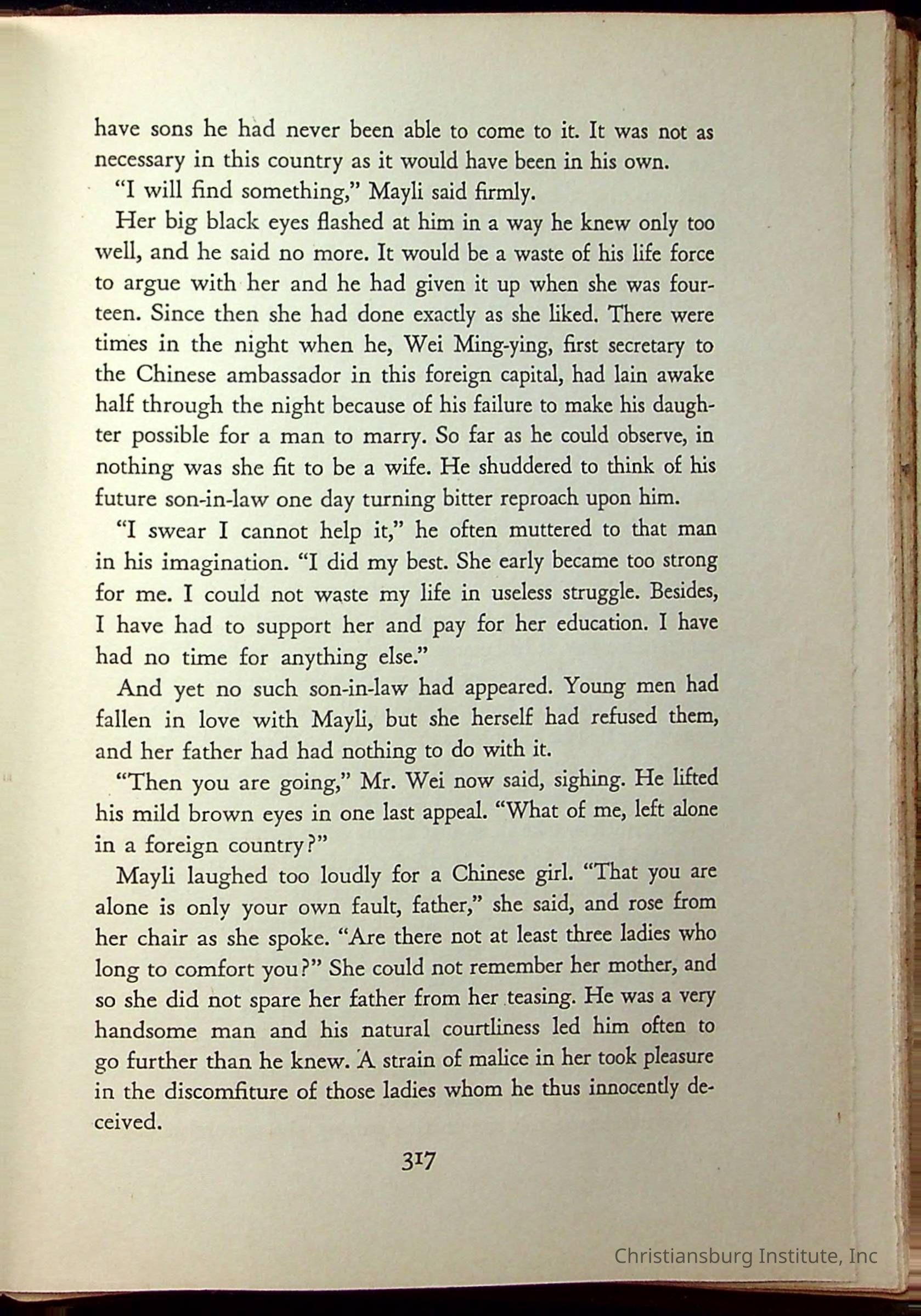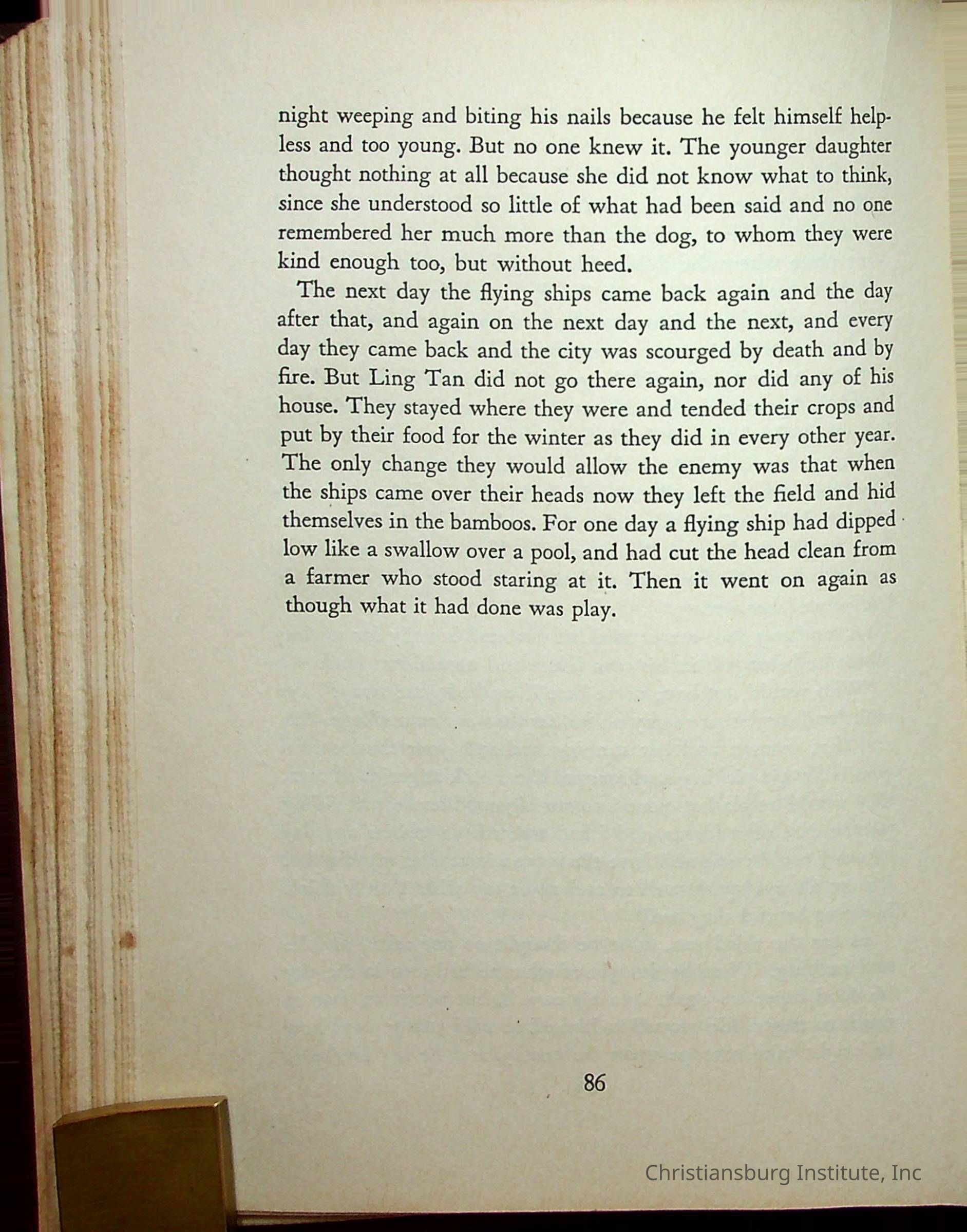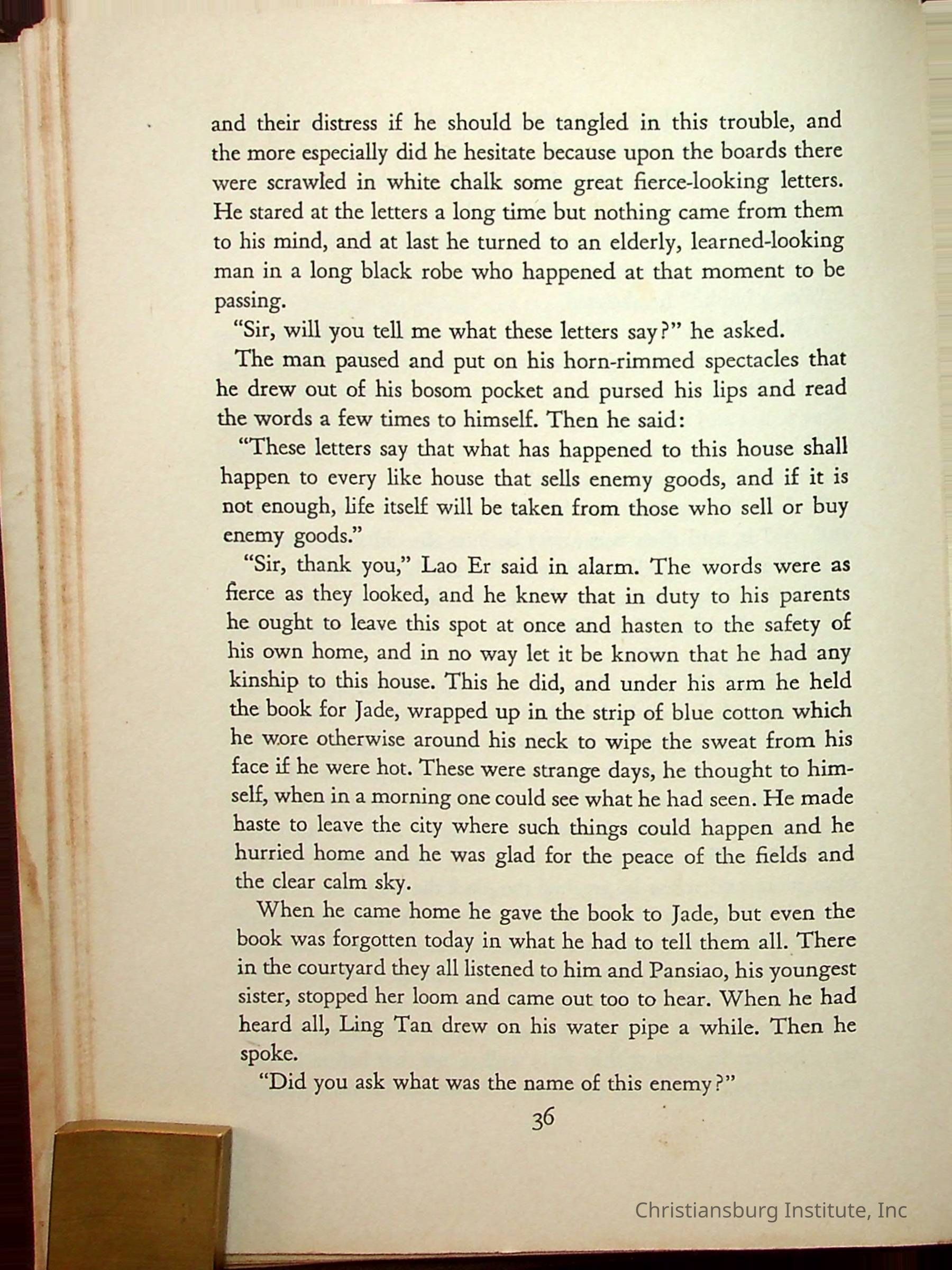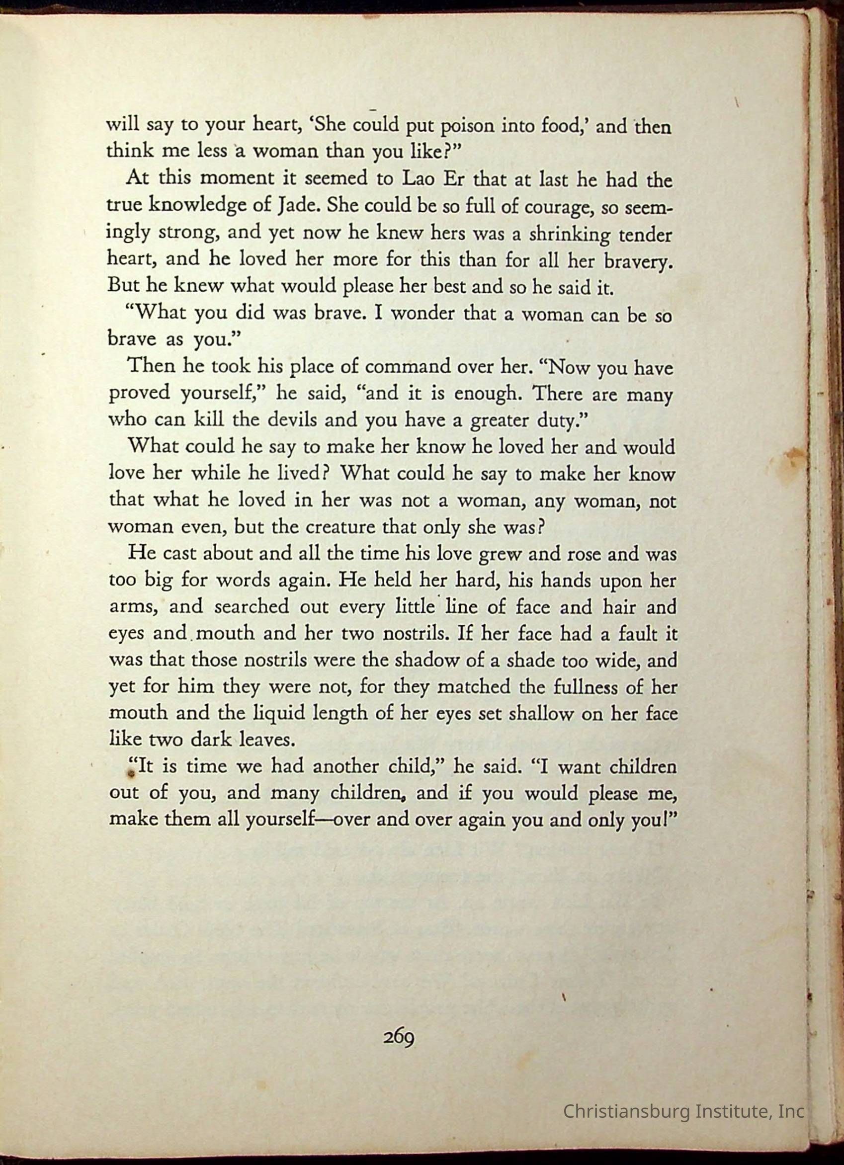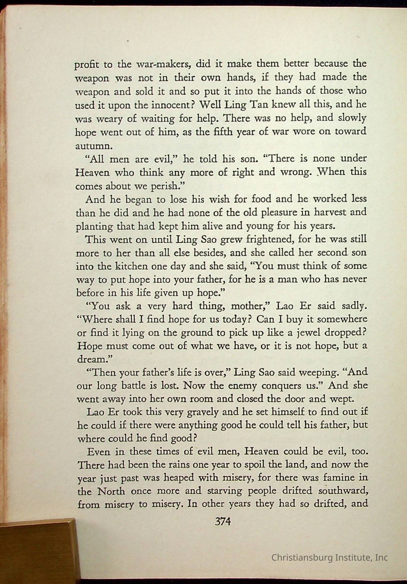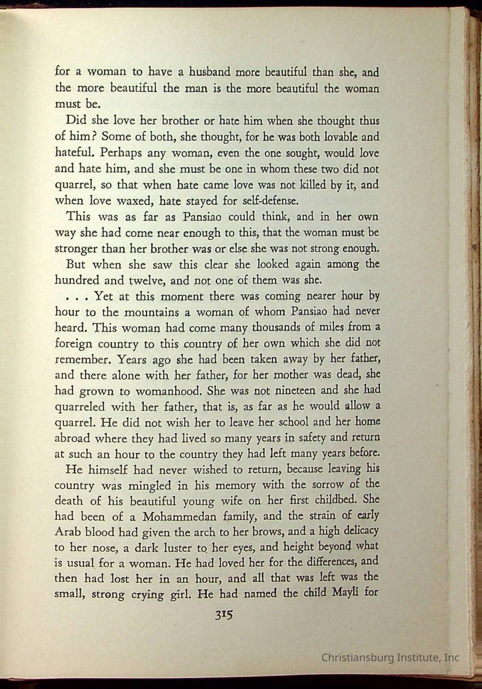 Dragon Seed, written by Pearl S. Buck and published in the year 1942. This book was used by Christiansburg Institute teacher, Viola Charlton in her class.Collection