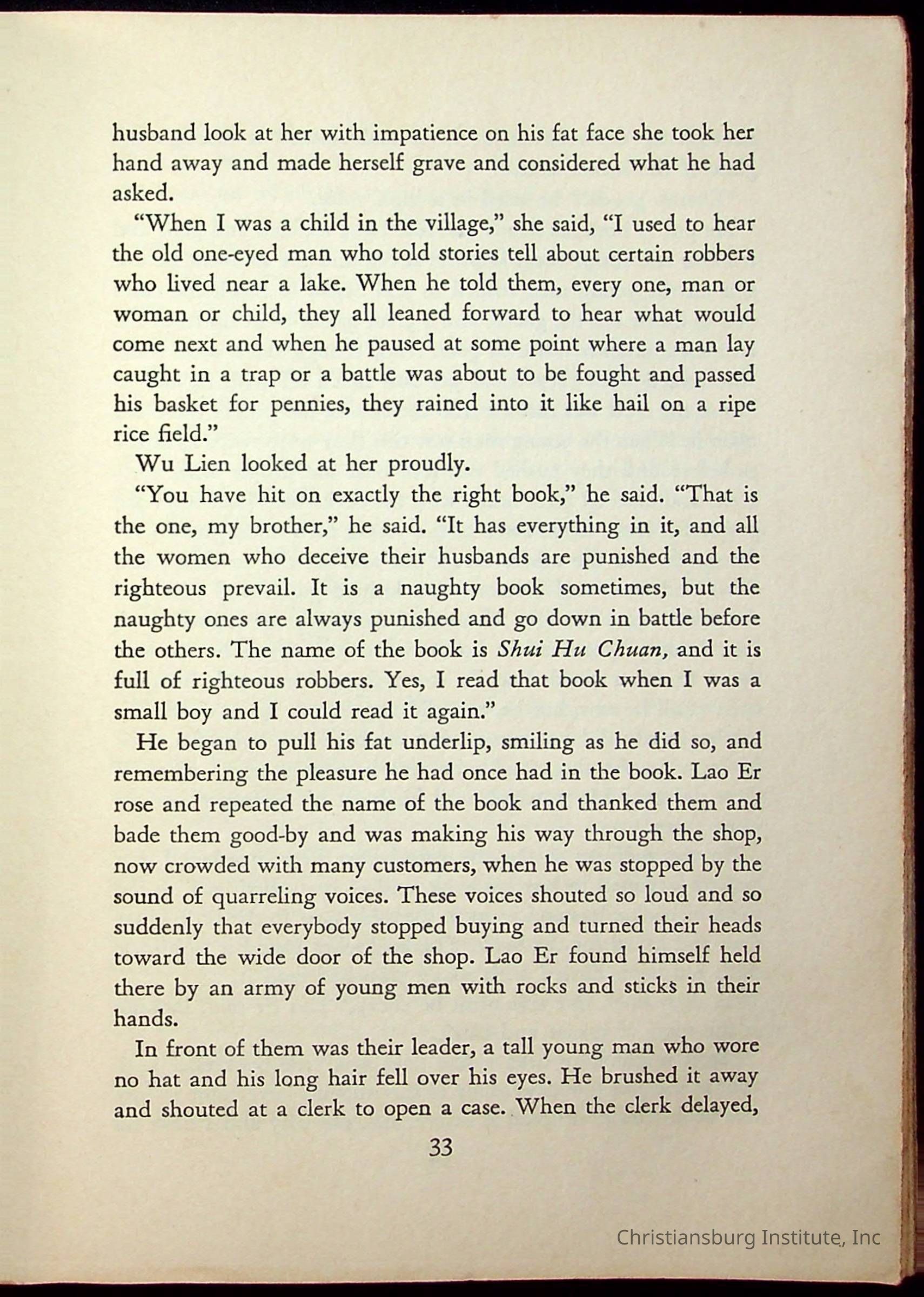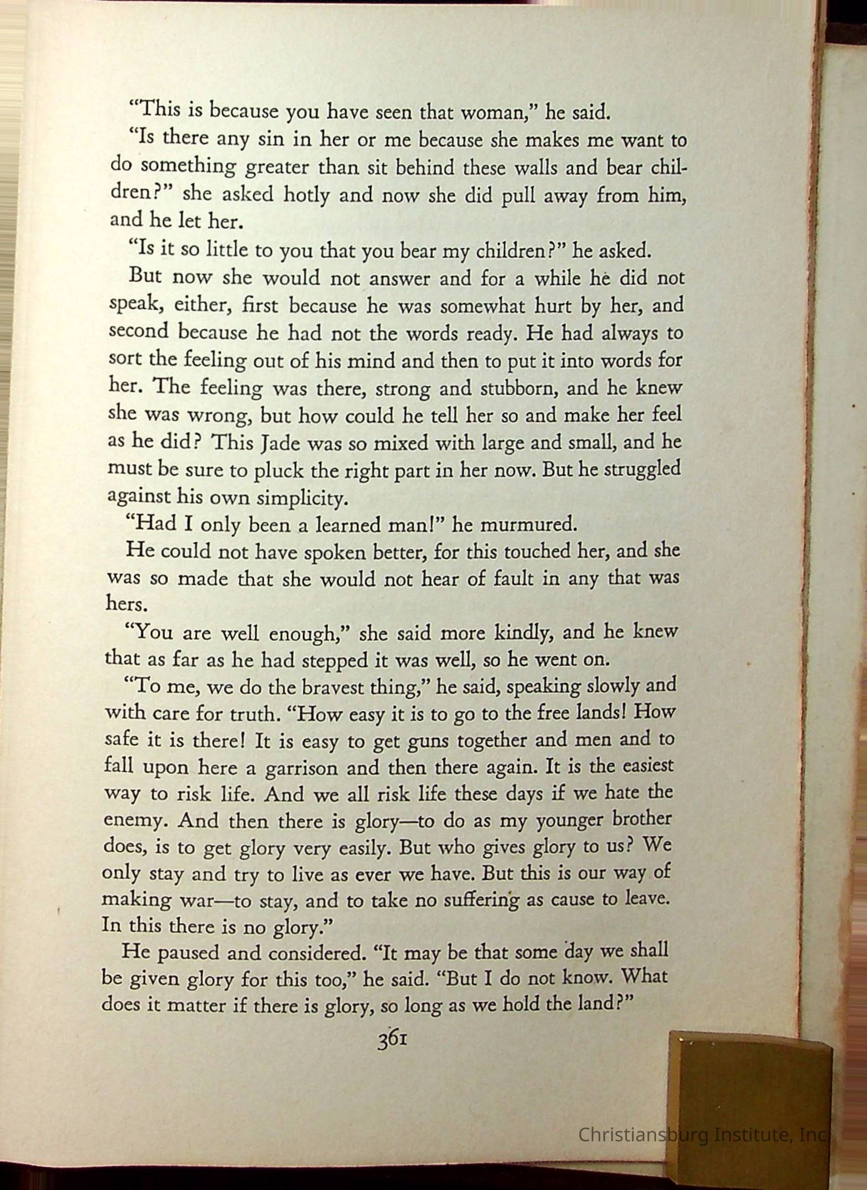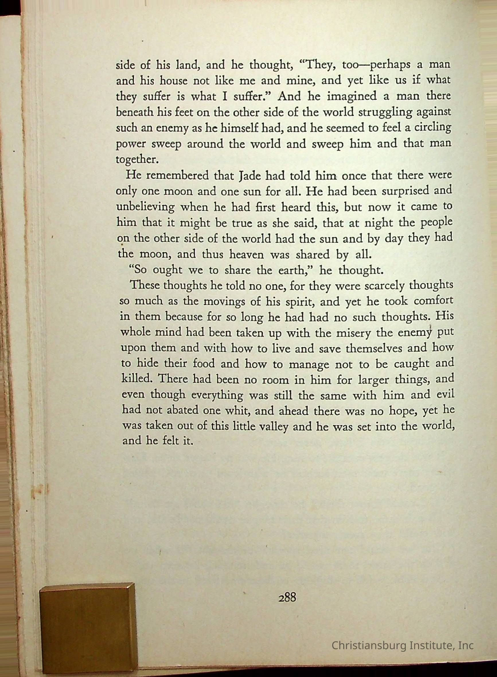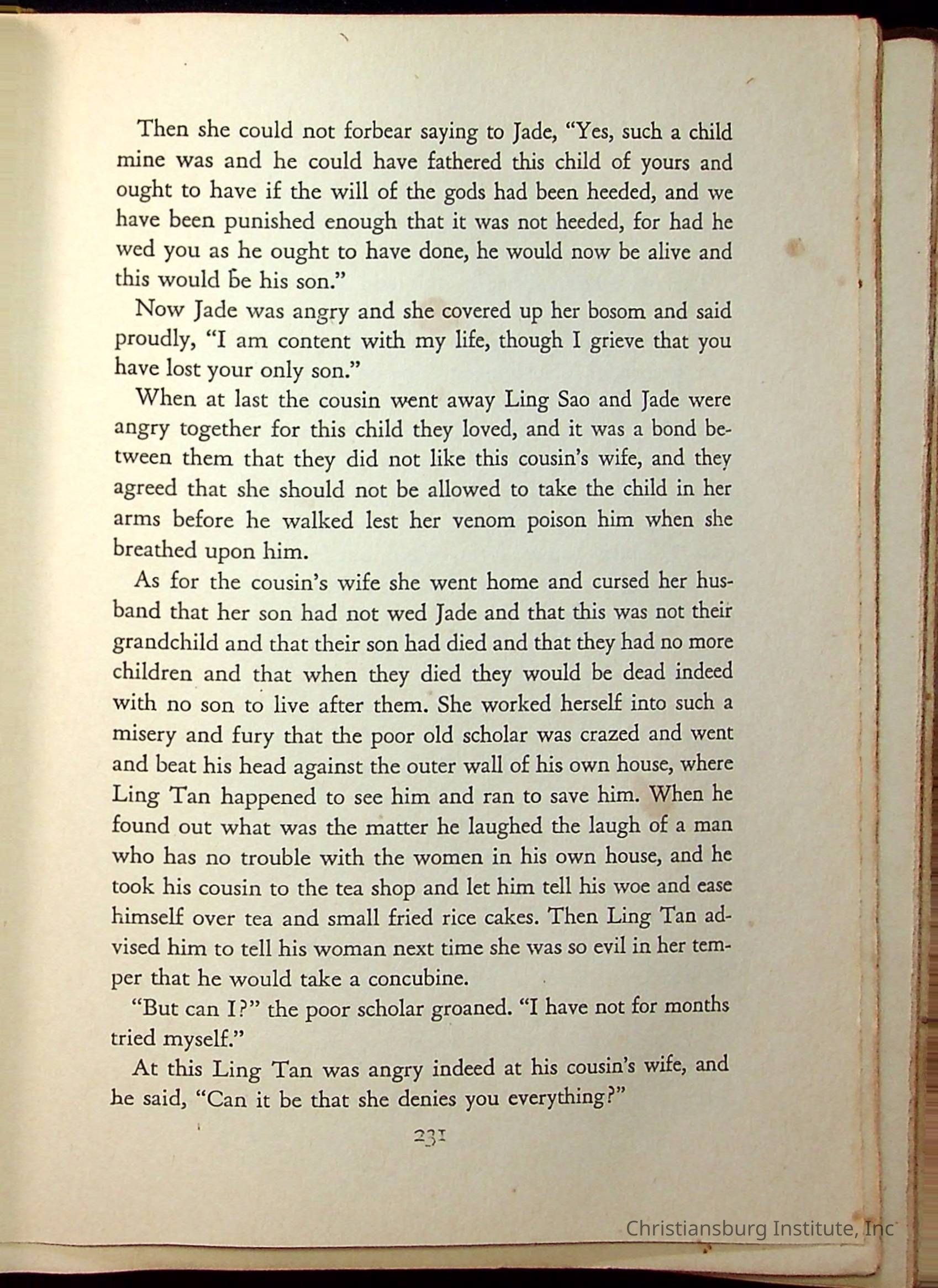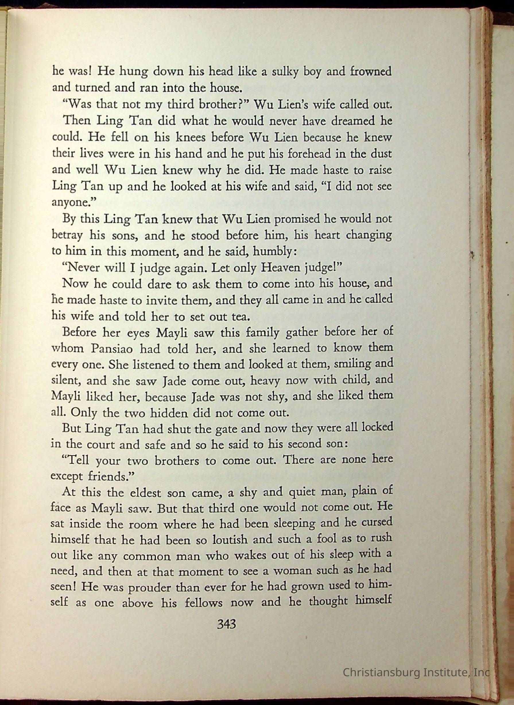 Dragon Seed, written by Pearl S. Buck and published in the year 1942. This book was used by Christiansburg Institute teacher, Viola Charlton in her class.Collection