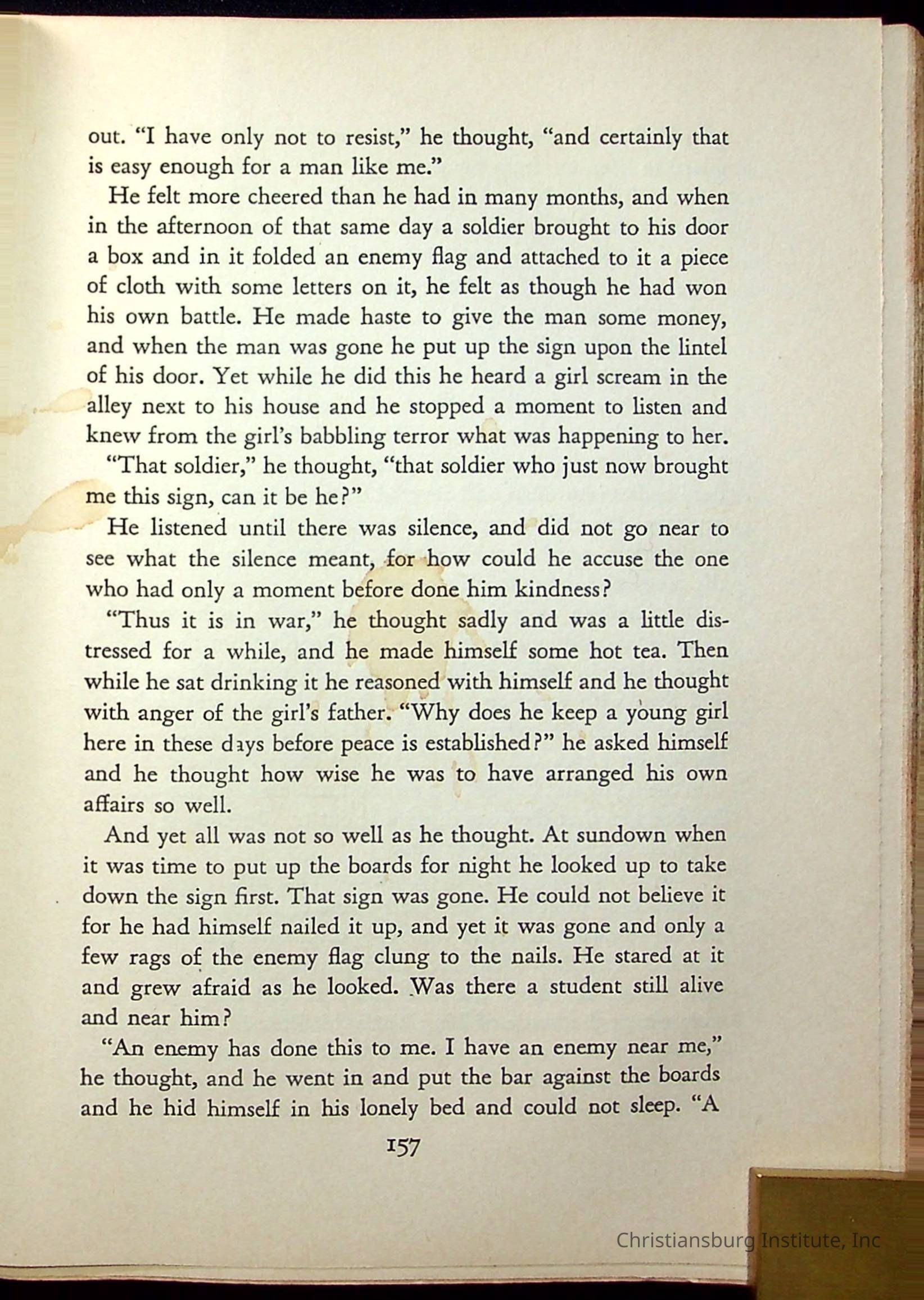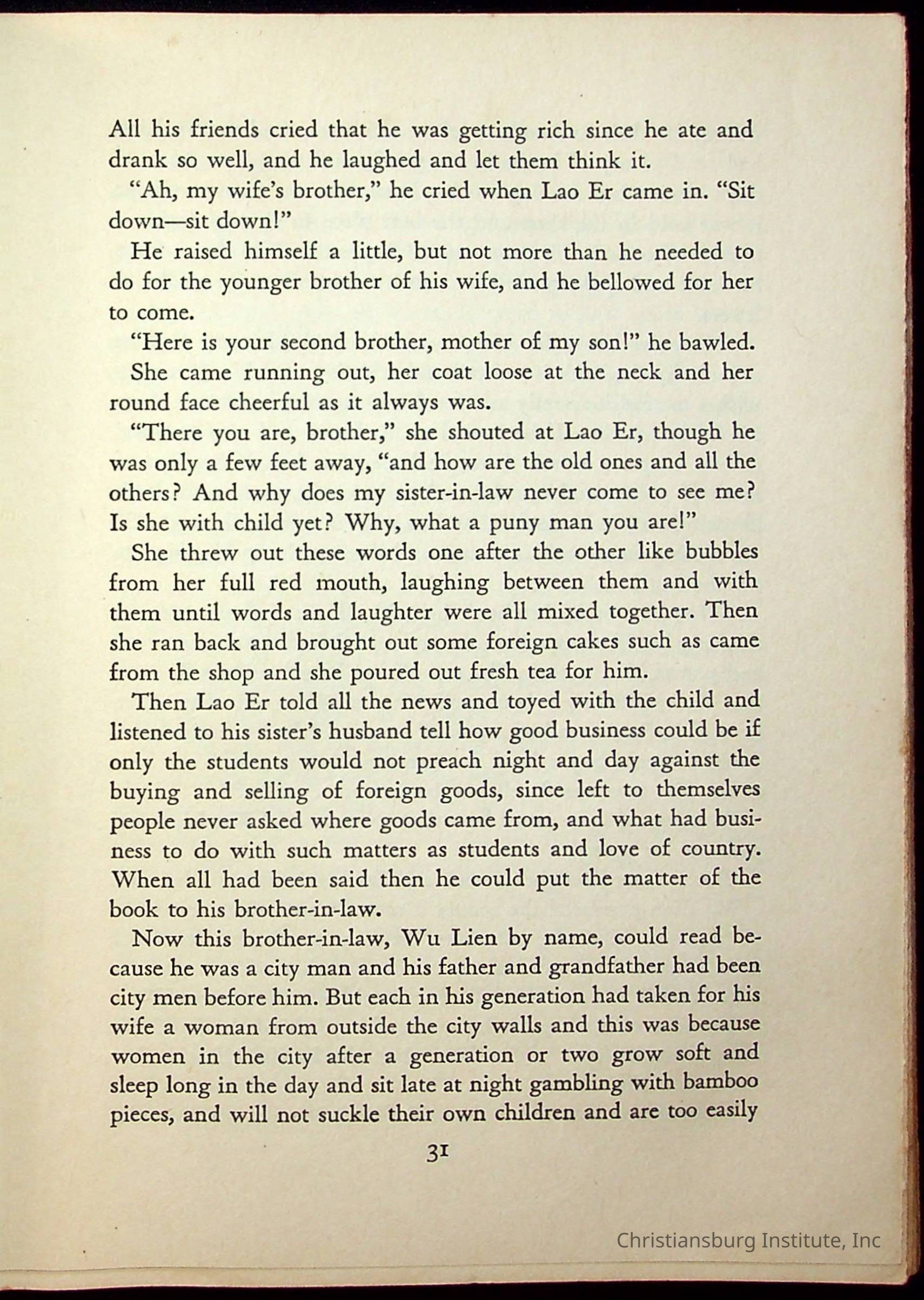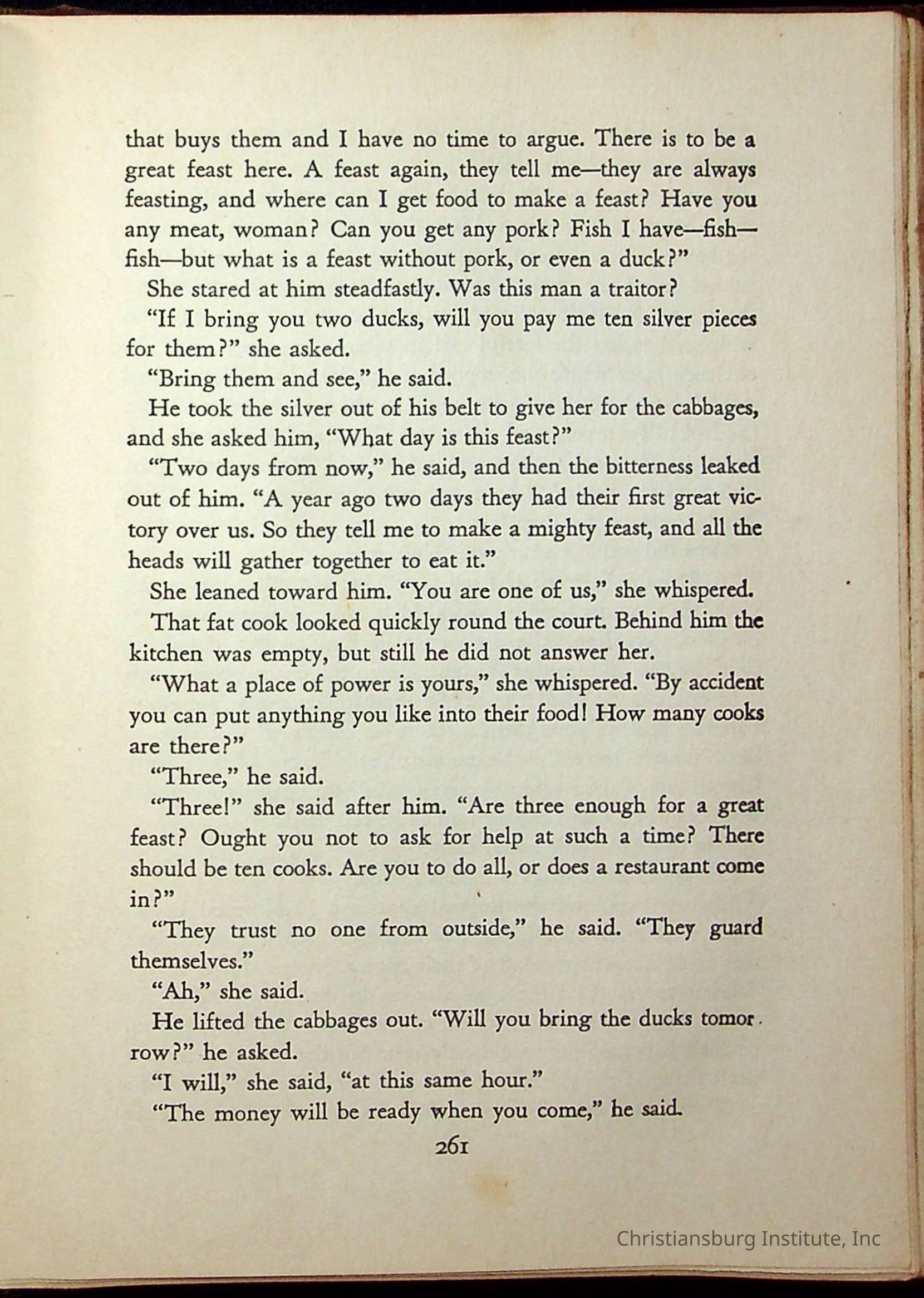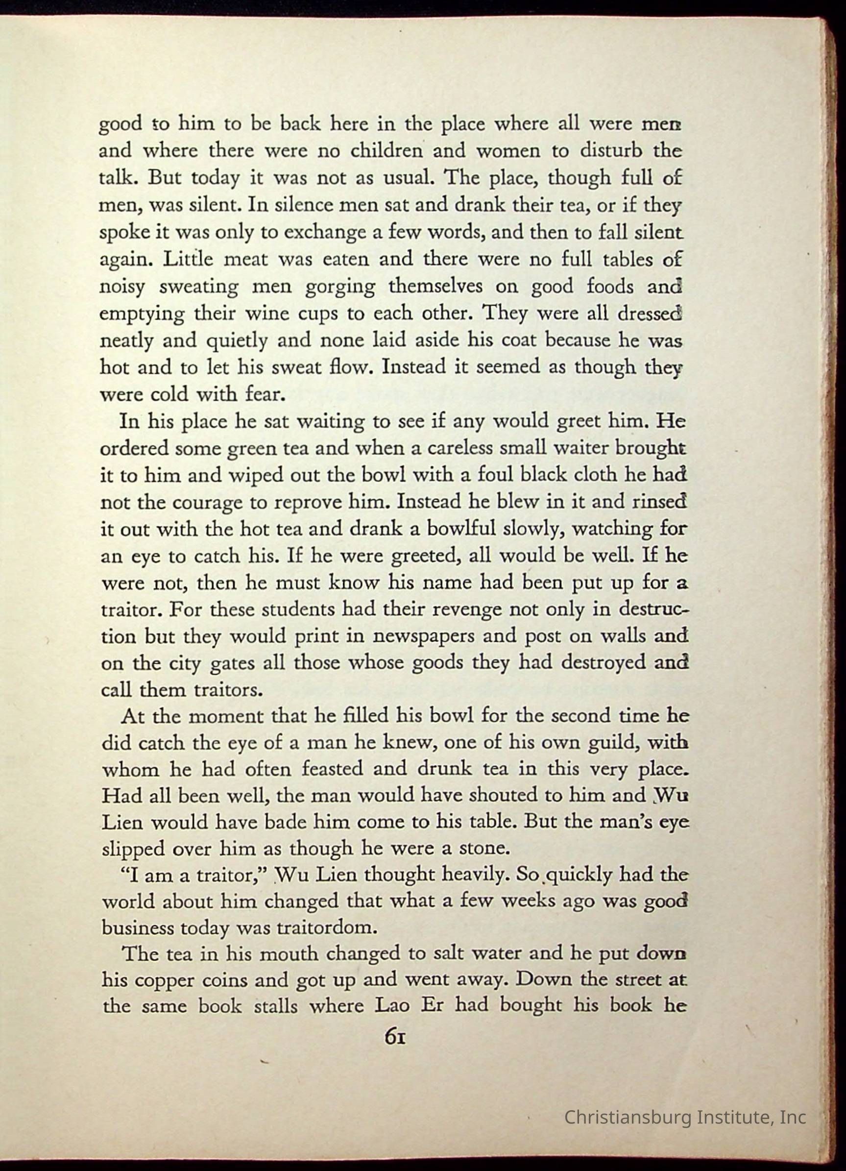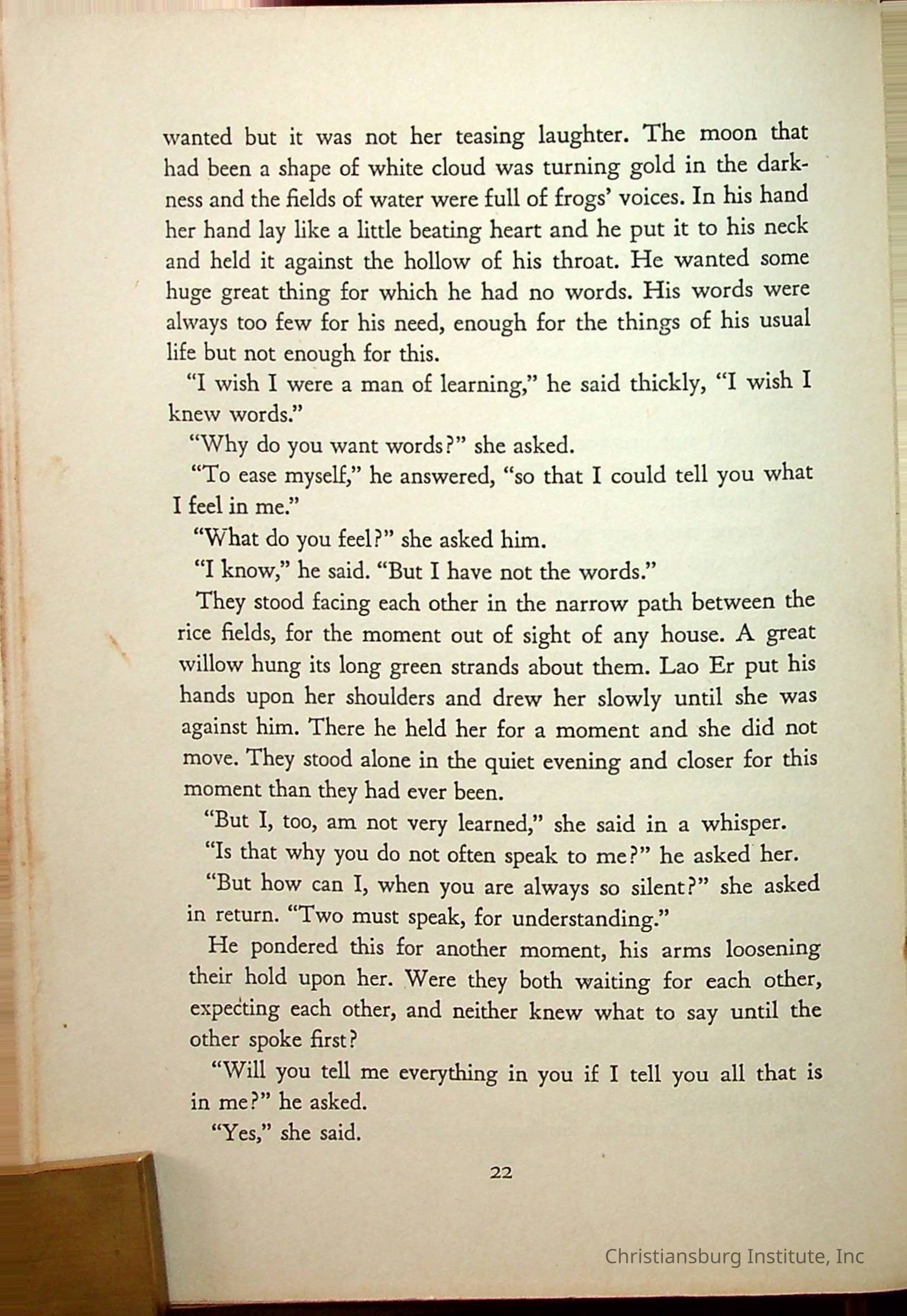 Dragon Seed, written by Pearl S. Buck and published in the year 1942. This book was used by Christiansburg Institute teacher, Viola Charlton in her class.Collection