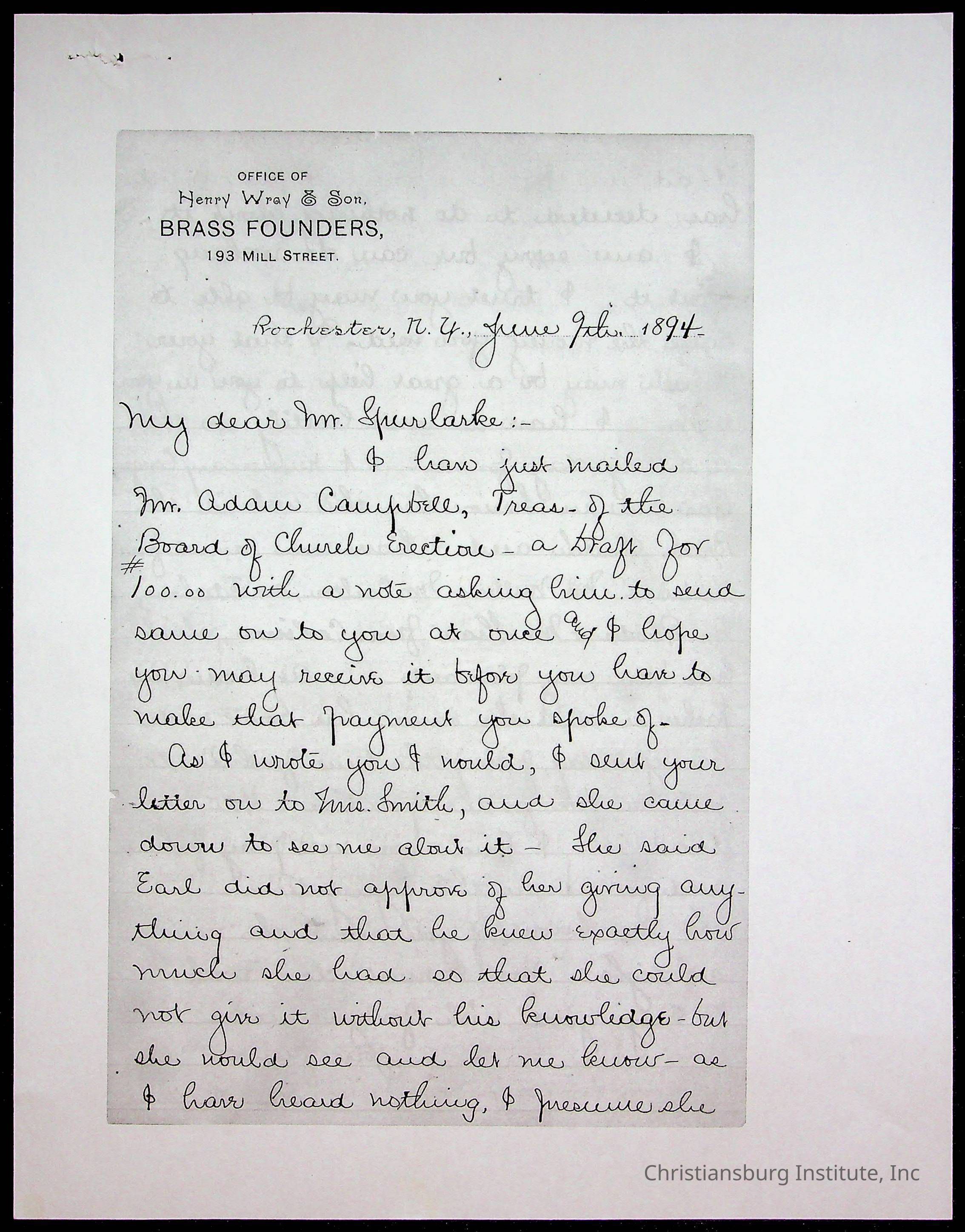 Copyright has been assigned to Christiansburg Institute Museum & Archives by Fifth Avenue Presbyterian Church. For permission to publish materials created by the donor, contact CIMA@christiansburginstitute.com. Materials not created by Fifth Avenue Presbyterian Church may still be under copyright.