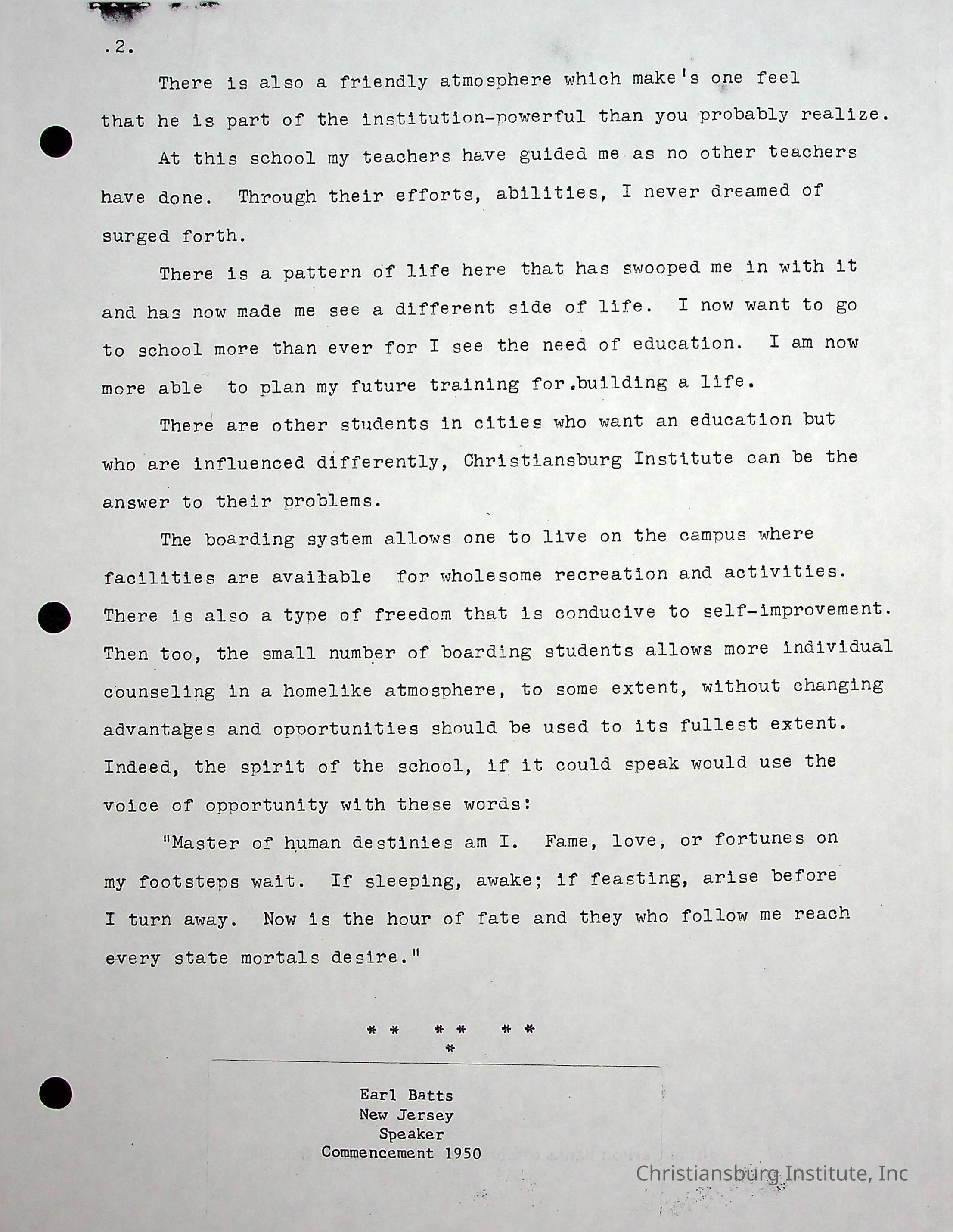 Earl Batts Commencement Speech, 1950 (photocopy)Description