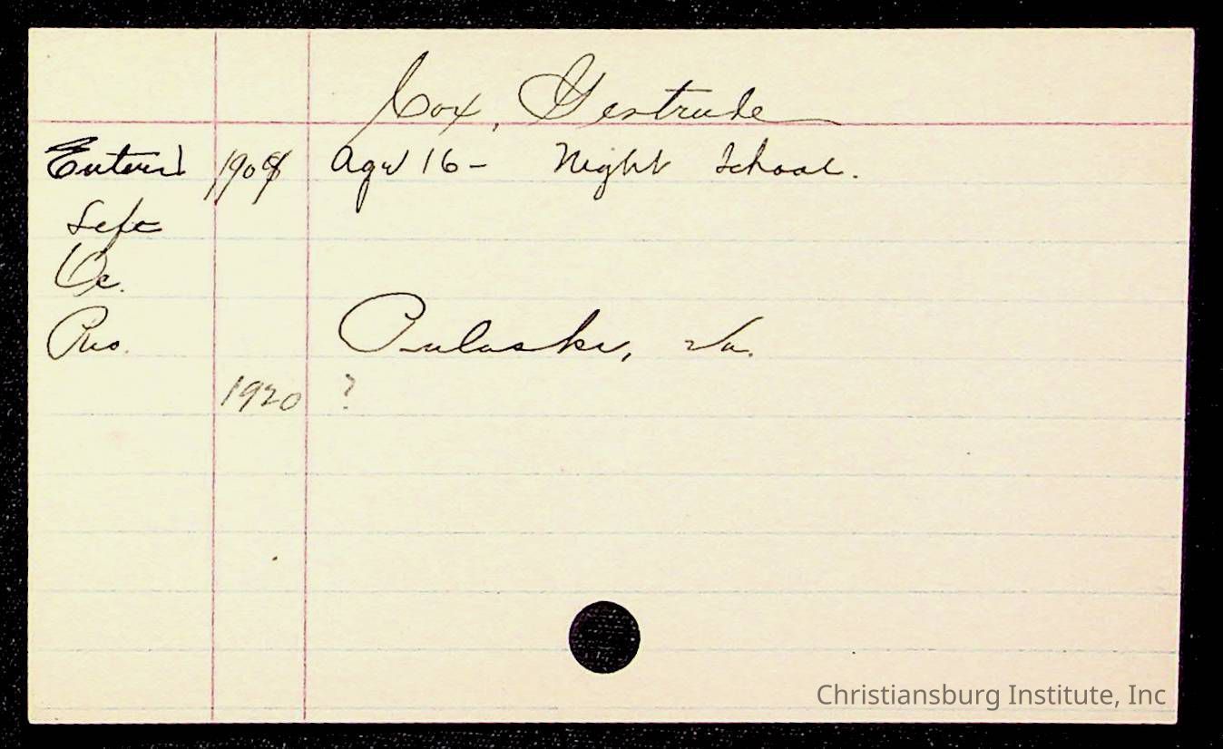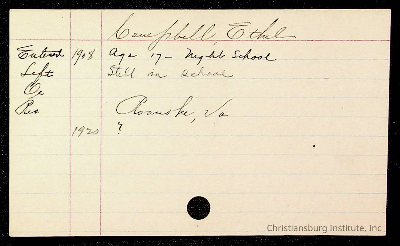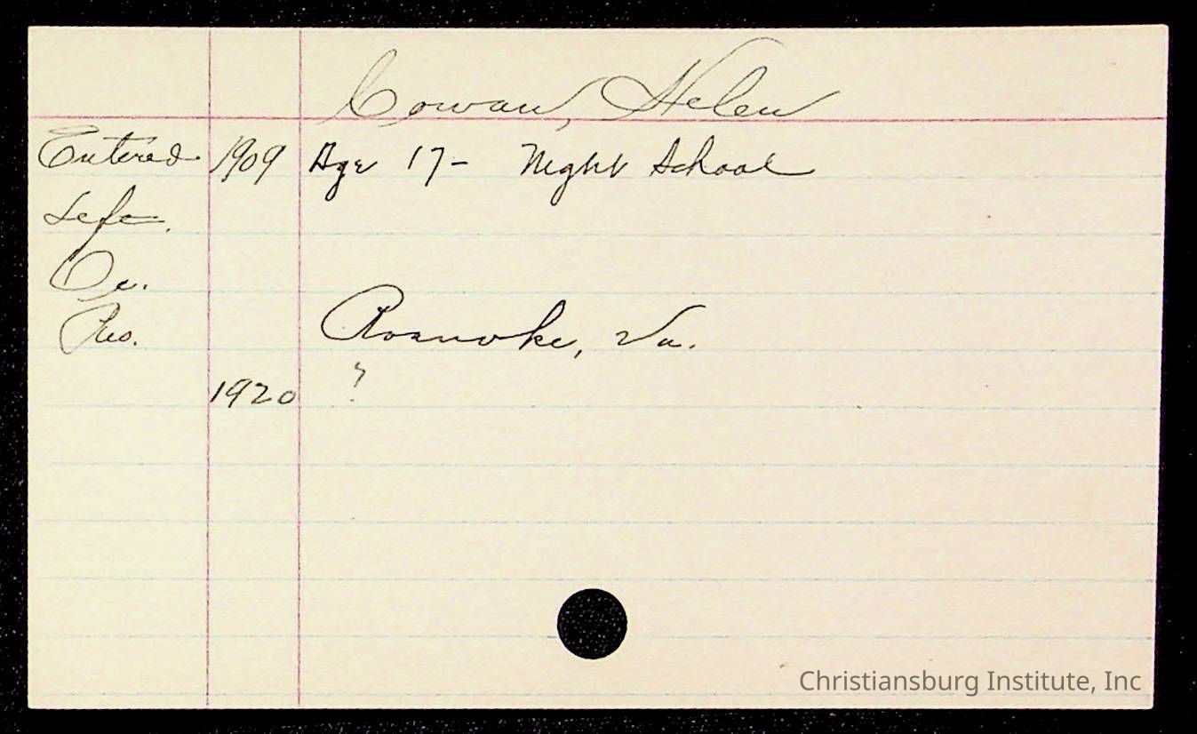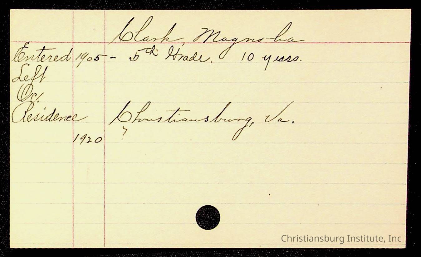 Copyright has been assigned to Christiansburg Institute Museum & Archives by Montgomery County Public Schools. For permission to publish materials created by the donor, contact CIMA@christiansburginstitute.com. Materials not created by Christiansburg Industrial Institute may still be under copyright.