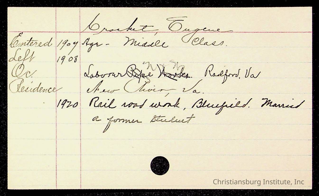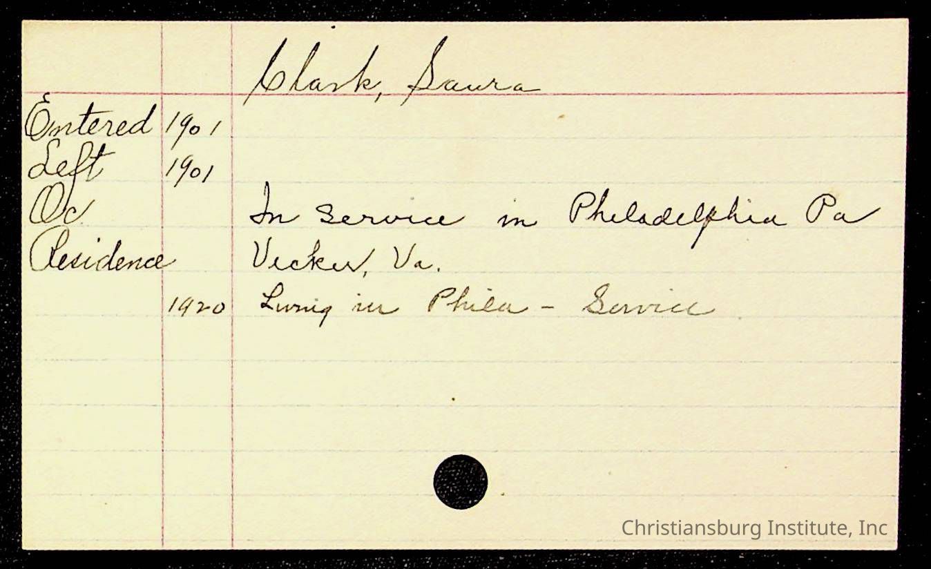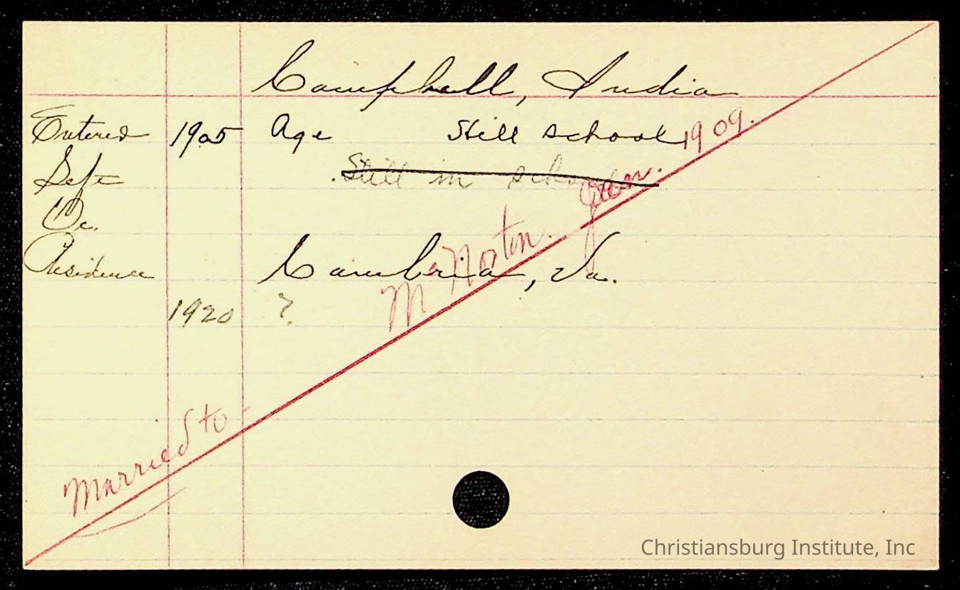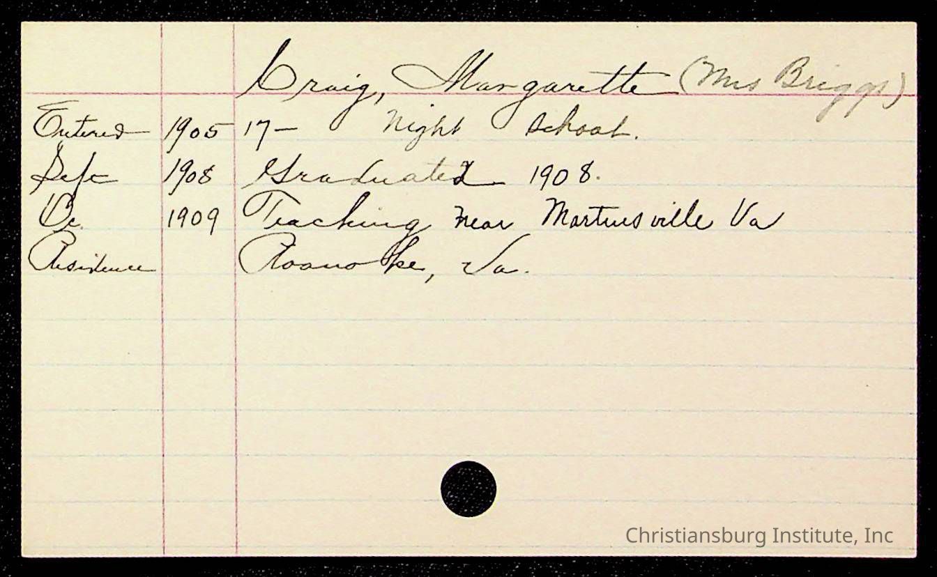 Copyright has been assigned to Christiansburg Institute Museum & Archives by Montgomery County Public Schools. For permission to publish materials created by the donor, contact CIMA@christiansburginstitute.com. Materials not created by Christiansburg Industrial Institute may still be under copyright.