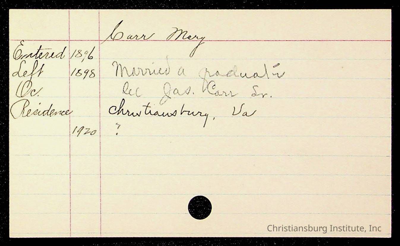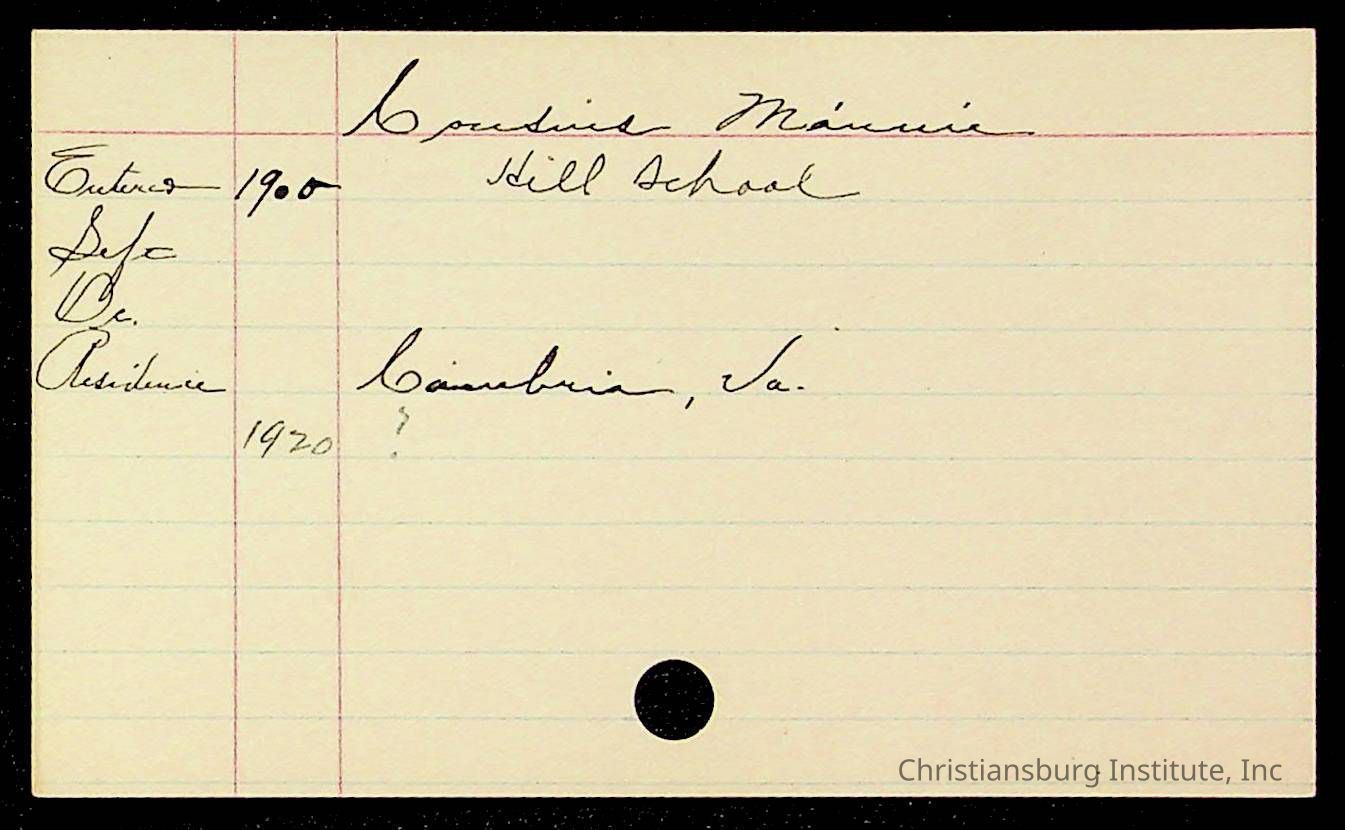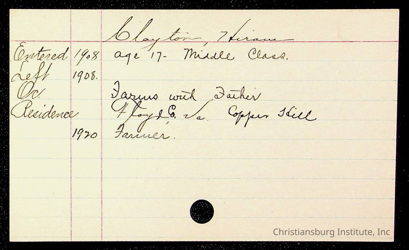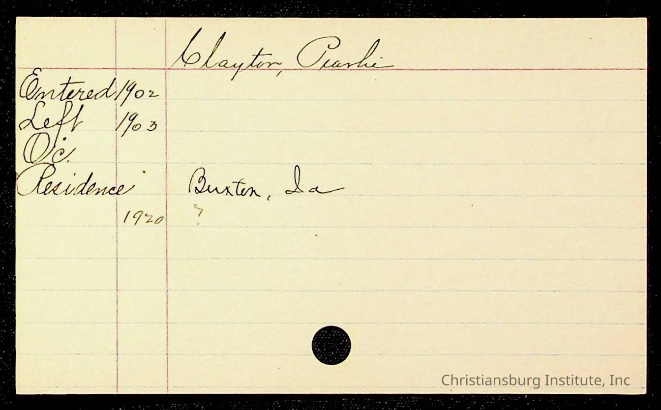 Copyright has been assigned to Christiansburg Institute Museum & Archives by Montgomery County Public Schools. For permission to publish materials created by the donor, contact CIMA@christiansburginstitute.com. Materials not created by Christiansburg Industrial Institute may still be under copyright.