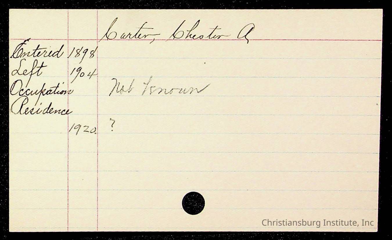 An archive of early Christiansburg Institute student records written on notecards for last names that began with the letter C, 1900s.