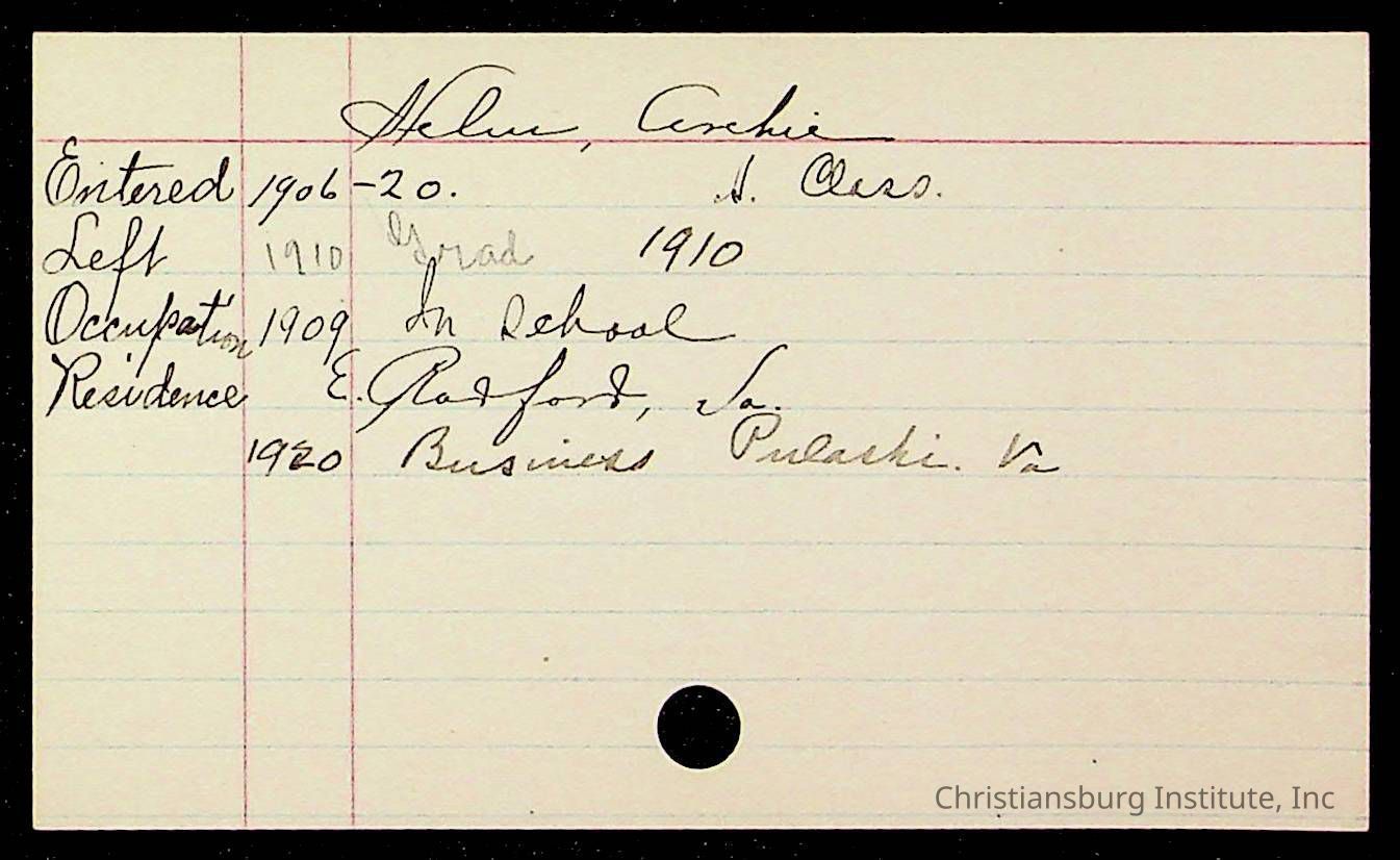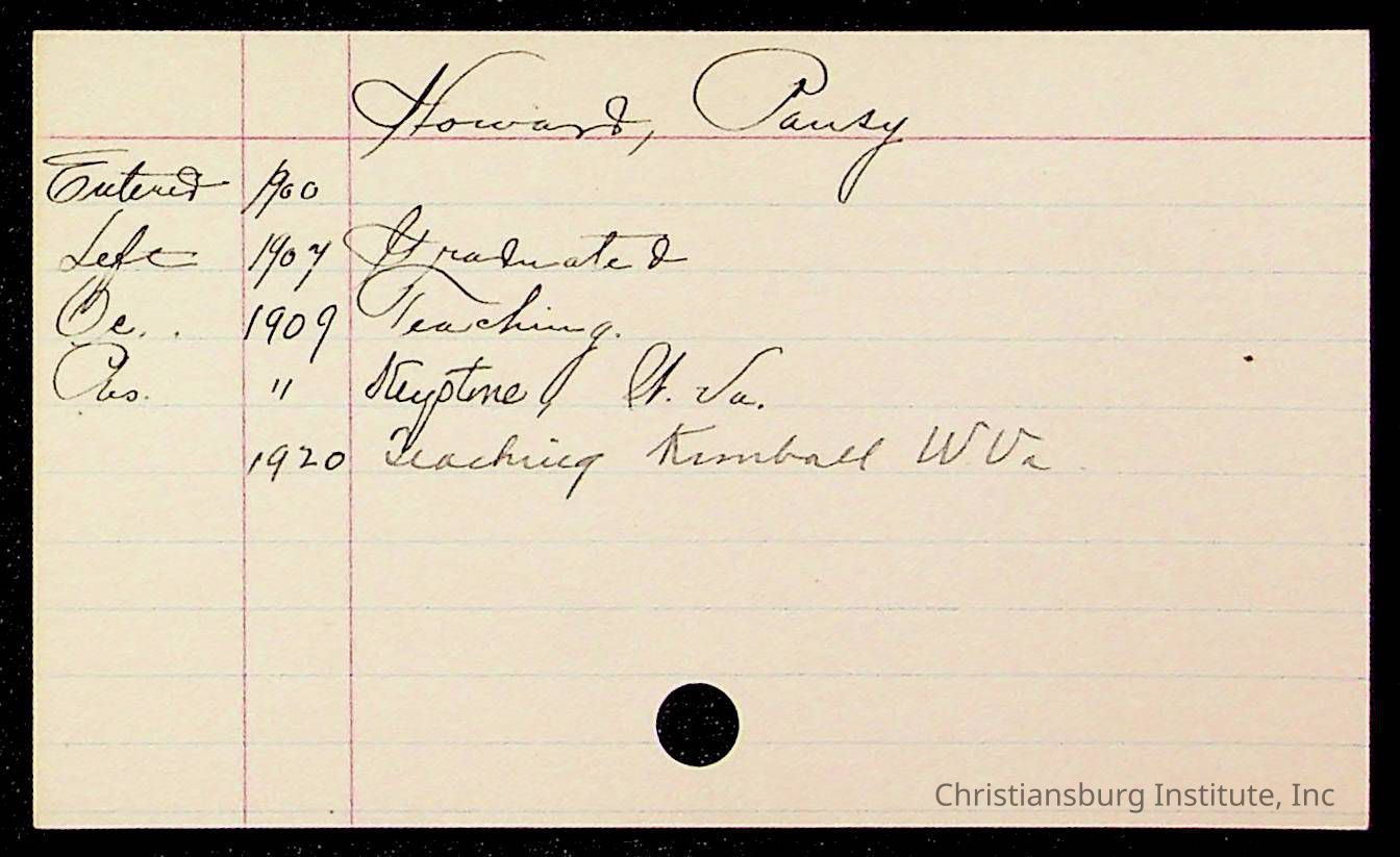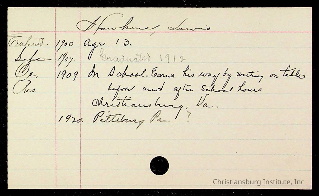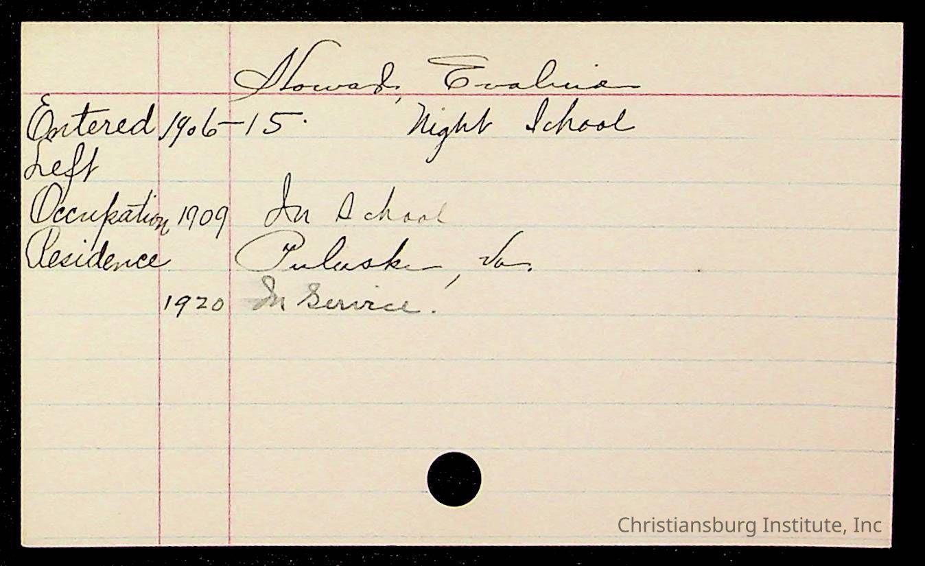 Copyright has been assigned to Christiansburg Institute Museum & Archives by Montgomery County Public Schools. For permission to publish materials created by the donor, contact CIMA@christiansburginstitute.com. Materials not created by Christiansburg Industrial Institute may still be under copyright.