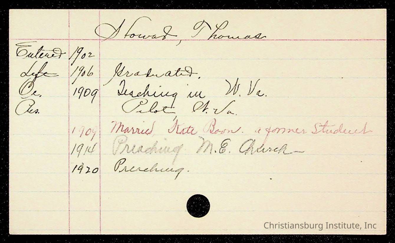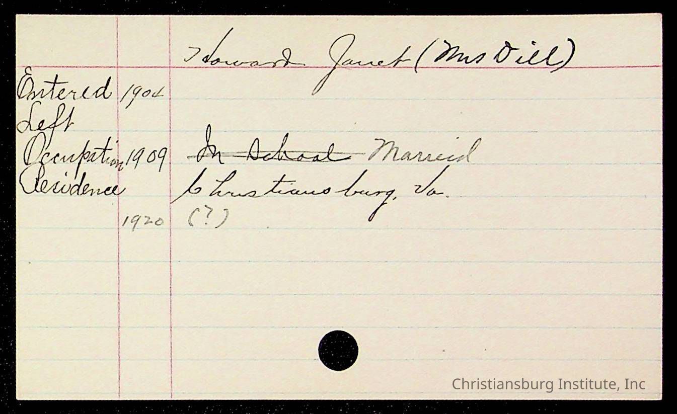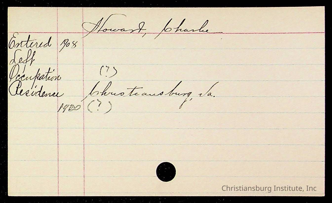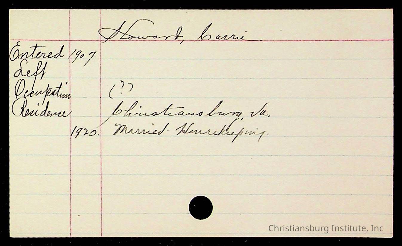 Copyright has been assigned to Christiansburg Institute Museum & Archives by Montgomery County Public Schools. For permission to publish materials created by the donor, contact CIMA@christiansburginstitute.com. Materials not created by Christiansburg Industrial Institute may still be under copyright.