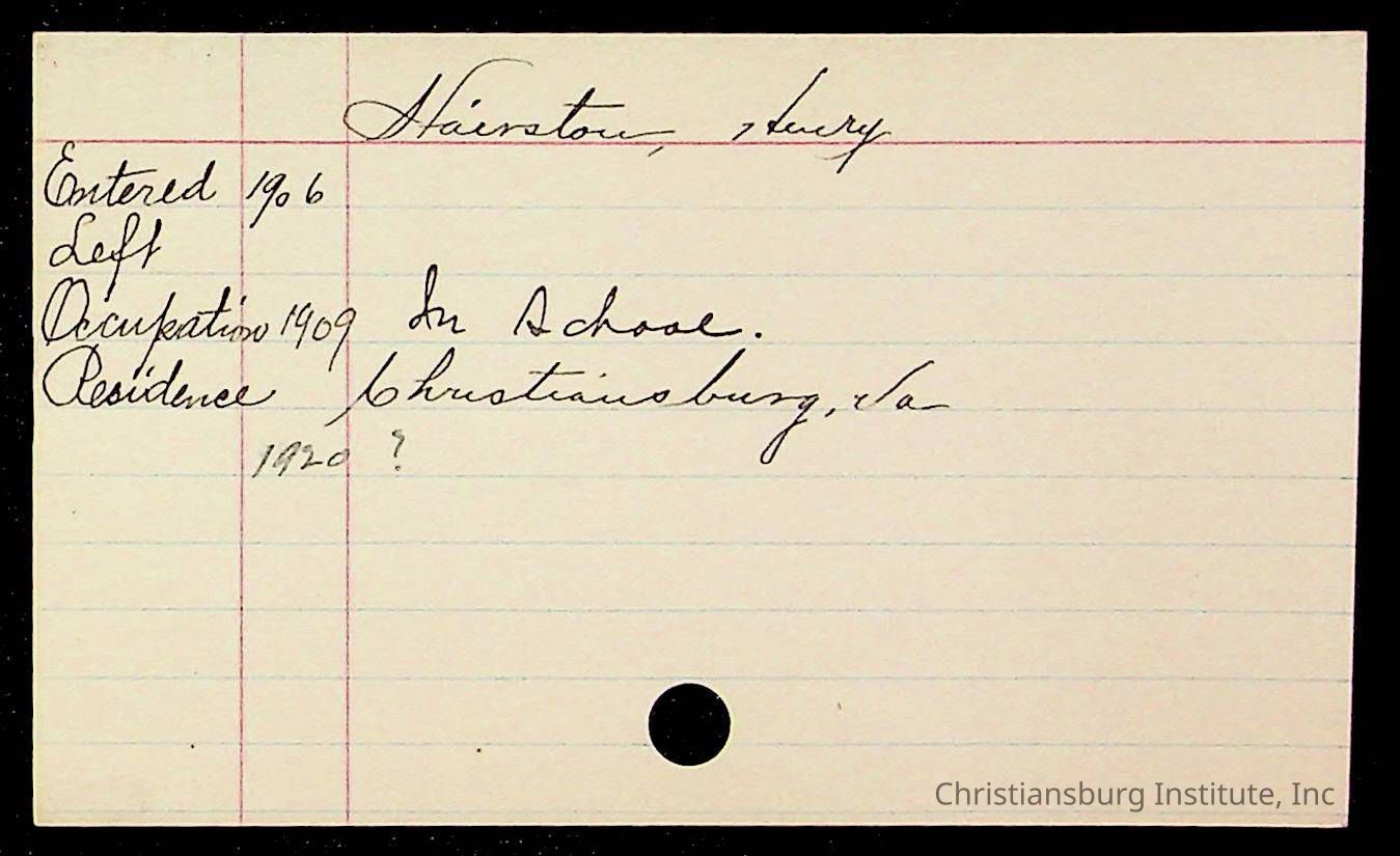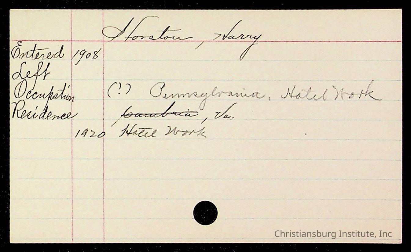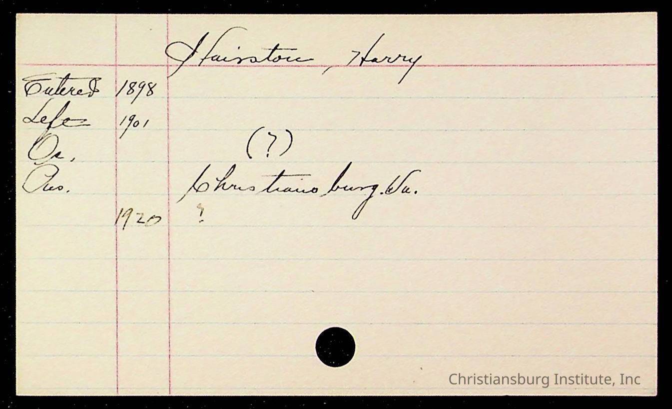 An archive of early Christiansburg Institute student records written on notecards for last names that began with the letter H, 1900s.