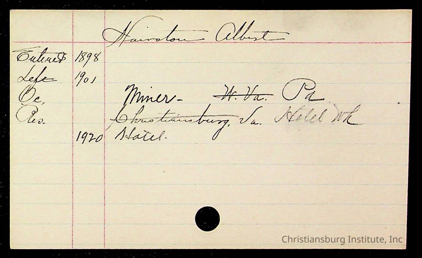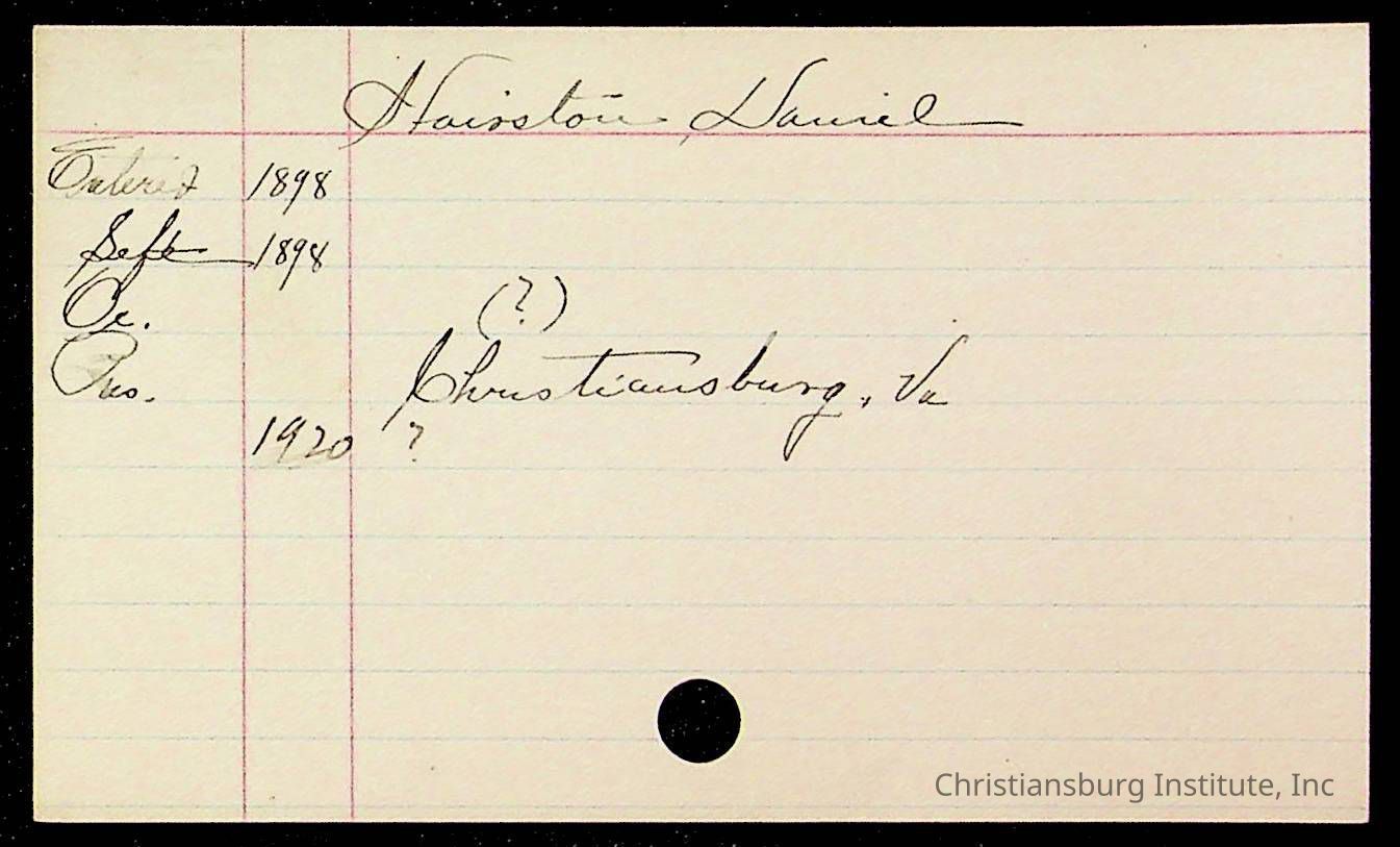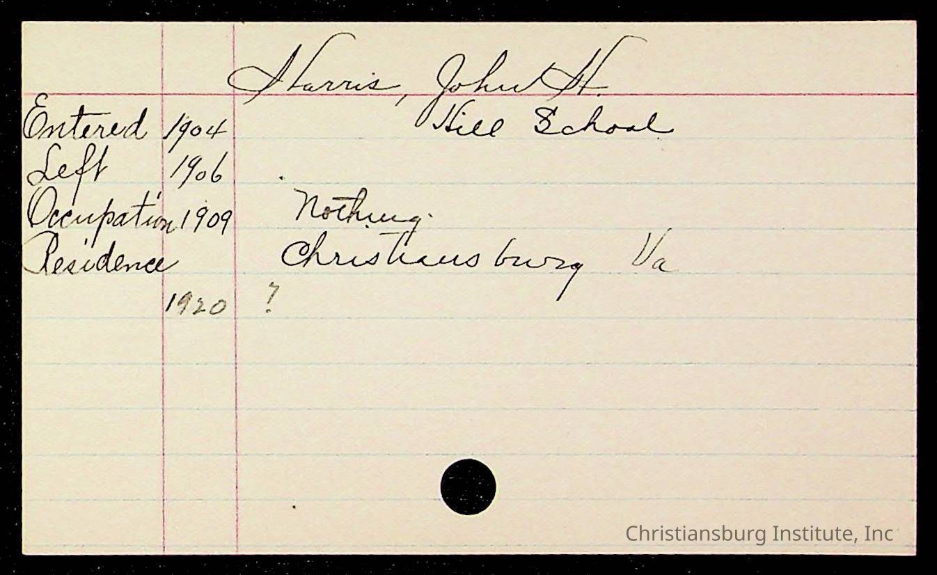 An archive of early Christiansburg Institute student records written on notecards for last names that began with the letter H, 1900s.
