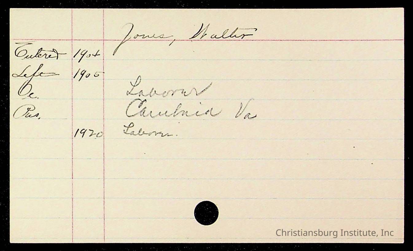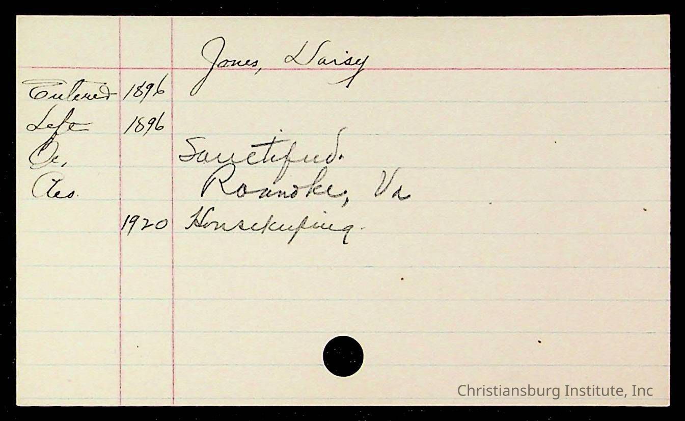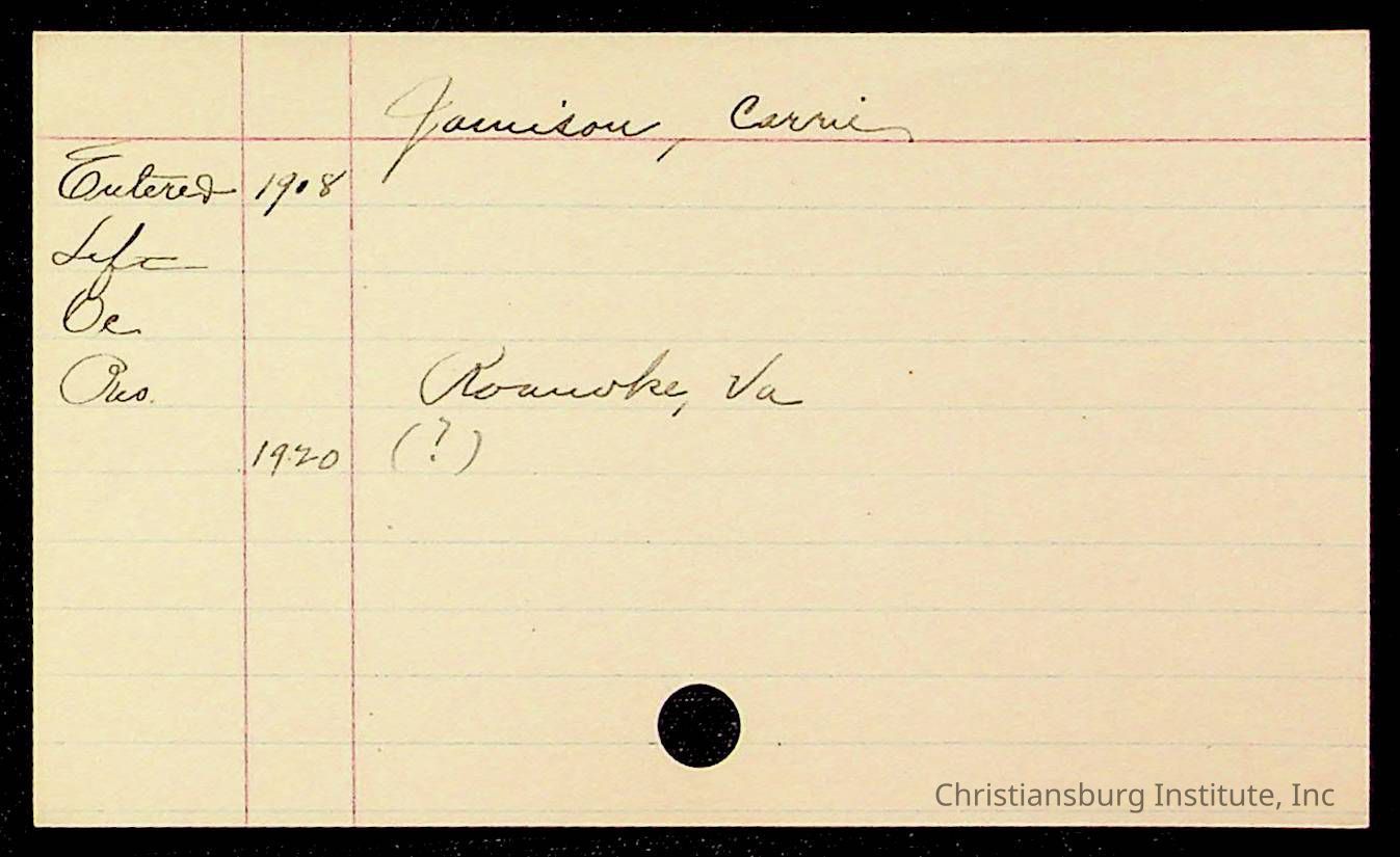 Copyright has been assigned to Christiansburg Institute Museum & Archives by Montgomery County Public Schools. For permission to publish materials created by the donor, contact CIMA@christiansburginstitute.com. Materials not created by Christiansburg Industrial Institute may still be under copyright.