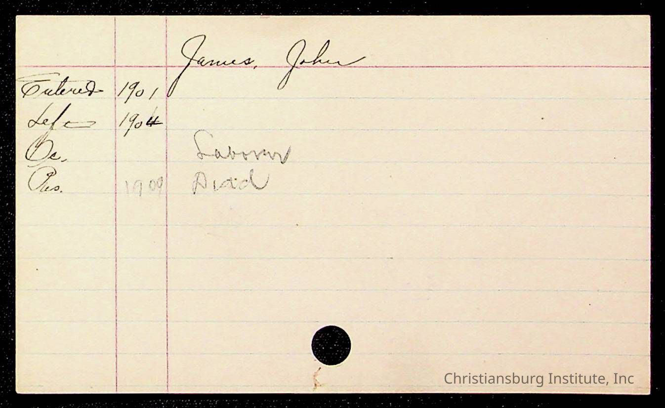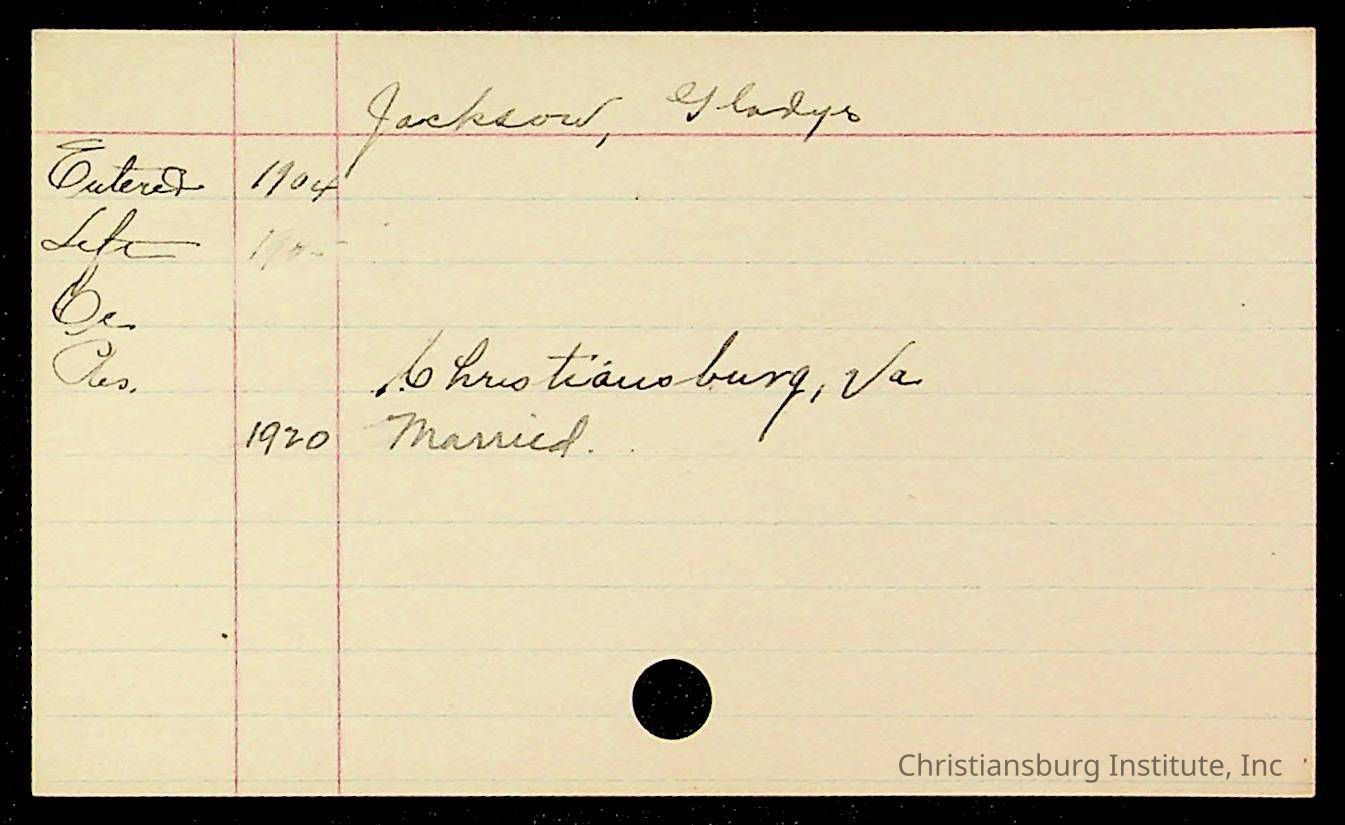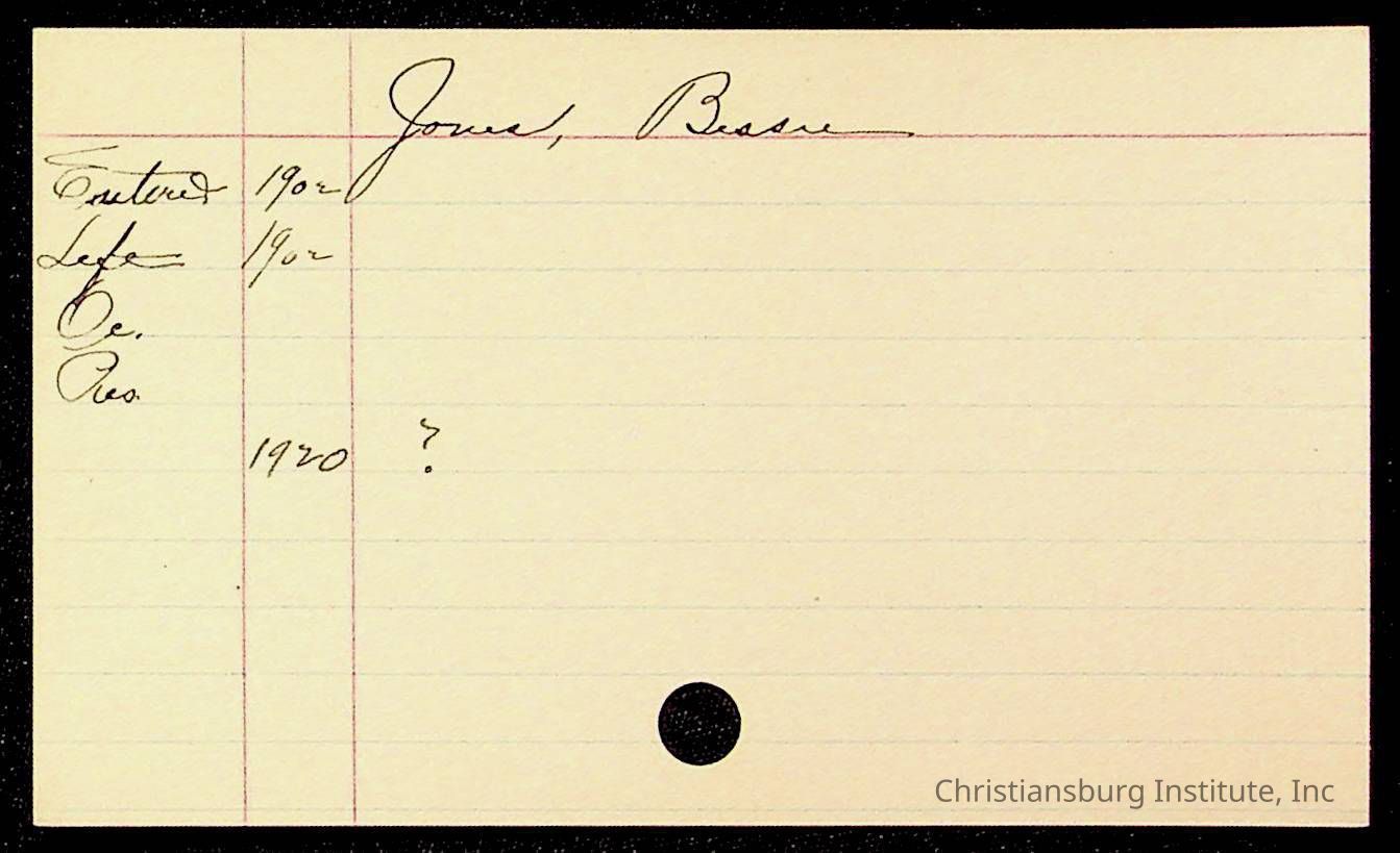 Copyright has been assigned to Christiansburg Institute Museum & Archives by Montgomery County Public Schools. For permission to publish materials created by the donor, contact CIMA@christiansburginstitute.com. Materials not created by Christiansburg Industrial Institute may still be under copyright.
